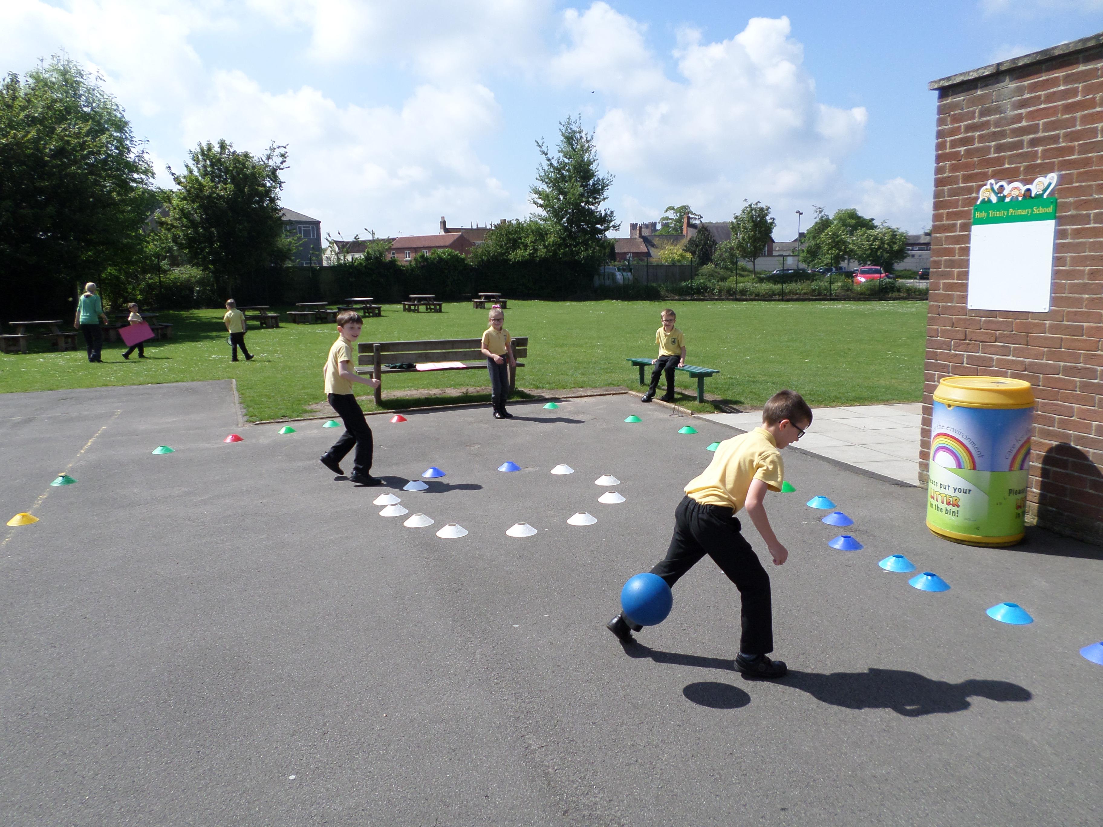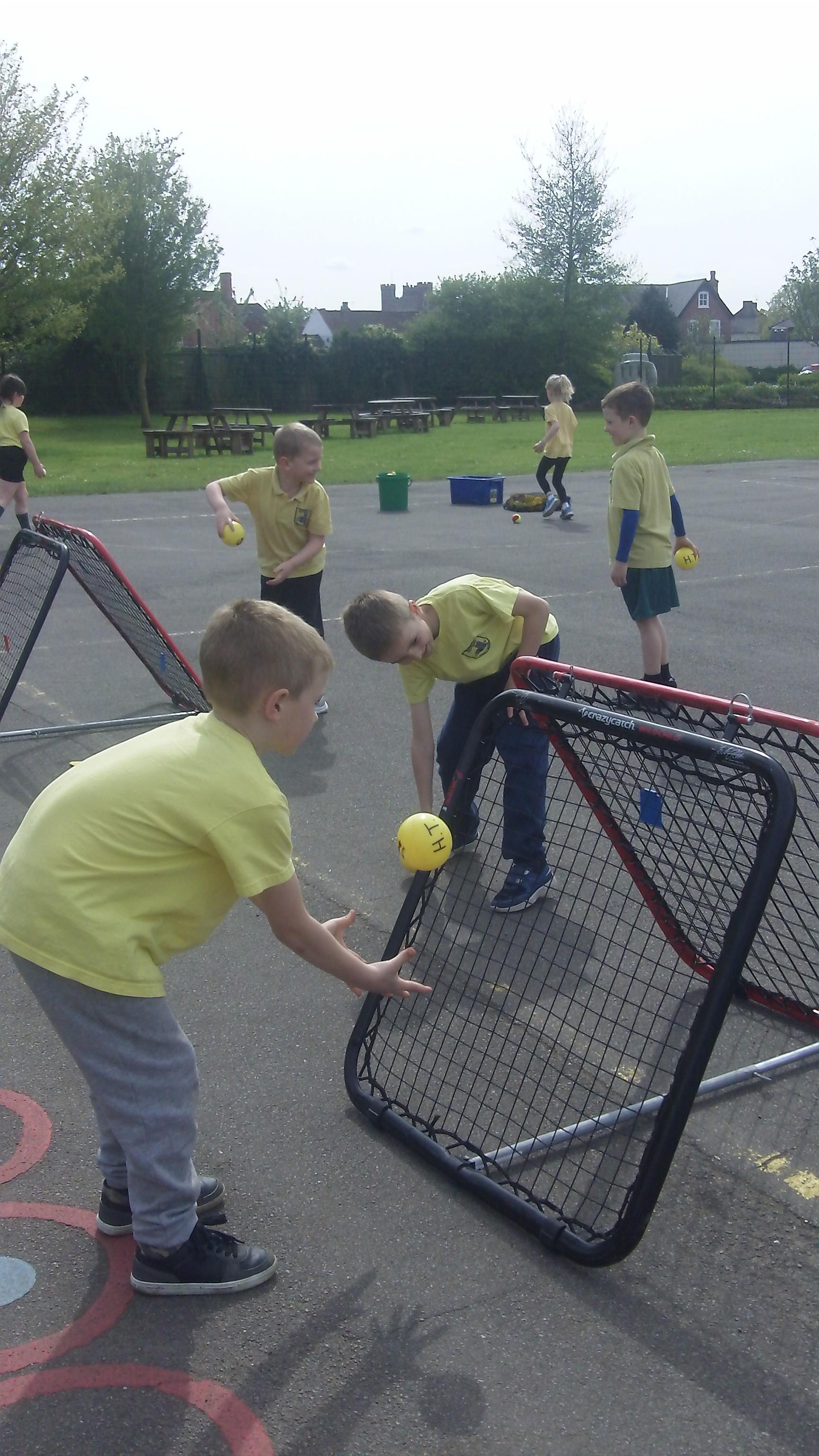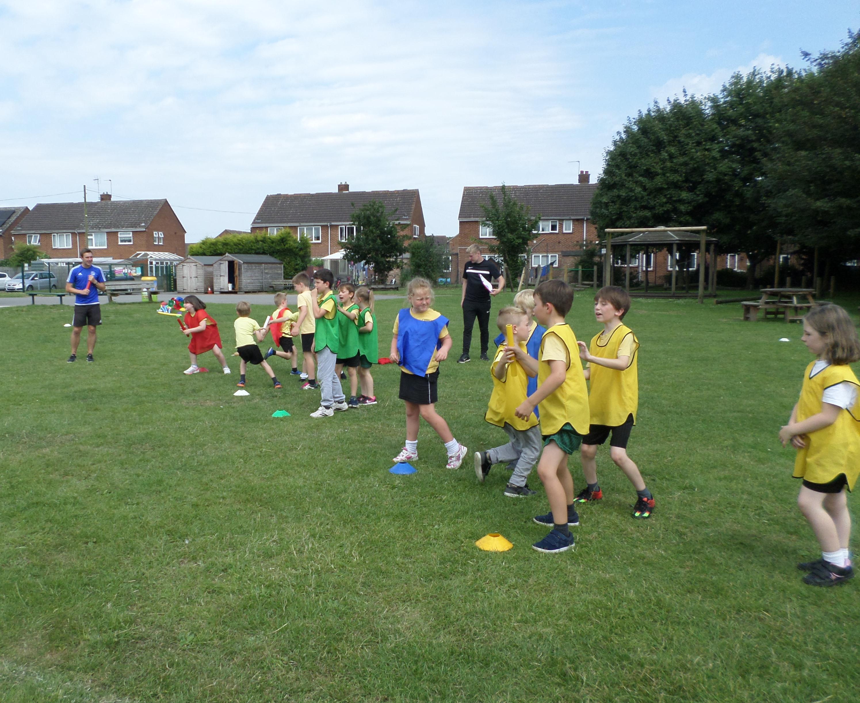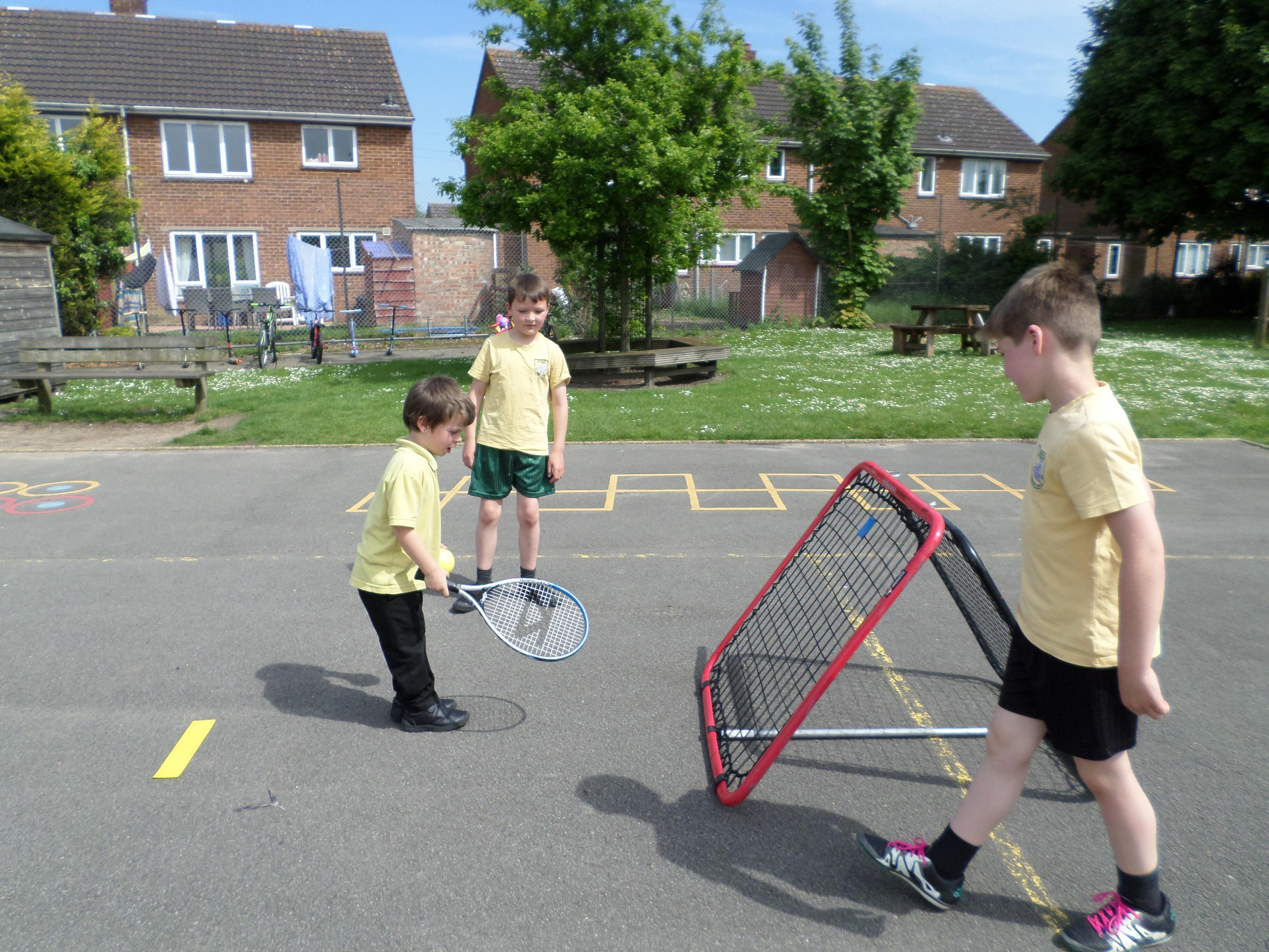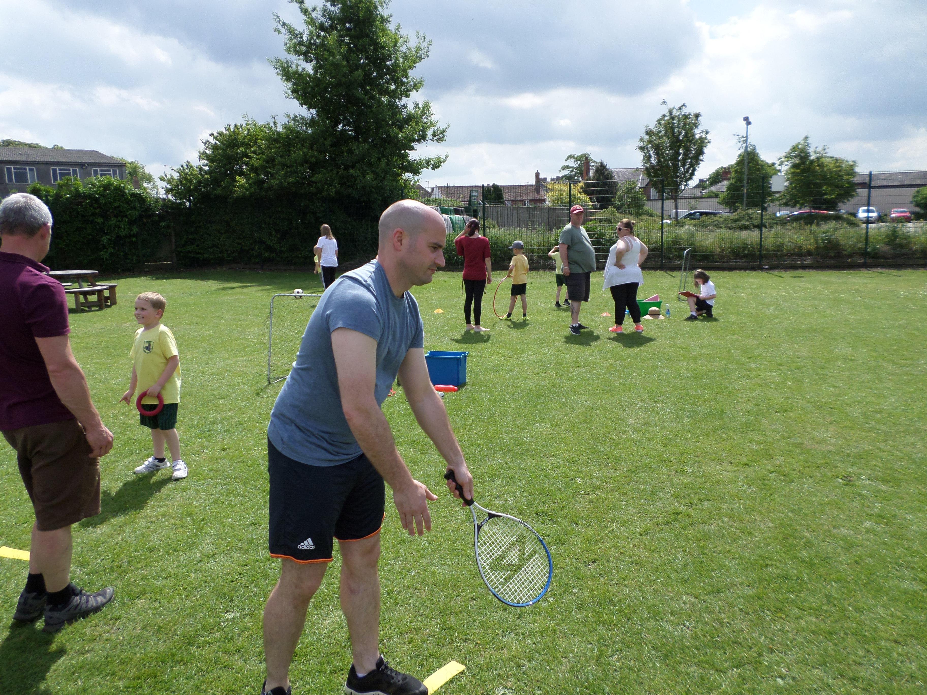 After a lot of team work and instruction writing we invited Oak Class parents to come and try out our games. It was a very hot day, but at least it didn't rain. After the health and safety talk the parents found their children's team and followed instructions for the warm up that was led by the children. Then the children explained their activities and all the adults had a go at each one. It did come to our attention that some rules were being 'adapted' to make it harder for the adults, but they still took part with enthusiasm! The children really enjoyed their event and would like to thank all the adults who came to support them. We hope we have inspired our families to keep fit and active!