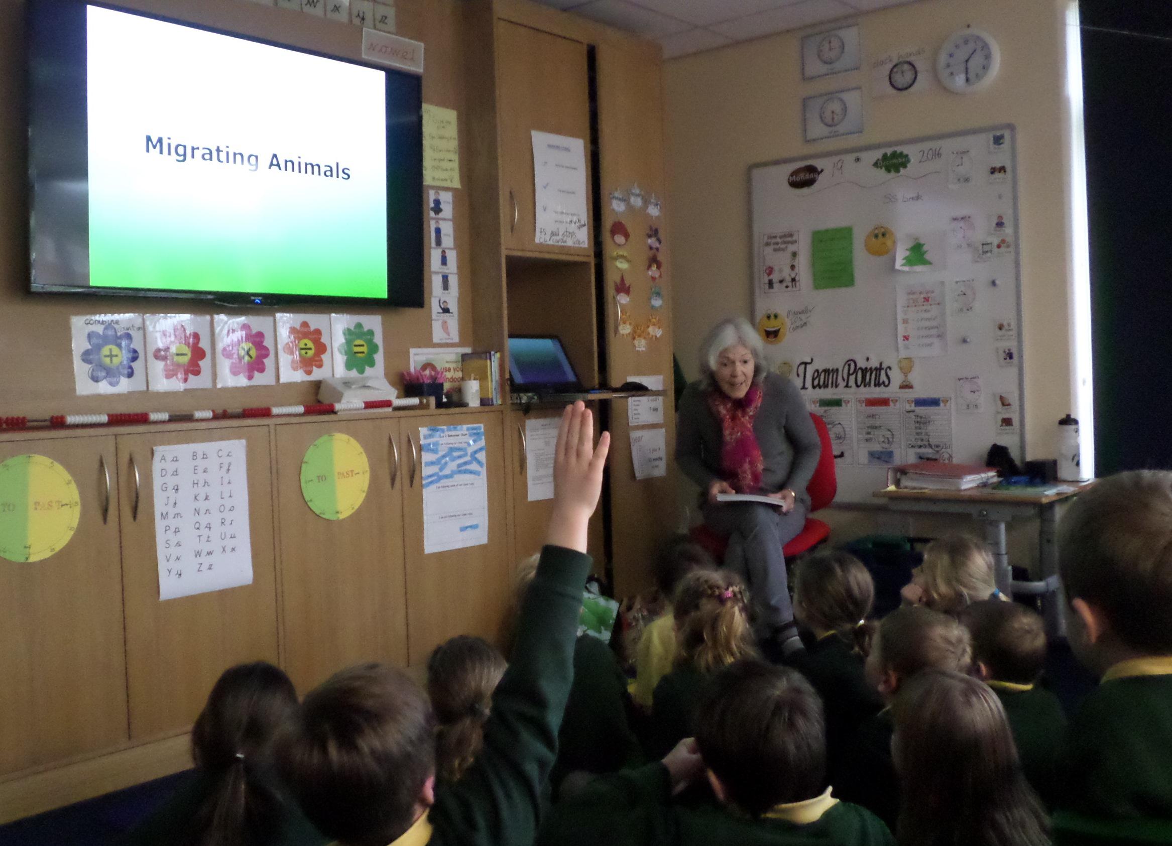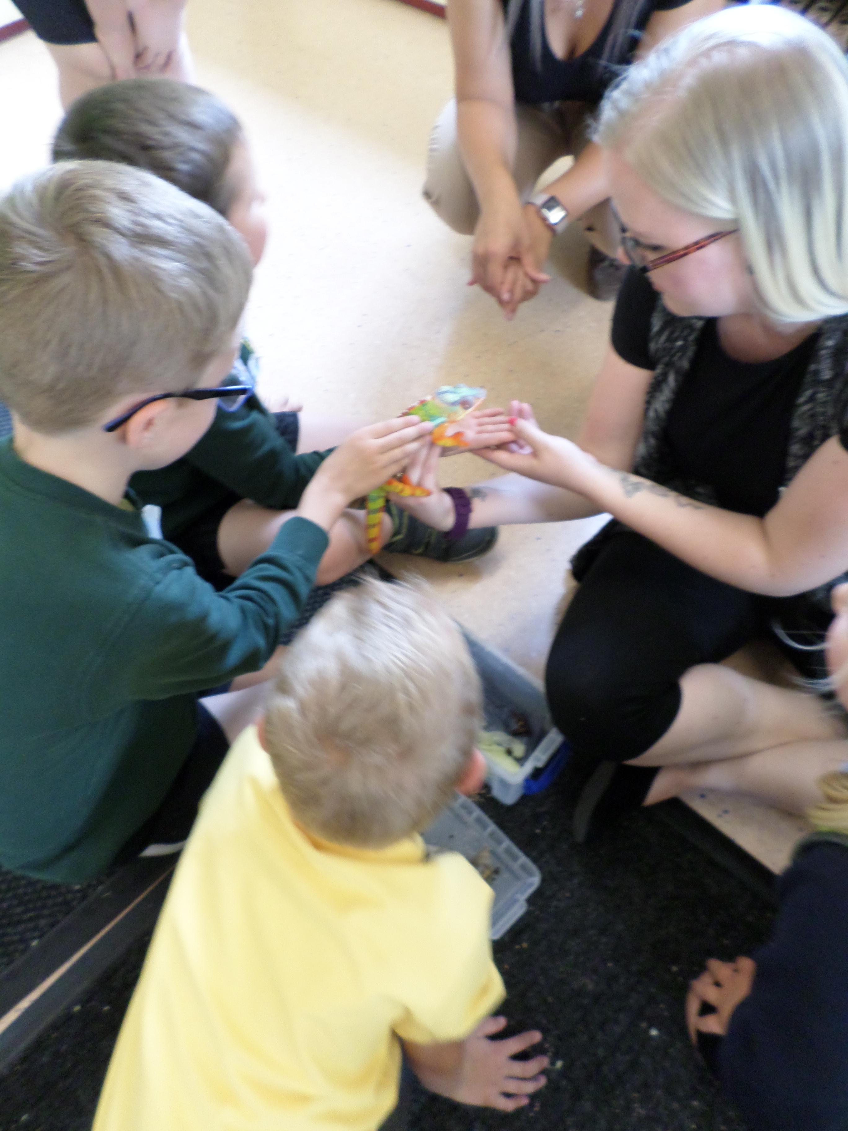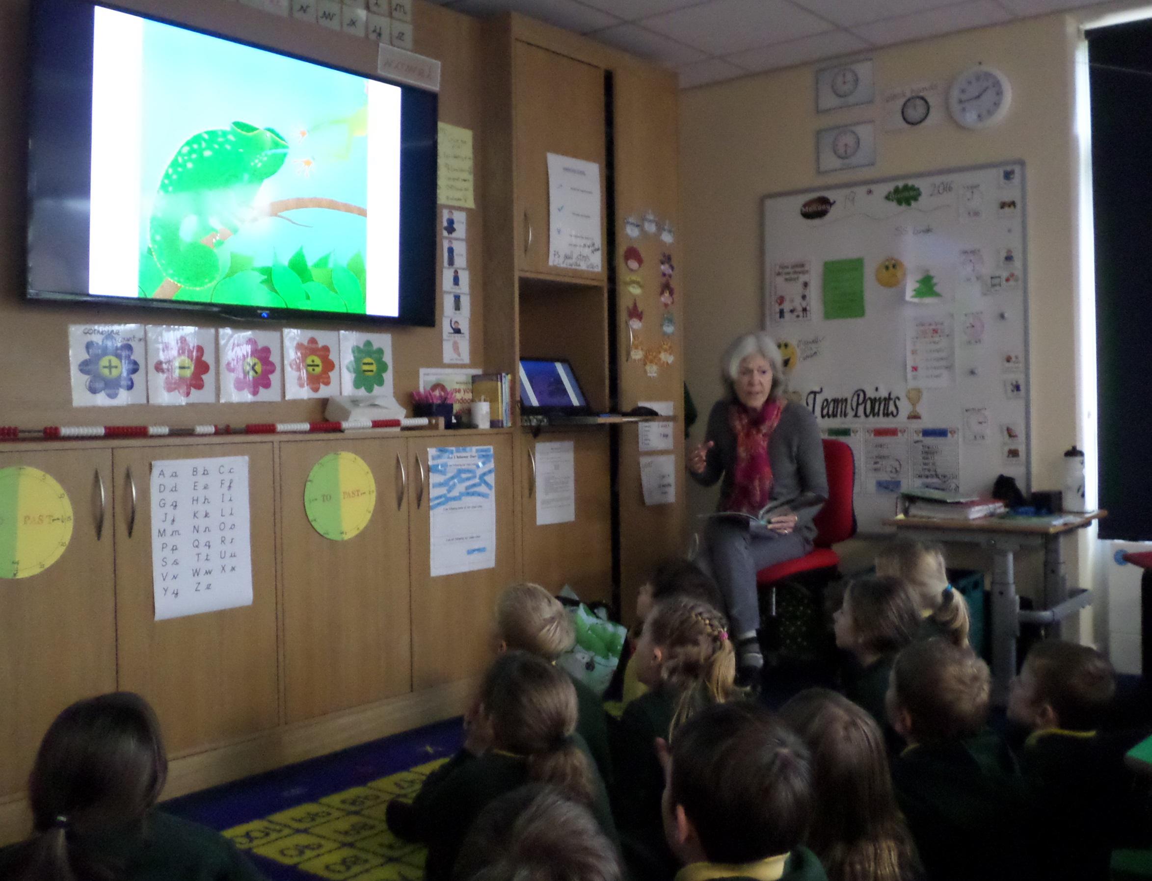 Oak Class really enjoyed their visit by the author, illustrator and story teller Gail Clarke. First she introduced some of the science behind her stories and we learned about migration, hibernation and camouflage, as well as different habitats. Then we listened to the story 'The Chameleon Who Couldn't Change Colour'. After the story the class met Patrick the African grey parrot who caused uproar with his antics. A huge thank you to Gail for a such a lovely afternoon.