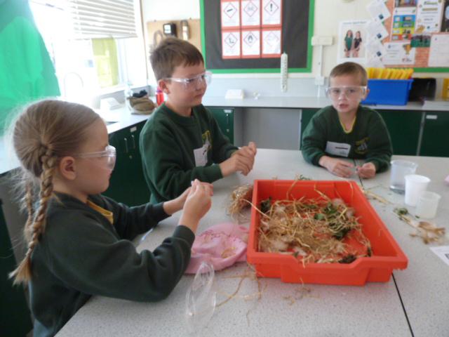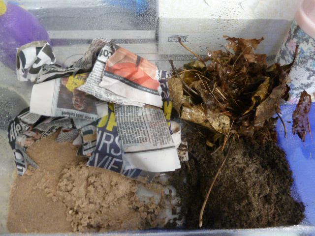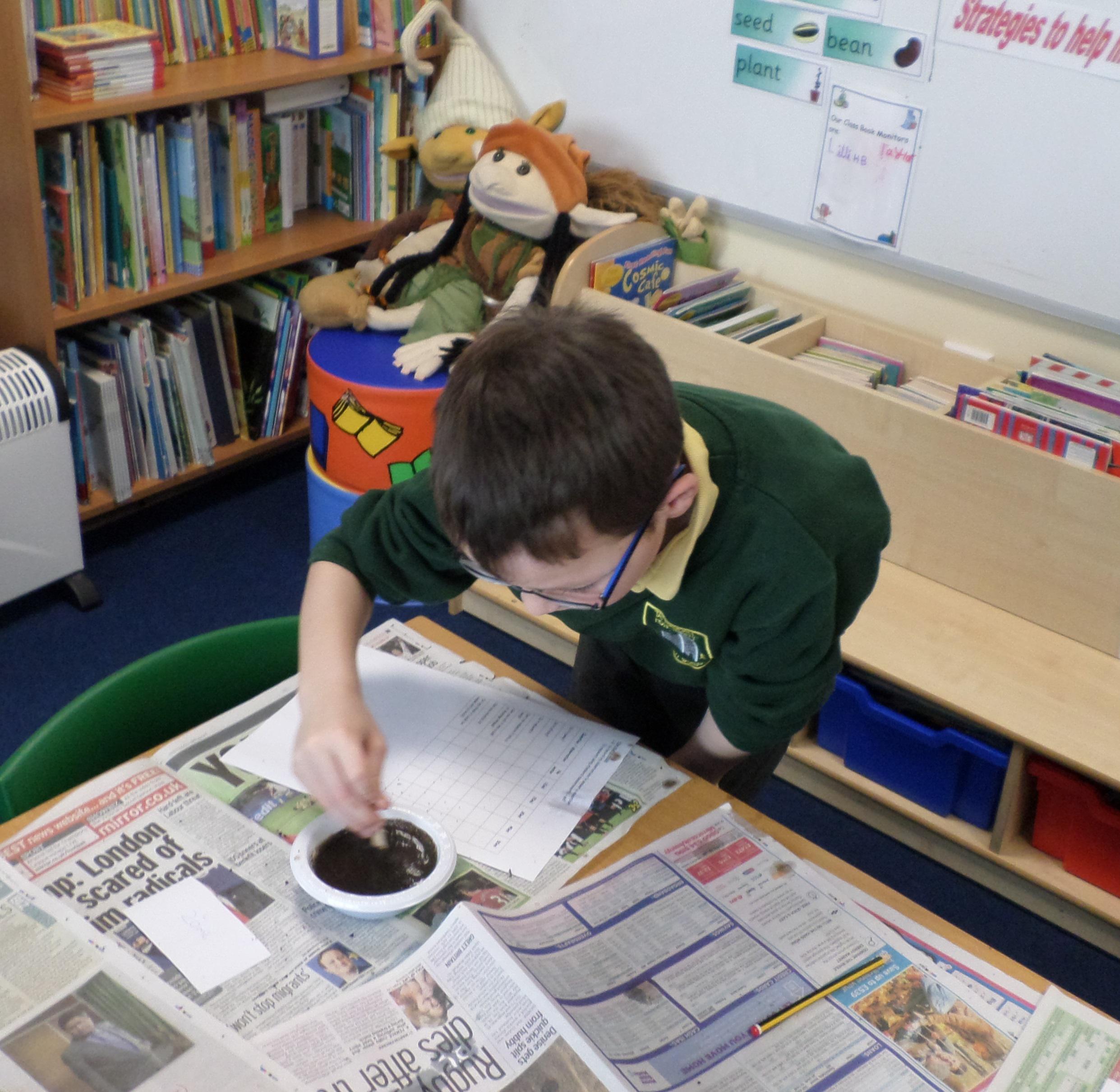 On Tuesday we set up a worm habitat investigation. First we had to find worms. Mrs Addison watered the empty plant beds at lunch time and we dug carefully in them in the afternoon. We found 32 worms! Then we tested them overnight with 4 different damp habitats: soil, newspaper, sand and leaves. On Wednesday we searched through the habitats and found 25 of the worms in the soil, 1 in the leaves and 6 in the sand. That they went into the sand was a surprise to us. No worms went to the newspaper - Mrs Simons said 'maybe they can't read!' When we were drawing the worms they kept escaping off the plates! Mrs Addison said she had never seen such fast moving worms!