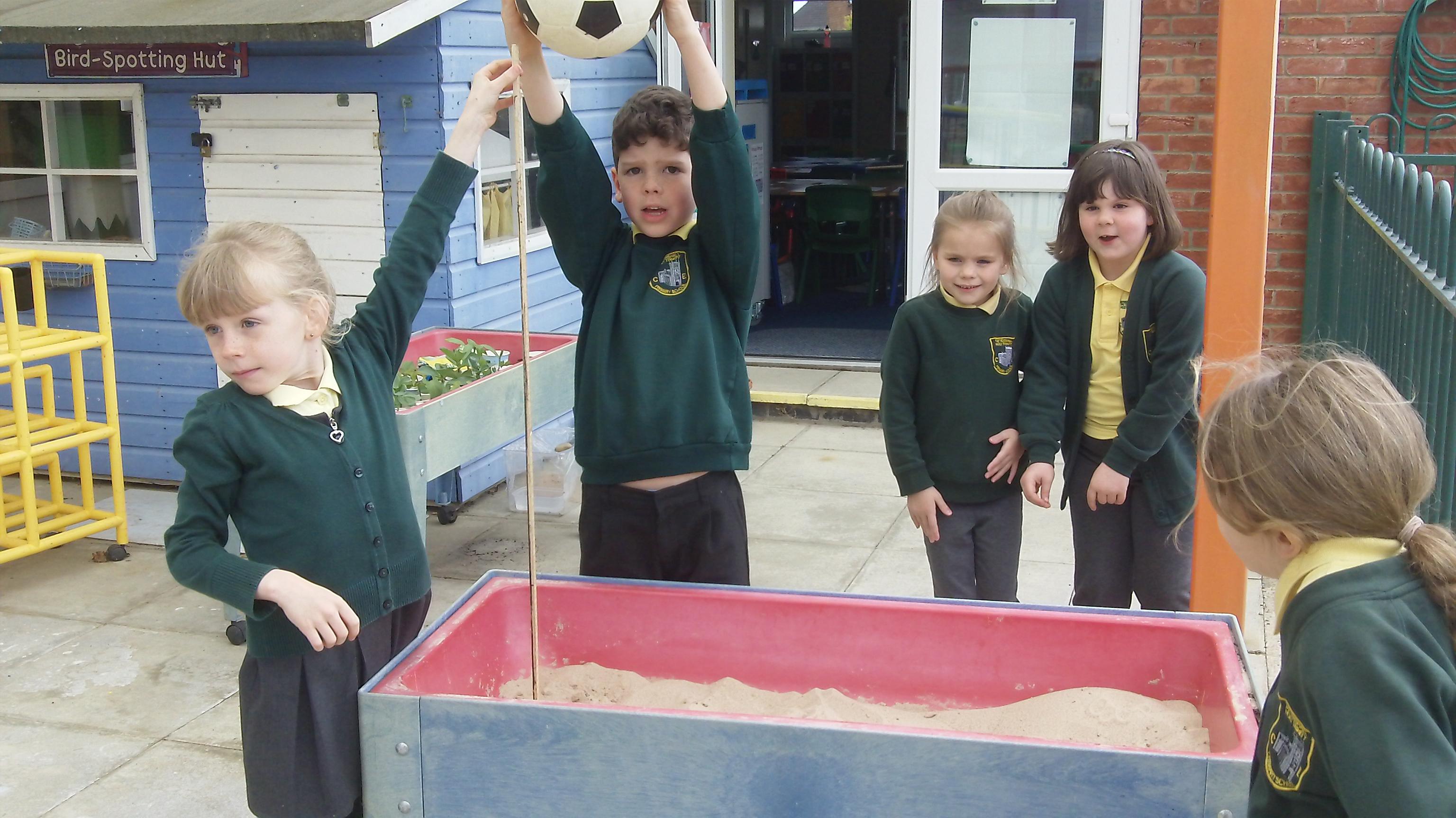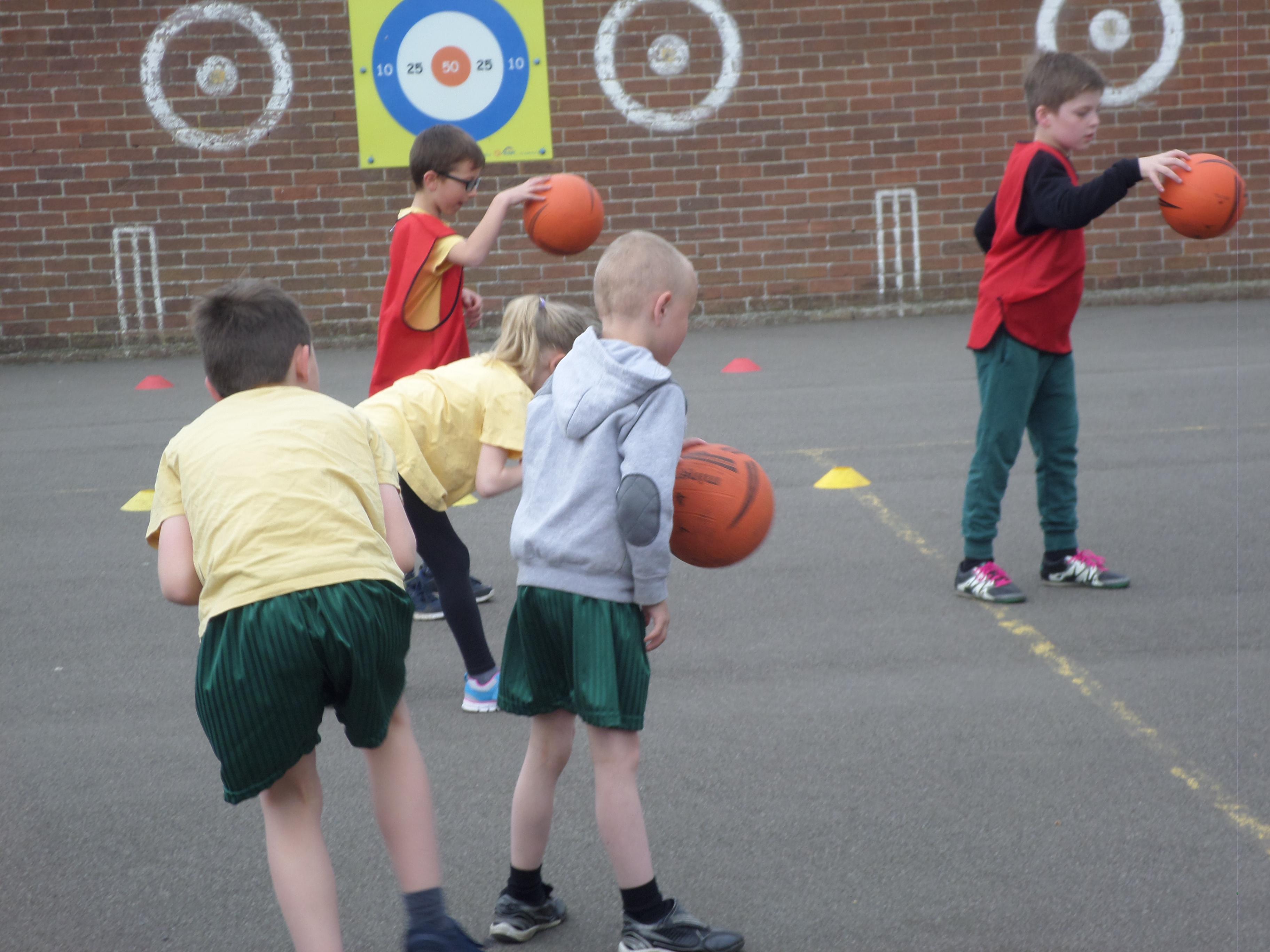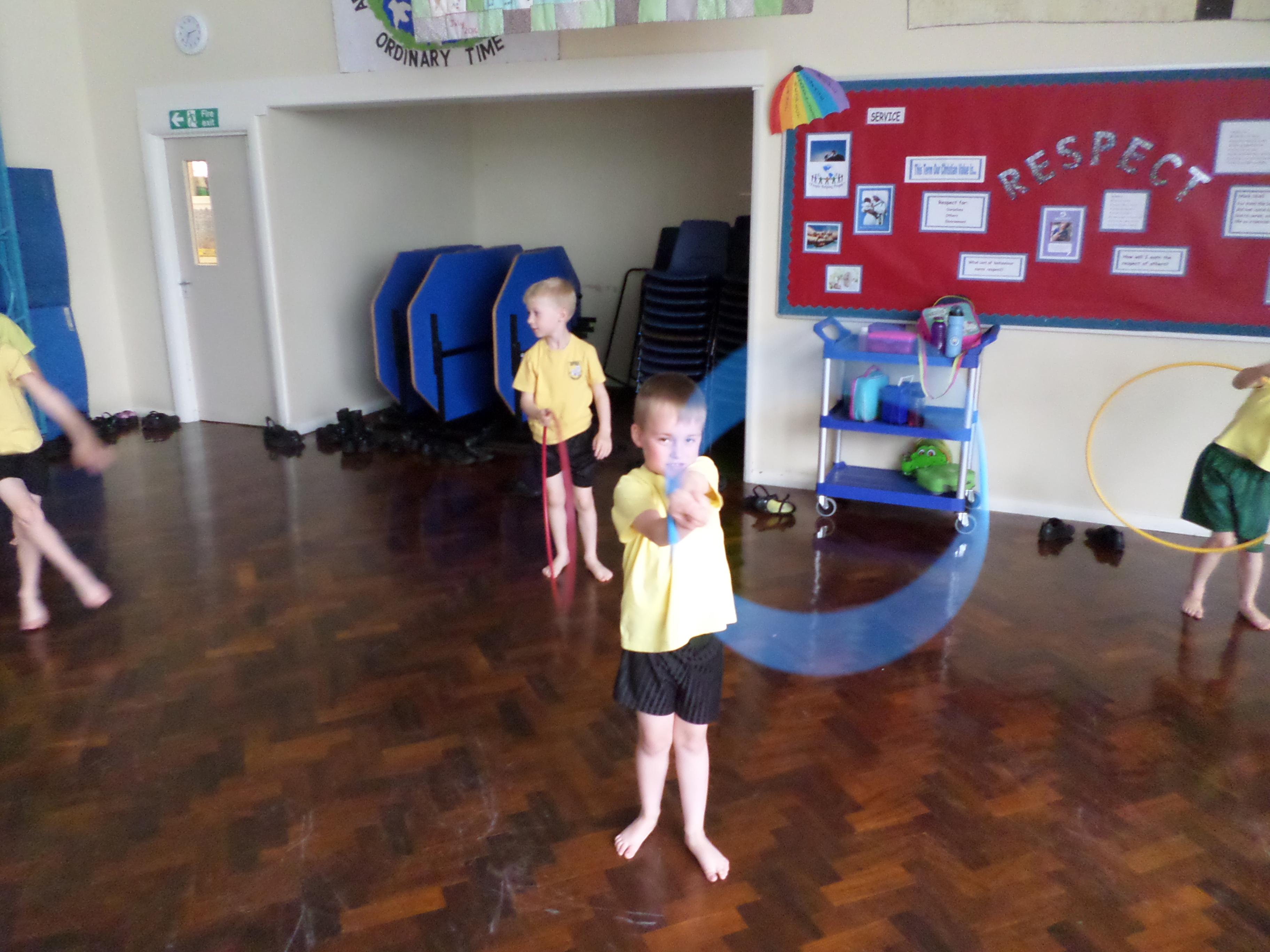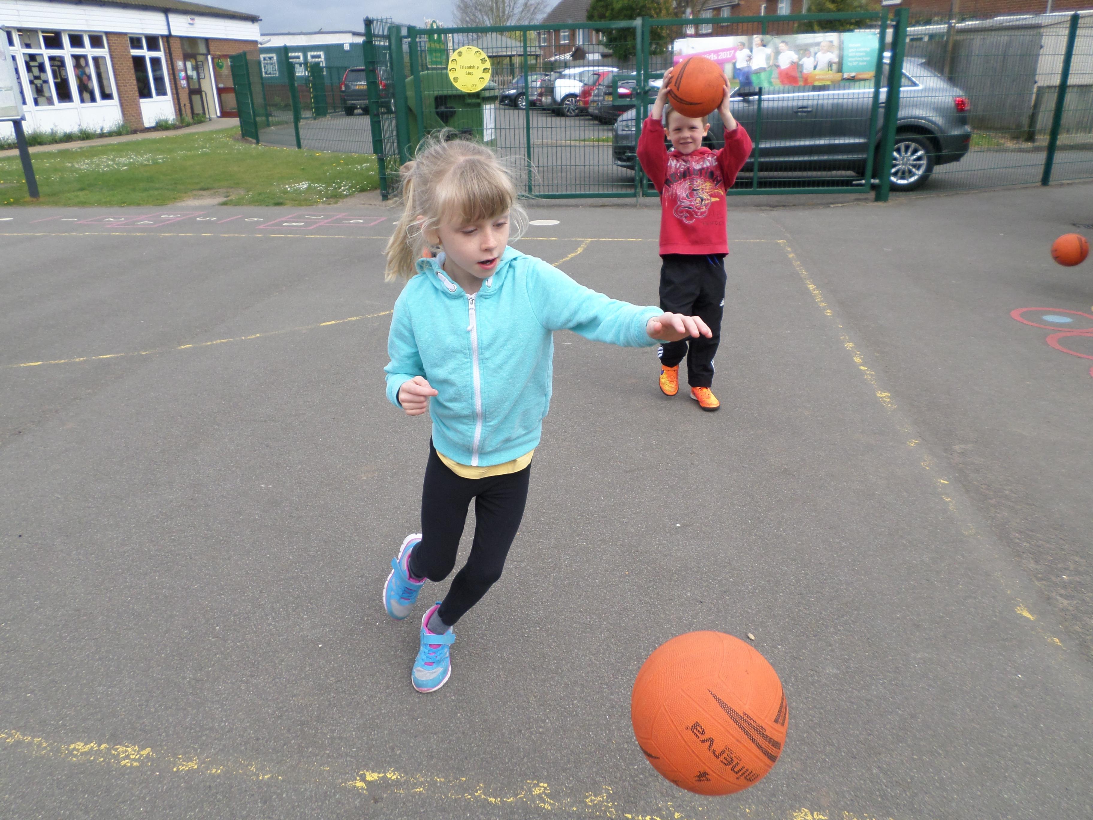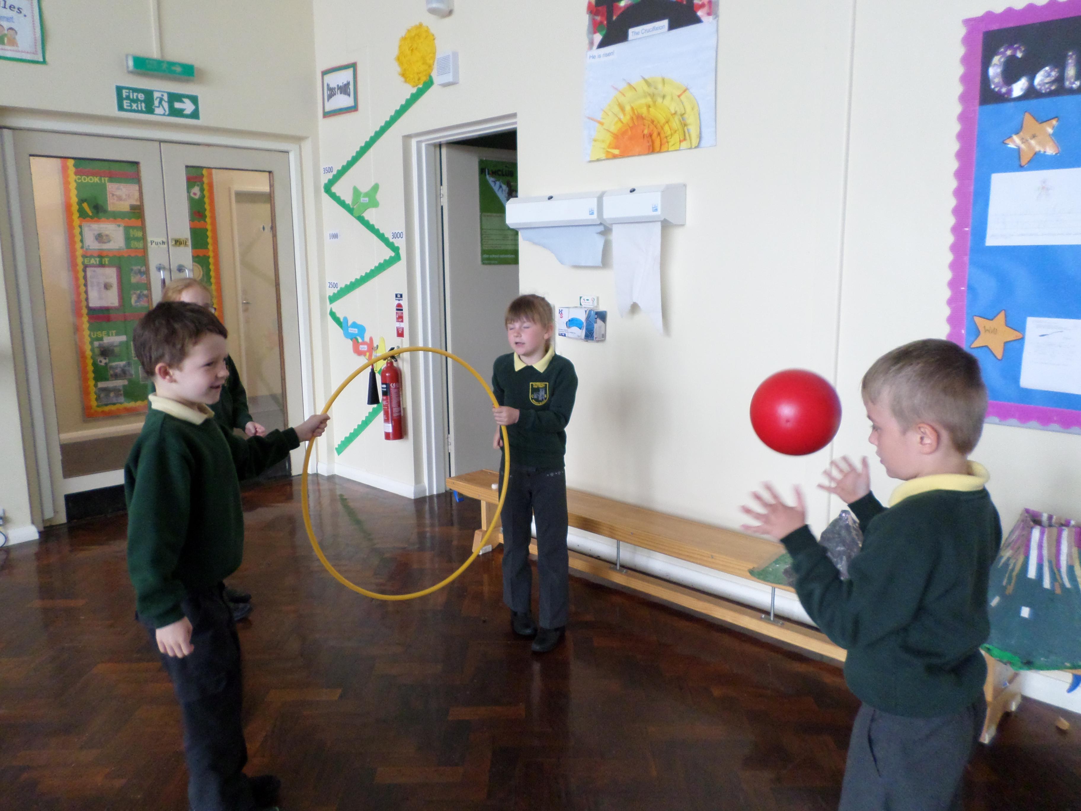 We have had a bouncy first week of our Bounce topic. We have been reading the story of the princess who bounced a ball into a well, finding out about animals that bounce and then moving like them, investigating how balls made from different materials bounce and, finally today, we had a bouncy PE session with JBs Sports when Mr Brown taught us bouncy basket ball techniques. We are positively bouncing!!
