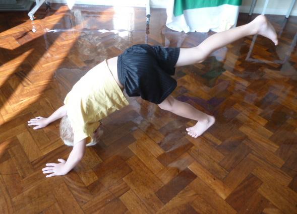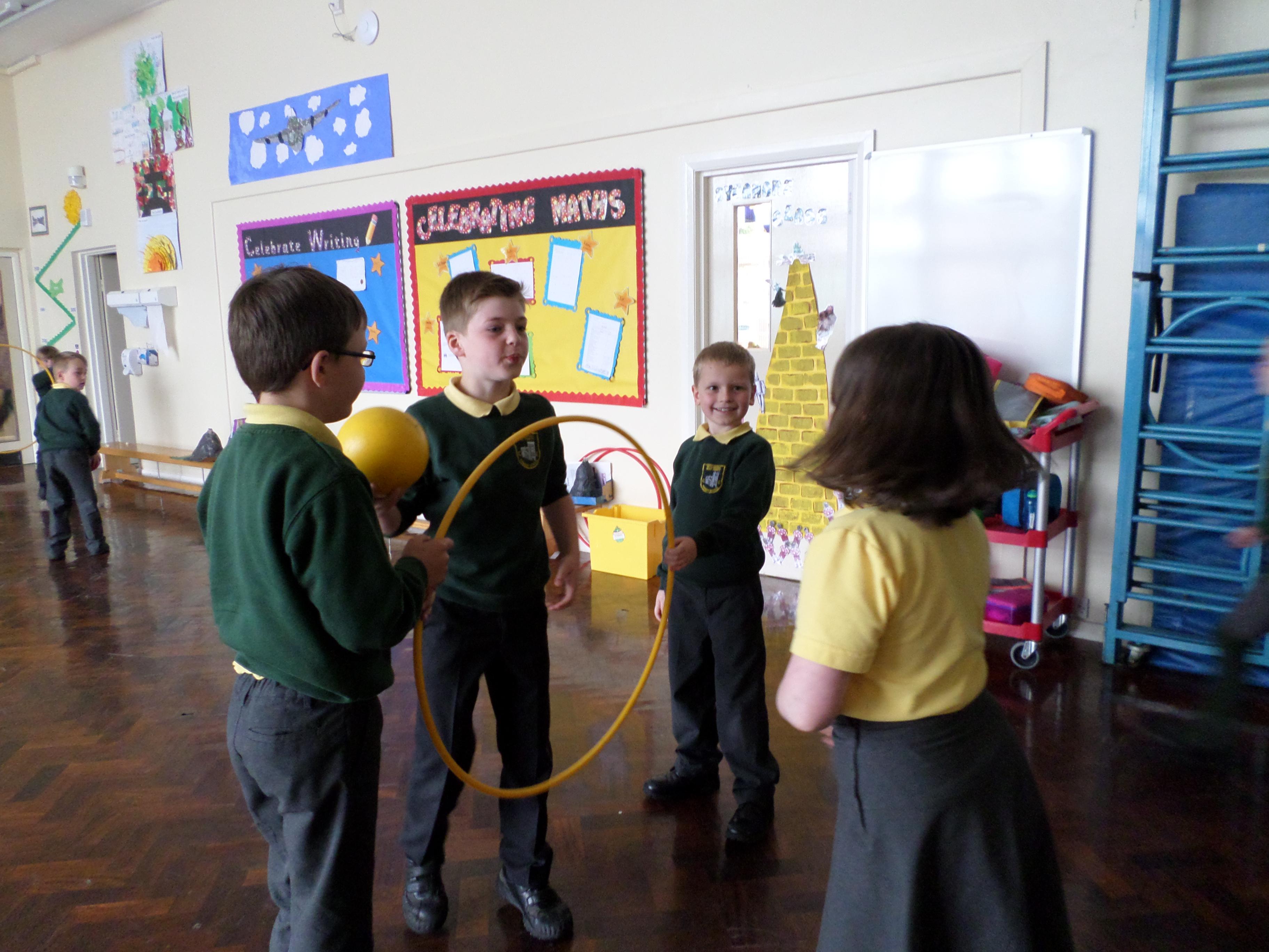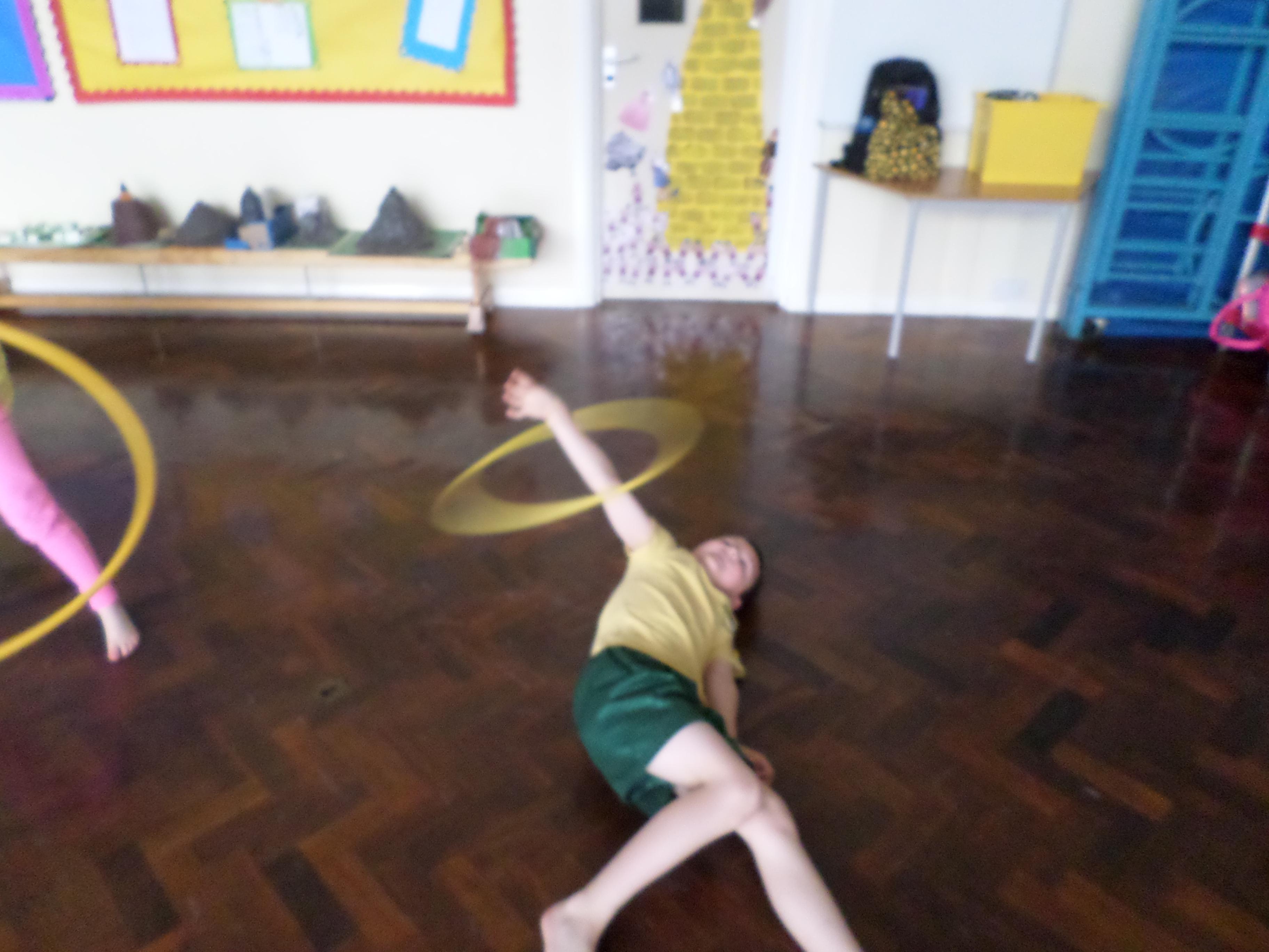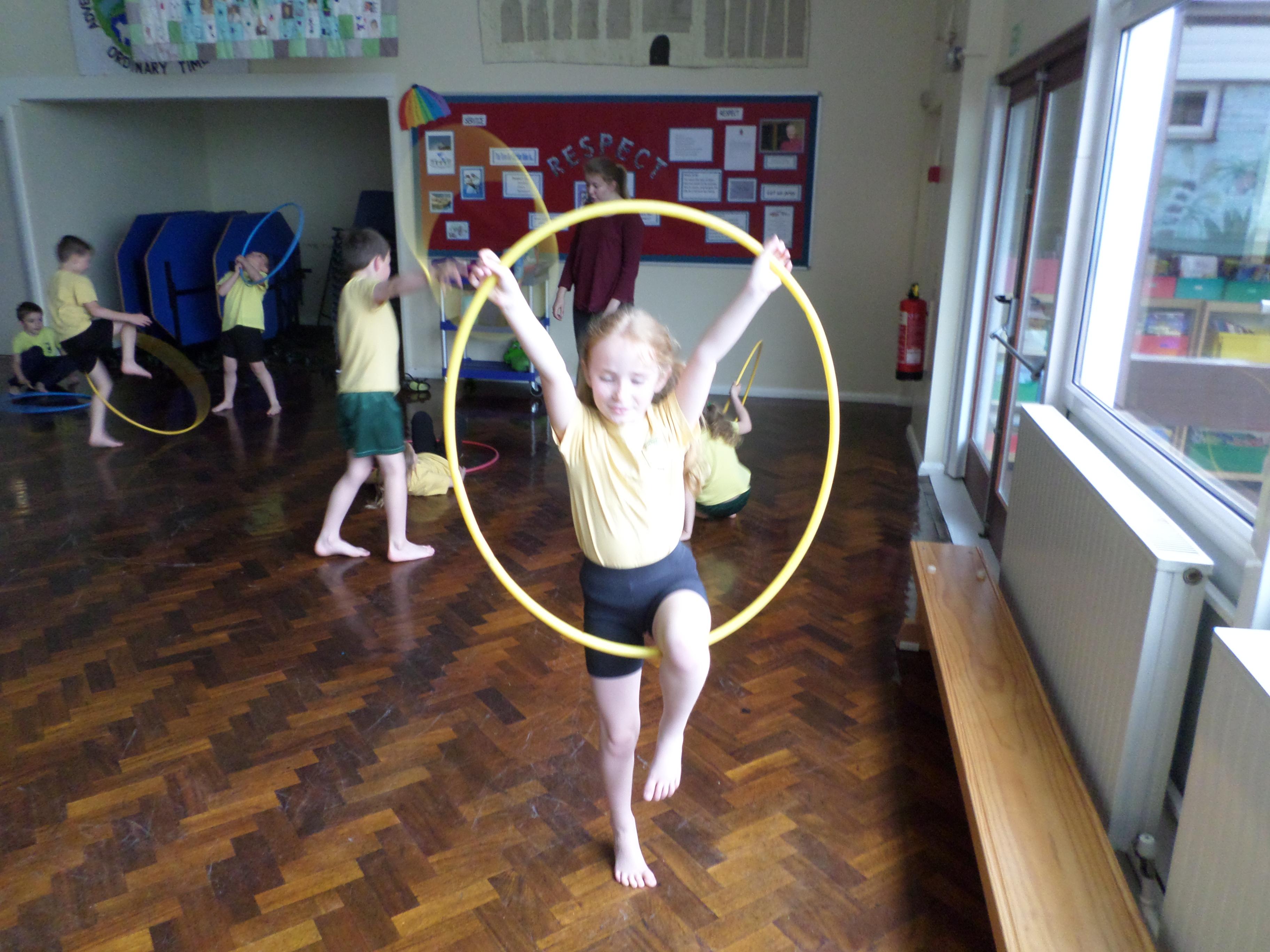 First we watched video clips of gymnasts from around the world and we were amazed at what they could do with a ball or a hoop. They were so flexible and very accurate with their throwing and catching. Then we tried it ourselves. The balls were very tricky to control but we had greater success with the hoops.