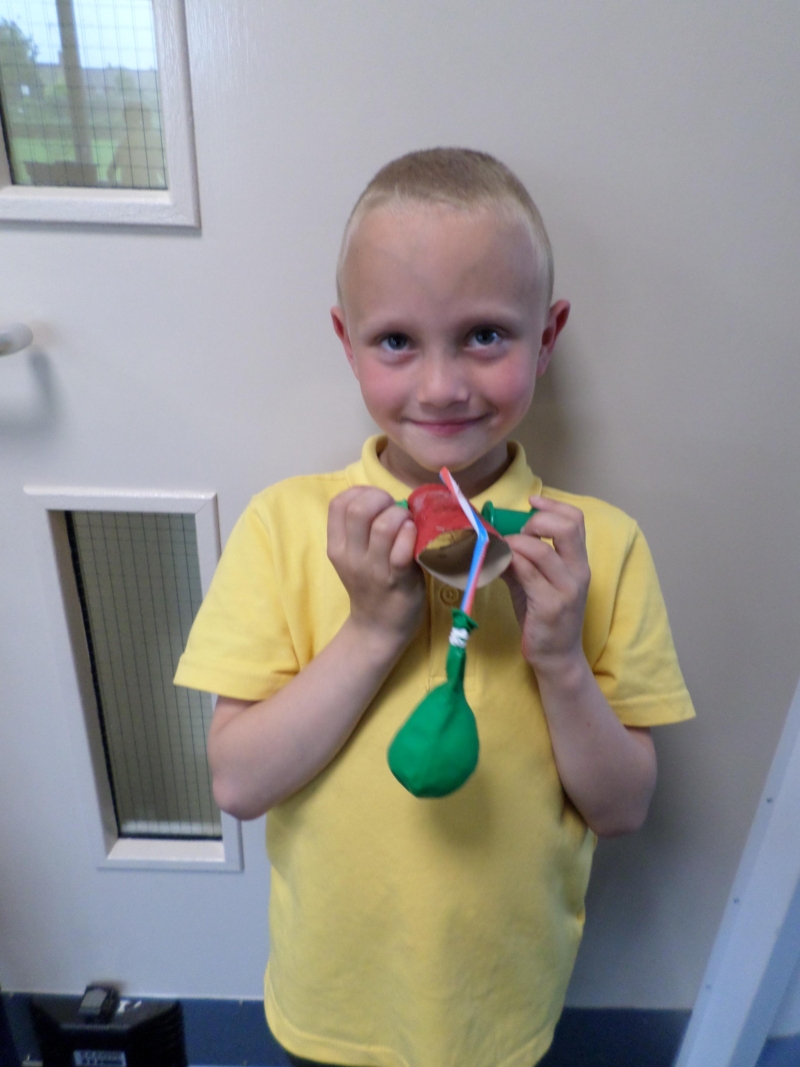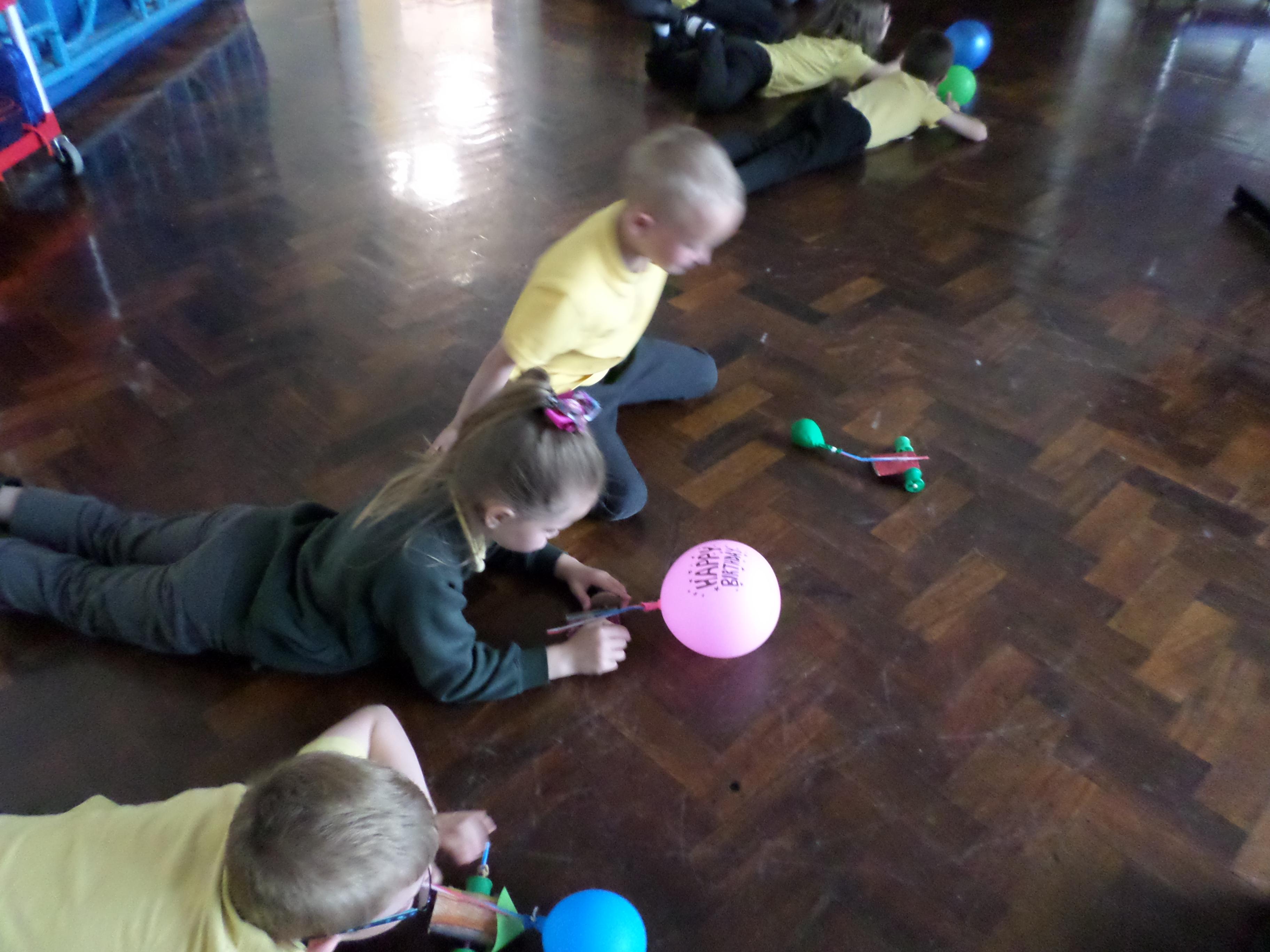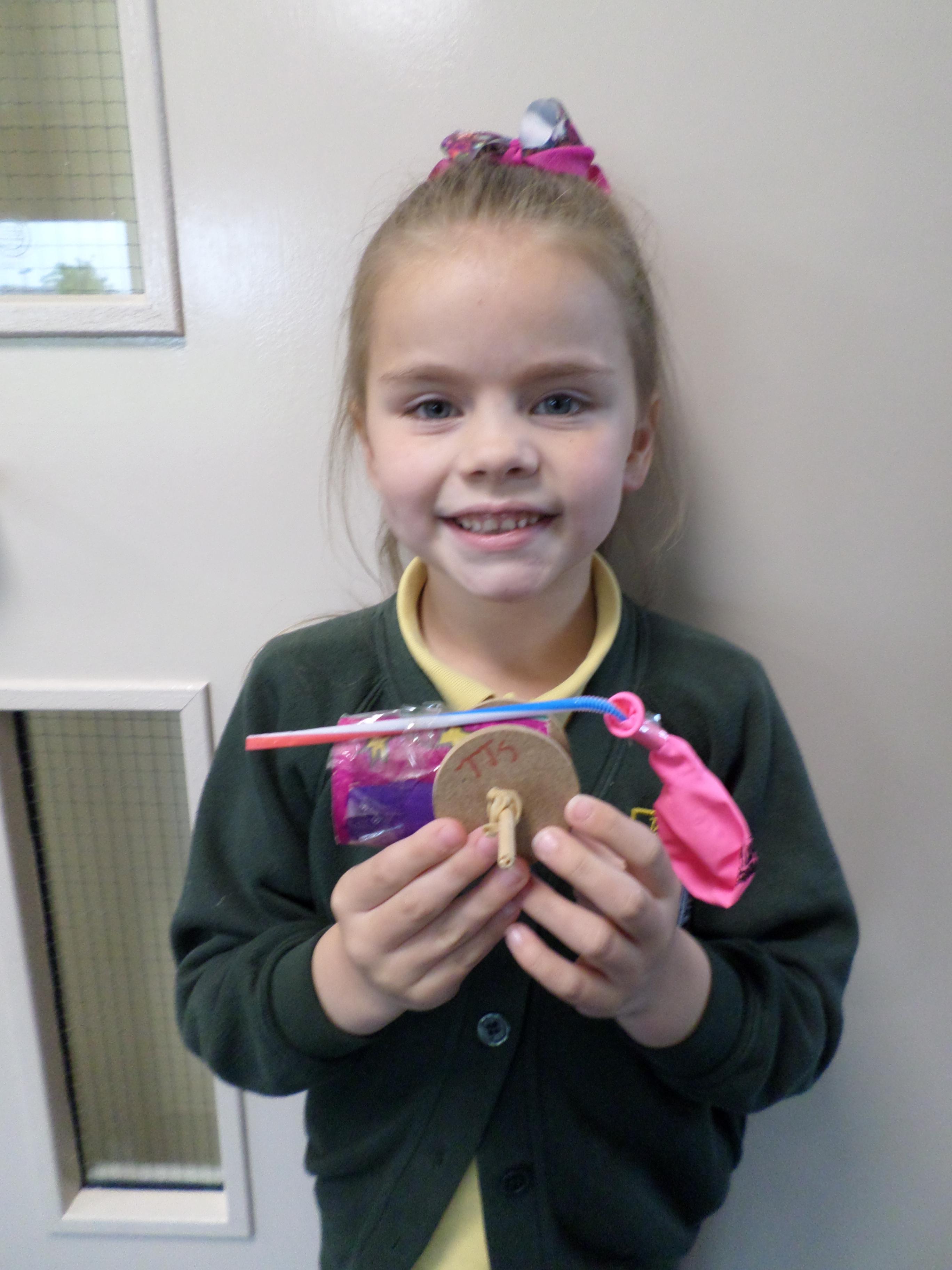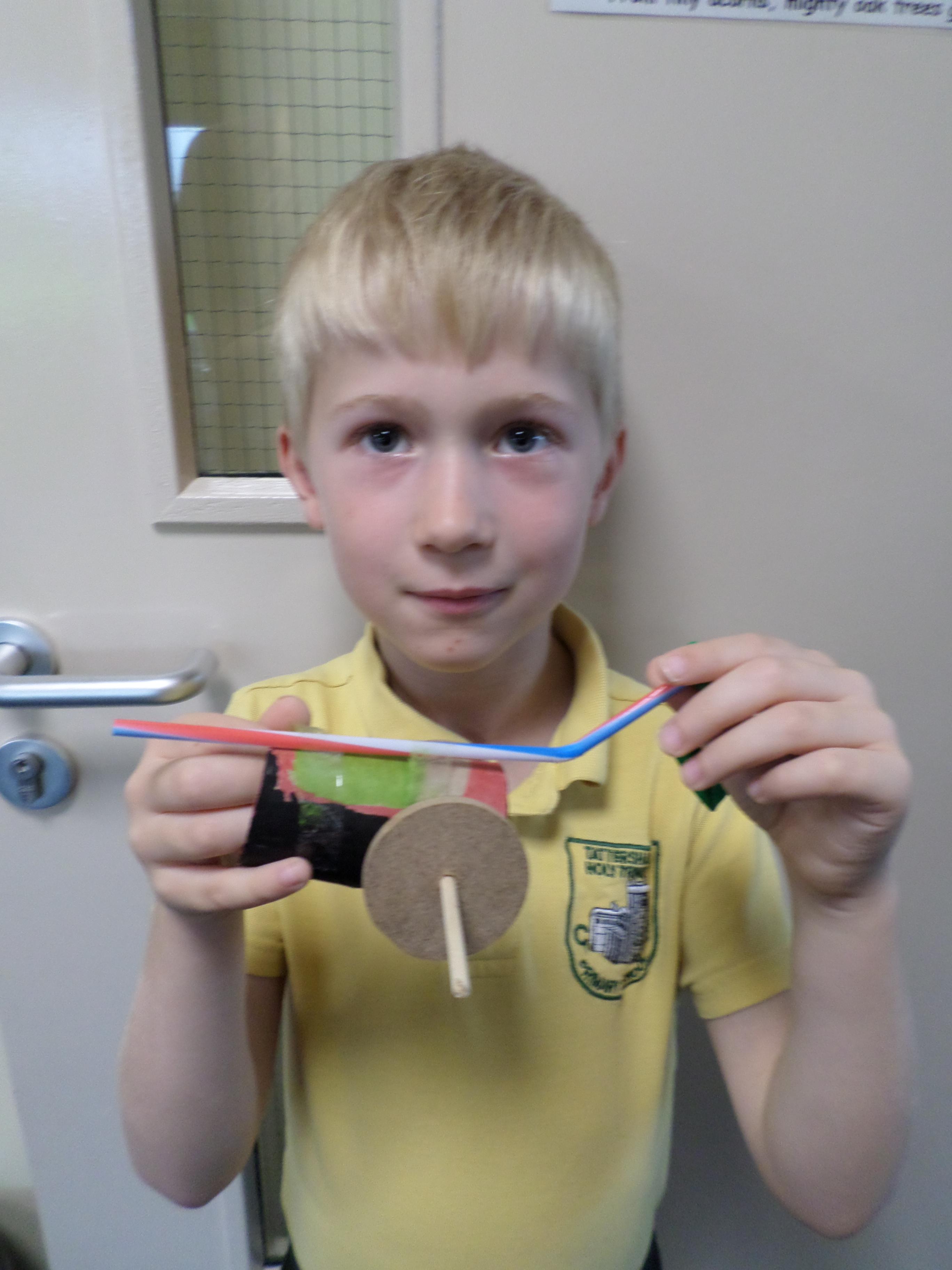 We followed instructions to build balloon cars and then investigated how to adapt and adjust them to make them work better. It was a challenge!! We tried different wheels, different axles, with nose cones, without nose cones, making the chassis parallel with weights inside and many more ways too. We only had limited success but it was fun making them. The children then took them home where some of them have continued to make design adjustments and then bring them back in. So far 4 straws works the best!