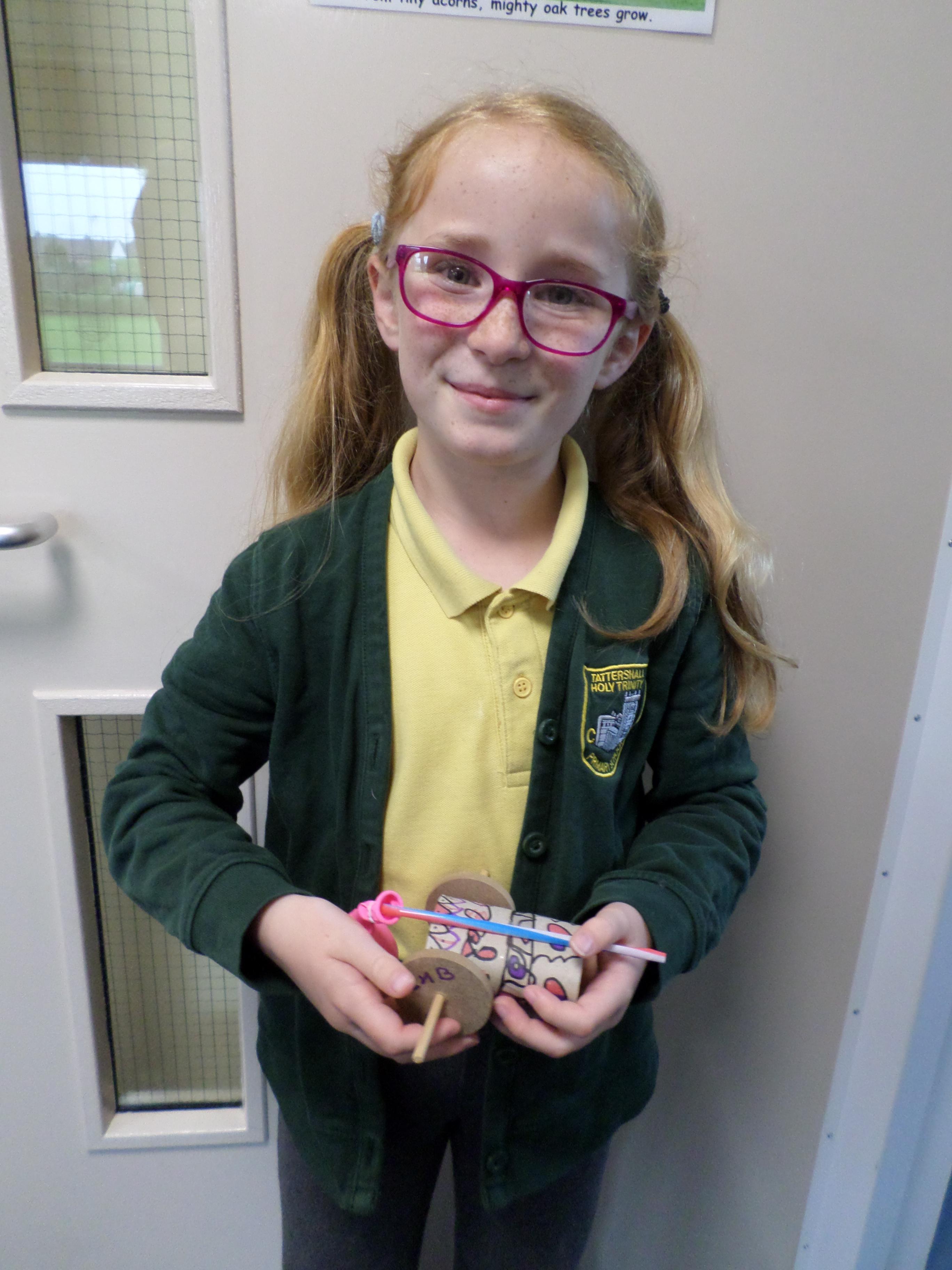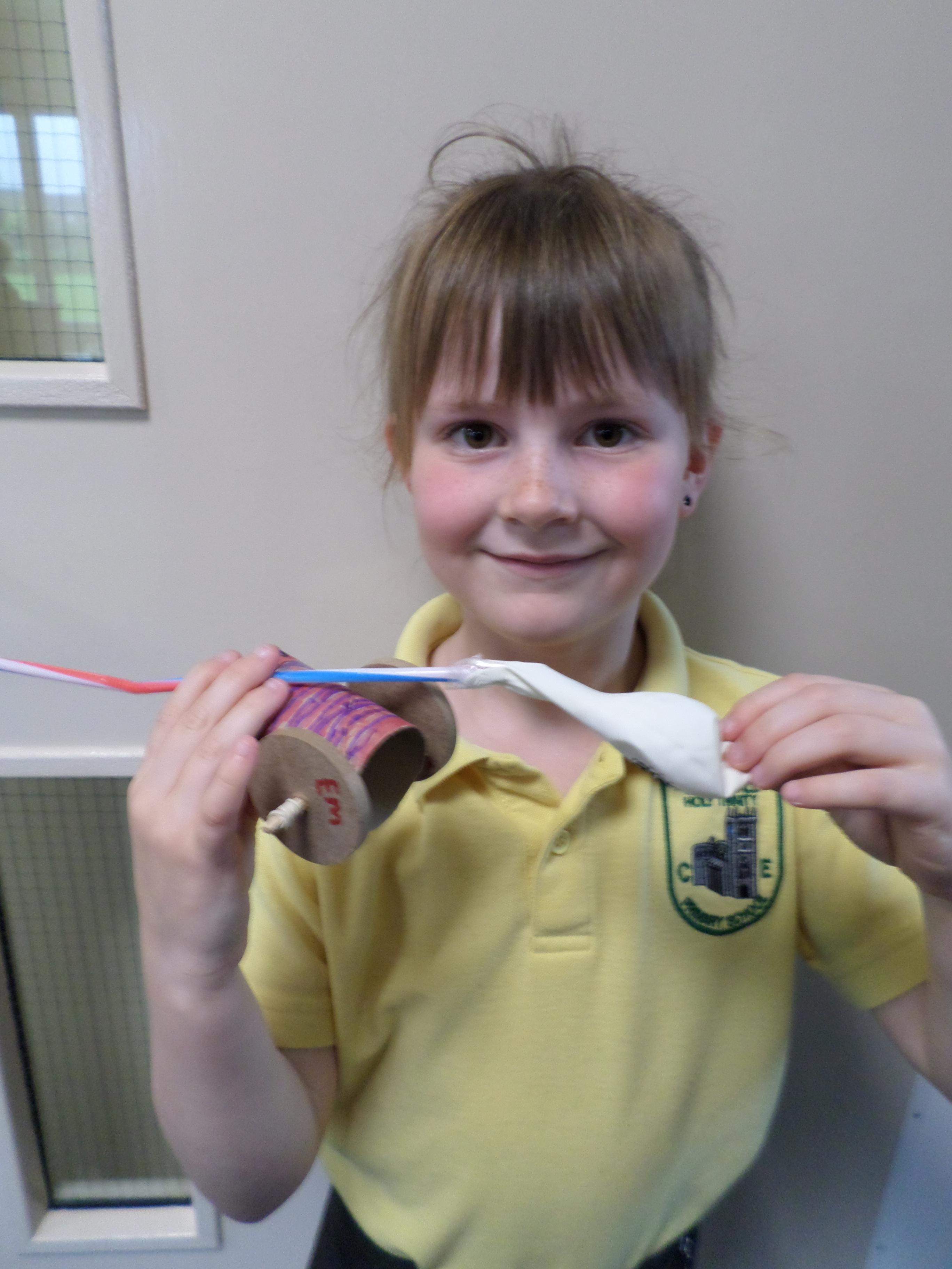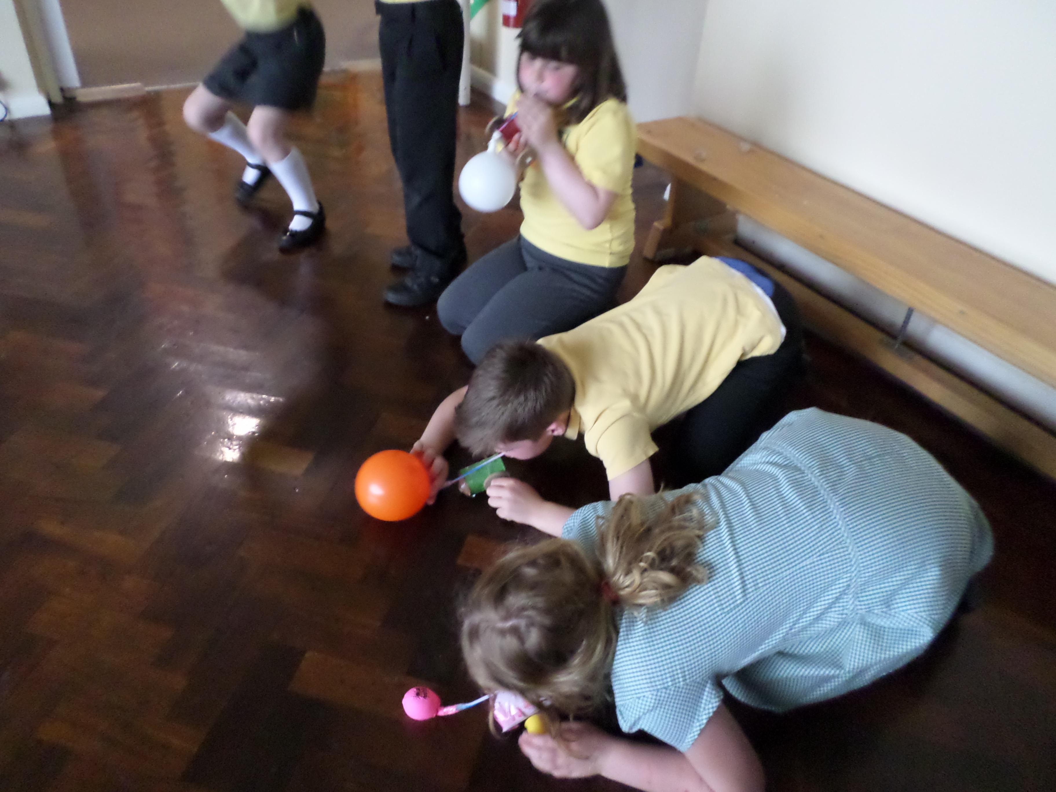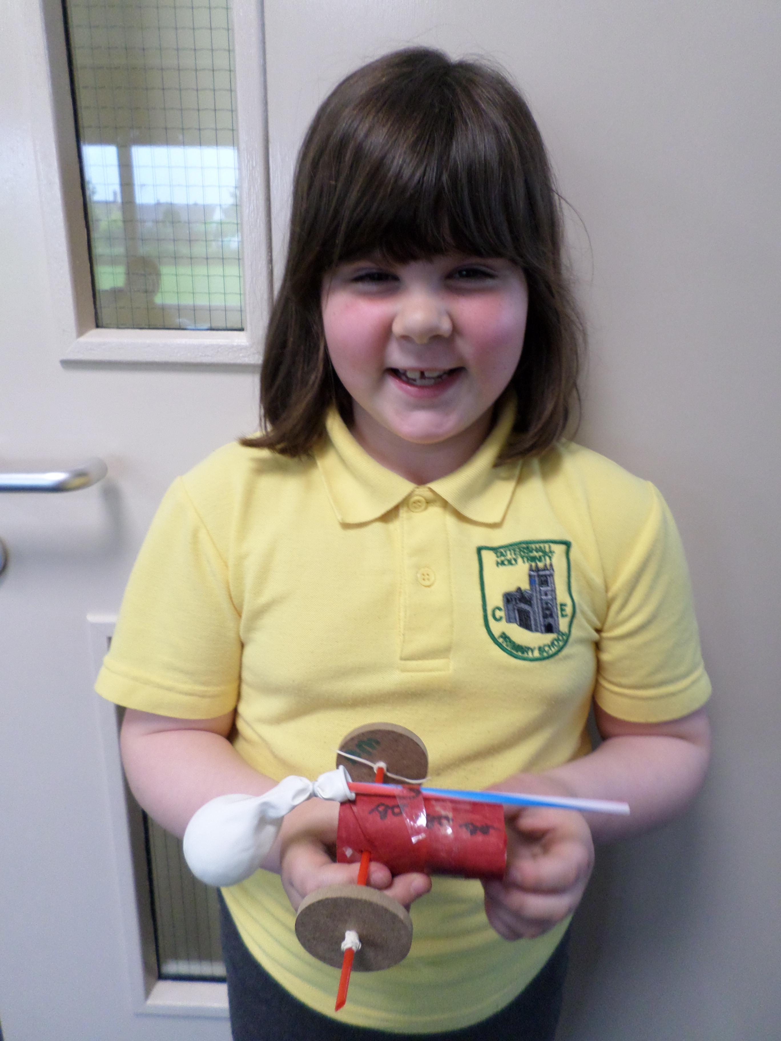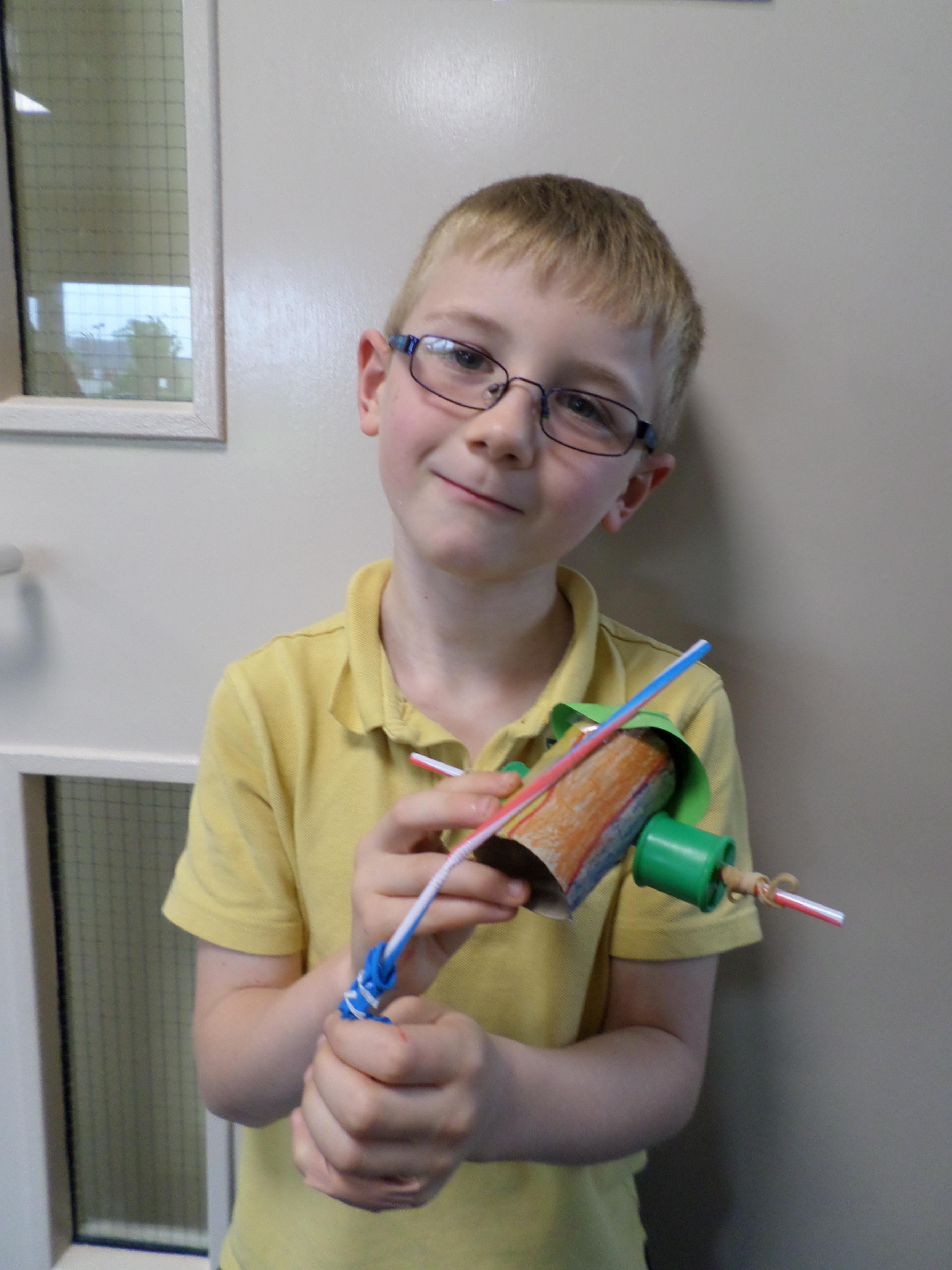We followed instructions to build balloon cars and then investigated how to adapt and adjust them to make them work better. It was a challenge!! We tried different wheels, different axles, with nose cones, without nose cones, making the chassis parallel with weights inside and many more ways too. We only had limited success but it was fun making them. The children then took them home where some of them have continued to make design adjustments and then bring them back in. So far 4 straws works the best!