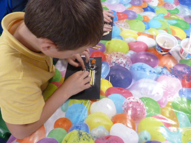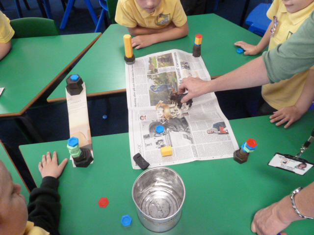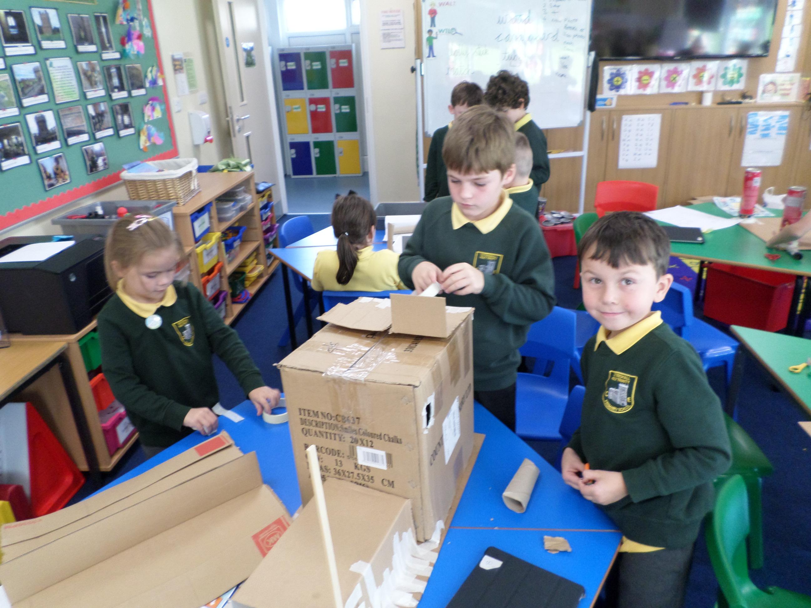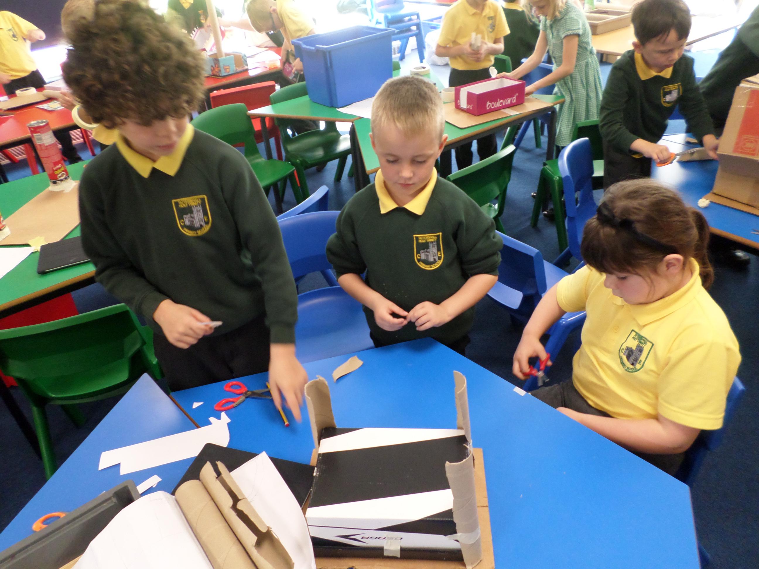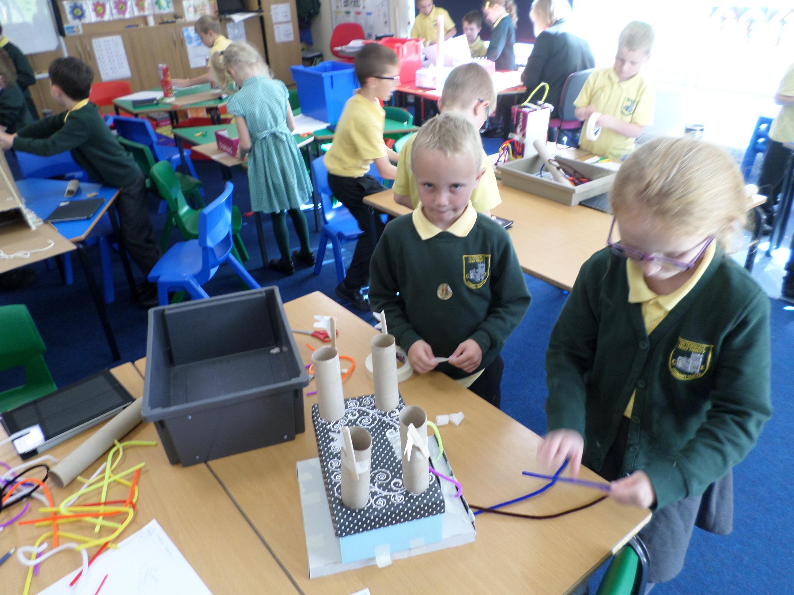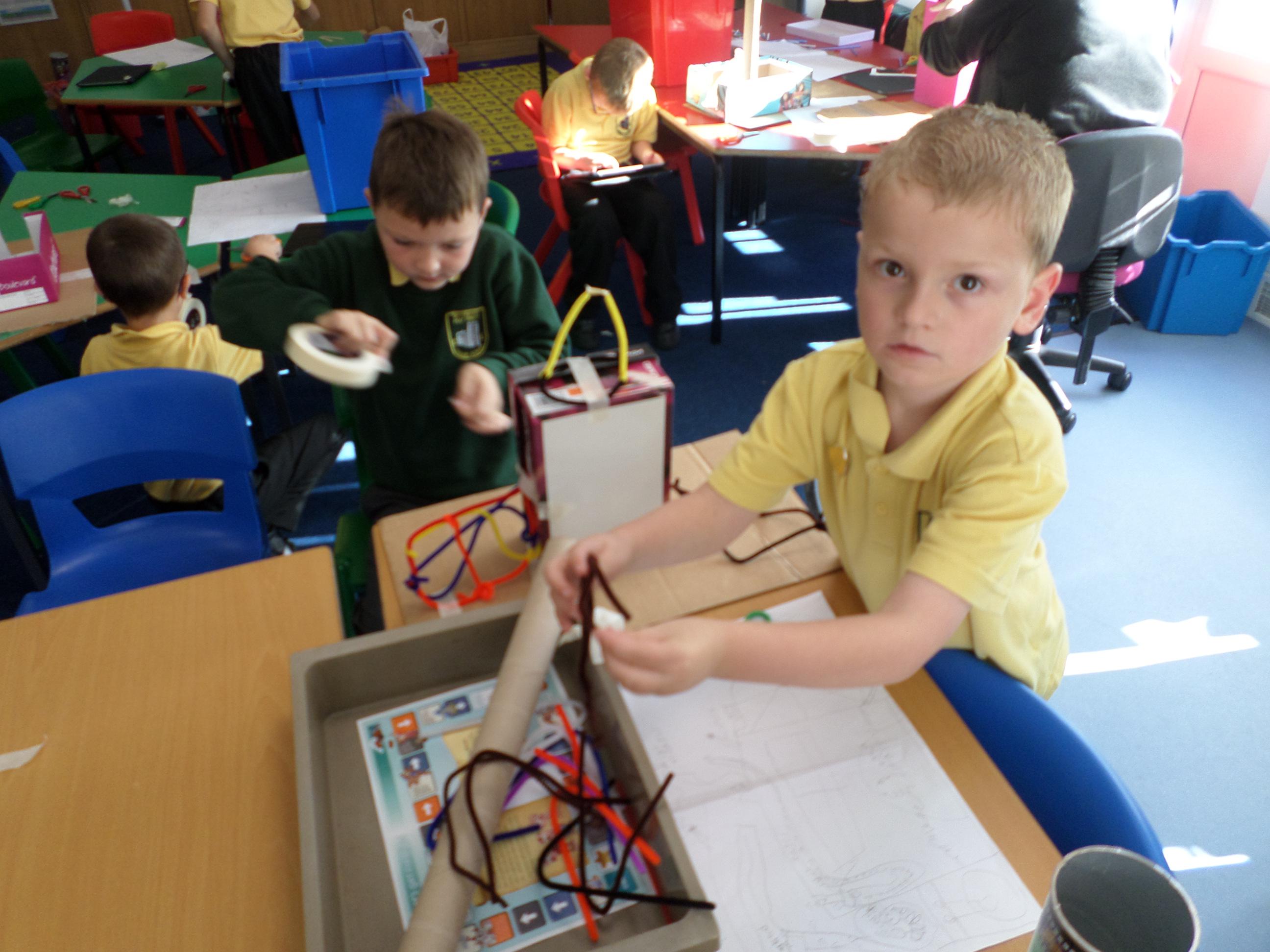 We followed instructions to build balloon cars and then investigated how to adapt and adjust them to make them work better. It was a challenge!! We tried different wheels, different axles, with nose cones, without nose cones, making the chassis parallel with weights inside and many more ways too. We only had limited success but it was fun making them. The children then took them home where some of them have continued to make design adjustments and then bring them back in. So far 4 straws works the best!