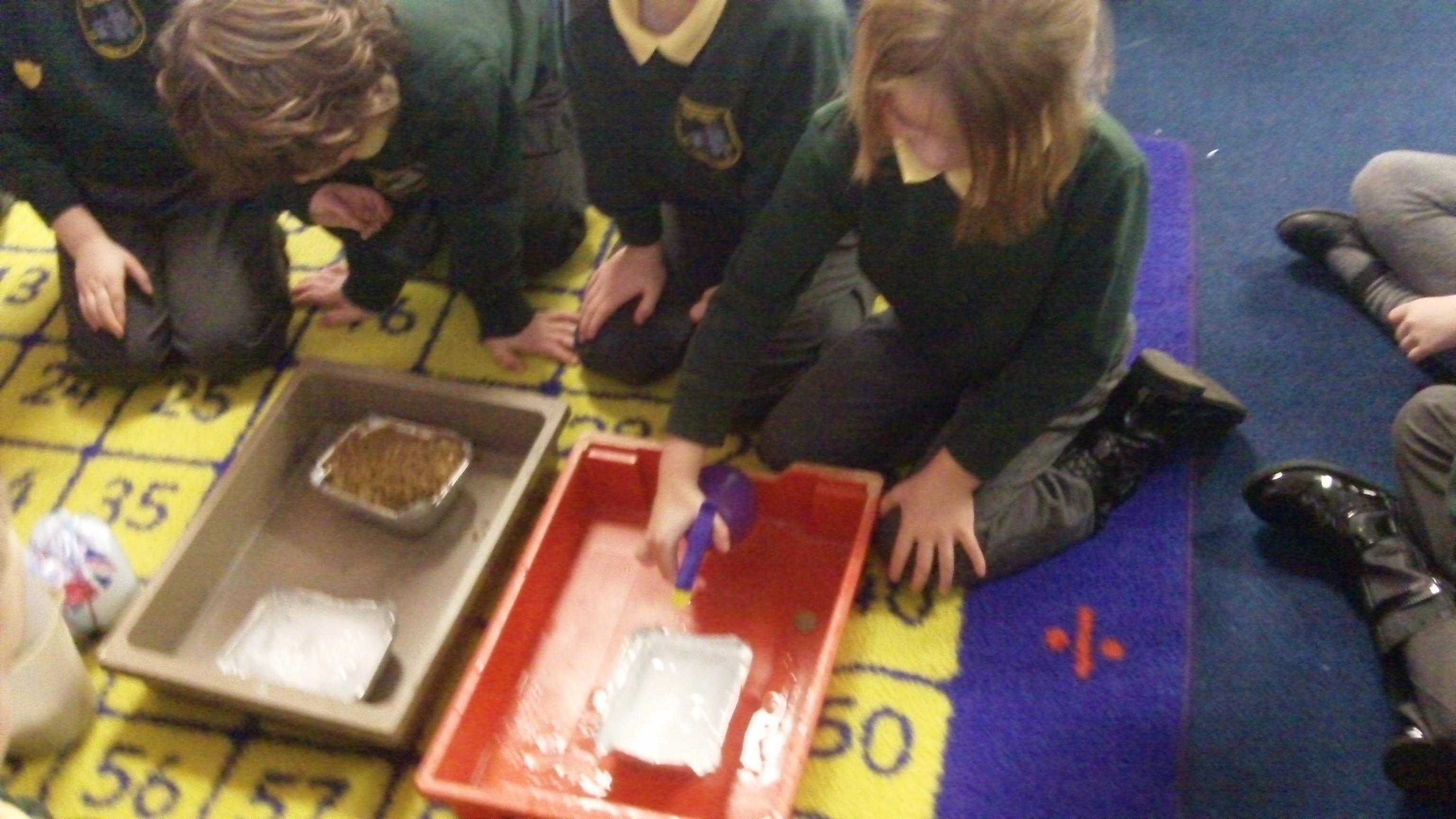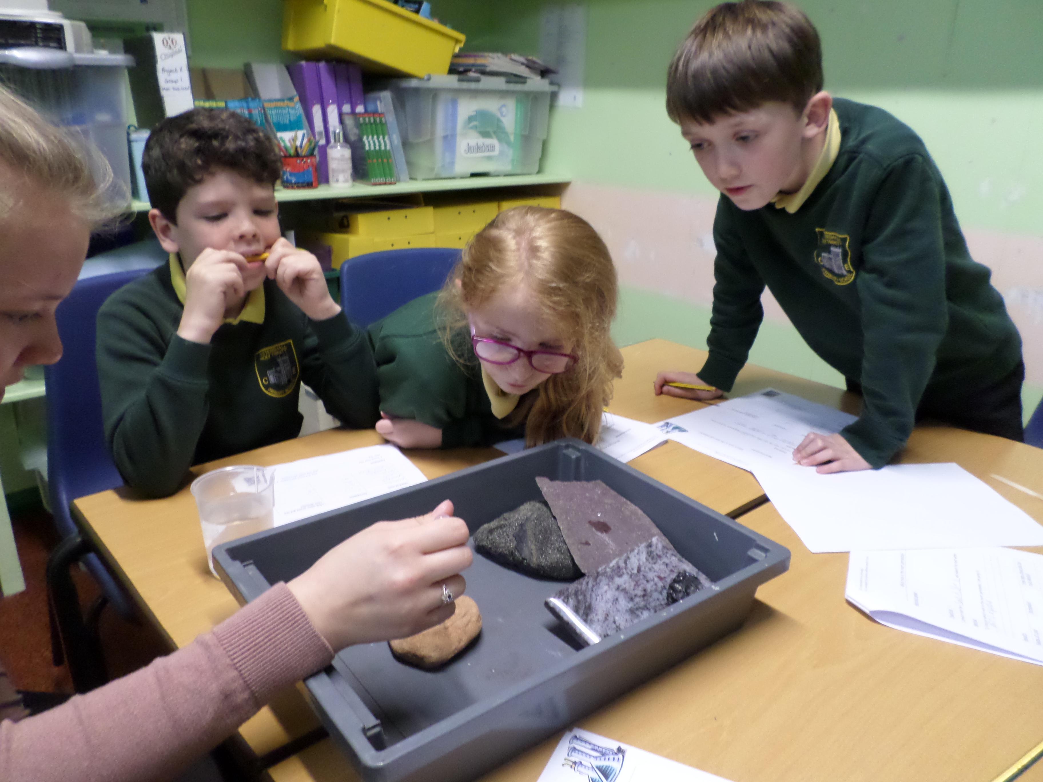 Year 3 pupils investigated the different properties of a variety of rocks. First they sorted them by their properties such as smooth/rough, dull/shiny, natural/manmade. They then tested how hard they were by scraping the surface, they looked at how permeable they are by applying water and used magnifying scopes to identify what they look like close up. After that they learned how different types of rock are formed and used chocolate to make sedimentary and metamorphic of rock. Then they got to eat their rocks!!