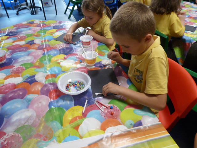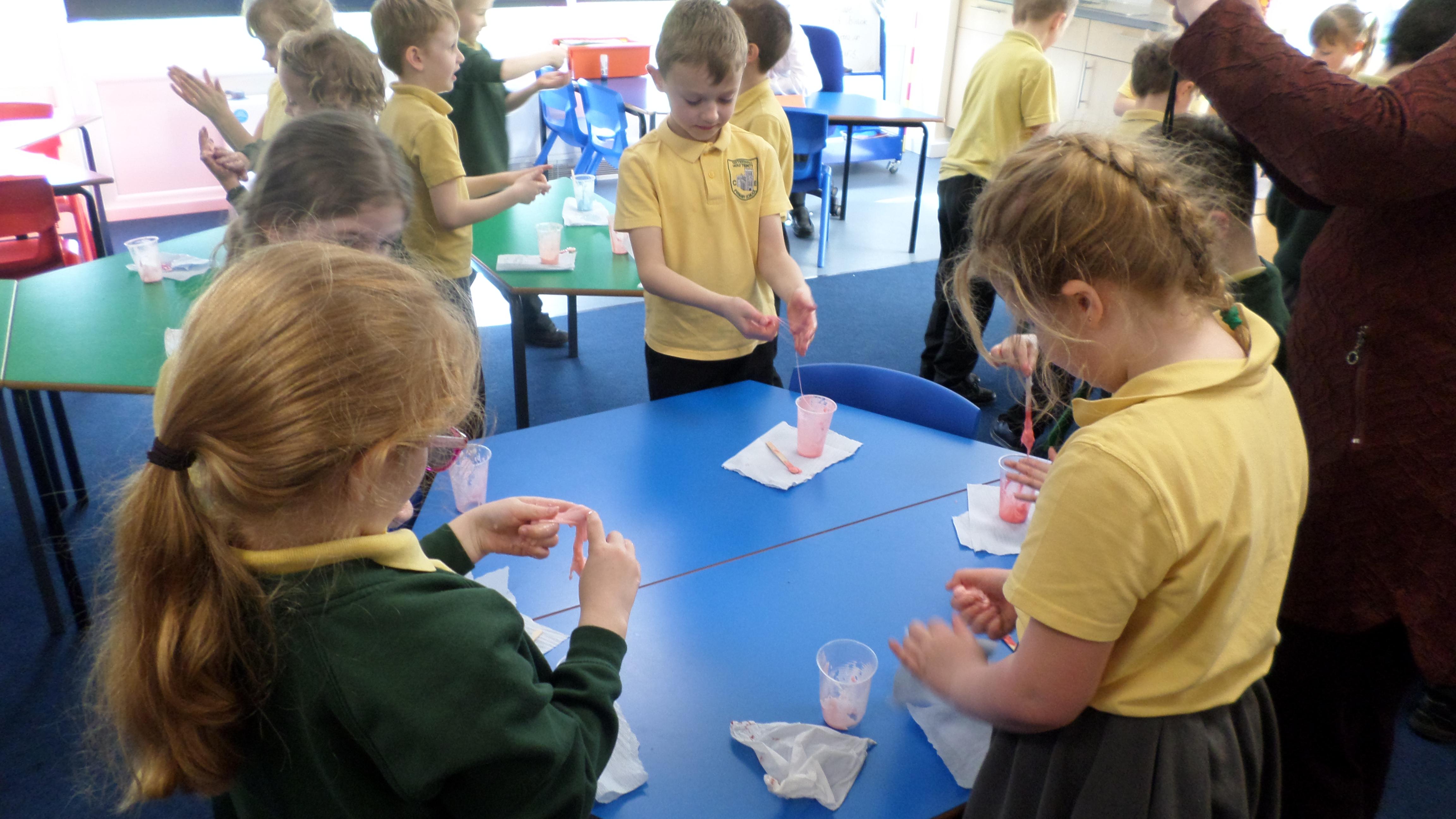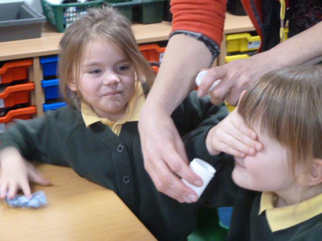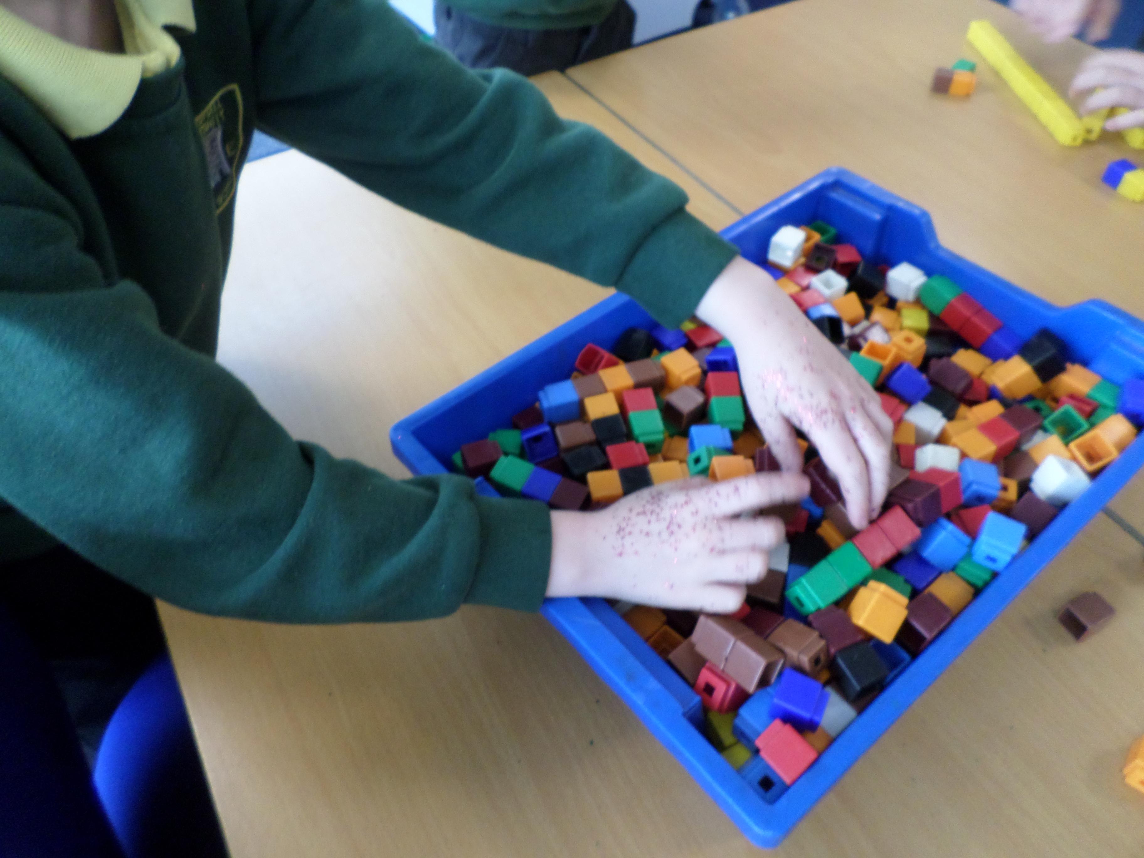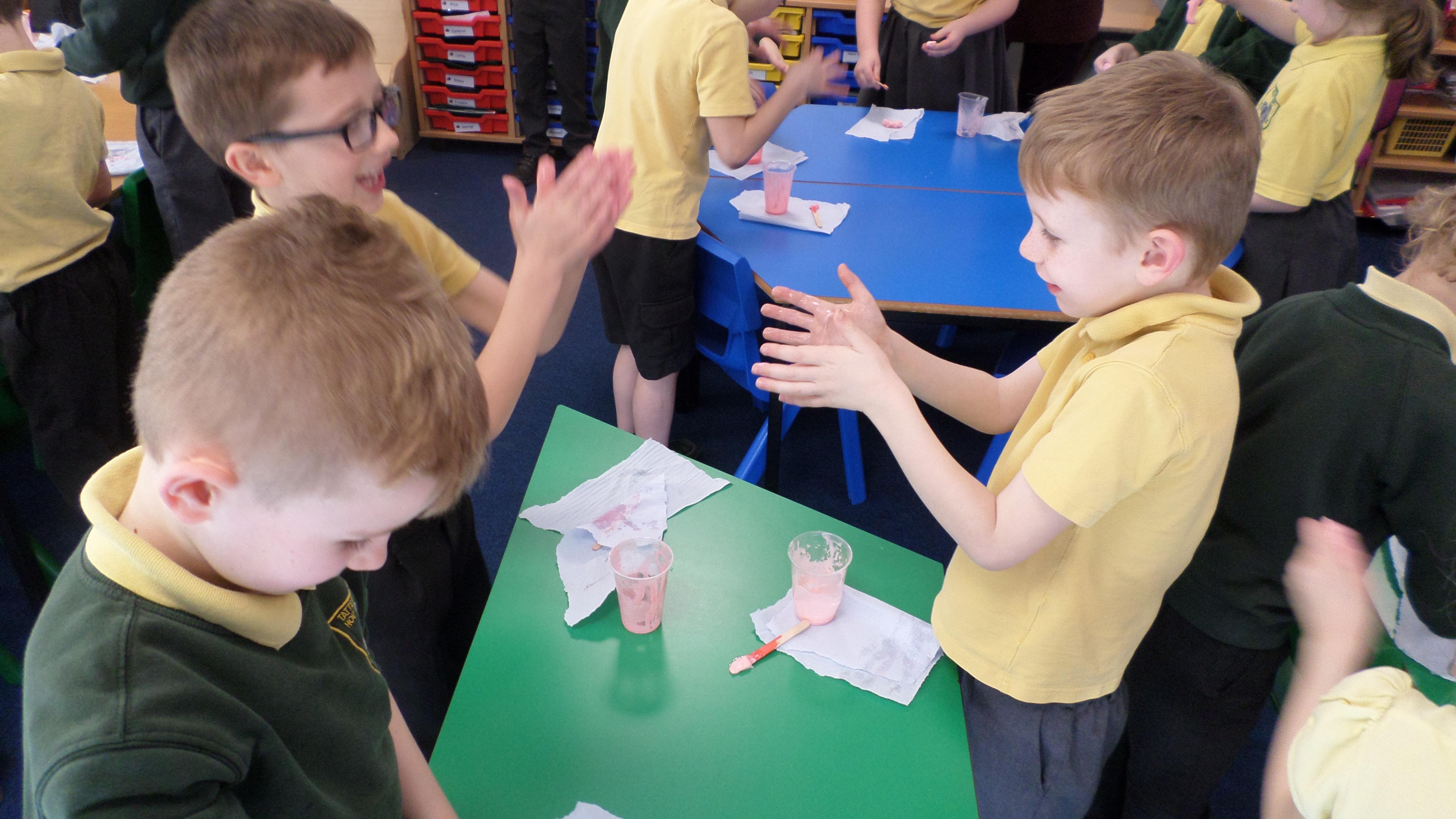 Following a hygiene discussion about the different ways in which germs can be spread, the Year 2 investigated how germs are spread by touch. We used glitter to represent the germs and then carried on with some normal activities such as sorting cards, colouring and using maths equipment. After we observed where and how far the glitter had spread. It was everywhere! Not only on the equipment they used but also on the chairs and tables, on their clothes, in their hair and even on their trays and learning packs. We then washed our hands and realised how hard it is to get rid of germs unless we wash properly with lots of soap and water. A very enlightening afternoon!