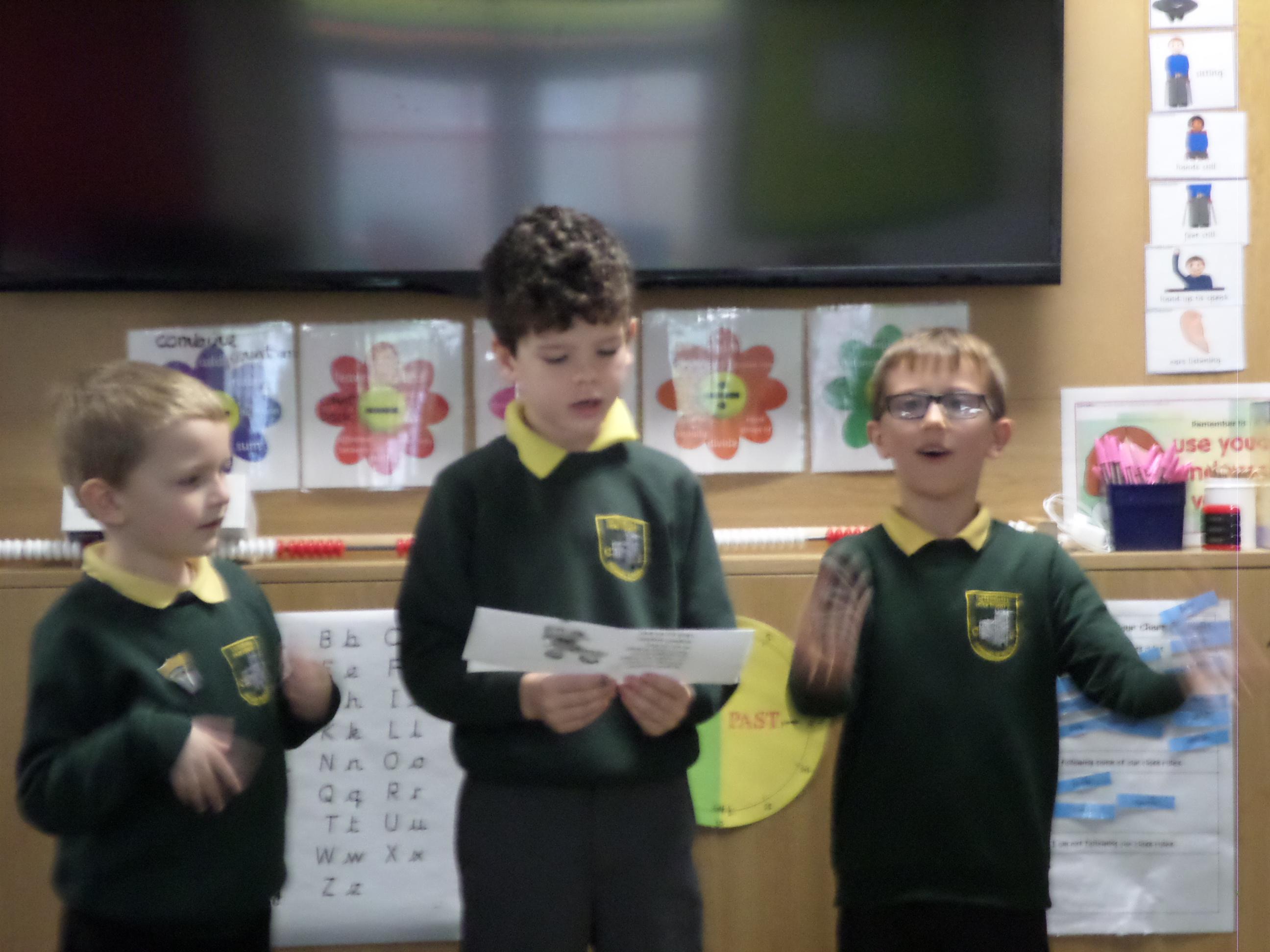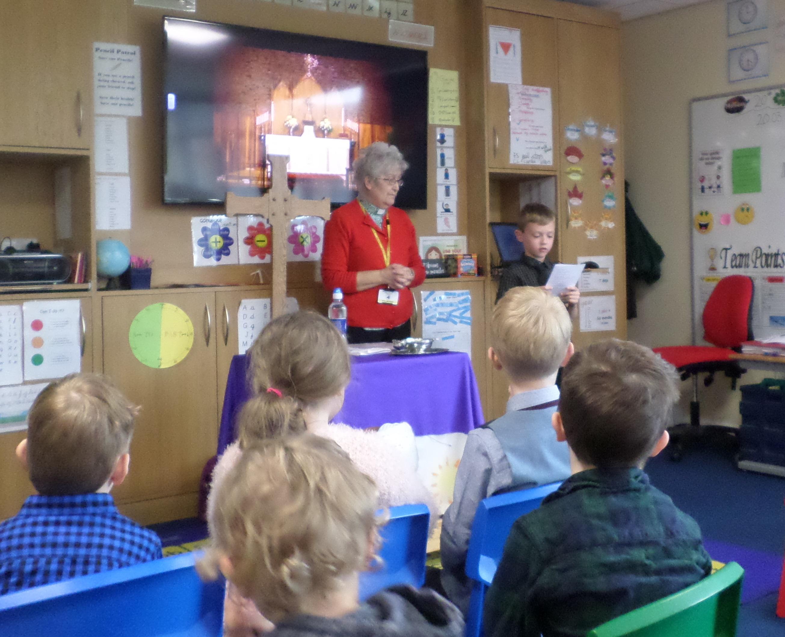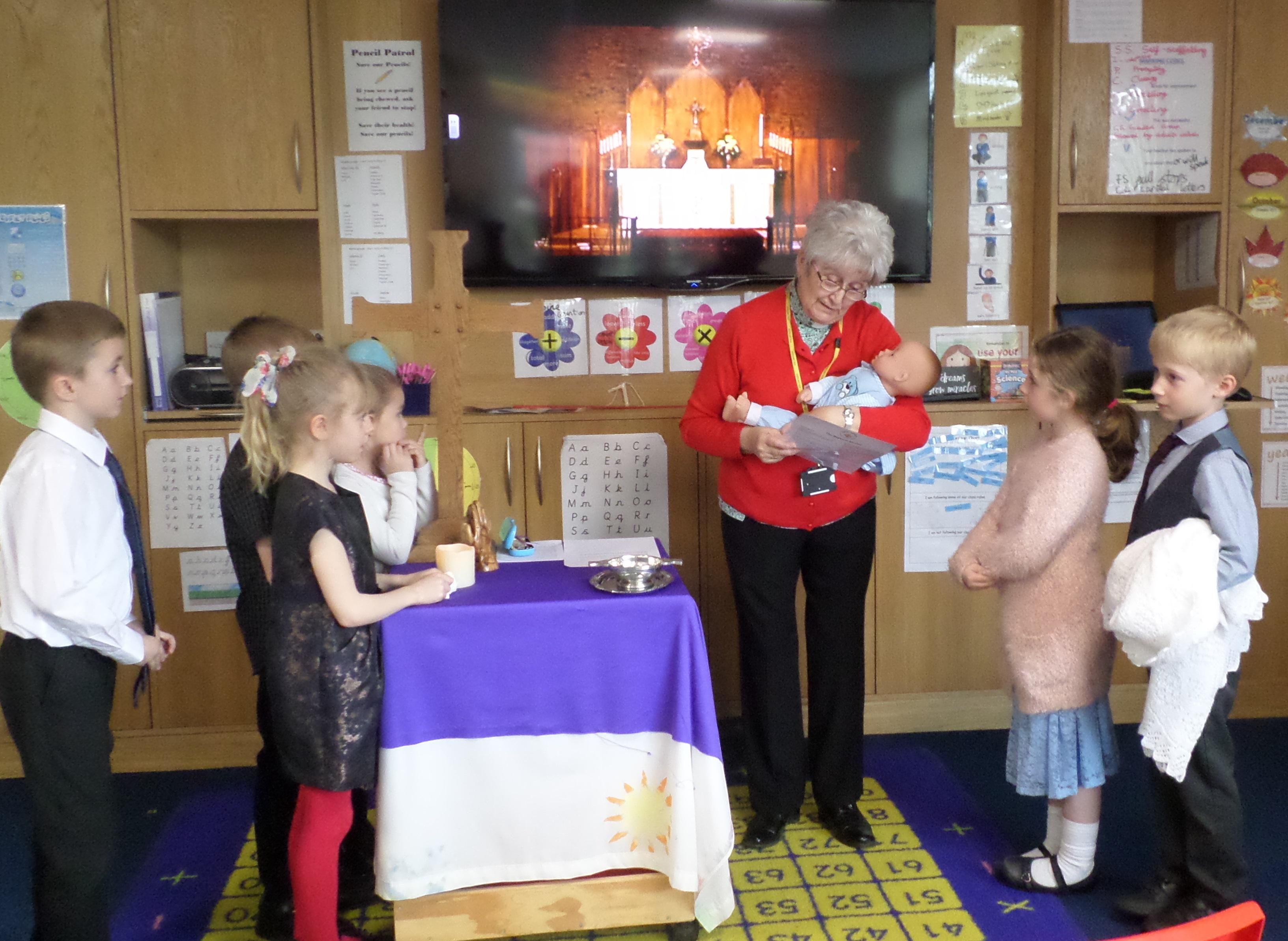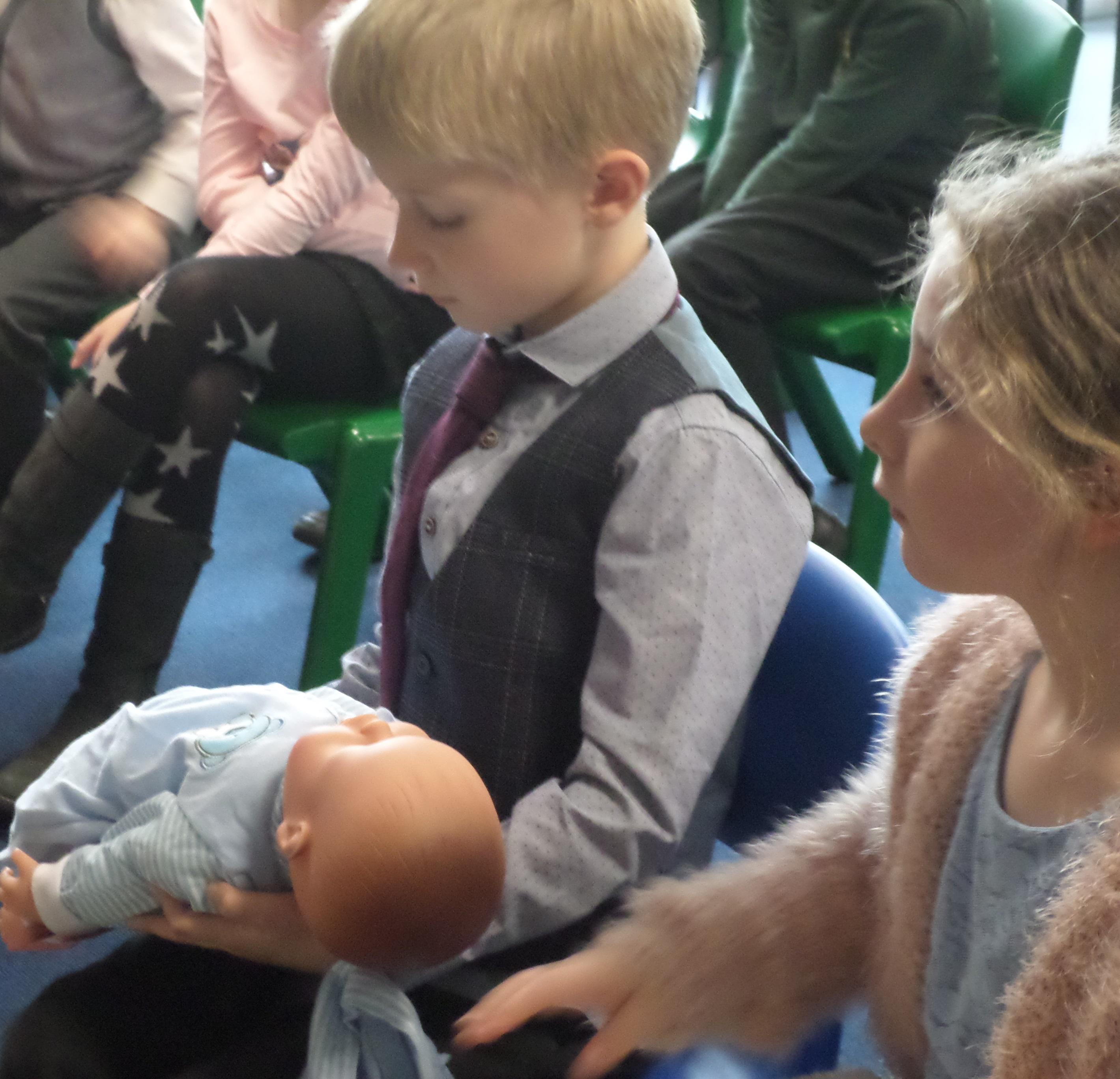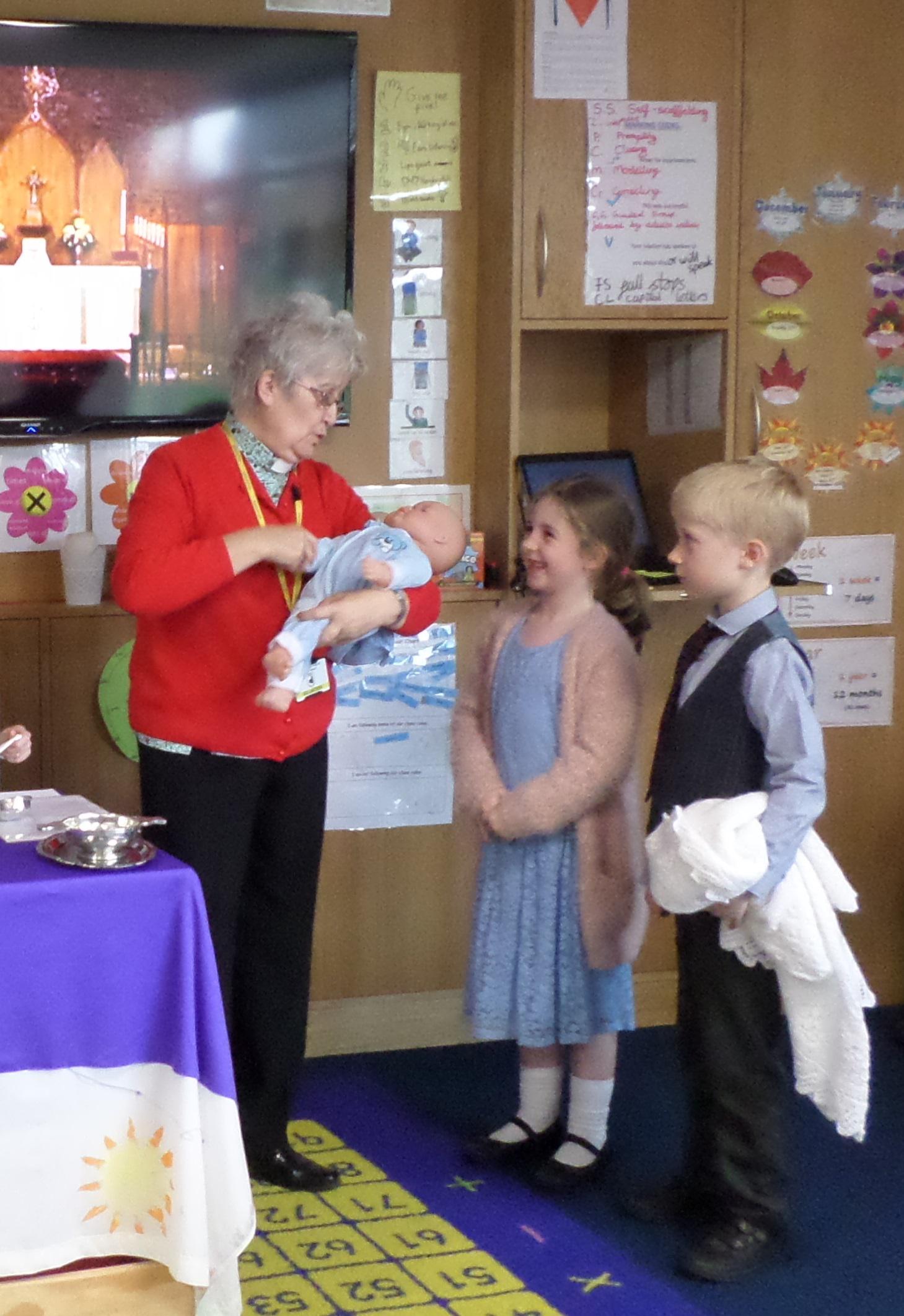 As part of our RE topic of Belonging Oak Class held a mock christening. We were supposed to go to church but, because of the weather, Reverend Margaret very kindly came to us. We dressed up in our best clothes and had parents, god parents and family for the baby, who we called Luke. The service was just like a real one with readings, making promises, the water was blessed, the actual baptism of Luke (who was very well behaved and didn't cry!), lighting the candle and then prayers. The parents were very proud! A huge thank you to Reverend Margaret for making it such a fantastic event.