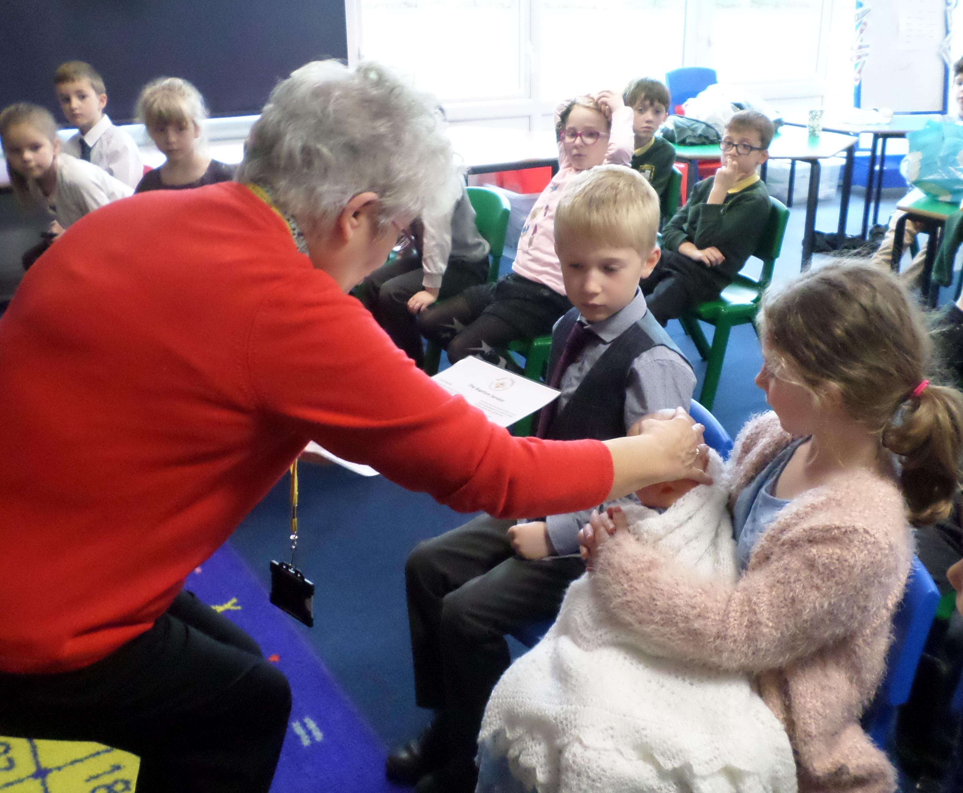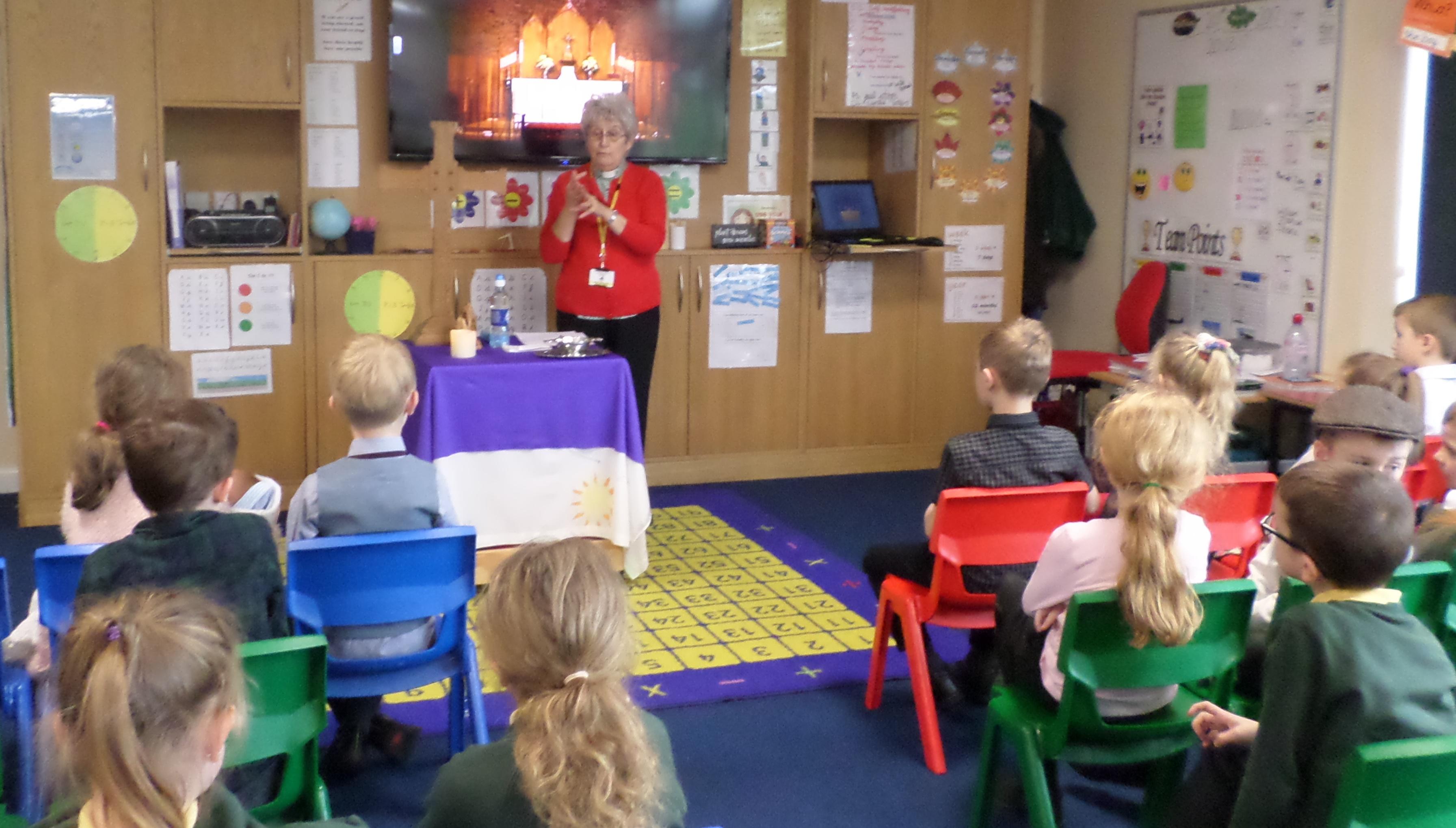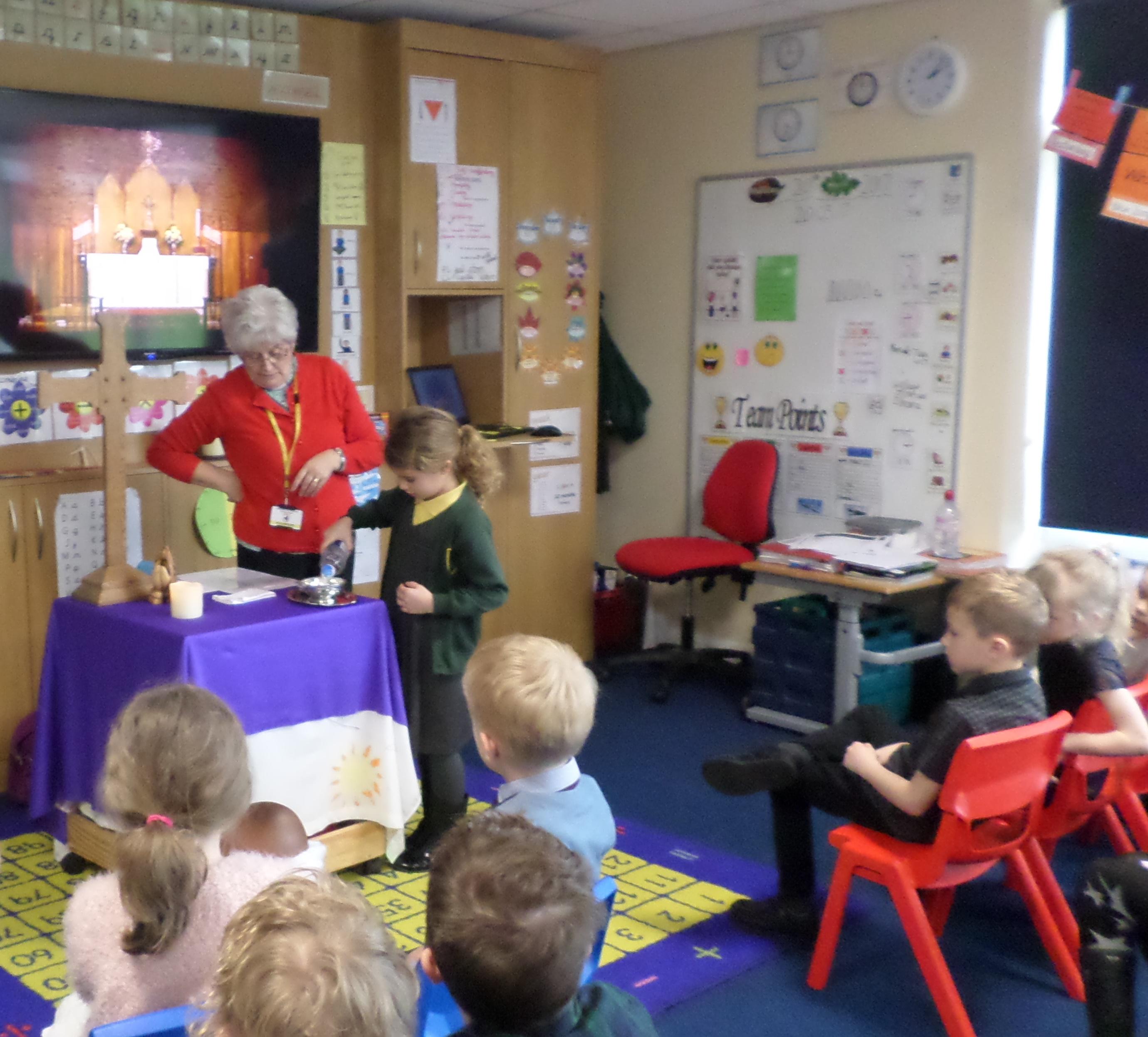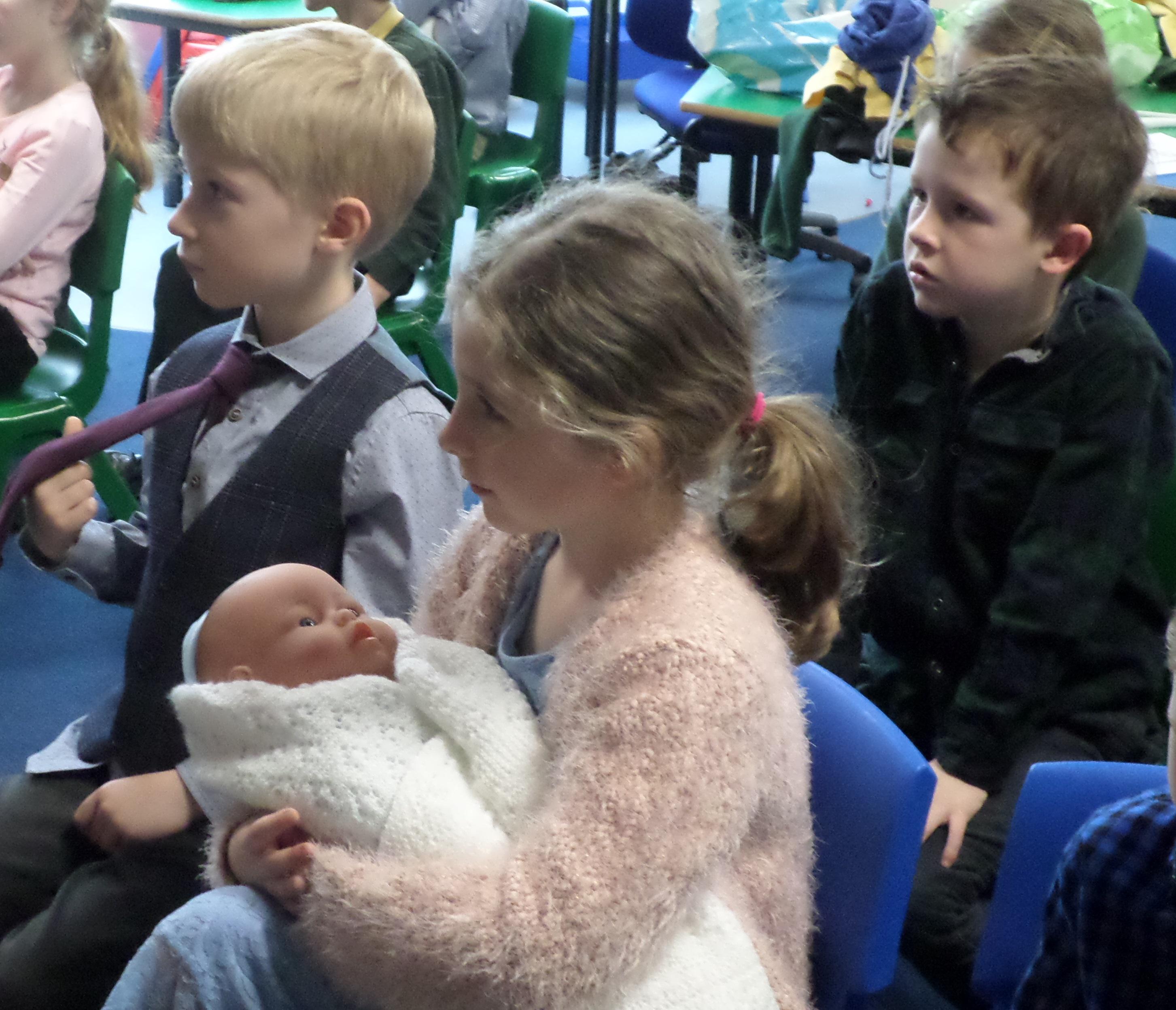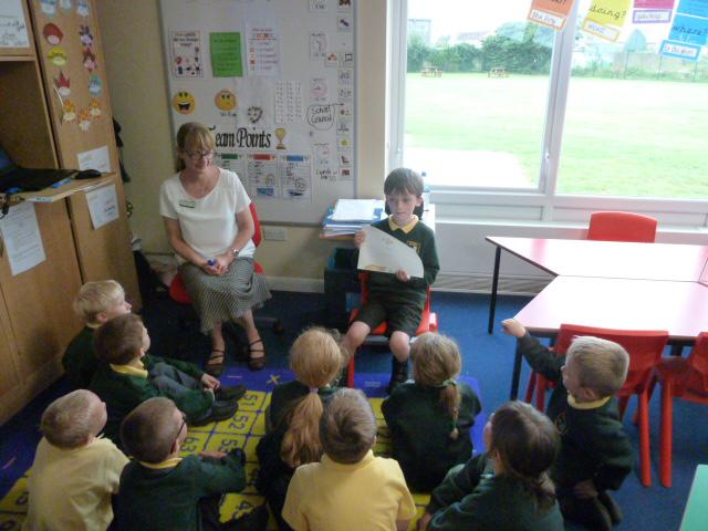 As part of our RE topic of Belonging Oak Class held a mock christening. We were supposed to go to church but, because of the weather, Reverend Margaret very kindly came to us. We dressed up in our best clothes and had parents, god parents and family for the baby, who we called Luke. The service was just like a real one with readings, making promises, the water was blessed, the actual baptism of Luke (who was very well behaved and didn't cry!), lighting the candle and then prayers. The parents were very proud! A huge thank you to Reverend Margaret for making it such a fantastic event.