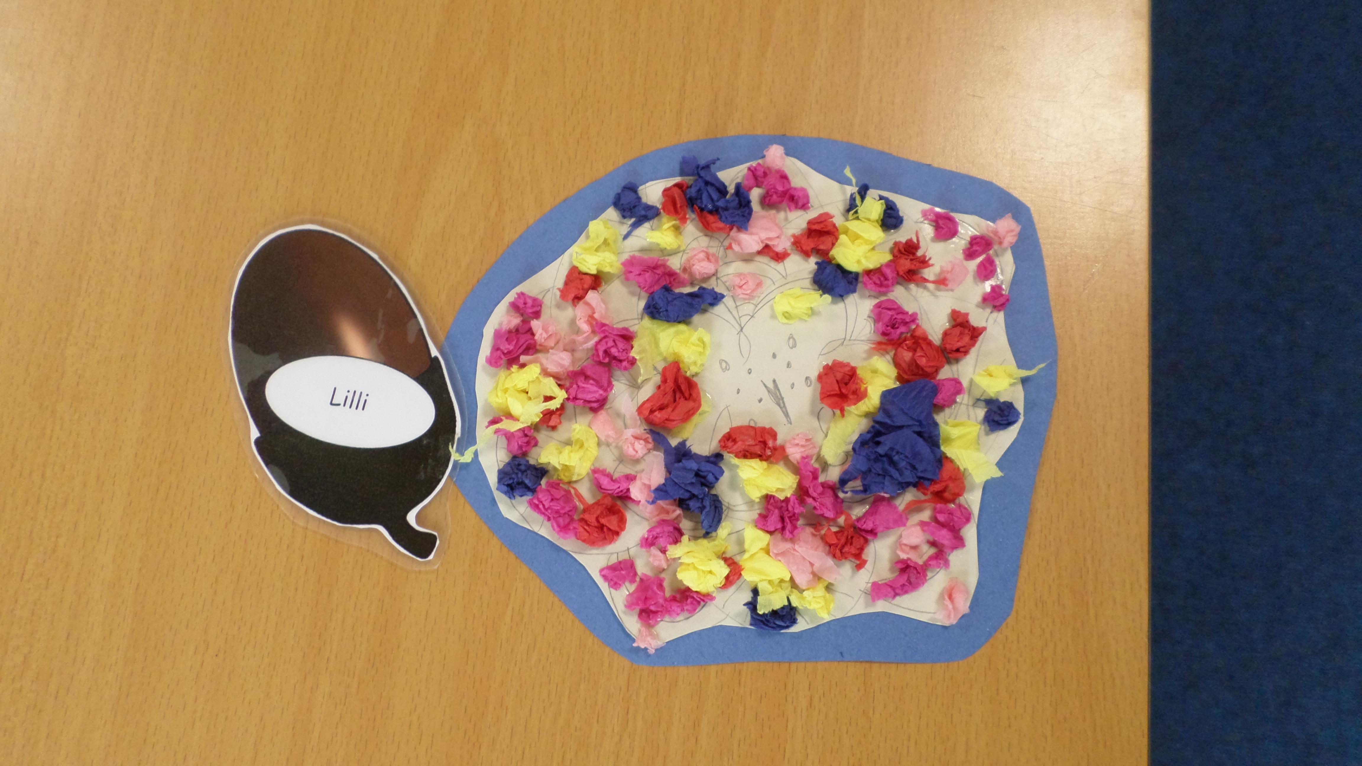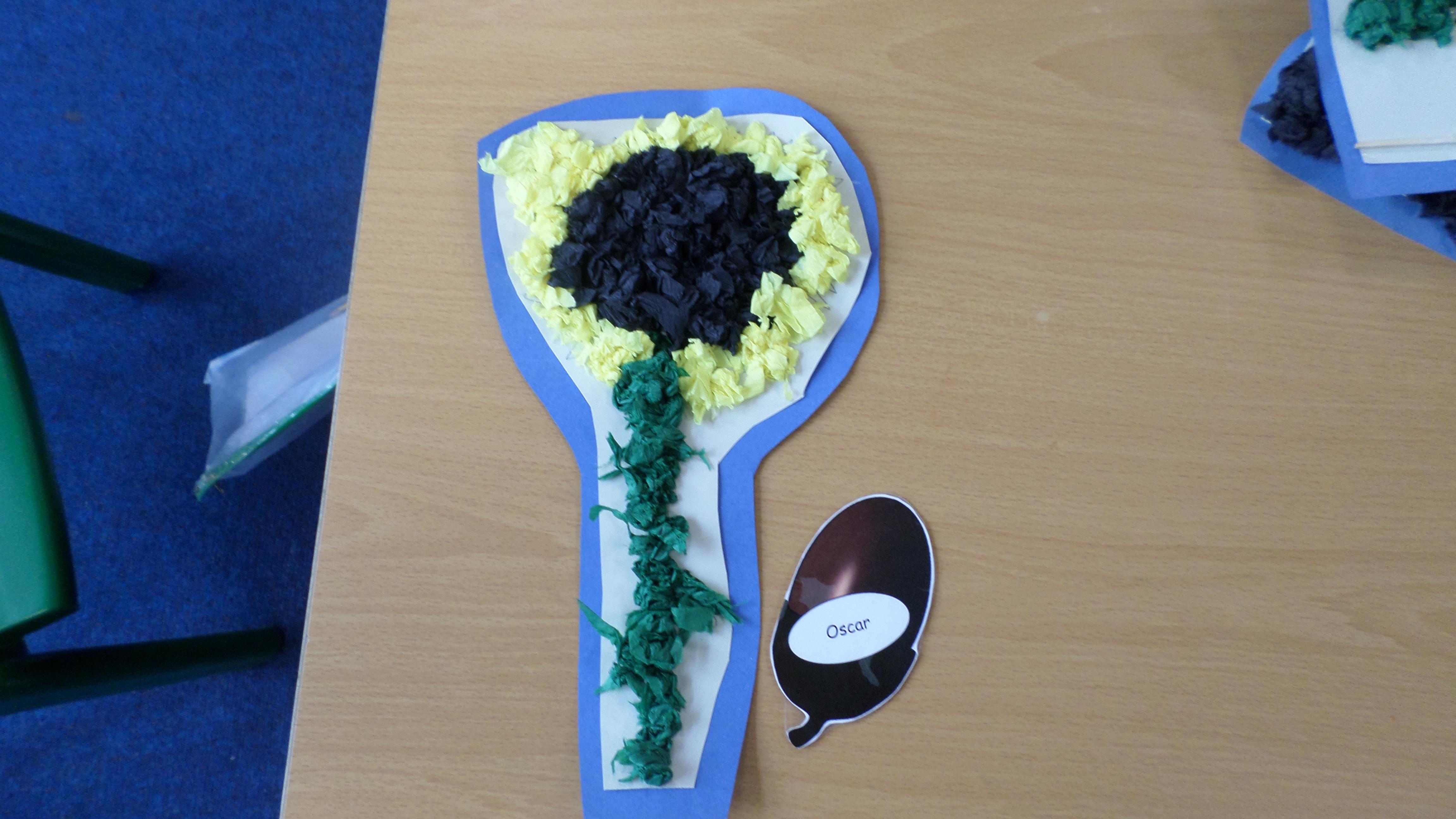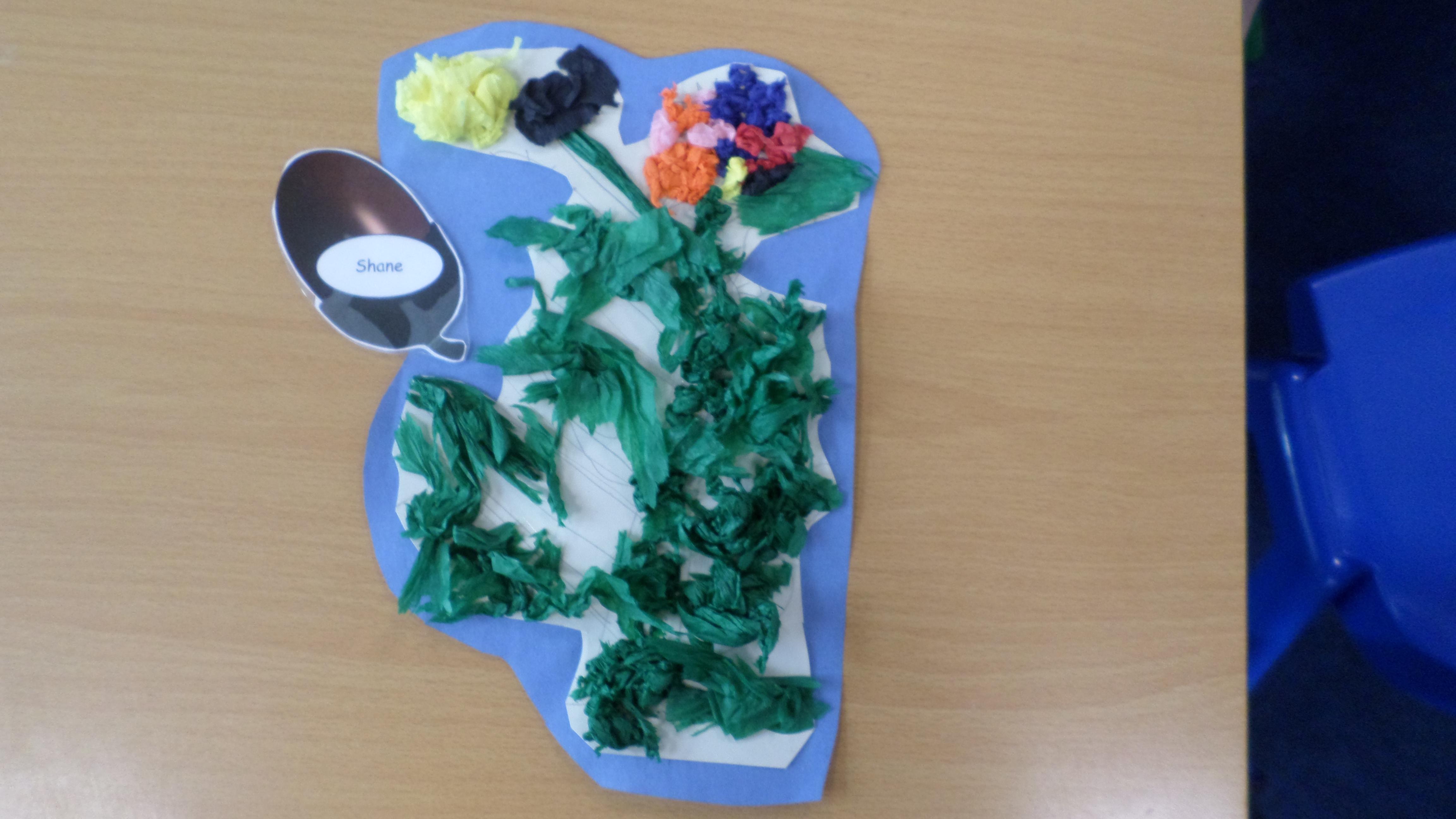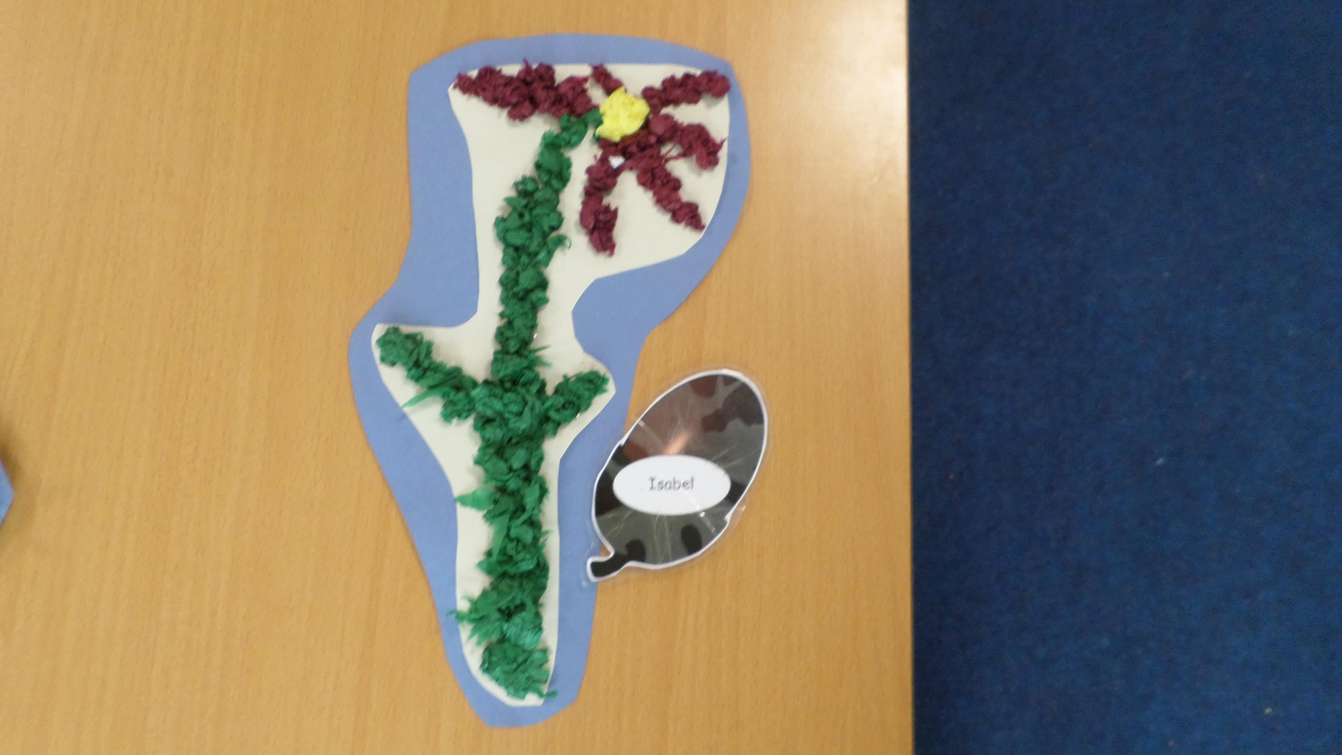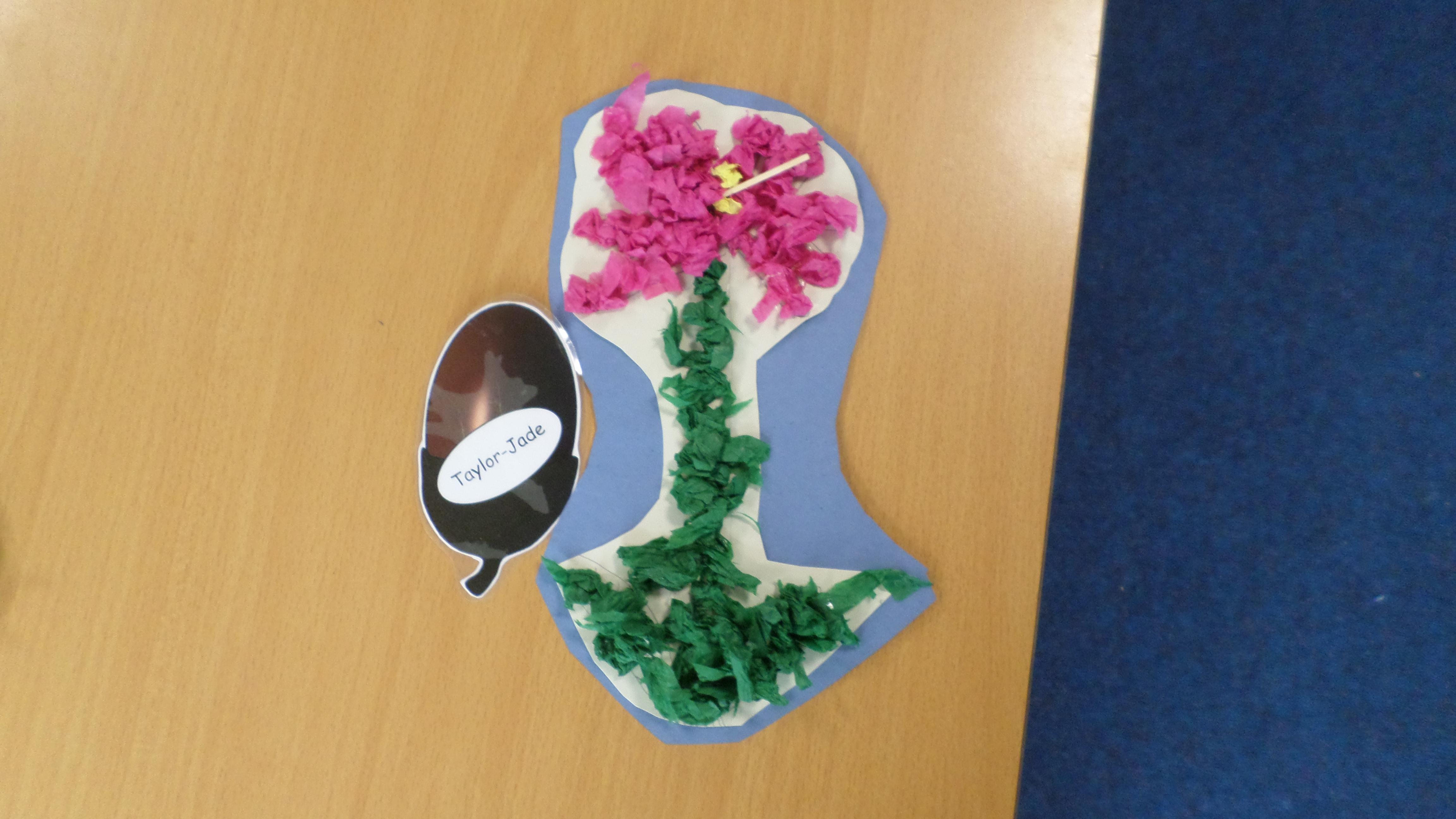 Oak Class had great fun learning about how to make a collage using tiny pieces of torn and rolled tissue paper. We designed and drew our own flower, then applied tissue paper balls by using lots of glue. Sticky stuff! Some of us even added pollen, stigma and stamen to make them look realistic and to show our new science knowledge. It took a lot of patience and at times we helped each other too, so it also taught us good team work.
