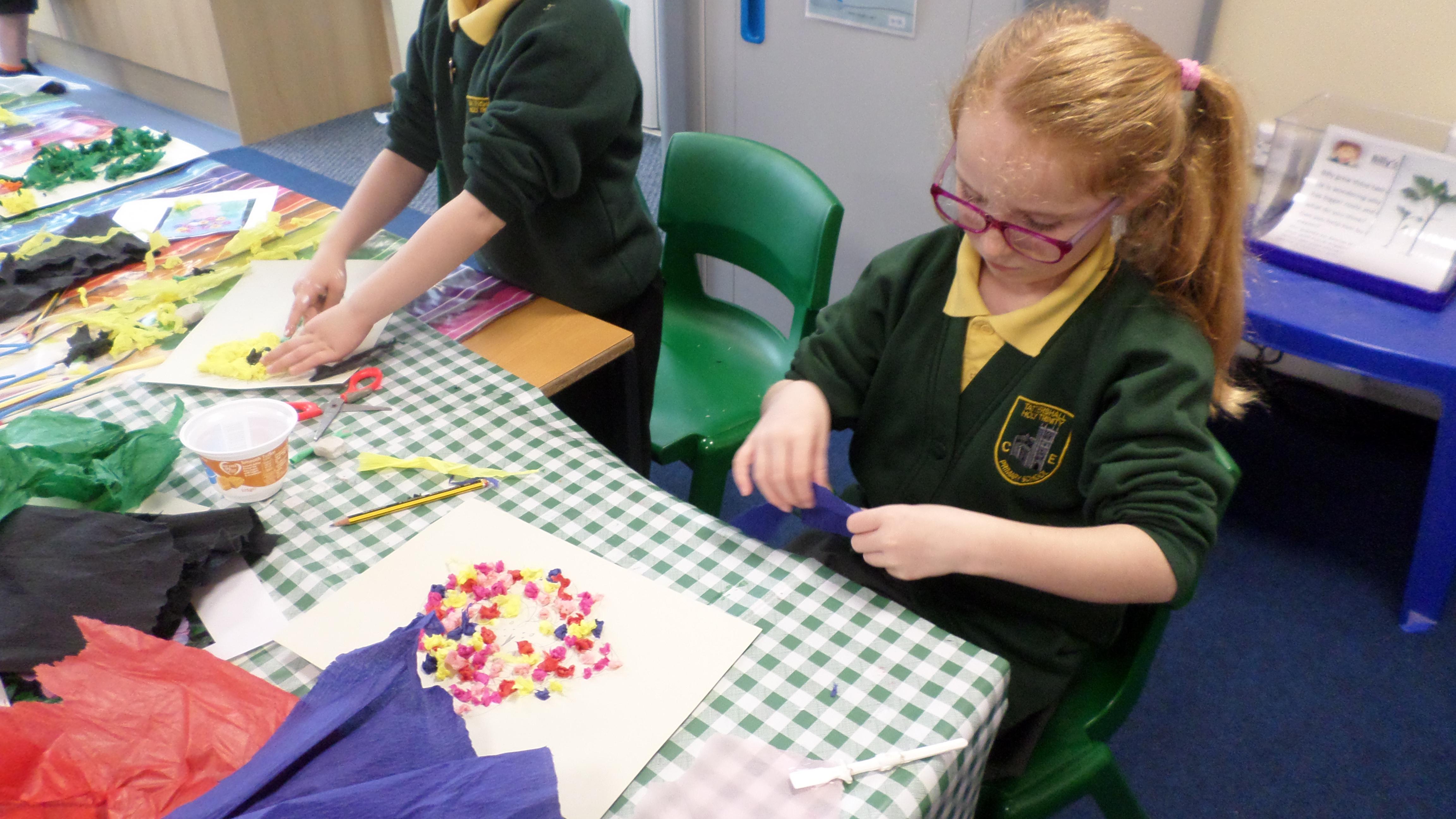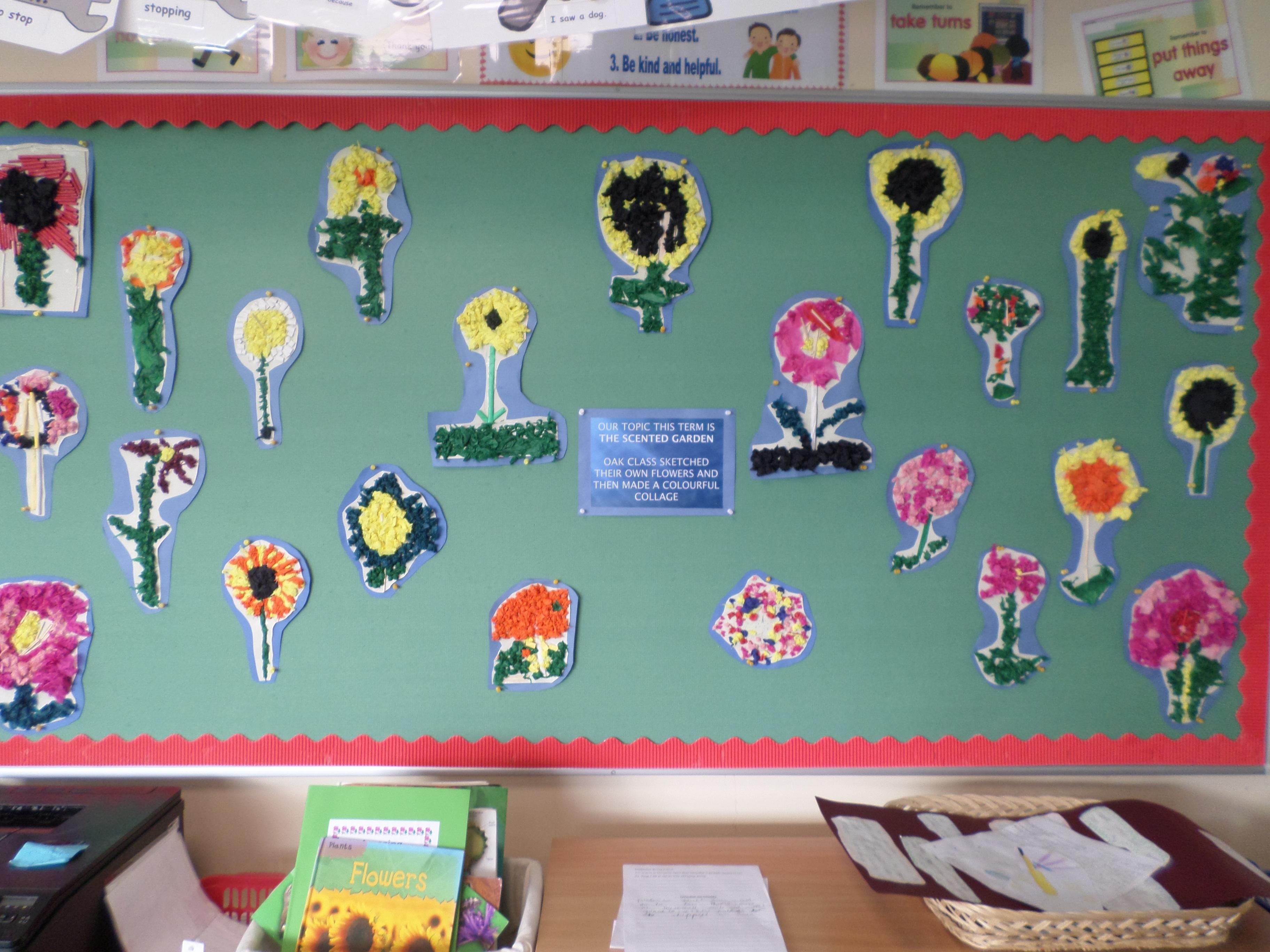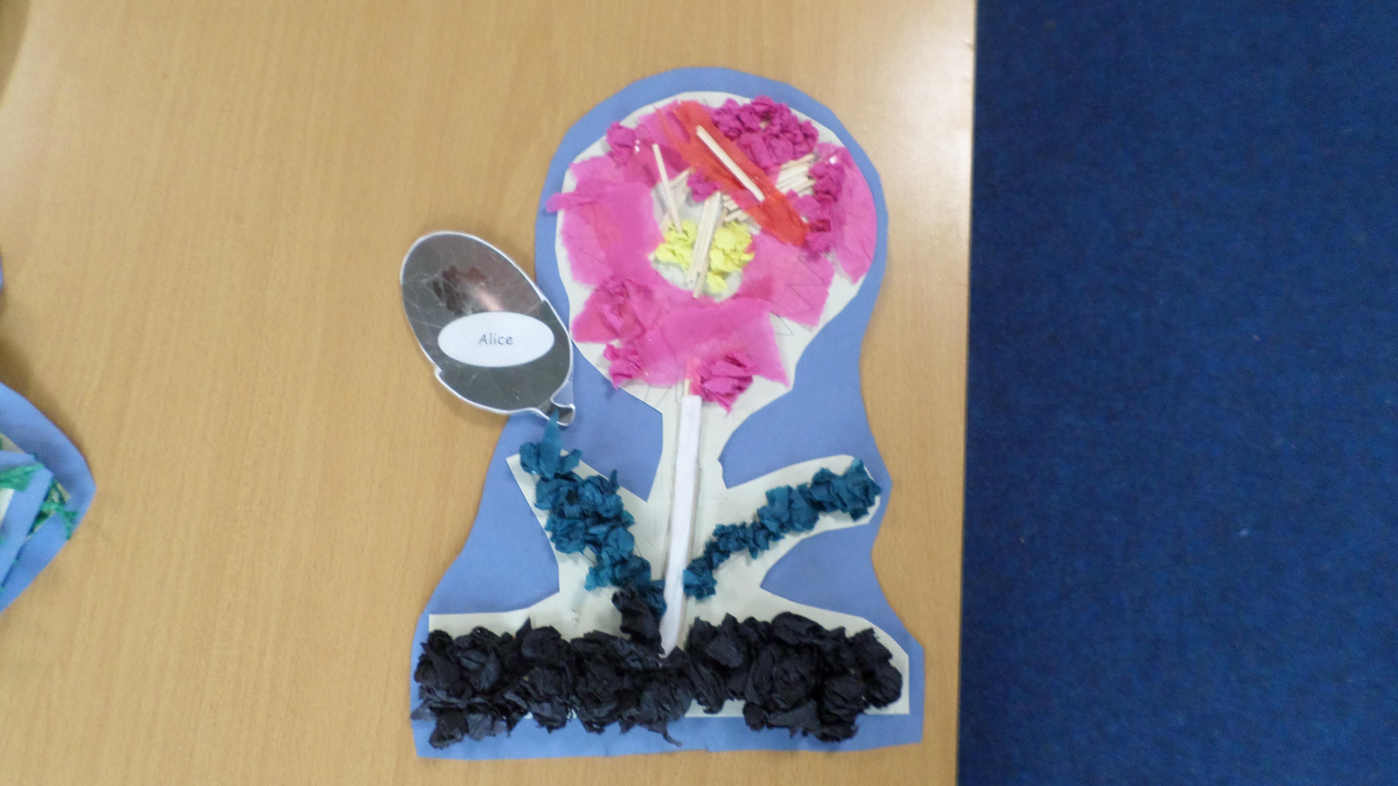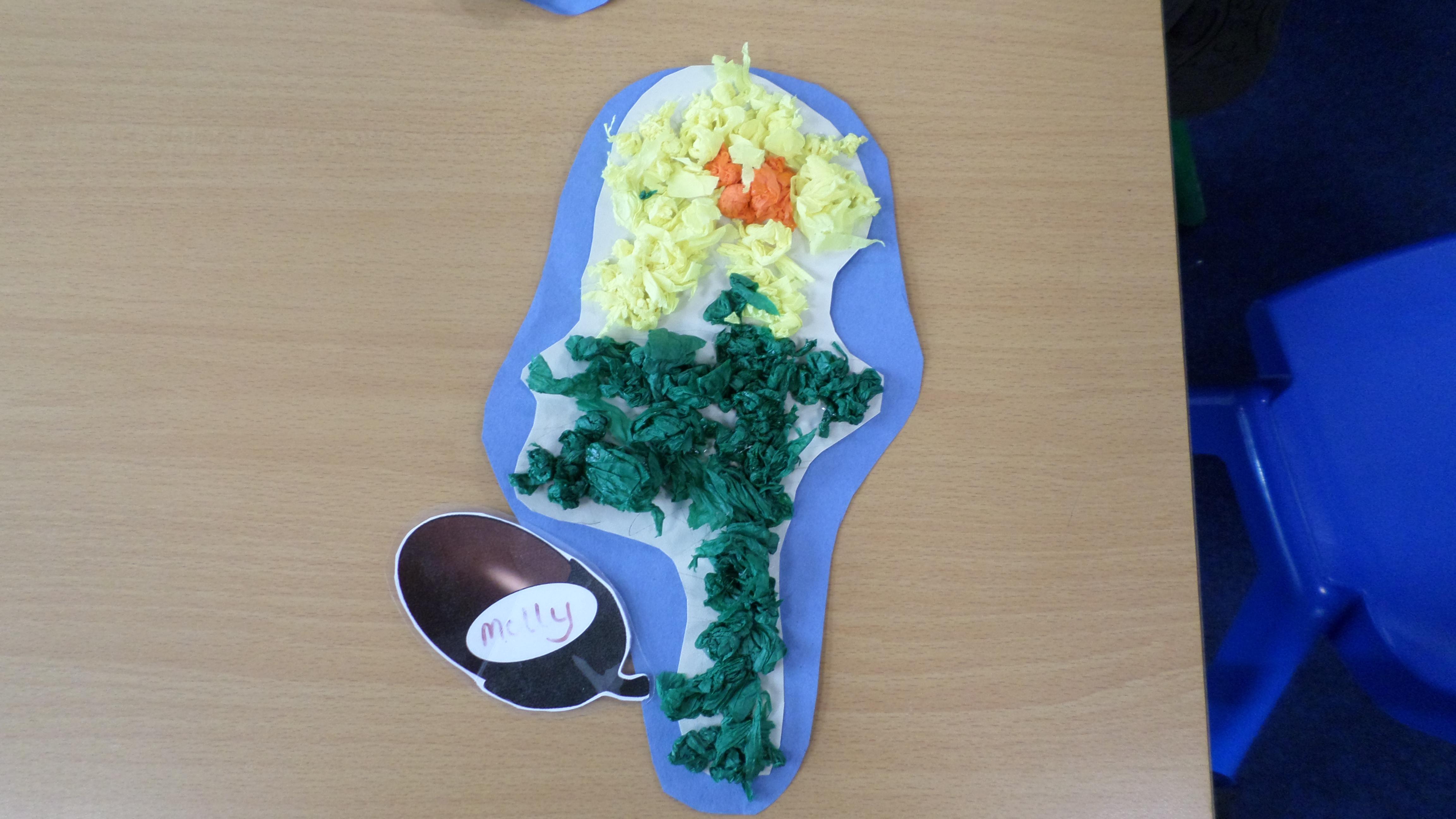 Oak Class had great fun learning about how to make a collage using tiny pieces of torn and rolled tissue paper. We designed and drew our own flower, then applied tissue paper balls by using lots of glue. Sticky stuff! Some of us even added pollen, stigma and stamen to make them look realistic and to show our new science knowledge. It took a lot of patience and at times we helped each other too, so it also taught us good team work.