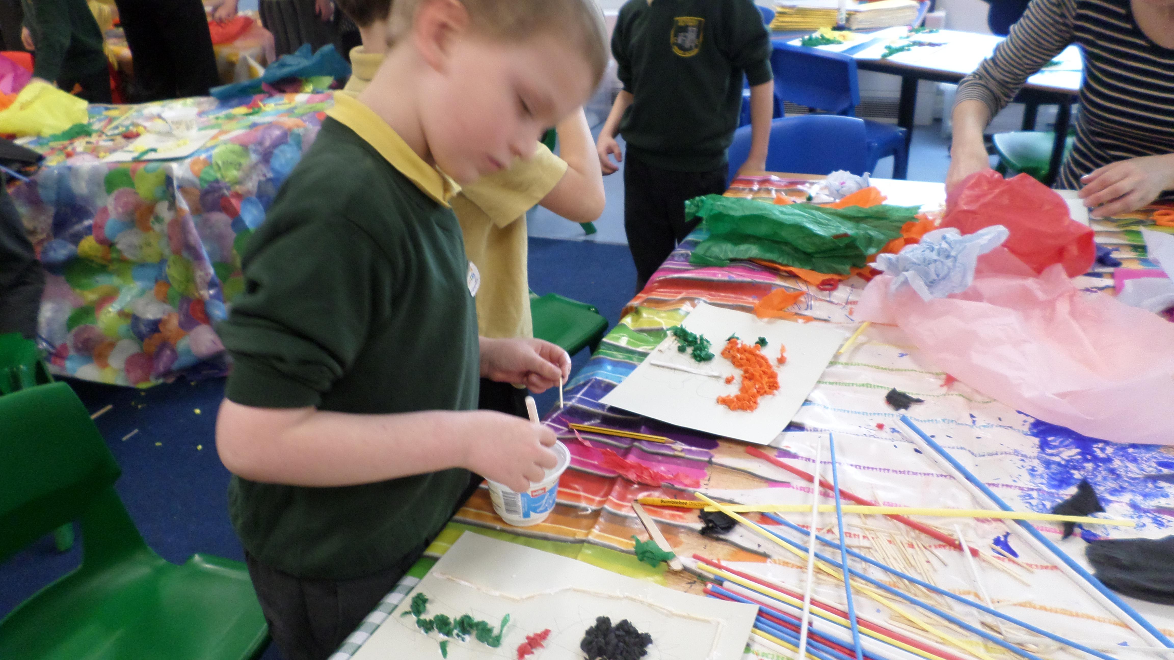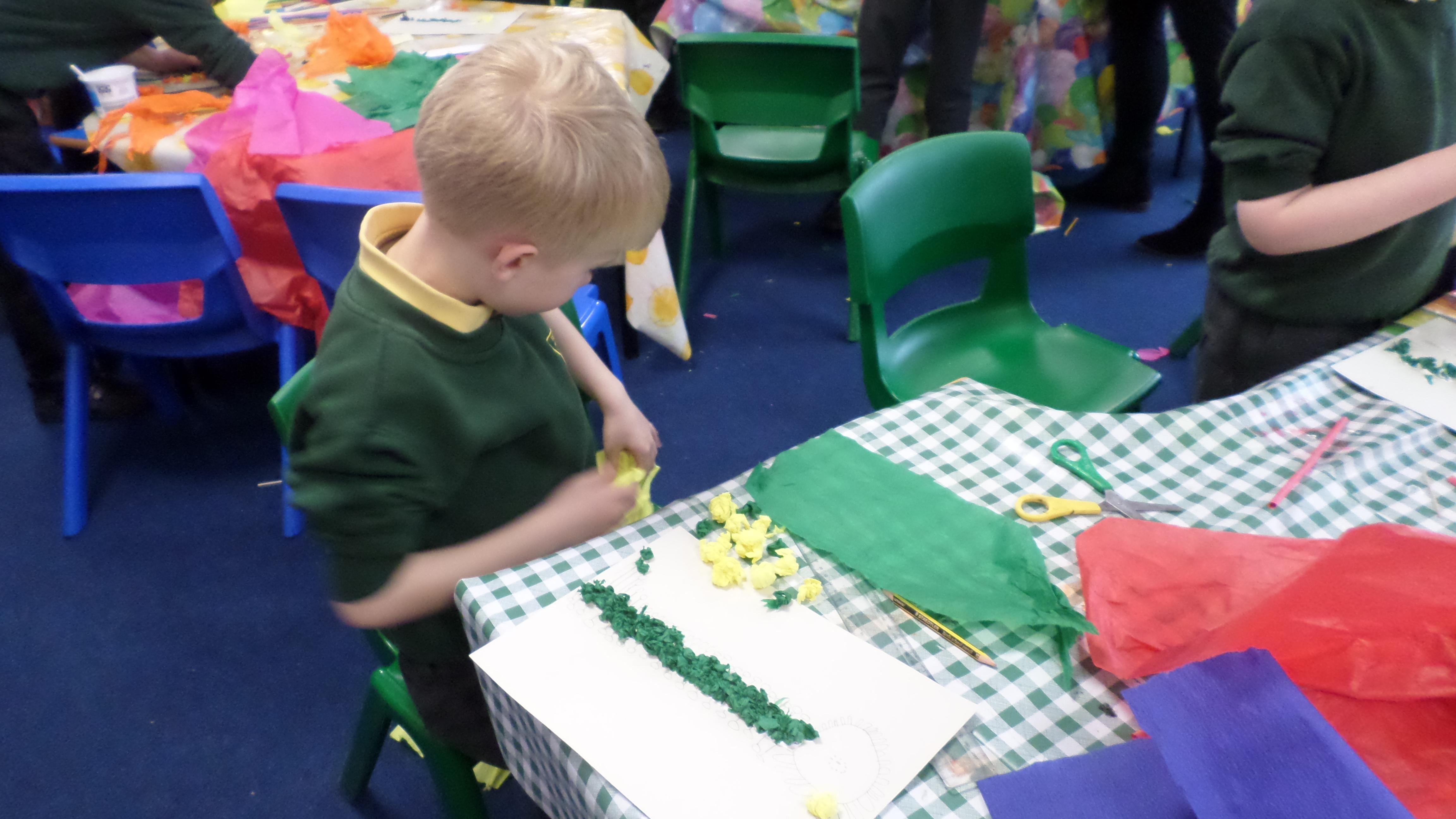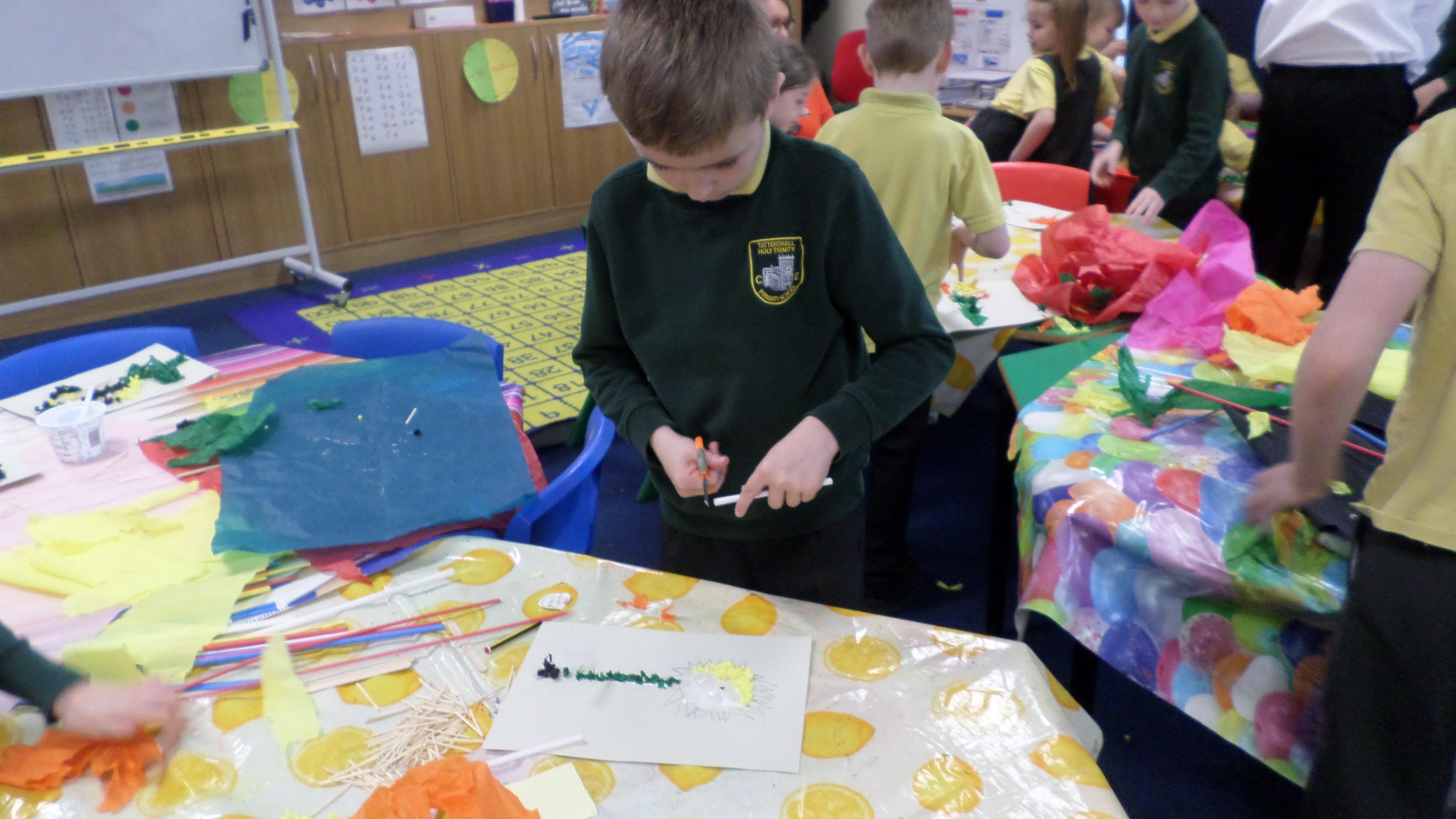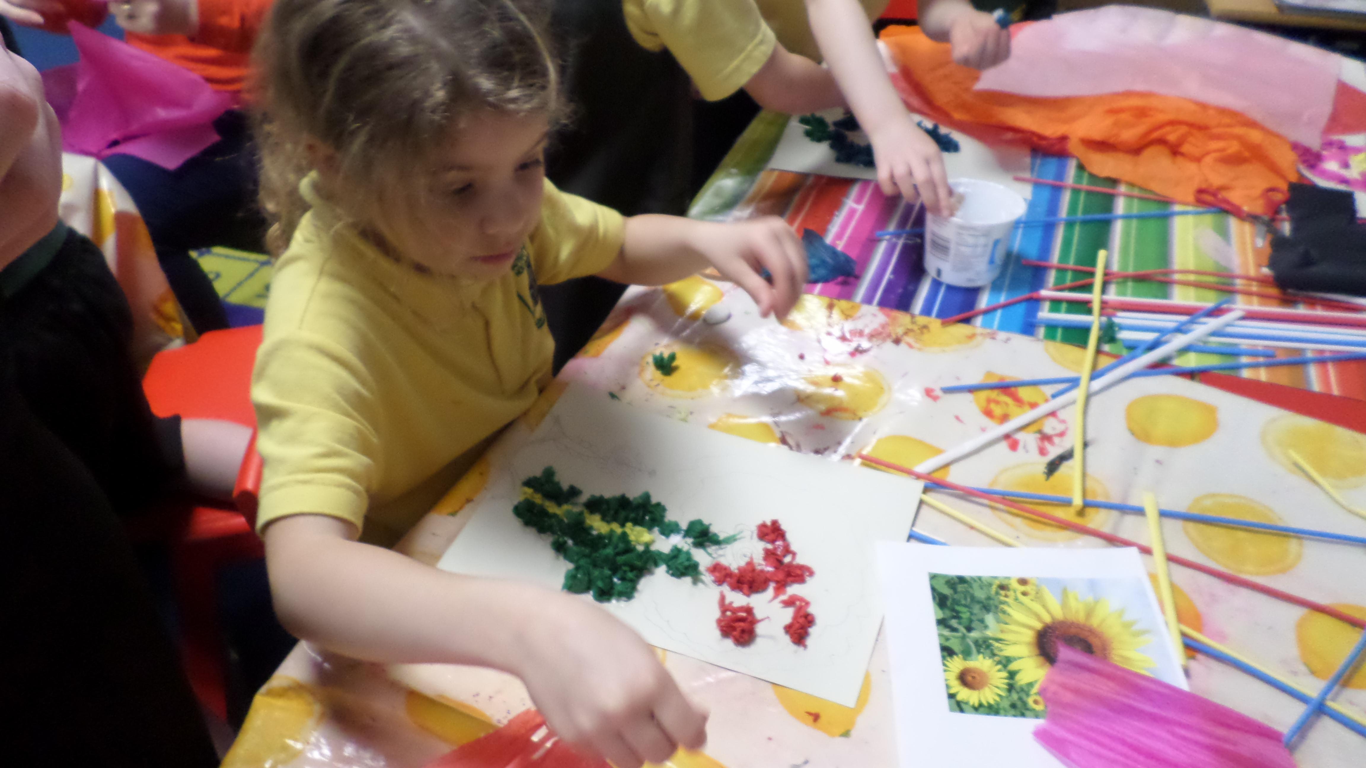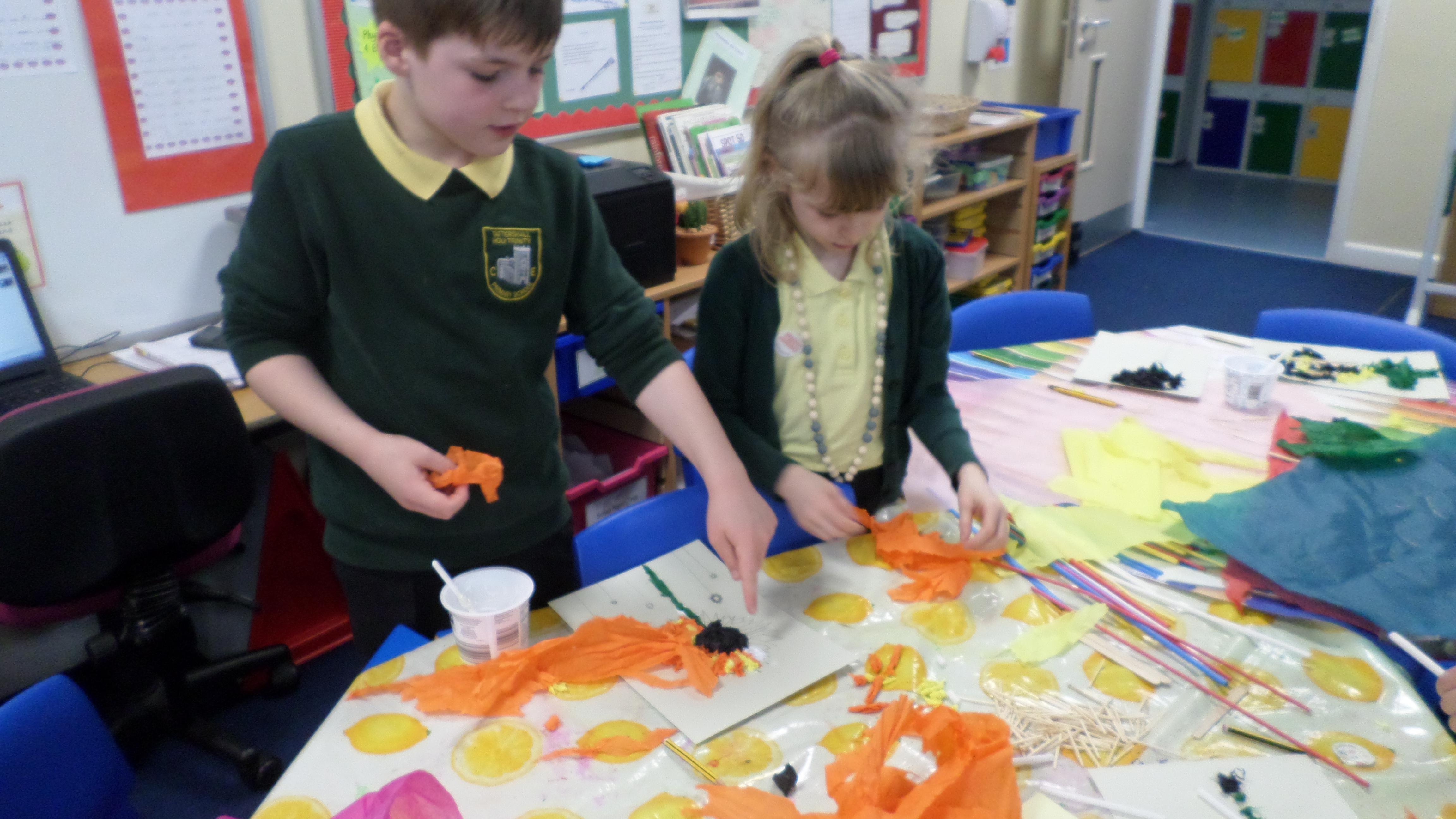 Oak Class had great fun learning about how to make a collage using tiny pieces of torn and rolled tissue paper. We designed and drew our own flower, then applied tissue paper balls by using lots of glue. Sticky stuff! Some of us even added pollen, stigma and stamen to make them look realistic and to show our new science knowledge. It took a lot of patience and at times we helped each other too, so it also taught us good team work.