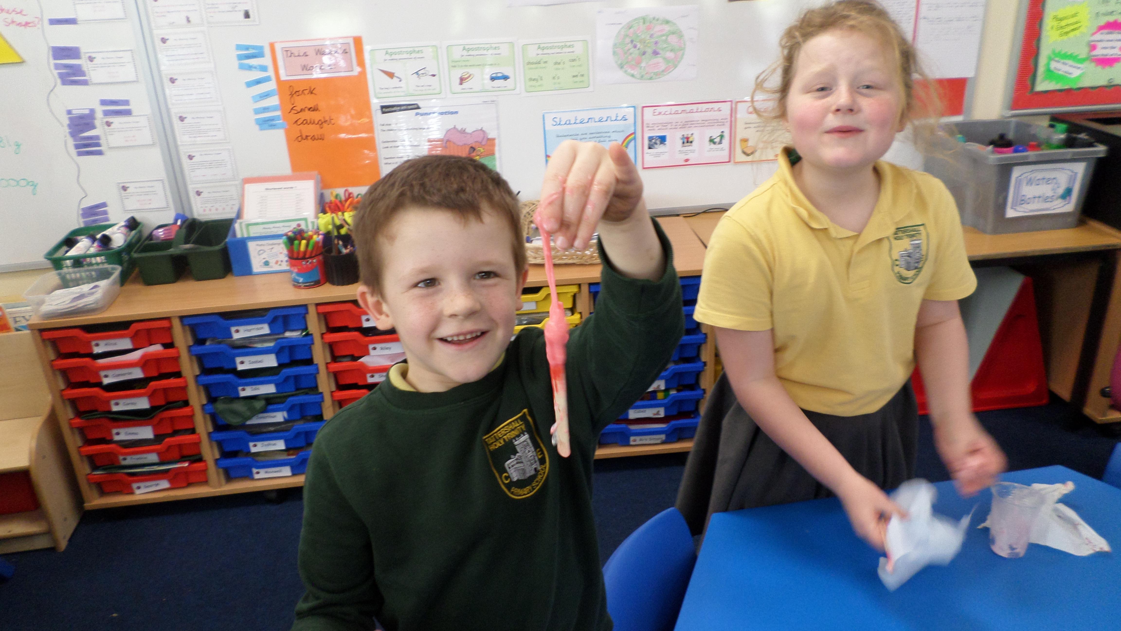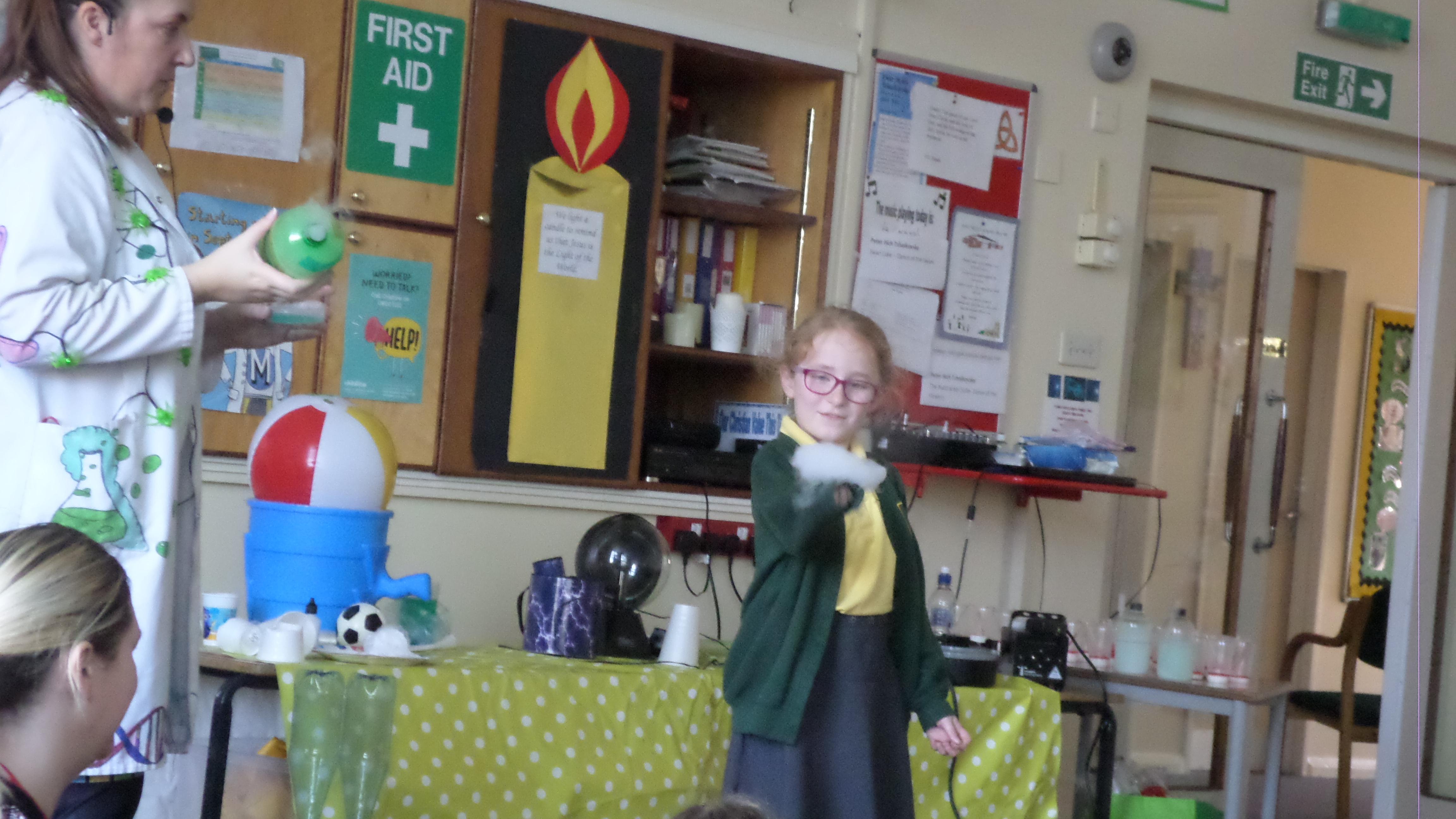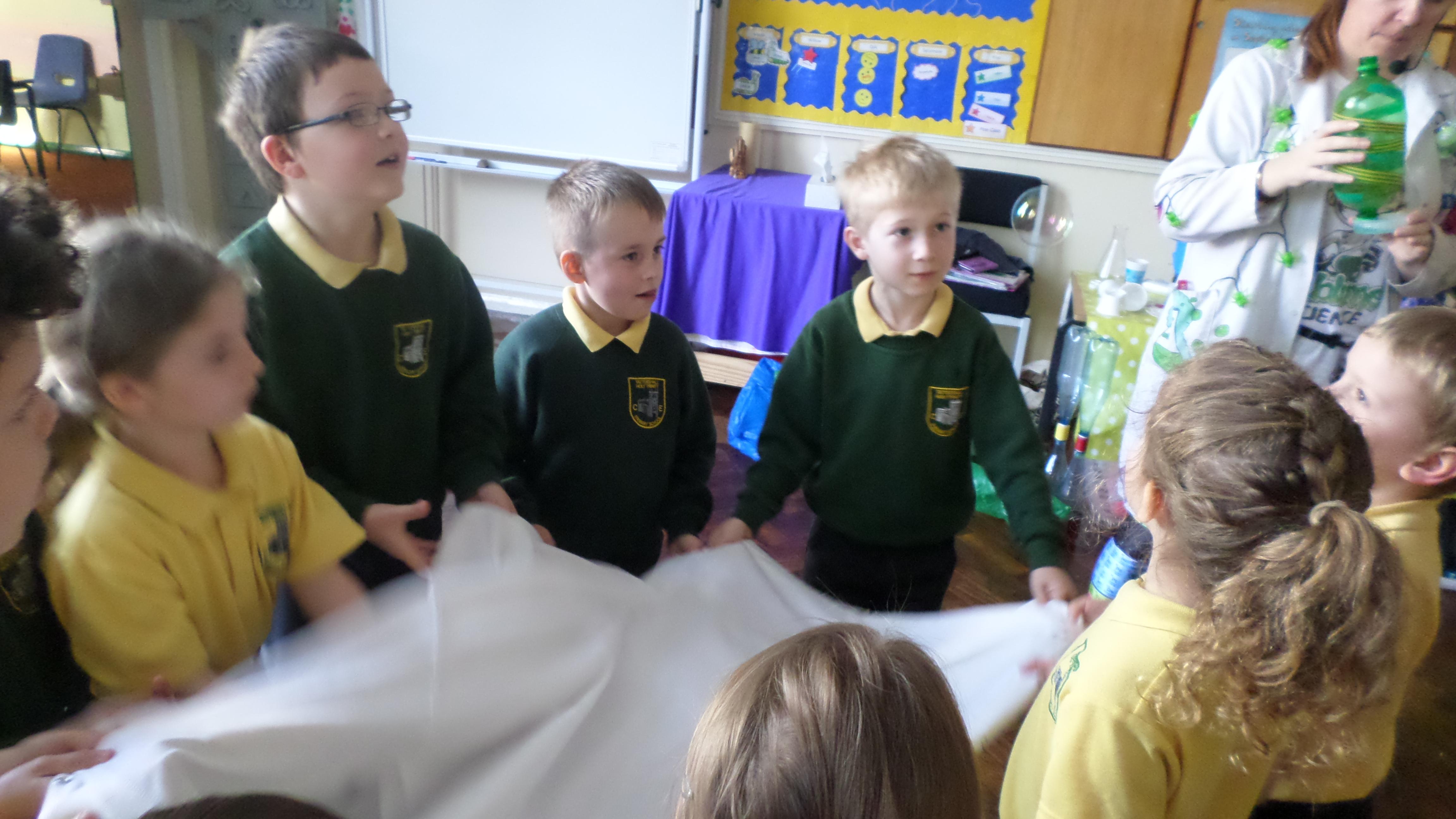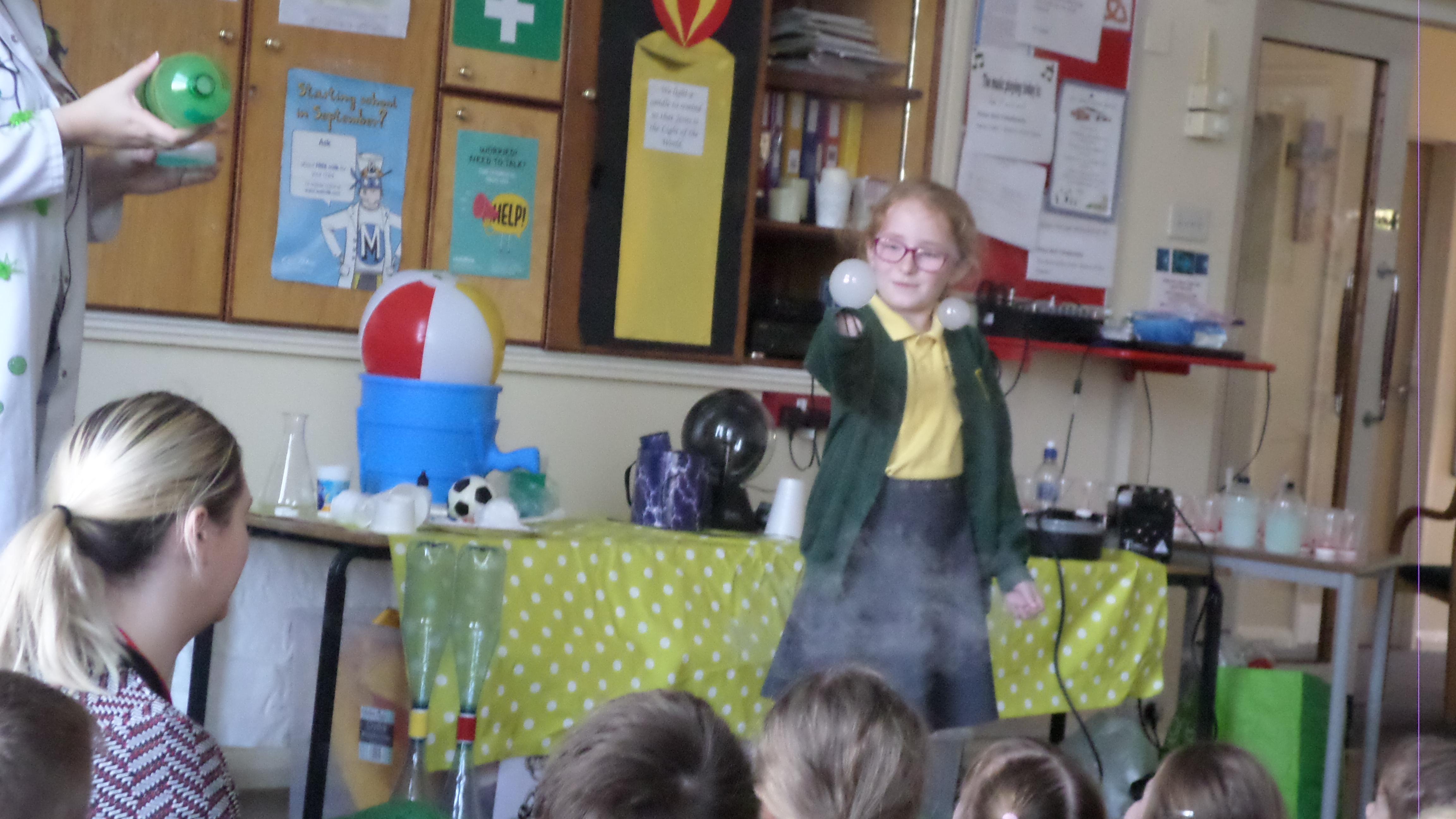 As part of Science Week we had a visit from Sublime Science. We had a great time being wowed by a scientist called Sodium Sam. We found out how different materials can soak up water or expand in water, how air travels and how electricity can pass through us. We then tried to make bubbles bounce and we made our own slime too. What fun!