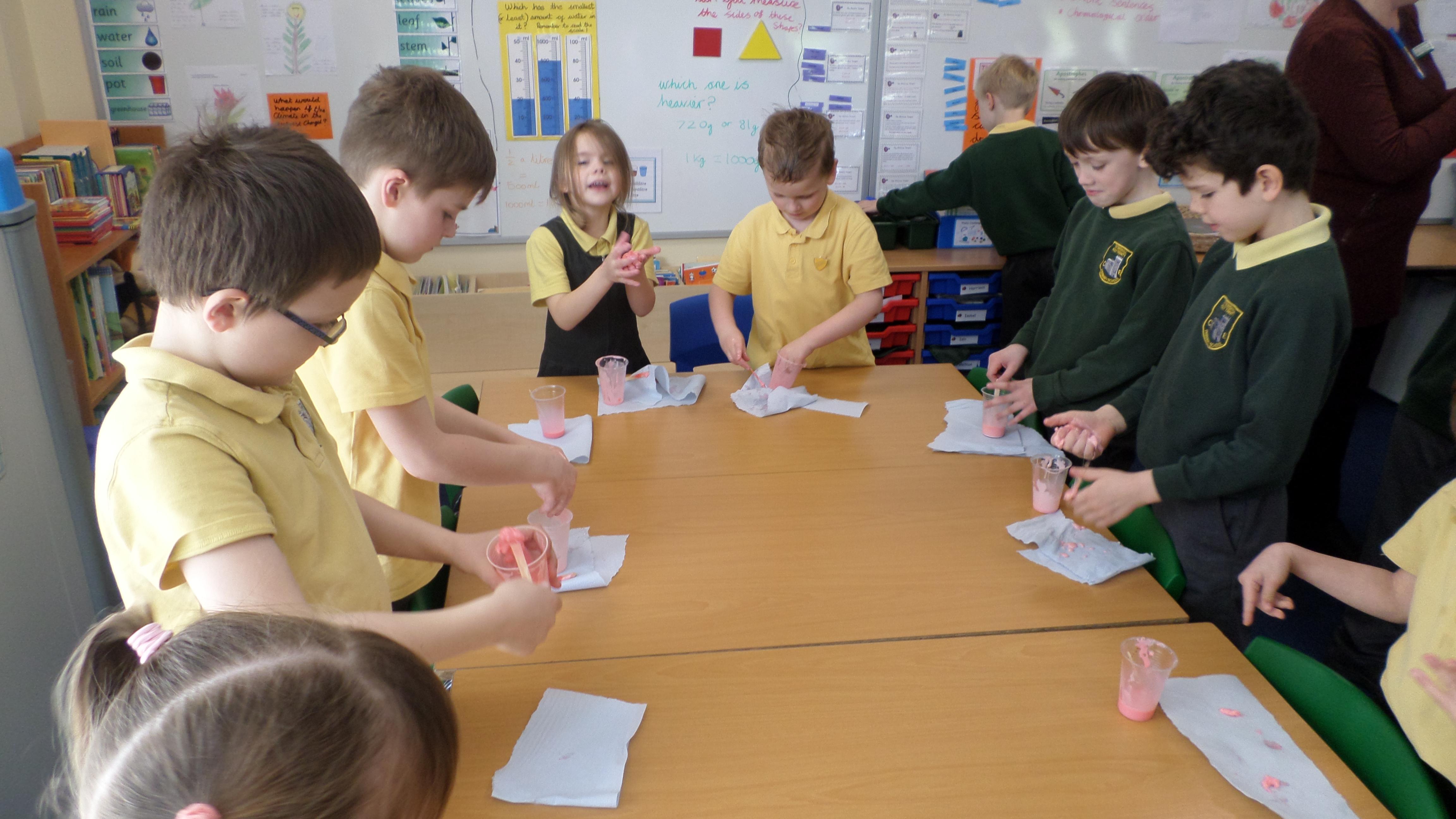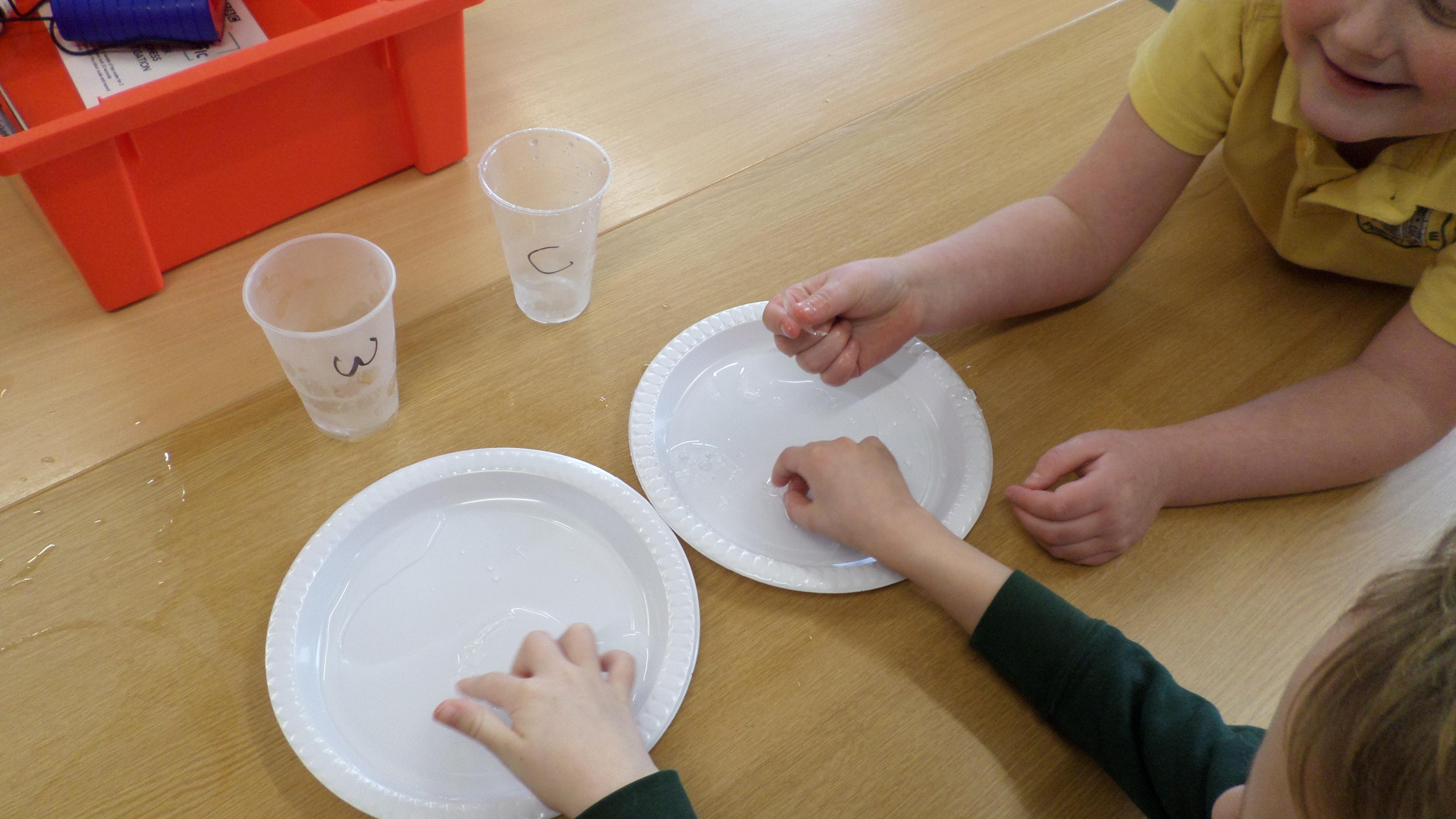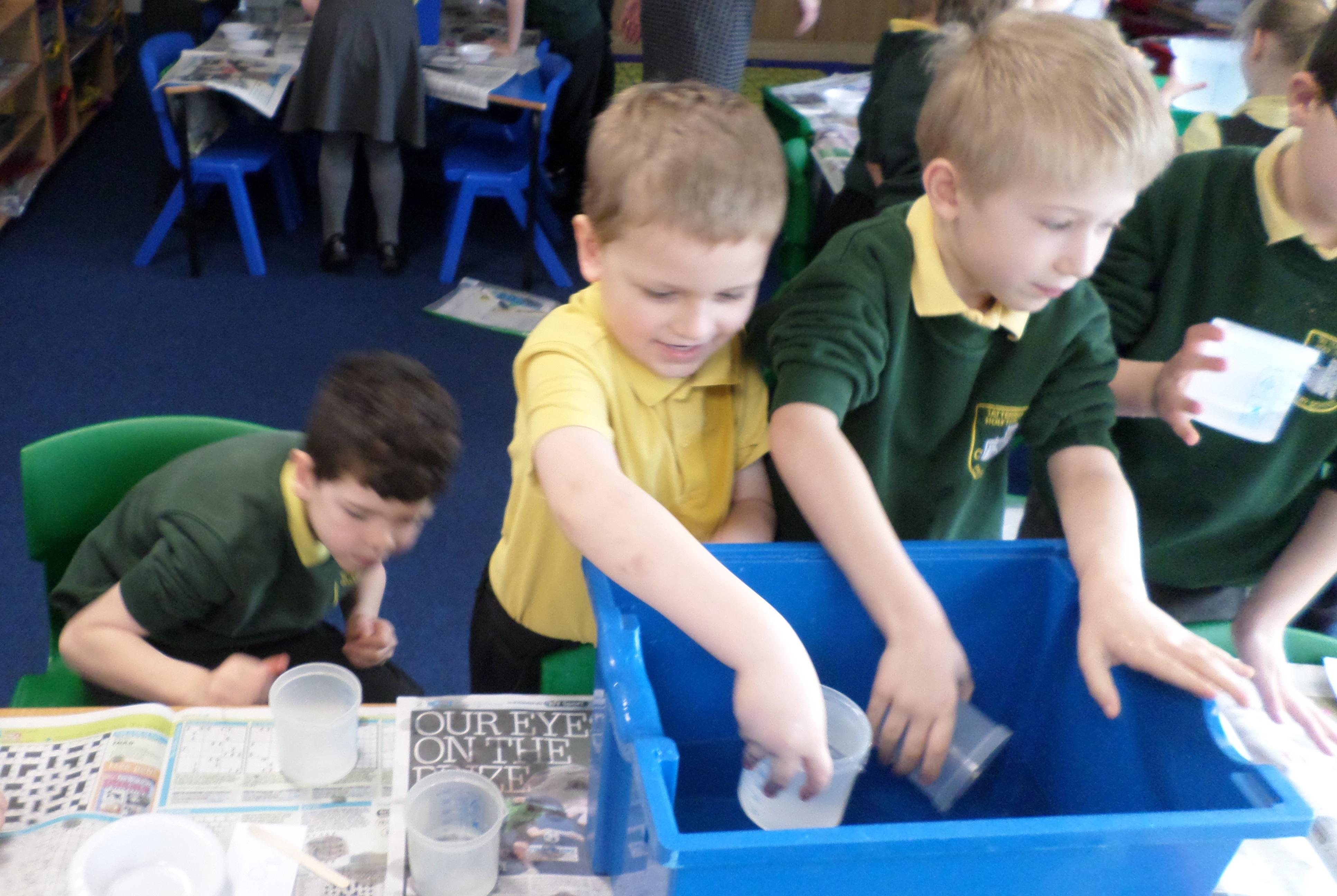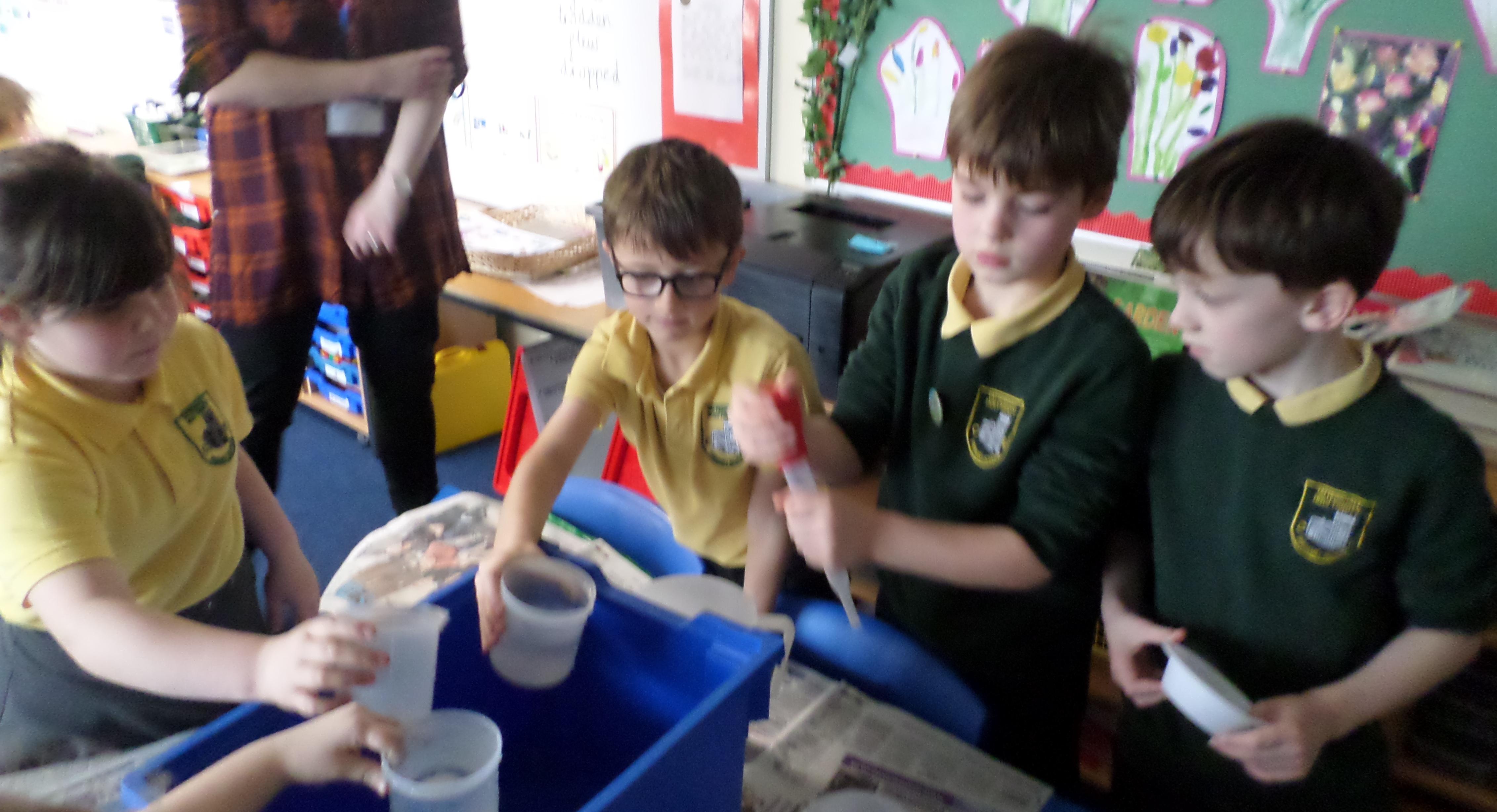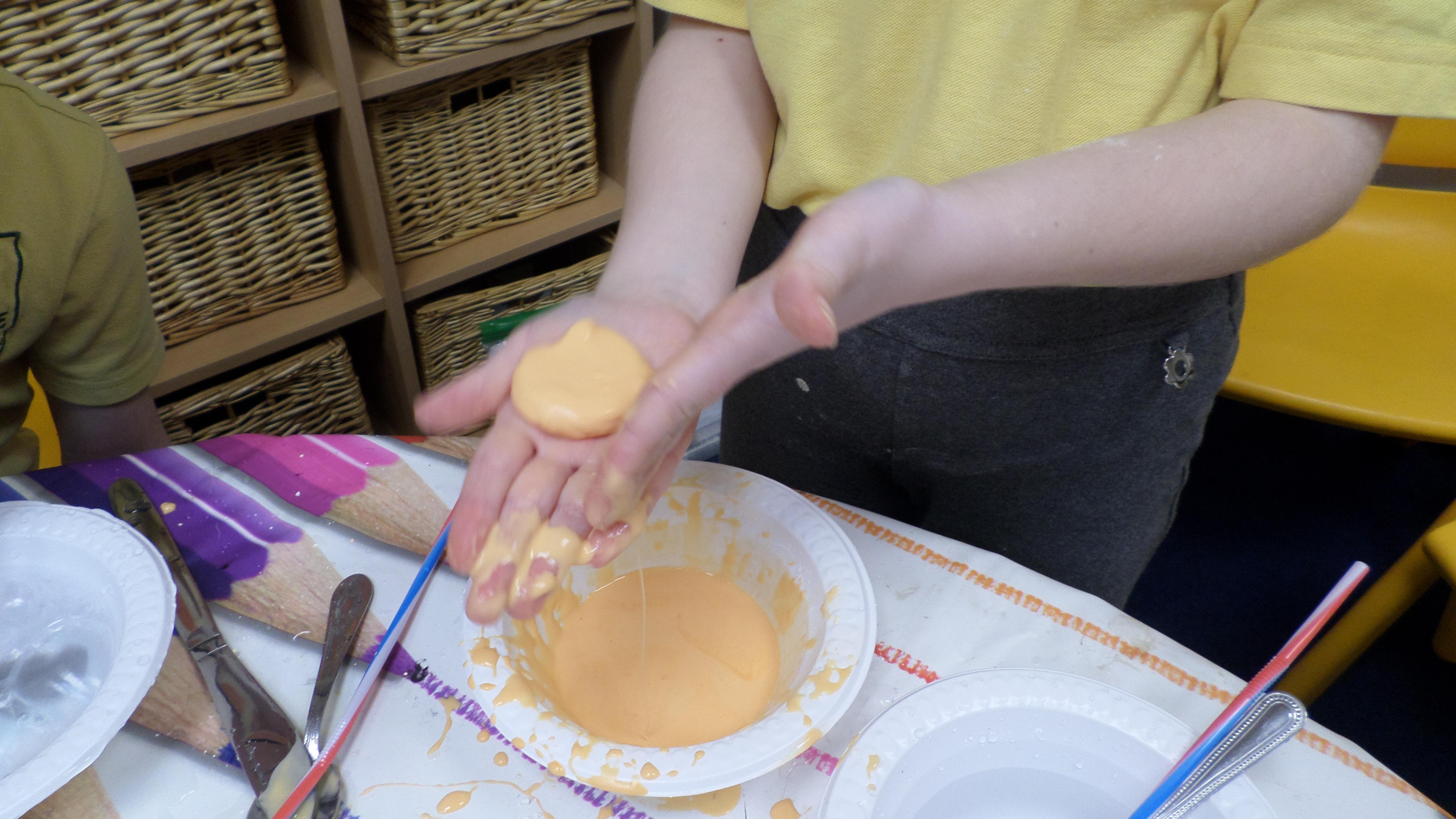 The year 3 pupils in Oak took part in an investigation this week to determine whether custard was a liquid. They started by watching a film of a man walking on custard - honestly! This really made them keen to find out what custard is like. After making a bowl of custard, they put in through a number of tests and compared it to water. The tests were very messy, but very interesting. The most exciting one was handling the custard. They discovered that if you keep it rolling in your hand, it behaved like a solid, however the second you stopped it moving, it became runny like a liquid. This makes custard a colloid - another new word for their science dictionaries!