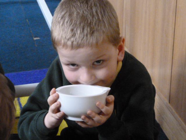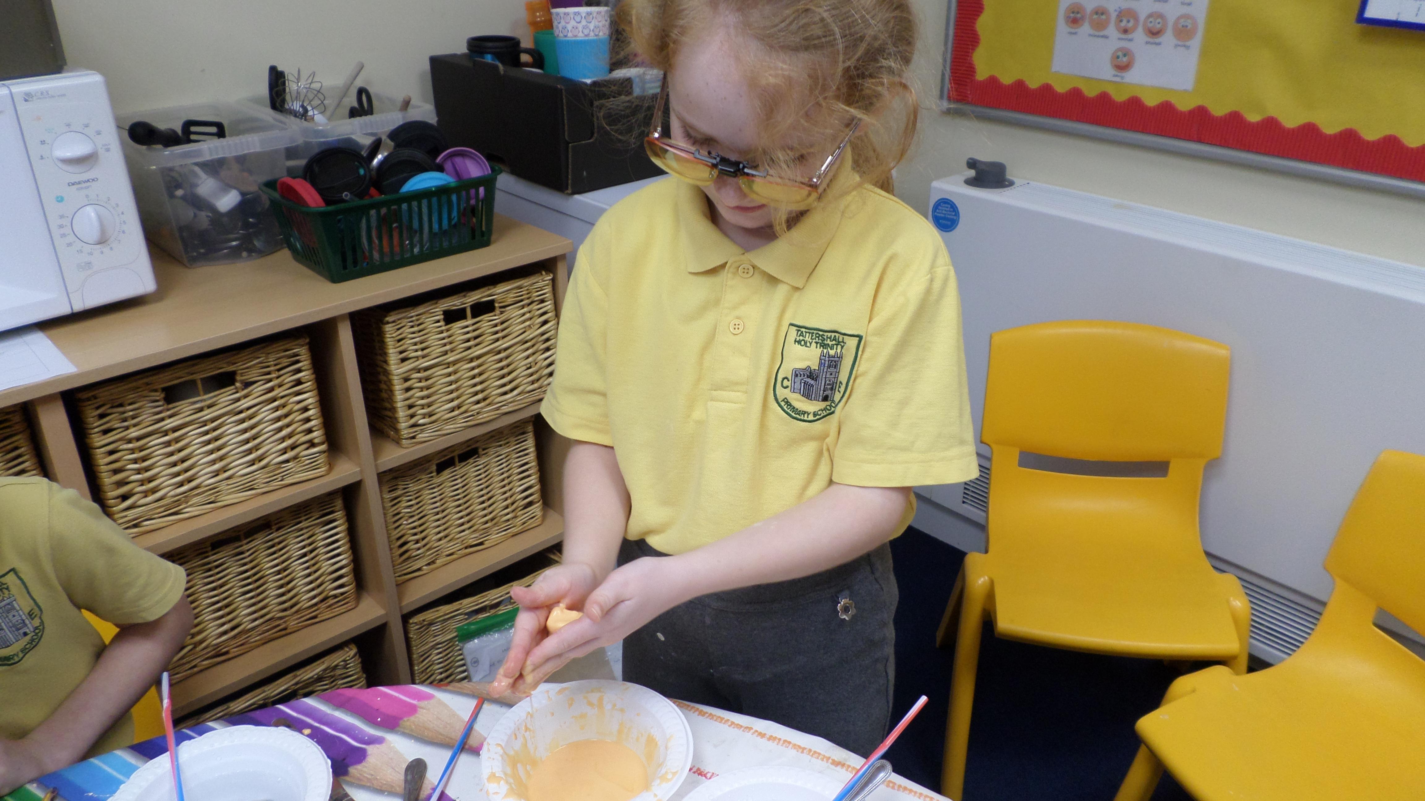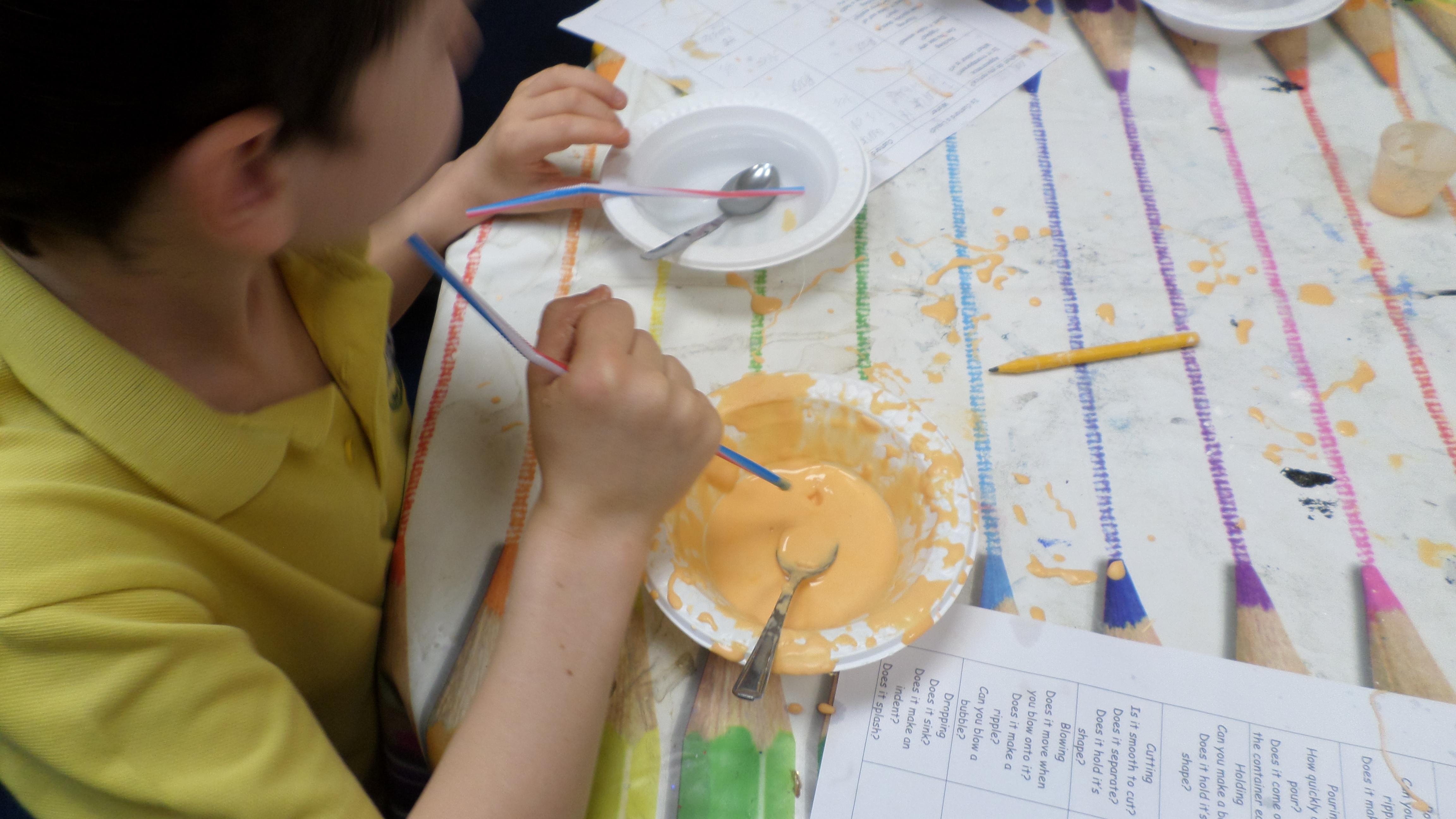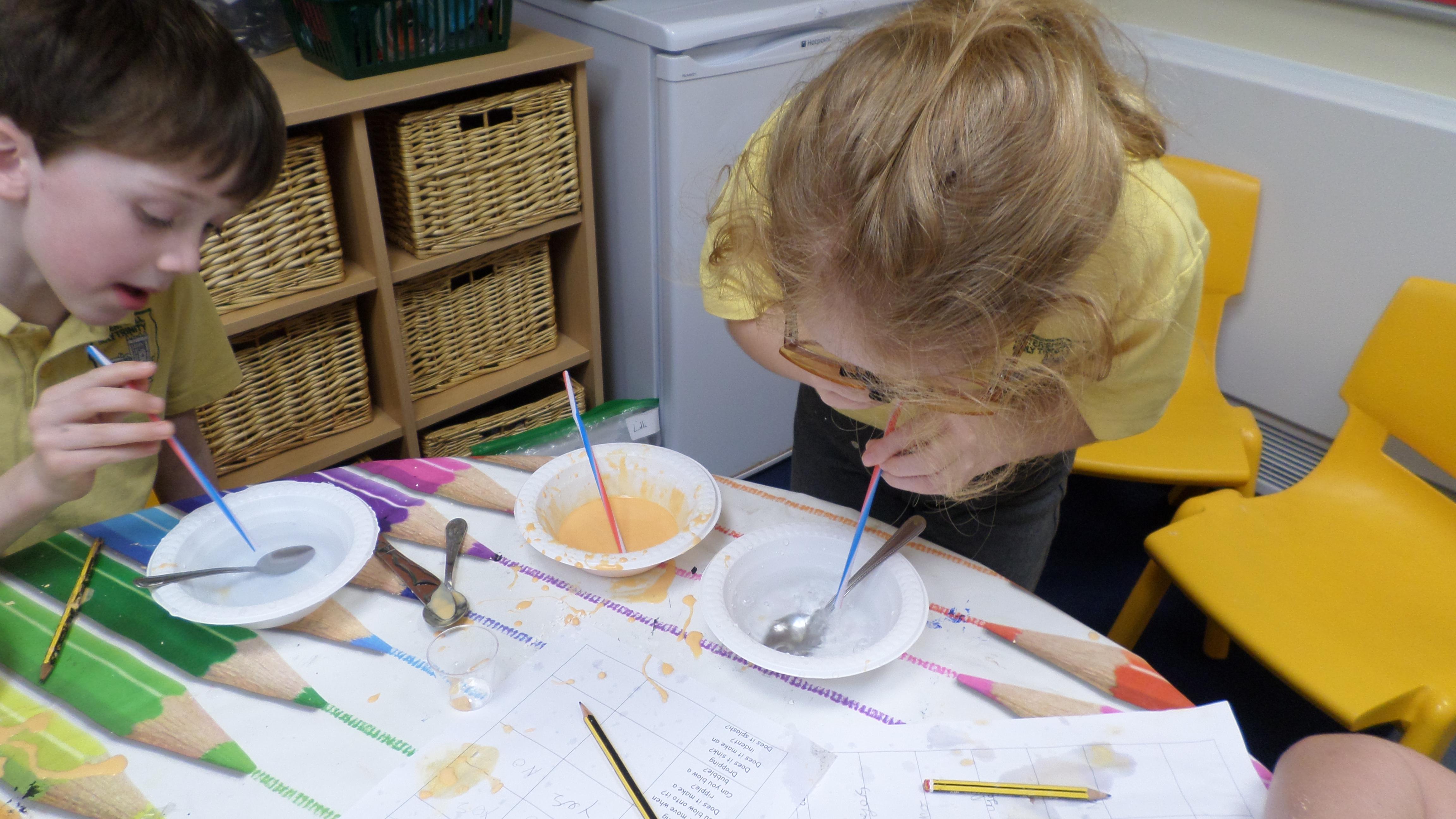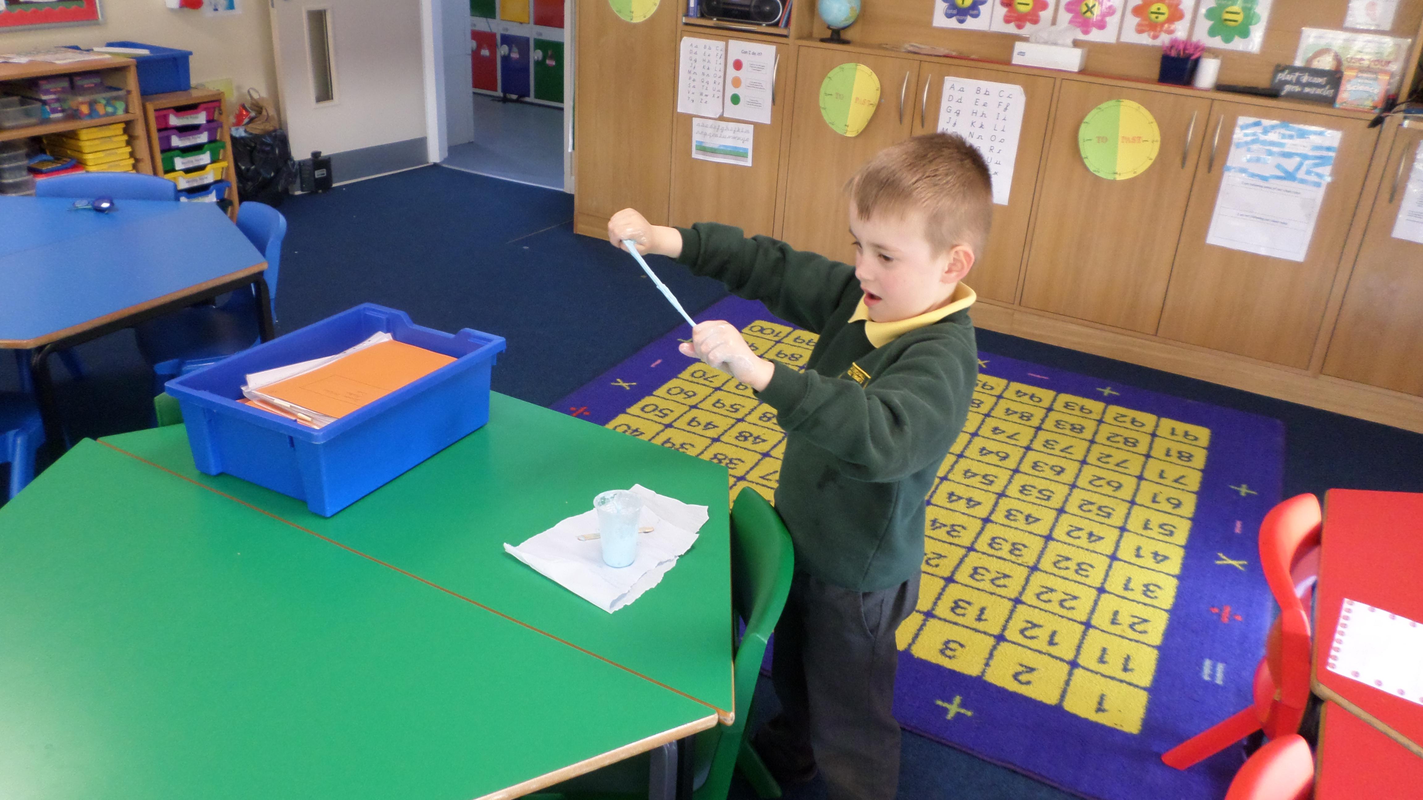 The year 3 pupils in Oak took part in an investigation this week to determine whether custard was a liquid. They started by watching a film of a man walking on custard - honestly! This really made them keen to find out what custard is like. After making a bowl of custard, they put in through a number of tests and compared it to water. The tests were very messy, but very interesting. The most exciting one was handling the custard. They discovered that if you keep it rolling in your hand, it behaved like a solid, however the second you stopped it moving, it became runny like a liquid. This makes custard a colloid - another new word for their science dictionaries!