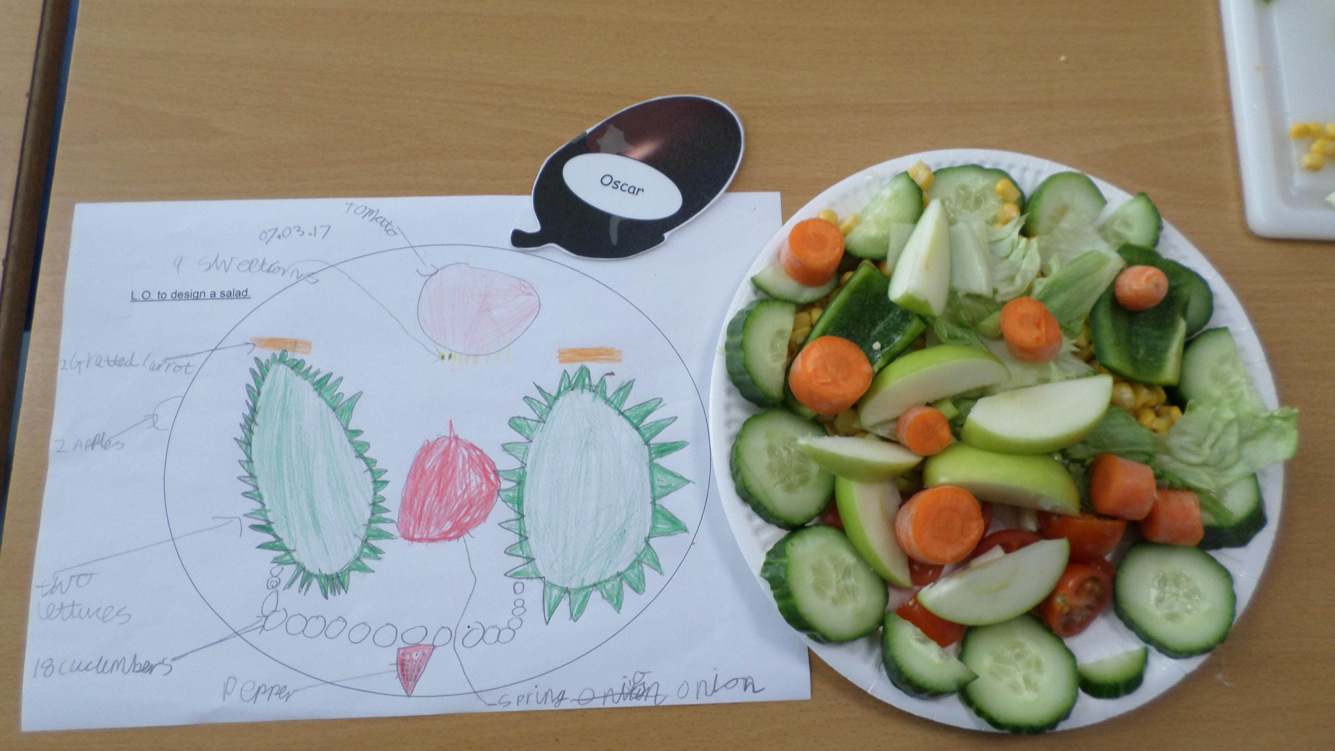 Oak Class children have made salads as part of their plant topic but also to learn about healthy eating and food hygiene. They started by asking a member of their family what kind of salad they would like and then designed a salad using the ingredients suggested. Then, they made their salads for their family member and are now waiting for feedback to see whether they enjoyed it or not. We do hope they were all a success. The salads certainly looked amazing when they were made at school. We just hope the journey home went successfully!