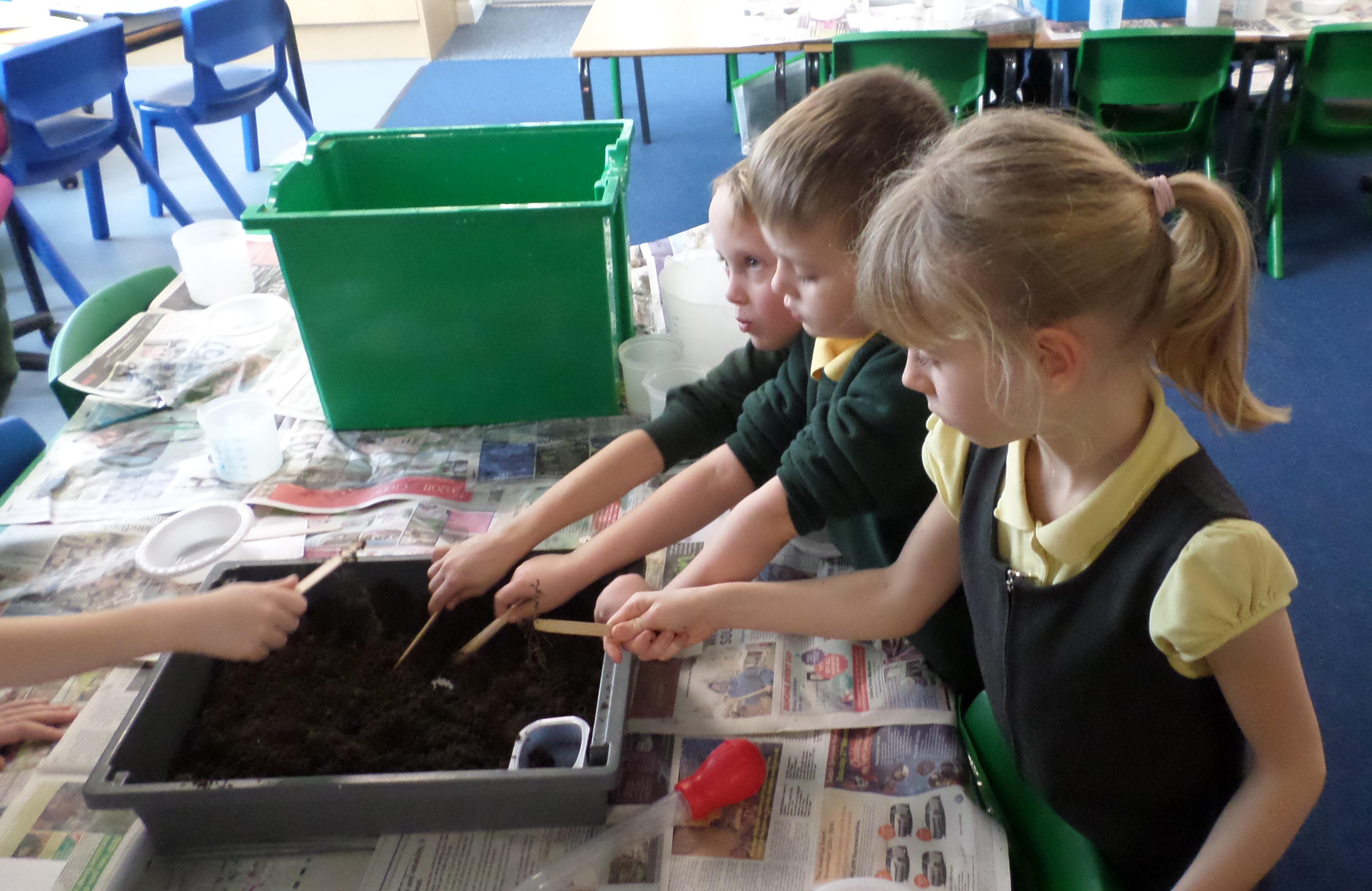 Over the last few weeks, Oak Class pupils have been investigating the answer to their own bulb questions. They have been recording their observations using photographs and a computer program called Photo Story. Some amazing changes have taken place. Check out the photos below to see some of what has been happening. They have found out that bulbs do grow in the dark (but are not very green or healthy), they can begin to grow in the freezer, bulbs do grow if they are planted upside down and bulbs do grow into flowers. Next they will be creating their own seed questions. Anything could happen!