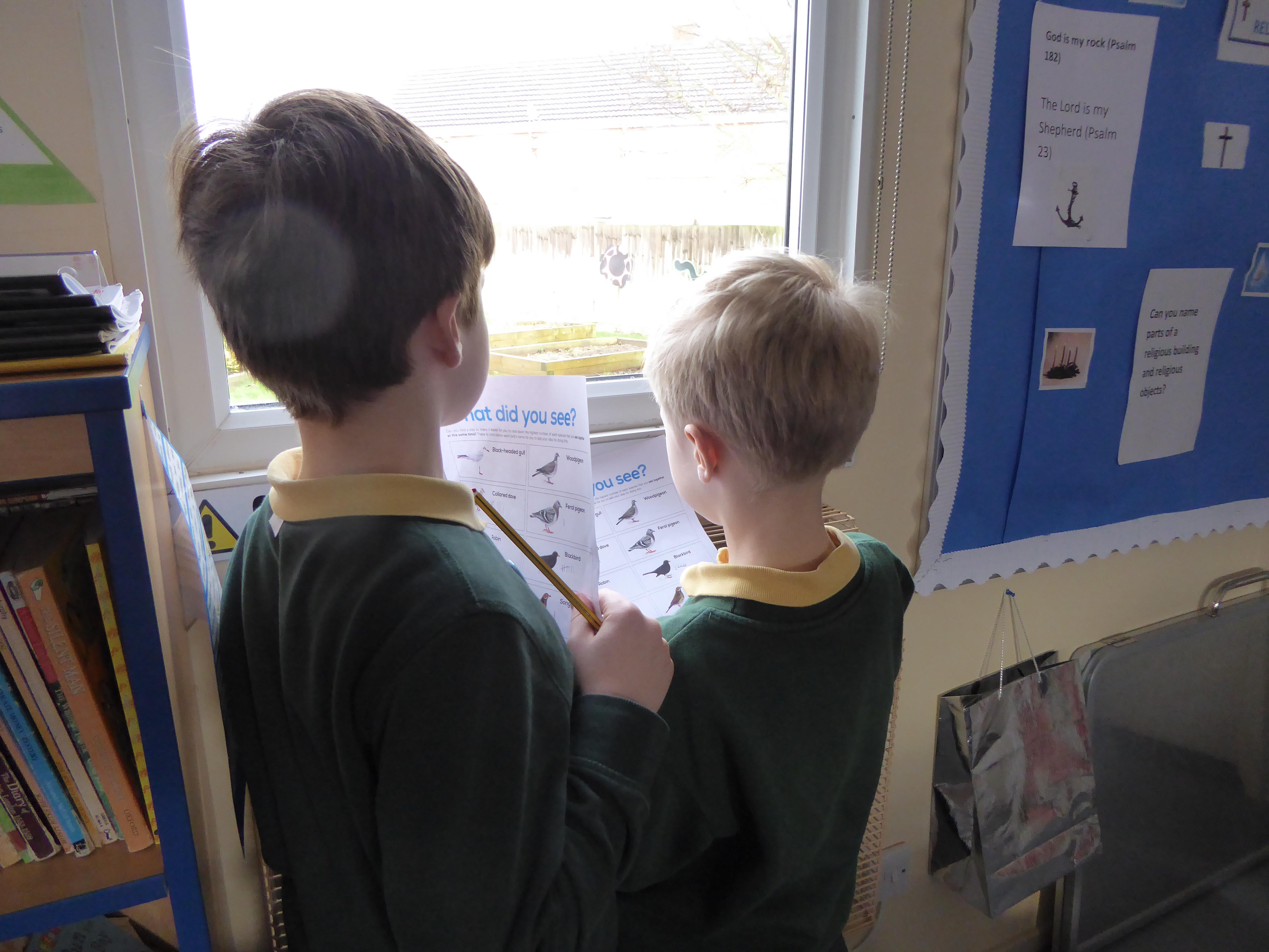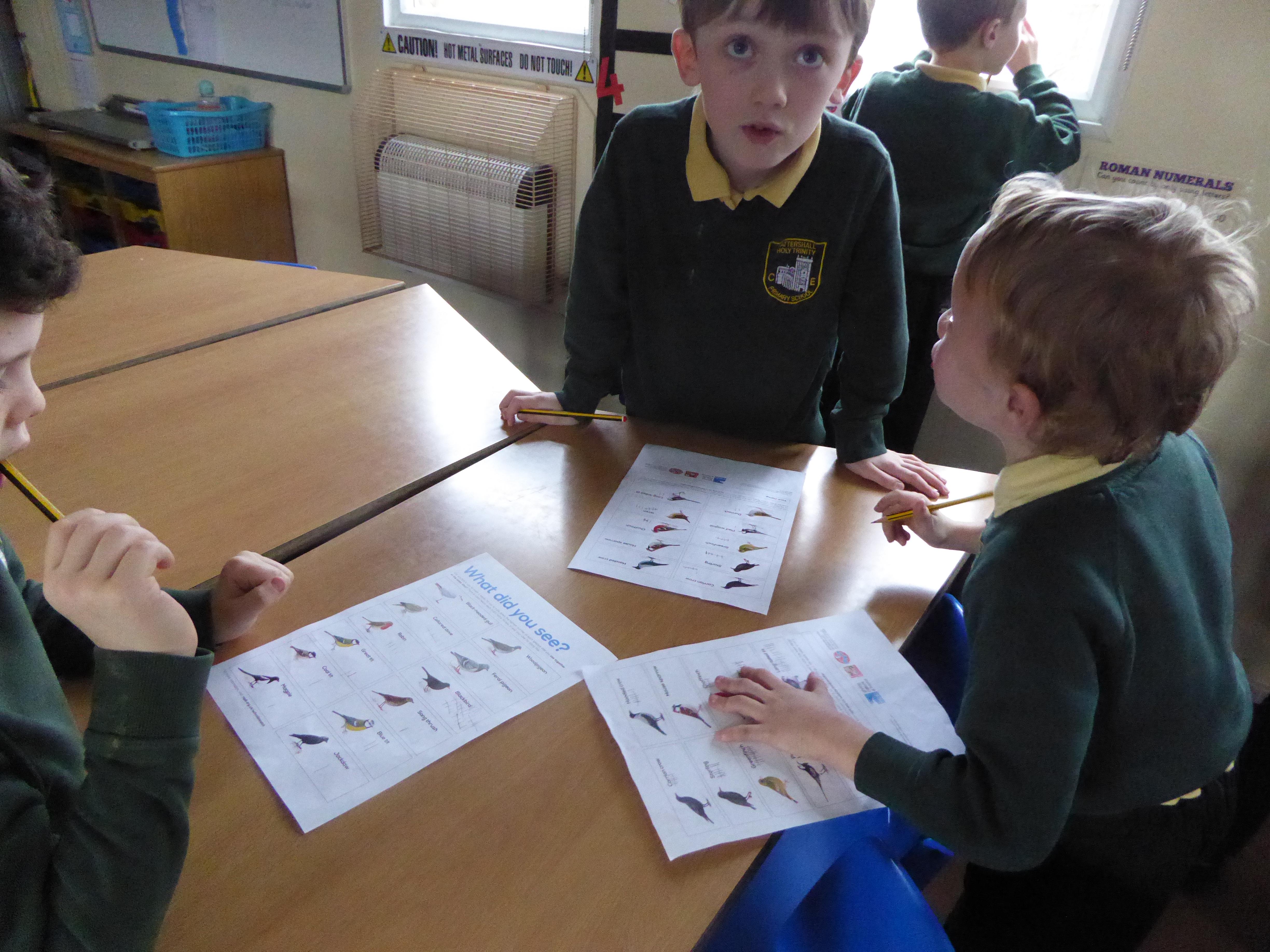 Oak took part in the RSPB's Big School's Bird Watch today. We observed many different types of birds including: starlings, blackbirds, gold finches, pigeons, crows, seagulls and many more. We also played bird Top Trumps and bird Bingo. Our data will be uploaded to the national web site. Thank you to Pine who lent us their classroom.