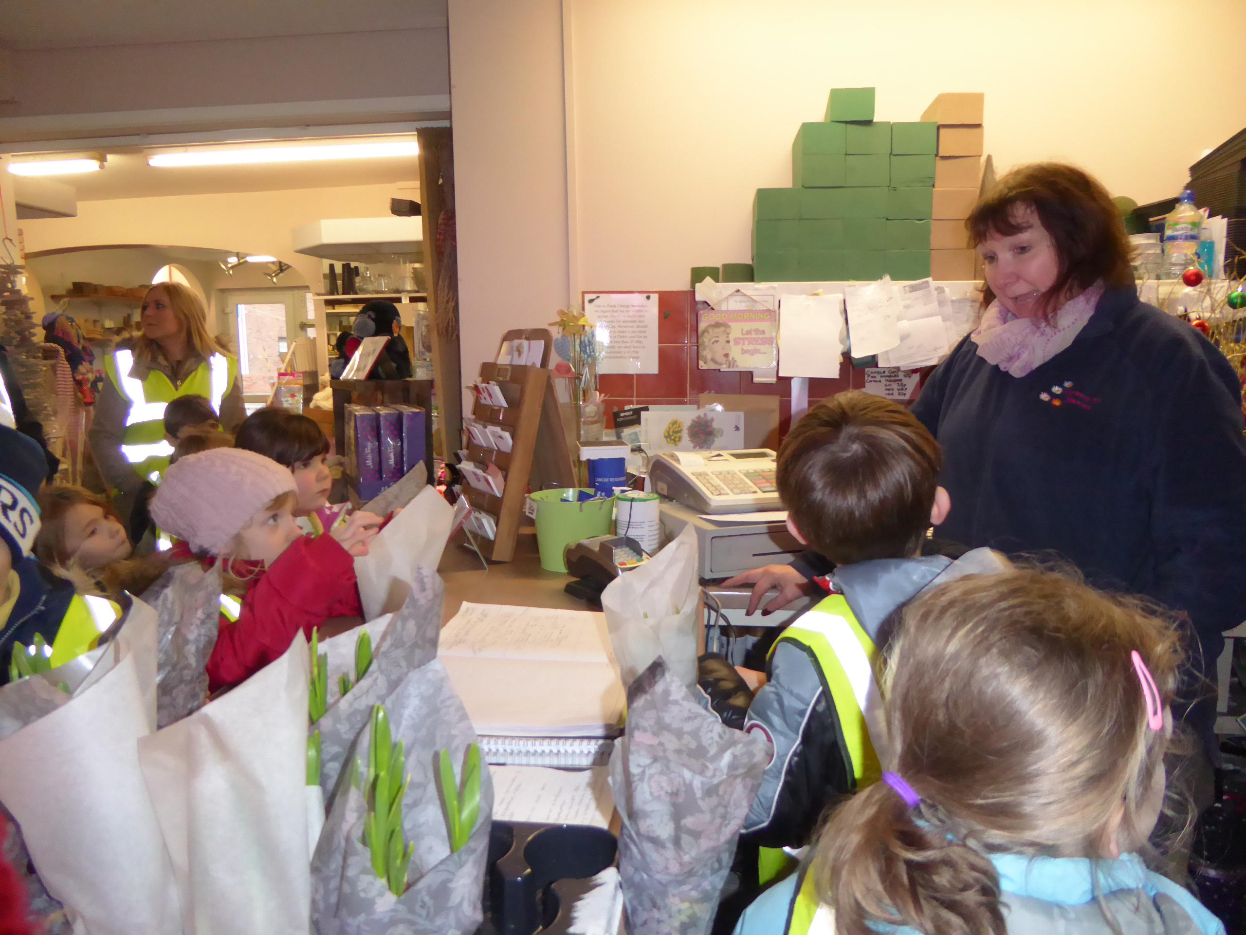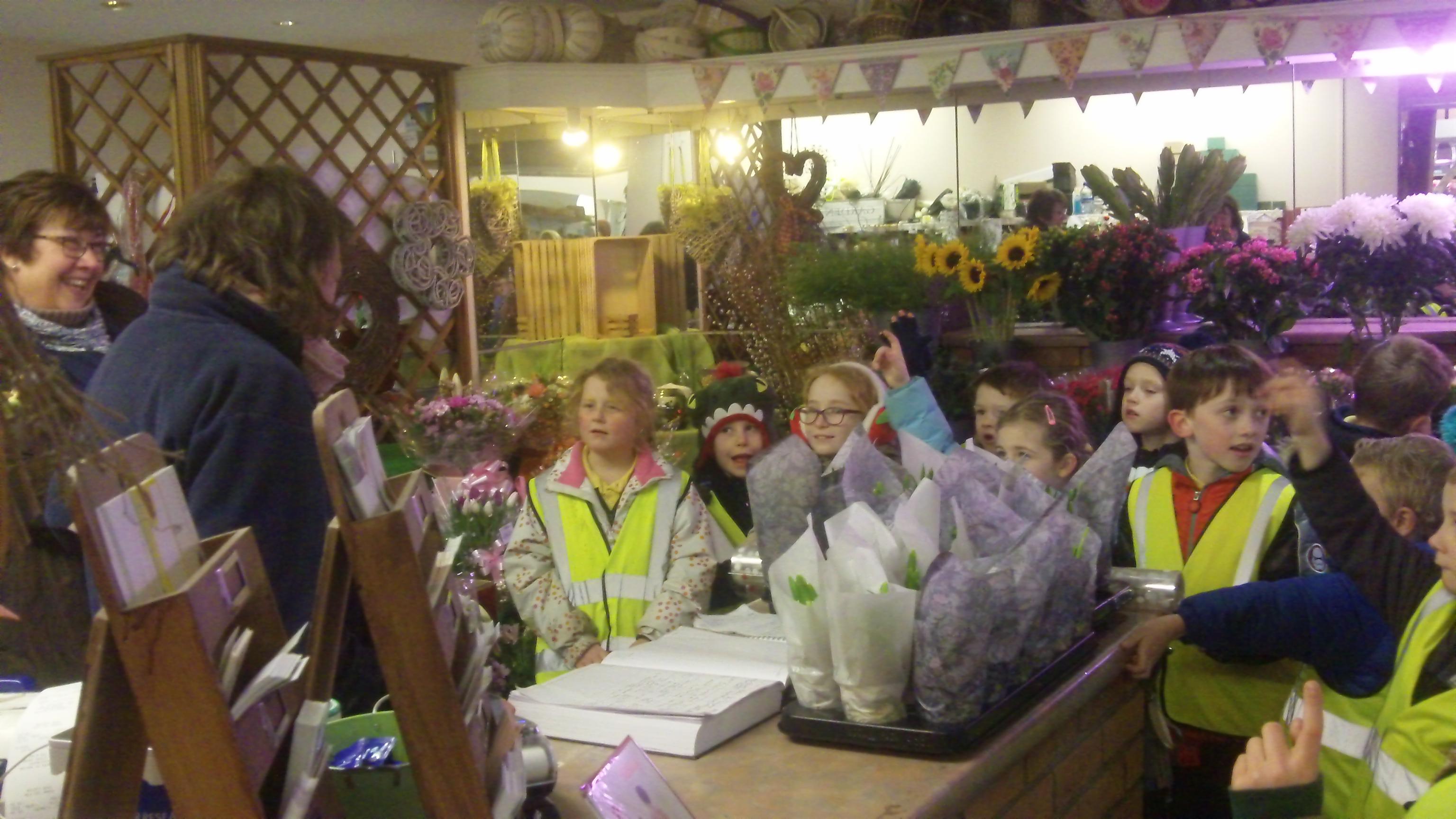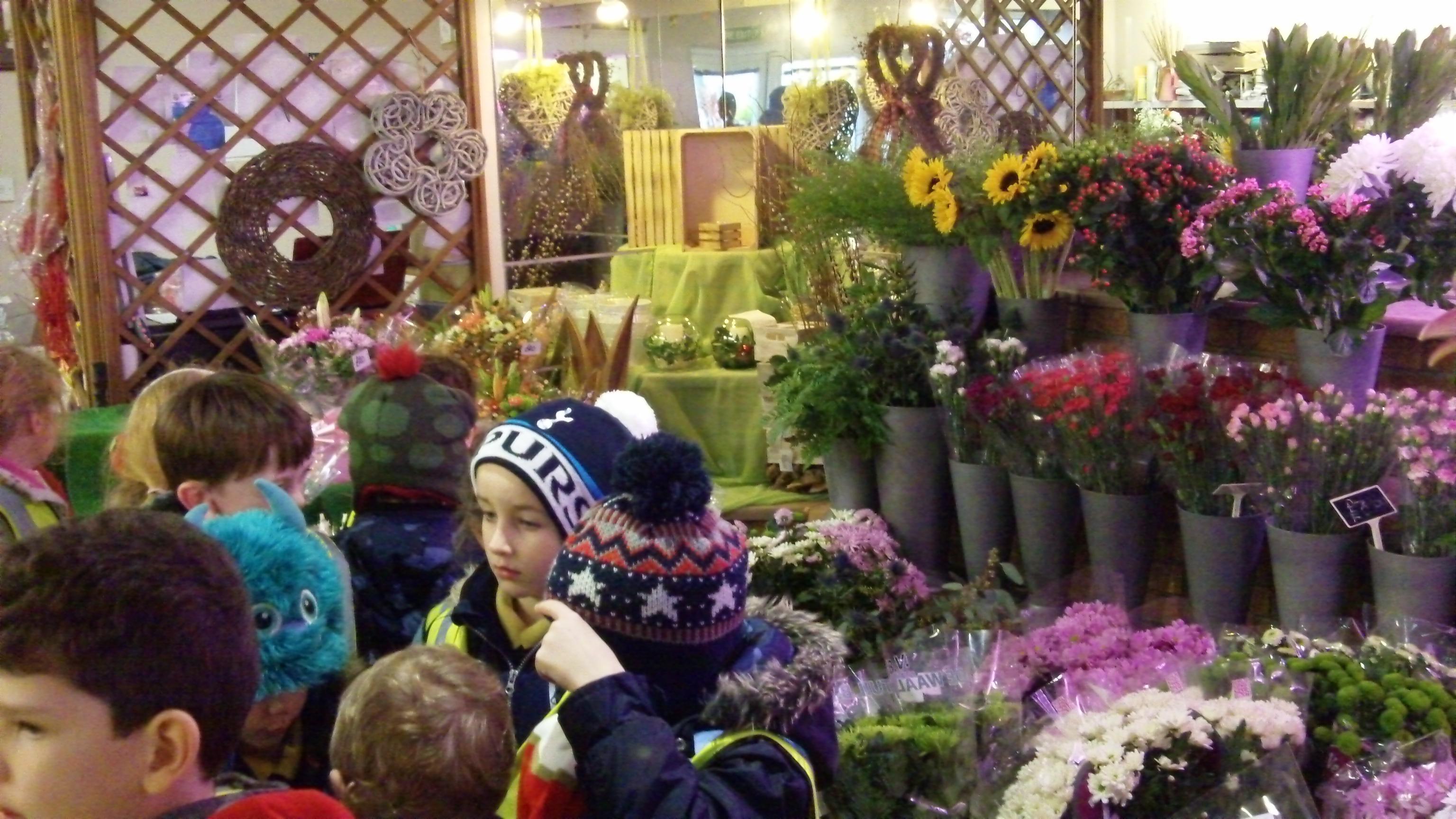 This week we visited Maxine's Flower Shop as part of our Scented Garden topic. We prepared lots of questions about being a florist and Maxine answered them all for us. We found out just how hard it is to be a florist, including: long hours, early starts, dealing with all sorts of customers and deliveries and meeting deadlines for many different types of celebrations. We also found out about what a florist shop needs to run so that we can make our own florist role play next week. There were some many things we hadn't thought of, such as: wrapping paper, ribbons, cards, baskets and even chocolates and handbags! Maxine very kindly gave us our own daffodil bulbs to take home and grow. Thank you to her for such generosity and for a fantastic, informative trip.