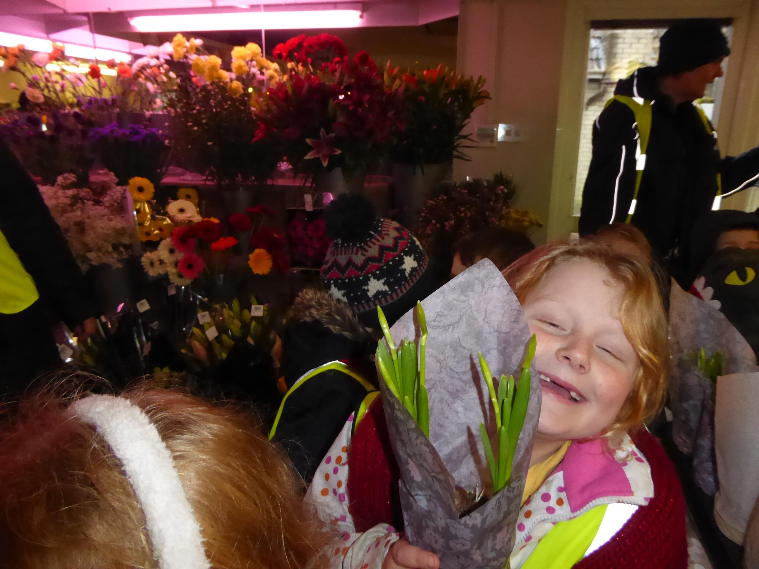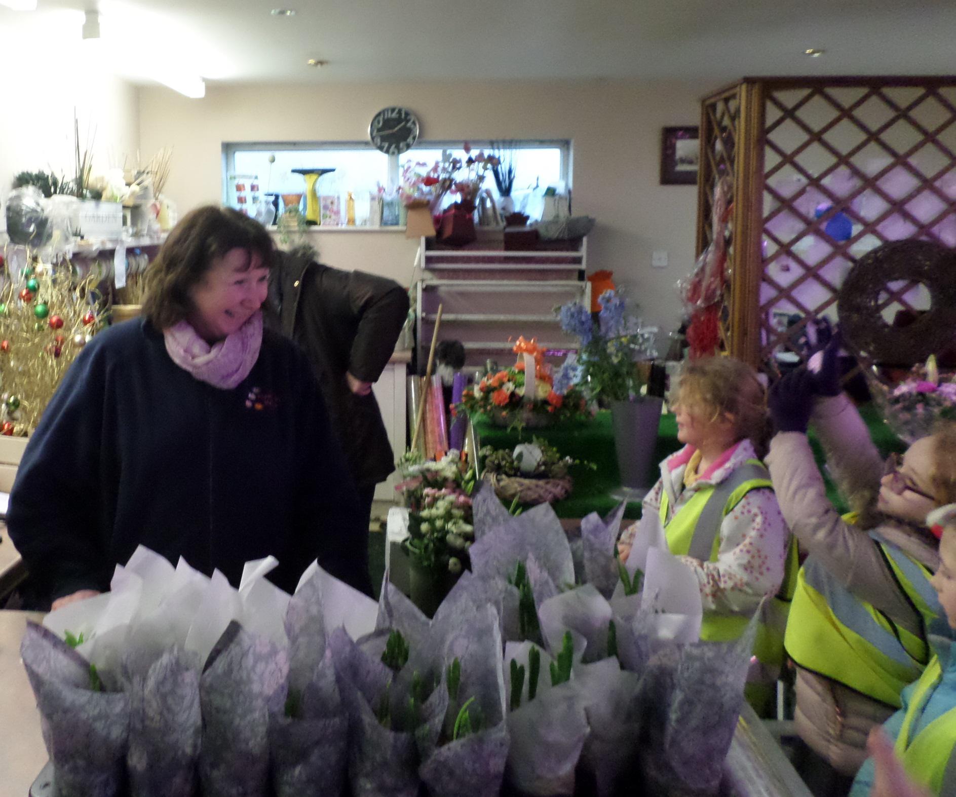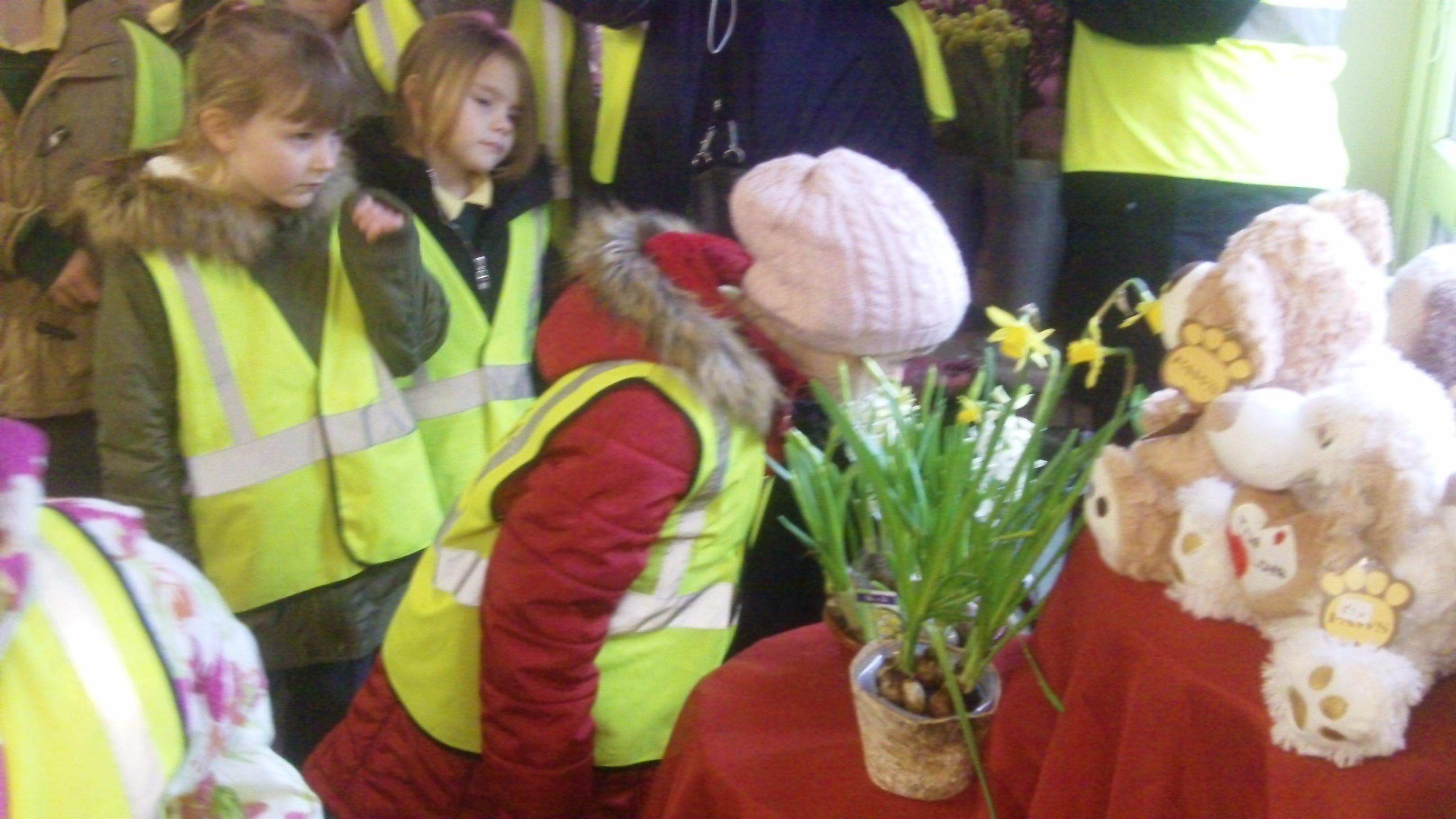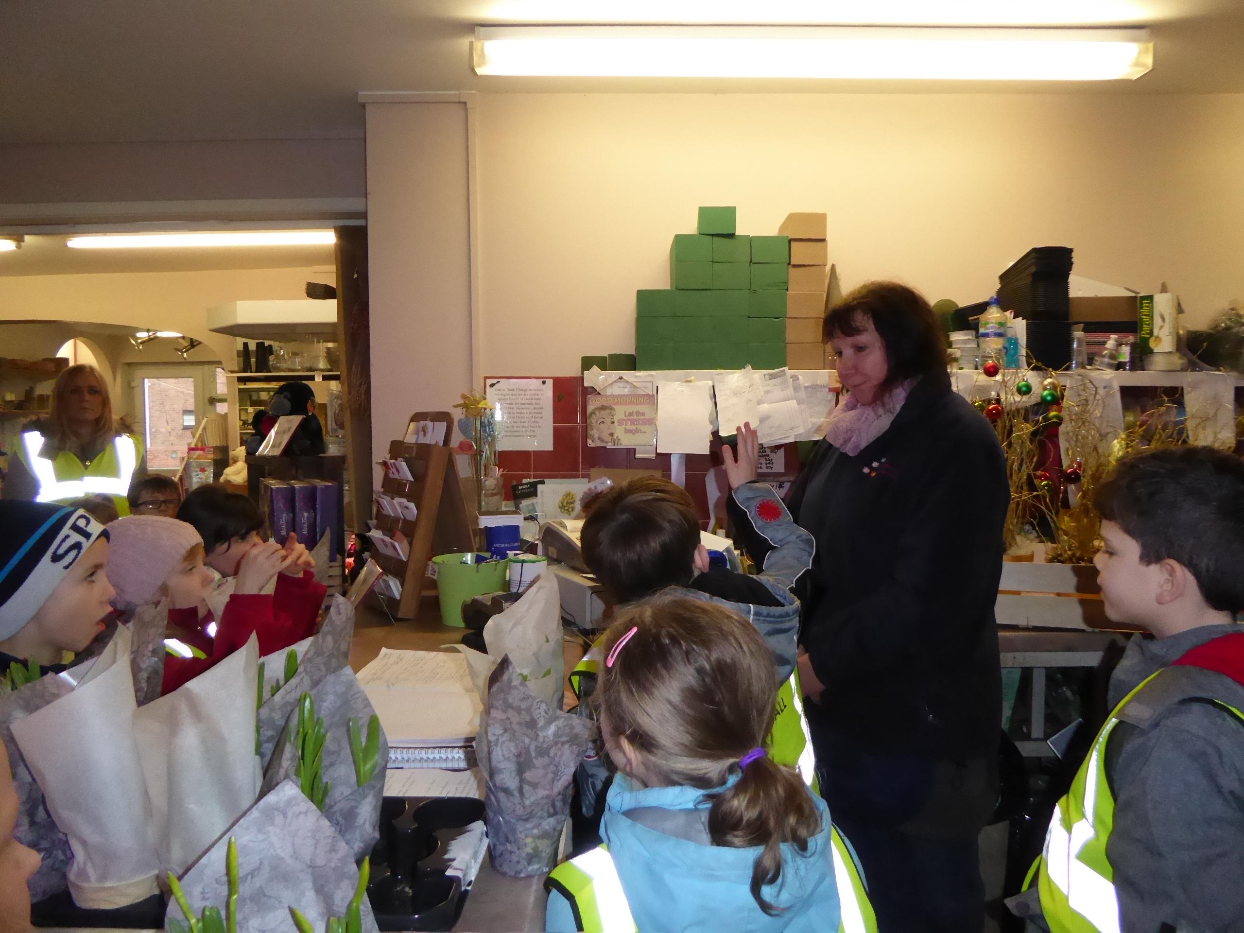 This week we visited Maxine's Flower Shop as part of our Scented Garden topic. We prepared lots of questions about being a florist and Maxine answered them all for us. We found out just how hard it is to be a florist, including: long hours, early starts, dealing with all sorts of customers and deliveries and meeting deadlines for many different types of celebrations. We also found out about what a florist shop needs to run so that we can make our own florist role play next week. There were some many things we hadn't thought of, such as: wrapping paper, ribbons, cards, baskets and even chocolates and handbags! Maxine very kindly gave us our own daffodil bulbs to take home and grow. Thank you to her for such generosity and for a fantastic, informative trip.