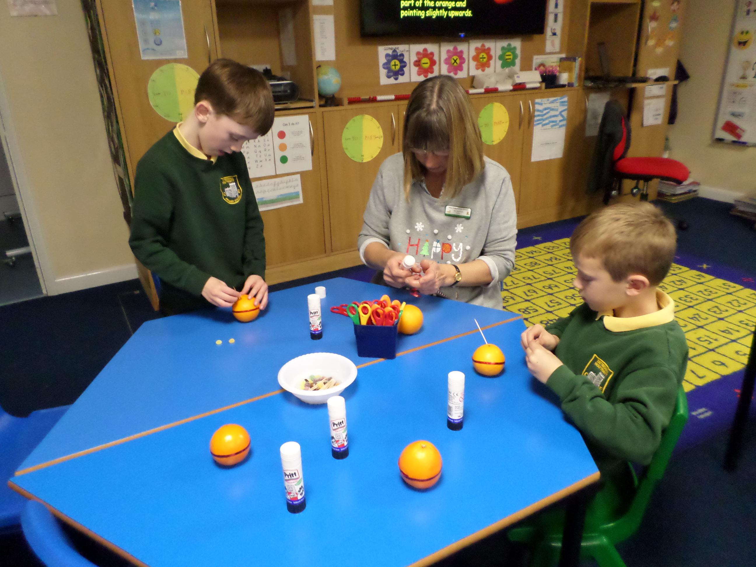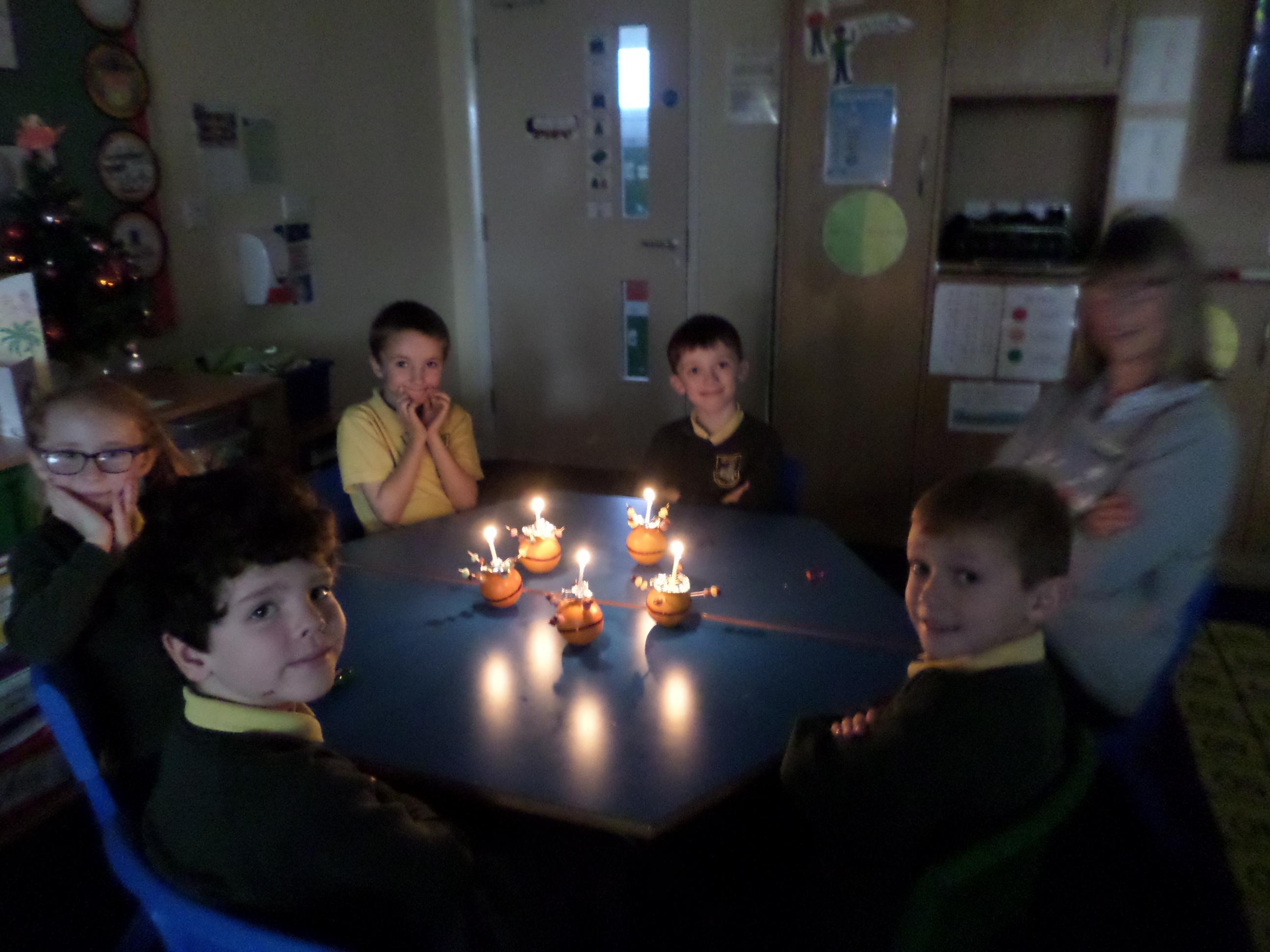 Oak Class followed instructions to make a Christingle. We found out what each part of the Christingle represents and lit our candles so we could feel and experience 'Jesus, the light of the world'.