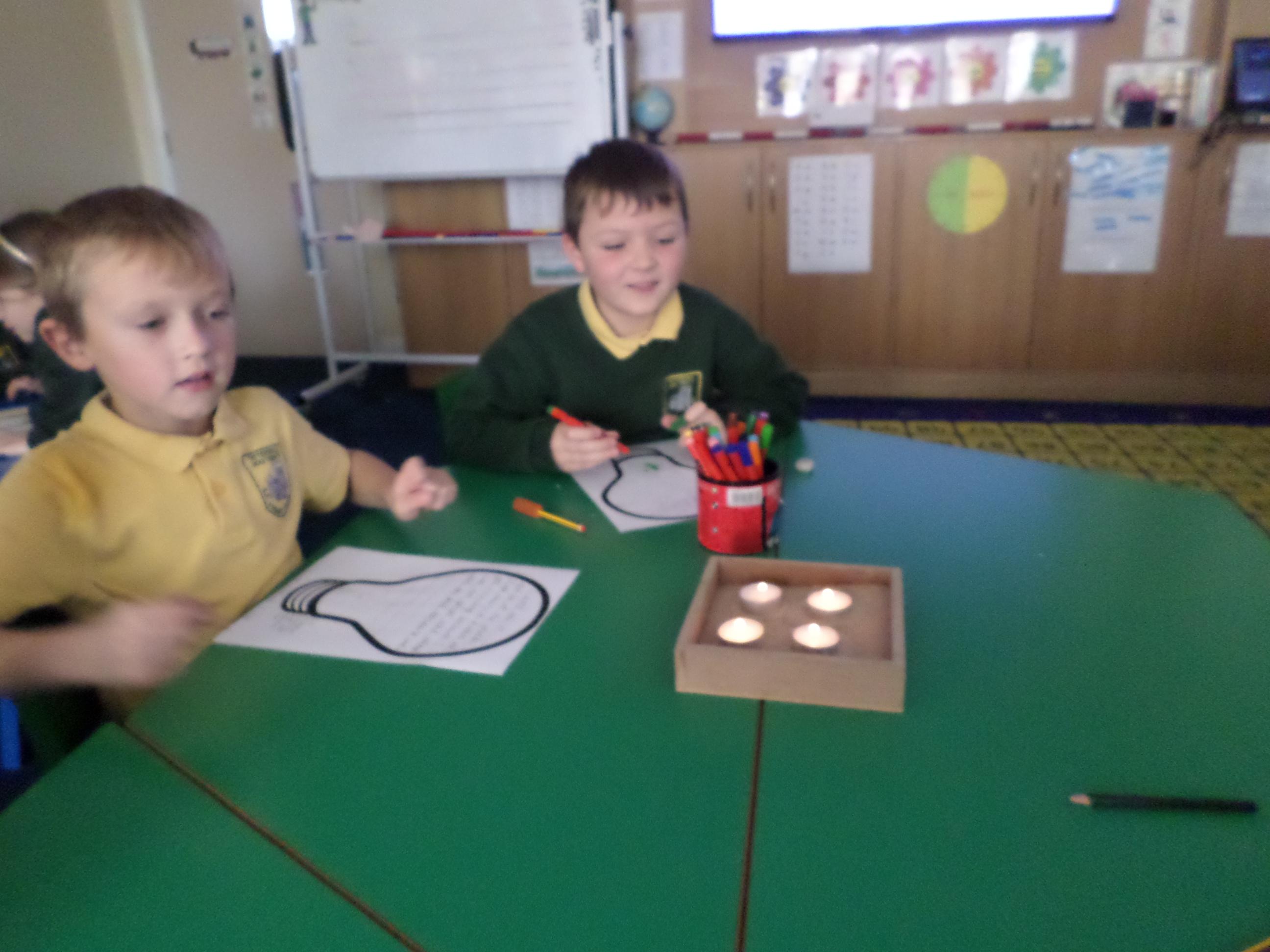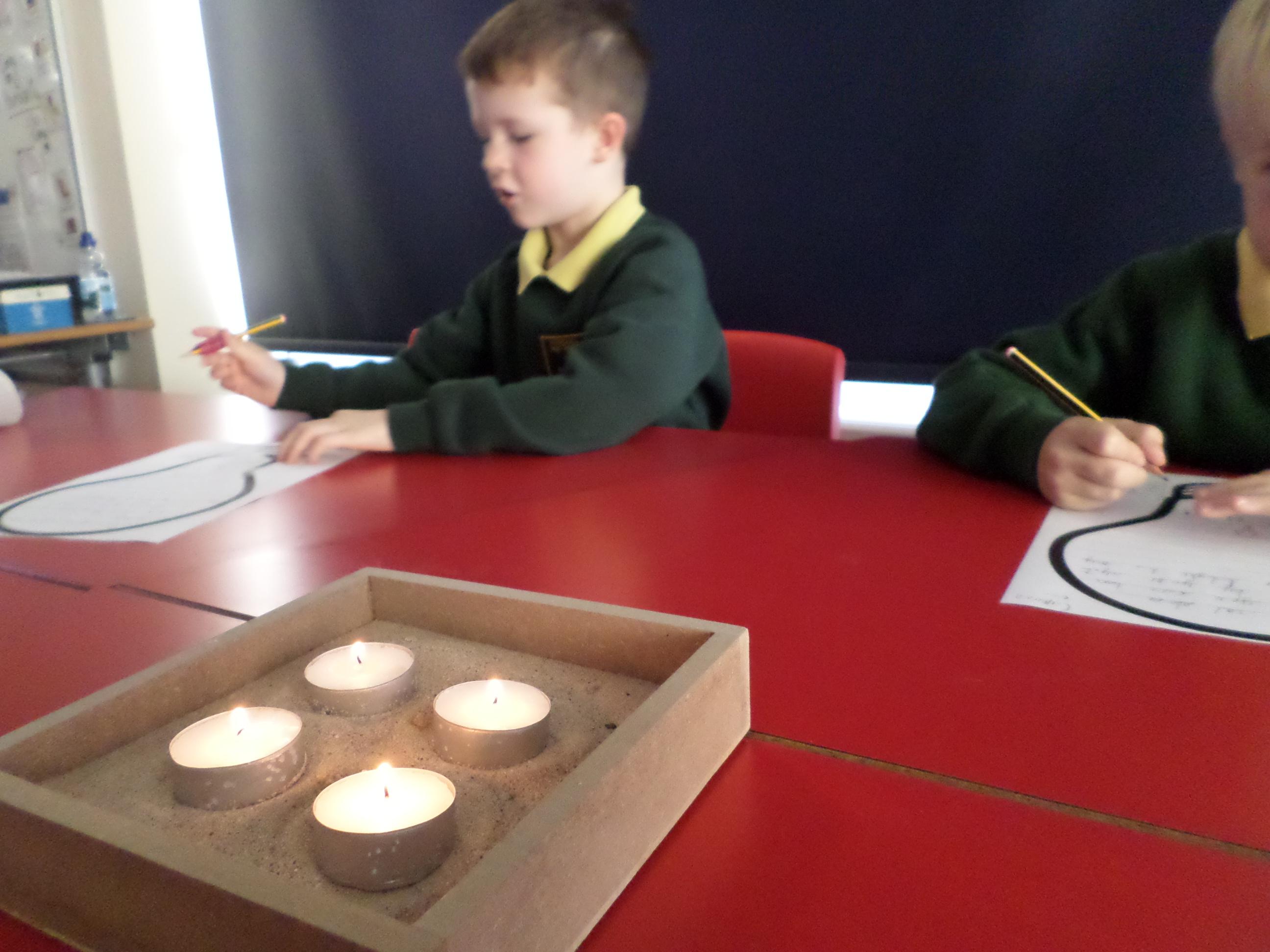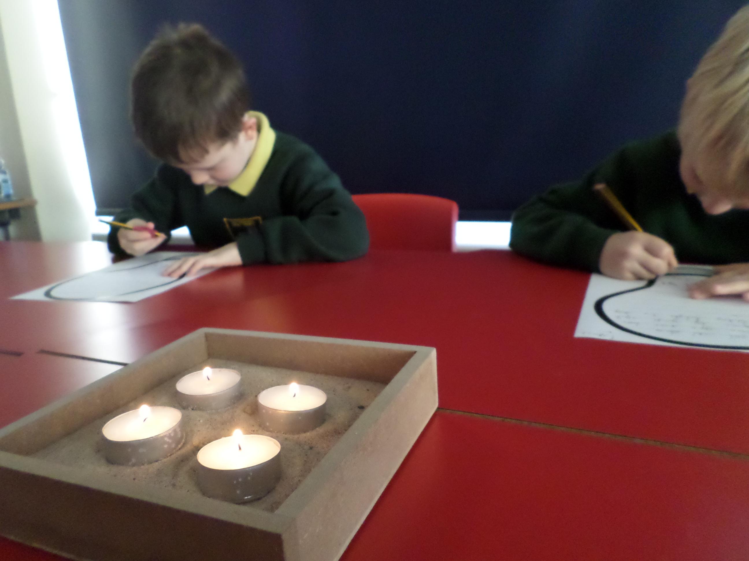 We have been thinking about how light is used to celebrate in many different ways, in many different religions. We have been discussing Jesus as the 'light of the world' as well as how light makes us feel. We made 'light bulbs' to say how we would 'bring light' into someone's life. We had real candles to help us remember how light makes us feel.
