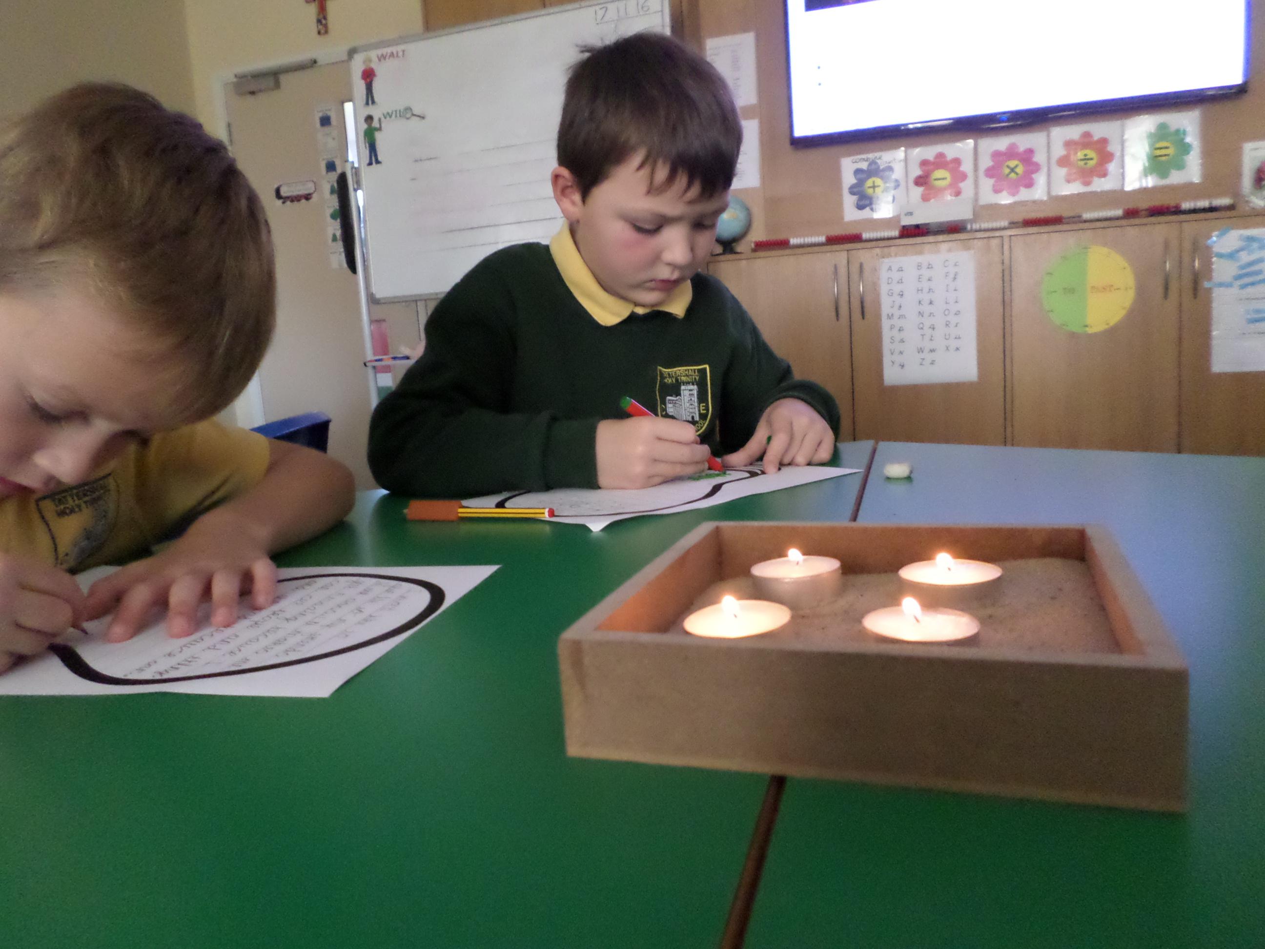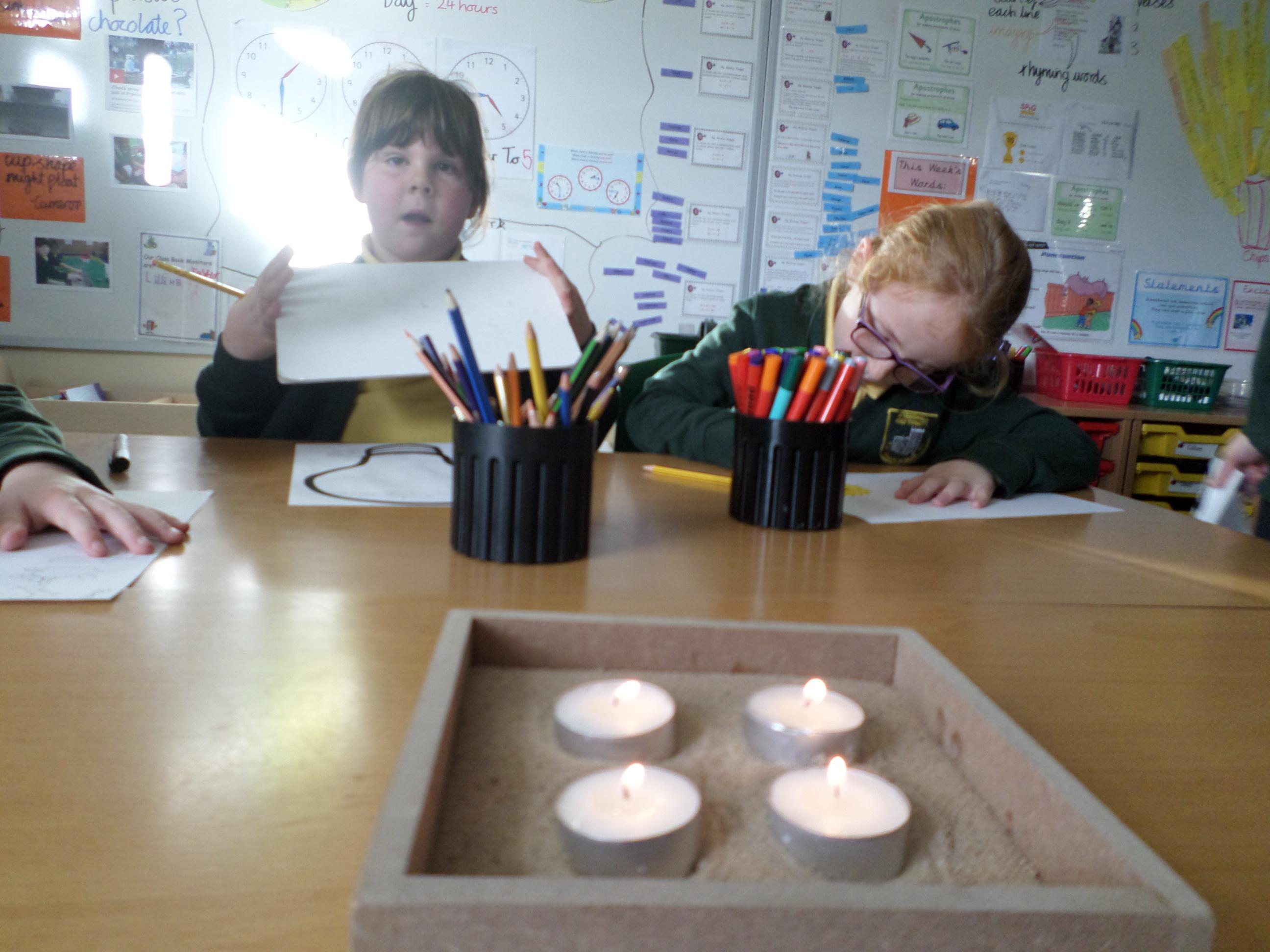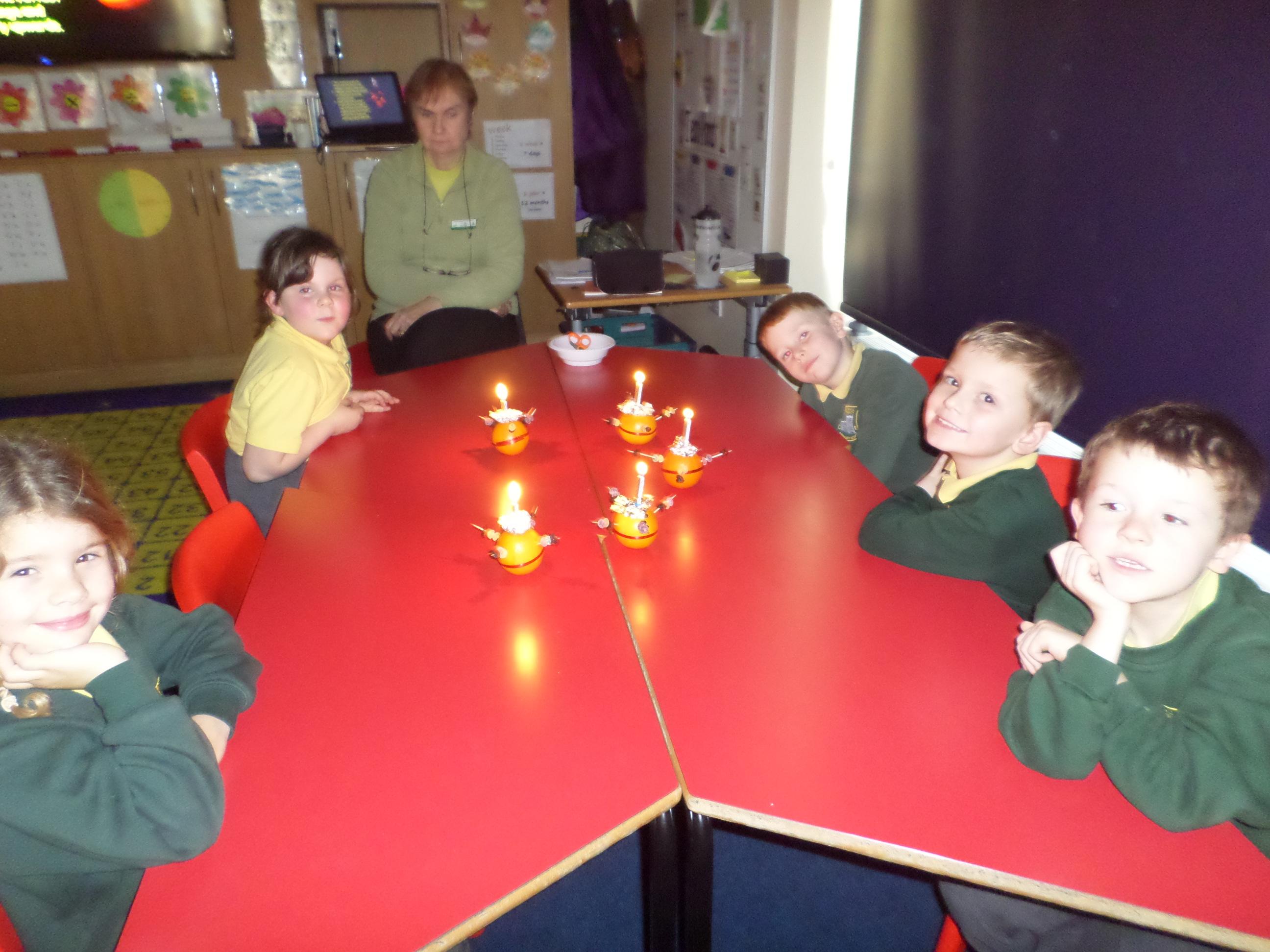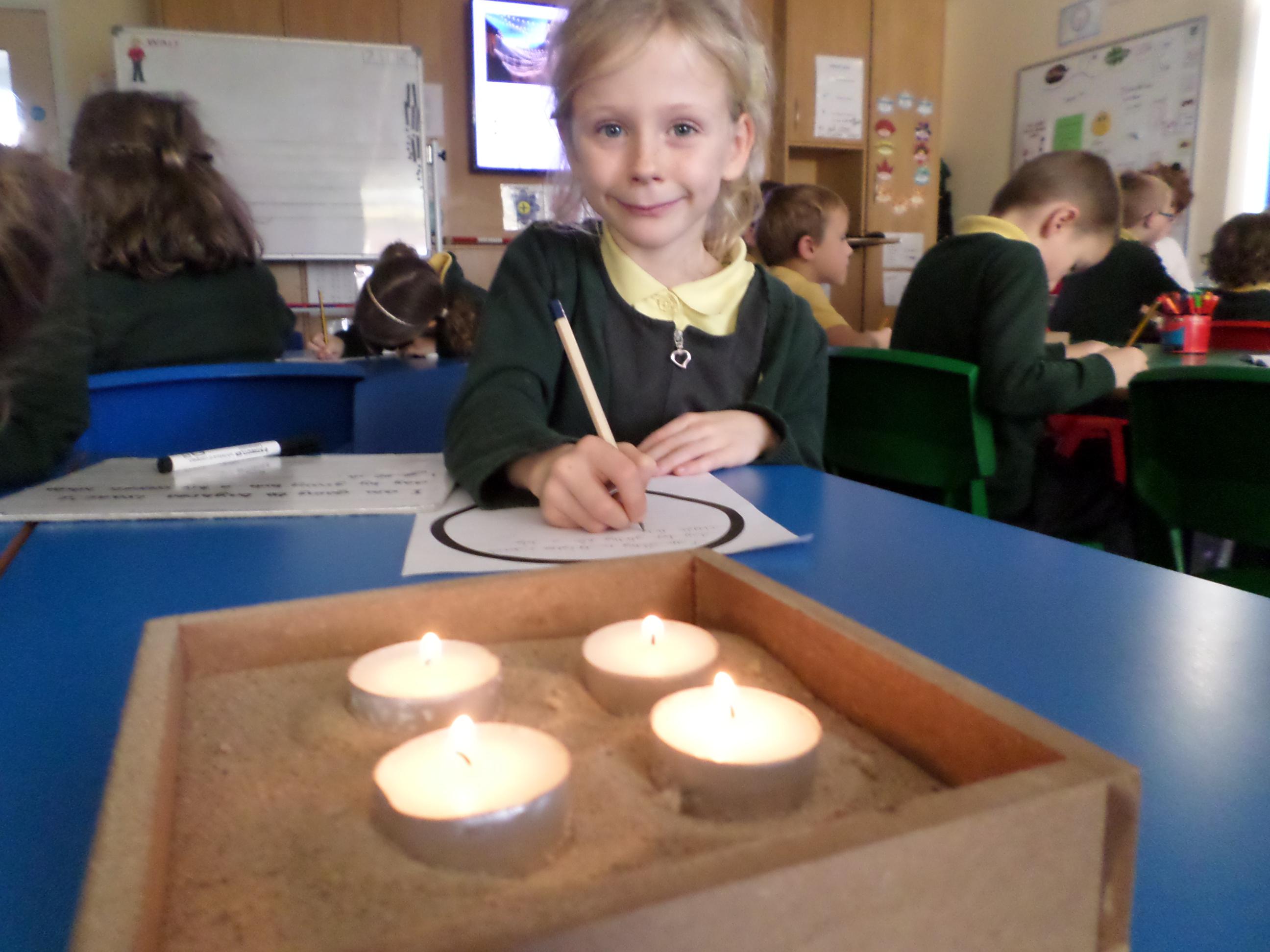 We have been thinking about how light is used to celebrate in many different ways, in many different religions. We have been discussing Jesus as the 'light of the world' as well as how light makes us feel. We made 'light bulbs' to say how we would 'bring light' into someone's life. We had real candles to help us remember how light makes us feel.