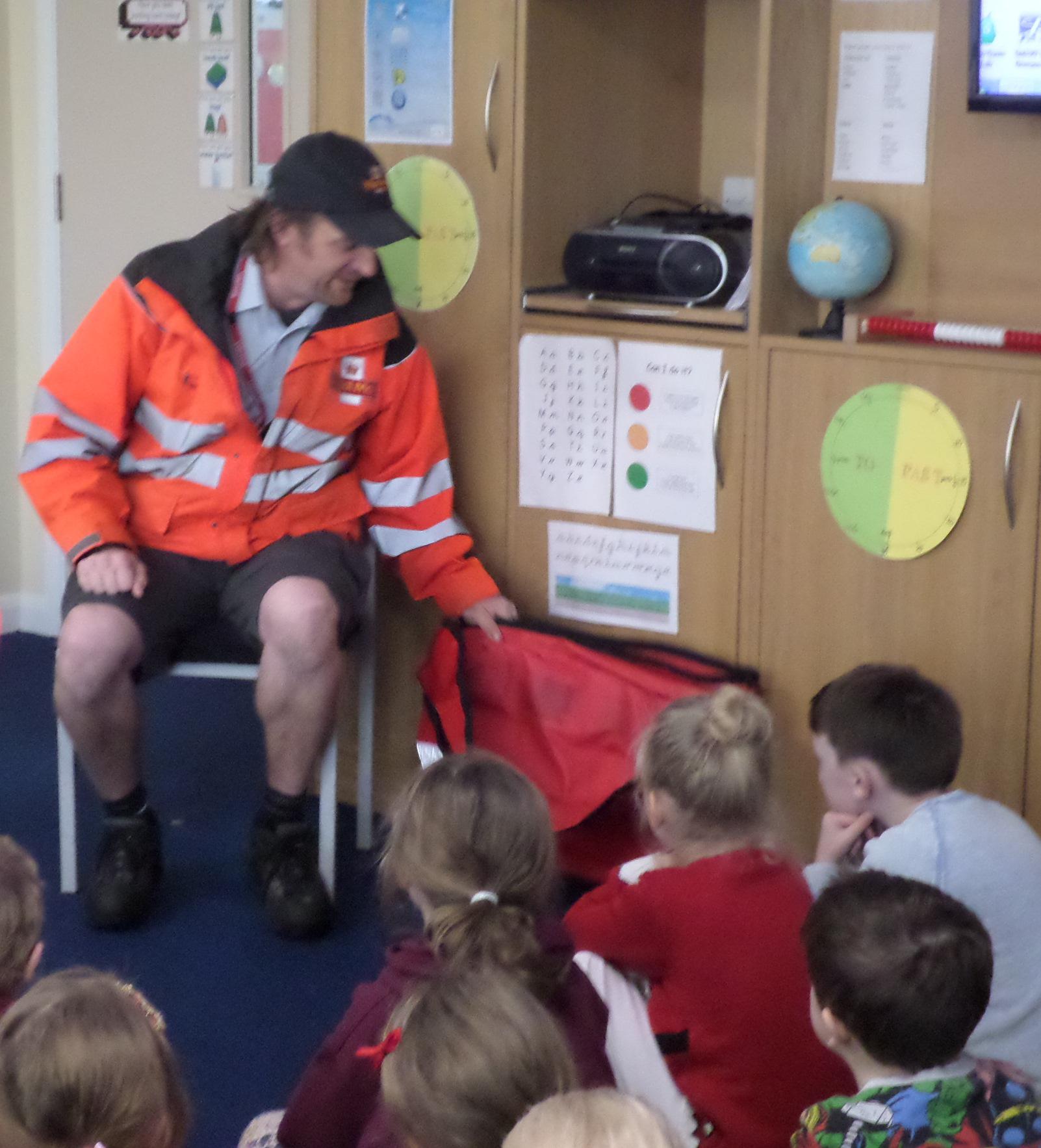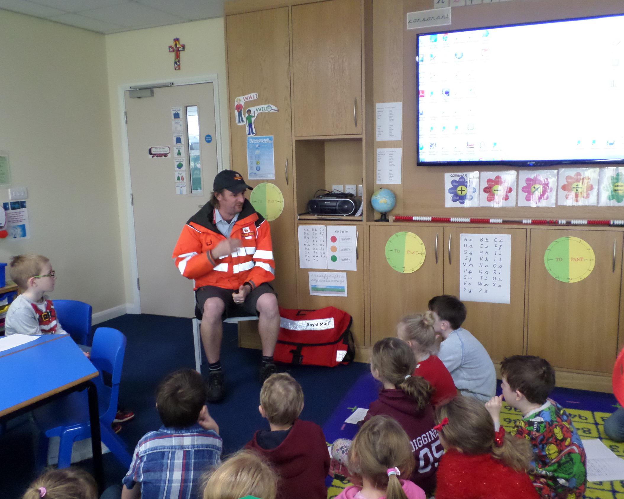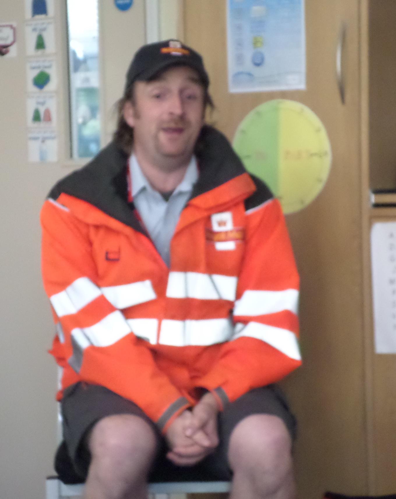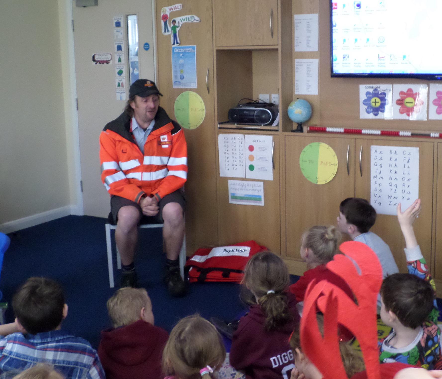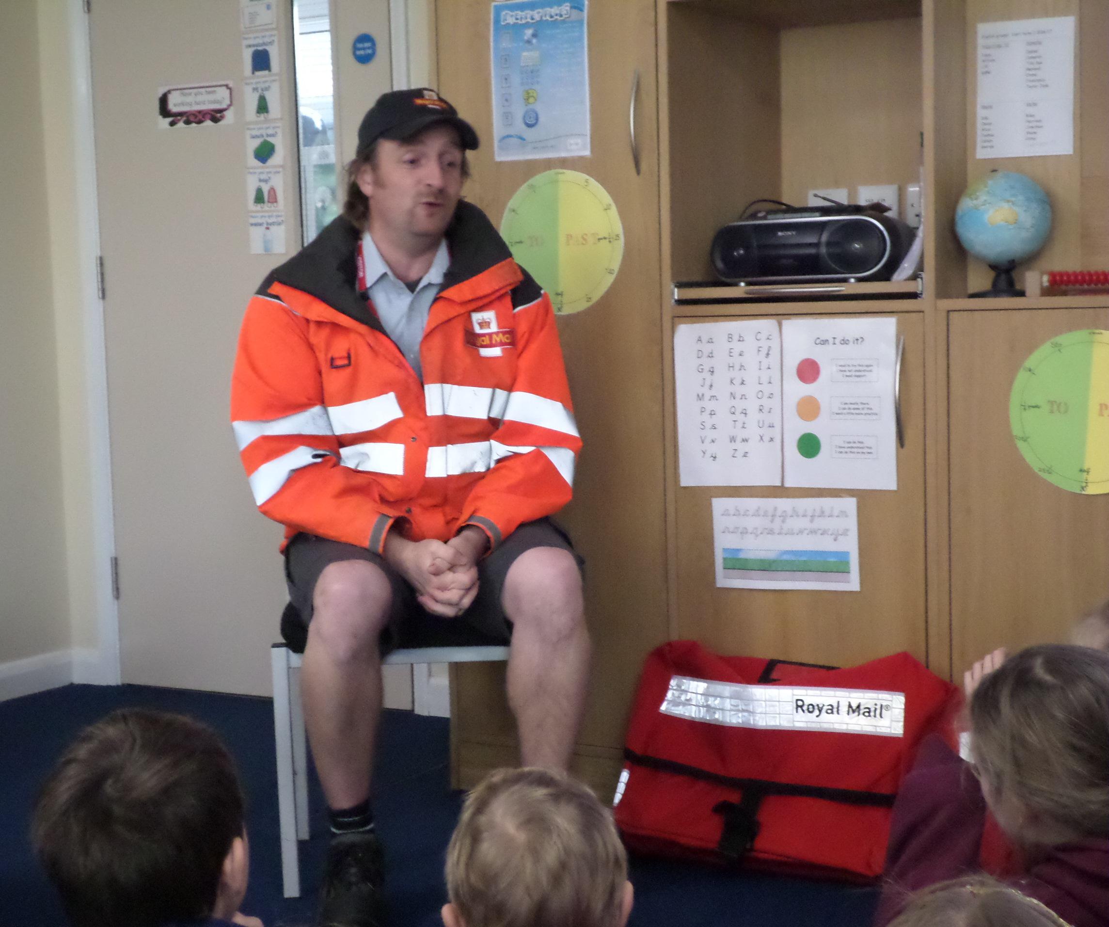 We learned a lot about being a postman, for example: they work everyday apart from Sundays and Christmas Day, he delivers to over 500 houses or businesses, with letters going to at least 400 of them each day, on busy days (such as in December) he can deliver up to 1500 letters or parcels, everyday he walks between 8 and 9 miles, each year he gets 2 new pairs of boots, the biggest parcel he has delivered was a car bumper and, yes, he has been chased by dogs!