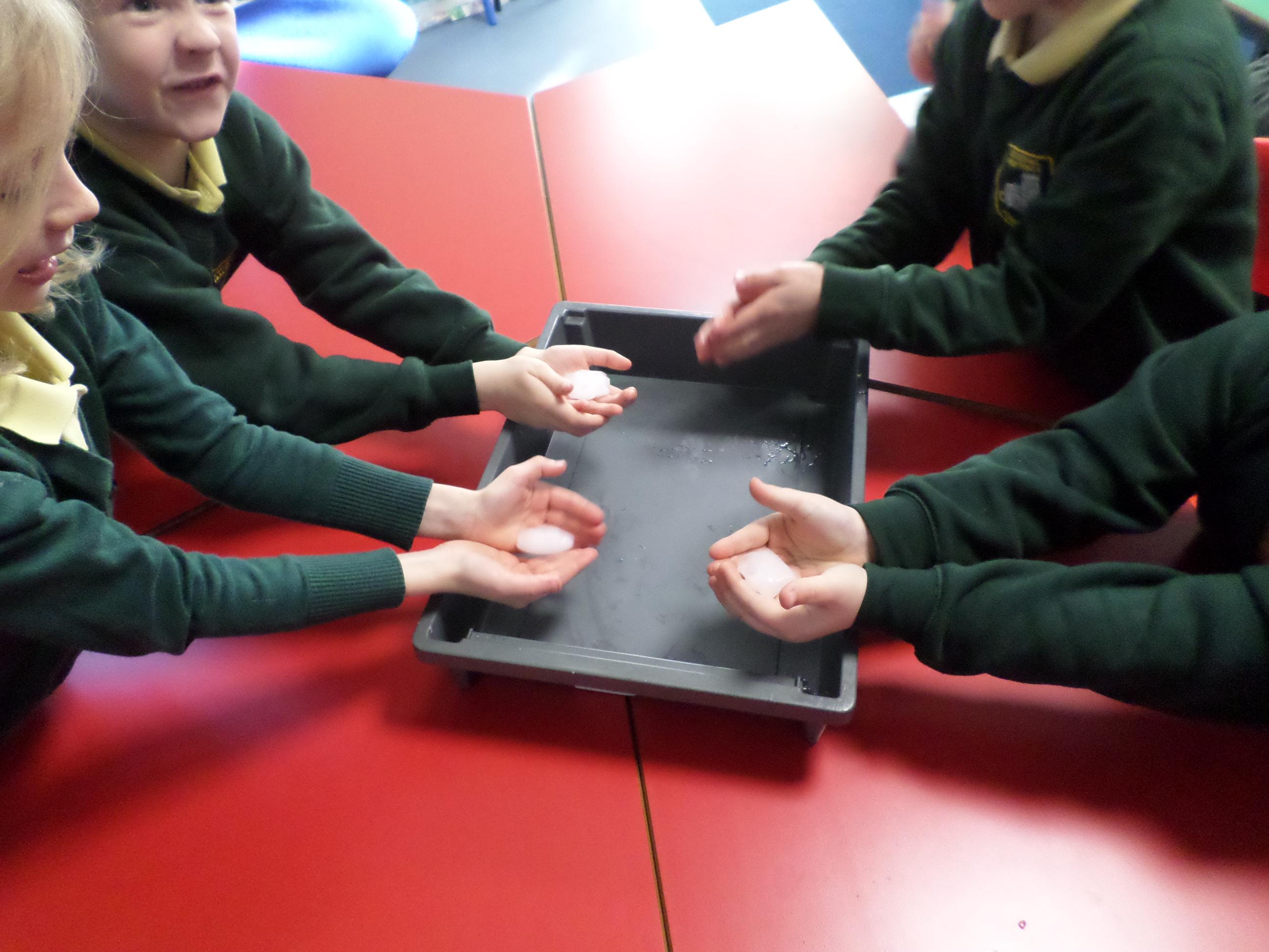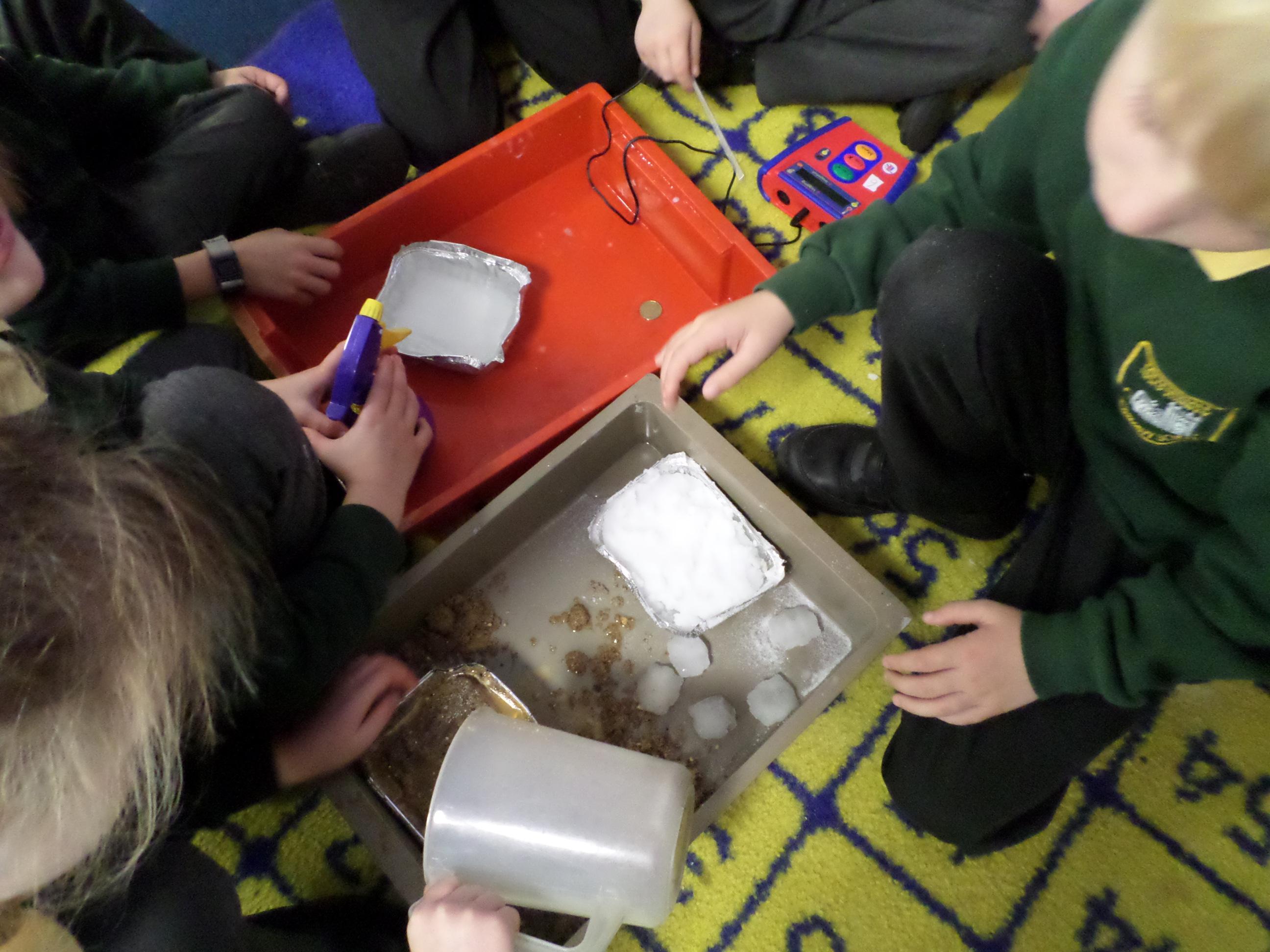 Oak have been learning all about the properties of ice and other frozen liquids. We used log boxes to record temperatures and investigated how ice melts under different conditions, including: out in the sun, on the radiator, in the room, covered in salt and covered in grit. We also compared frozen water to frozen black current an milk. One block took over 24 hours to melt it was so big! We recorded it using a time lapse camera and discussed the graph data and how it changed over the time period. We will investigate how to stop ice melting next.