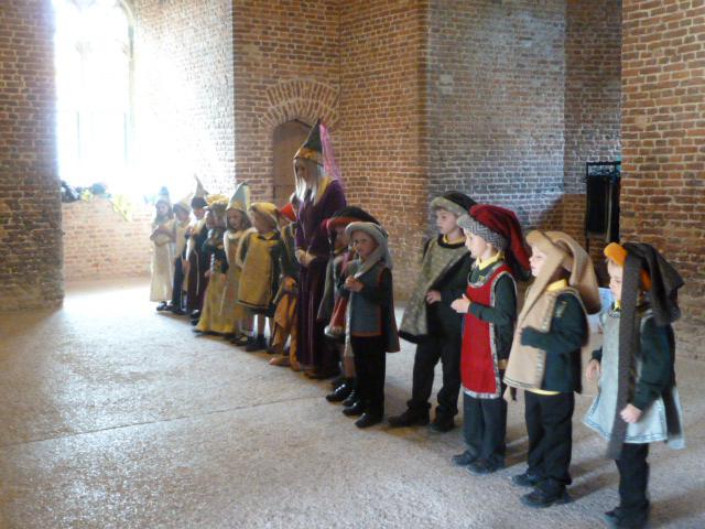 On Monday (12th September) we went to Tattershall Castle to start our topic of Towers, Turrets and Tunnels. We had an amazing time! First we had a tour of the castle and learned many interesting facts about life in the past and Lord and Lady Cromwell. We went from the cellar to the very top, where the view was incredible! After the tour Paul, our guide, taught us some medieval dances and we even got to dress up in medieval clothes (check out the photos below).