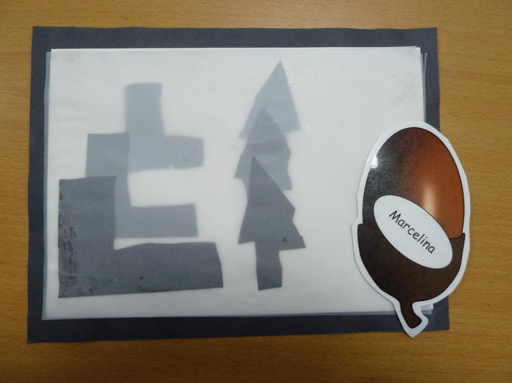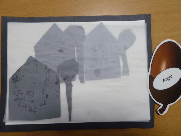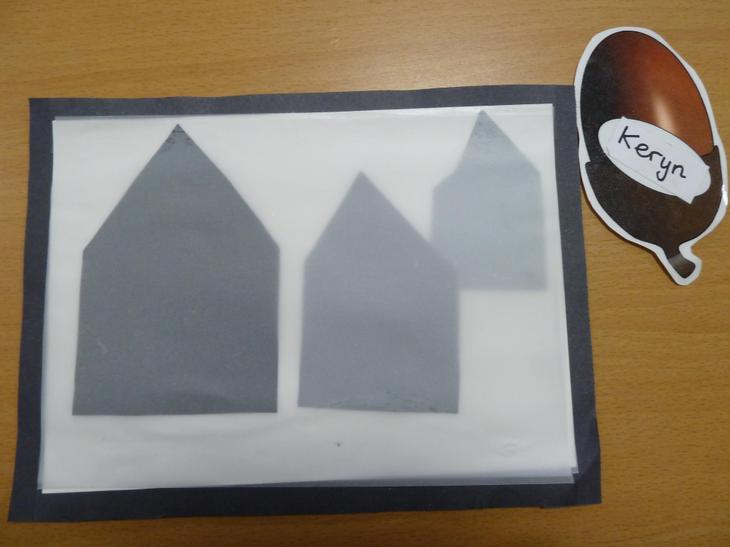 The children in Oak made 'fog' pictures as part of their weather topic by cutting a black silhouette more than once and layering it between tracing paper to create a foggy effect.