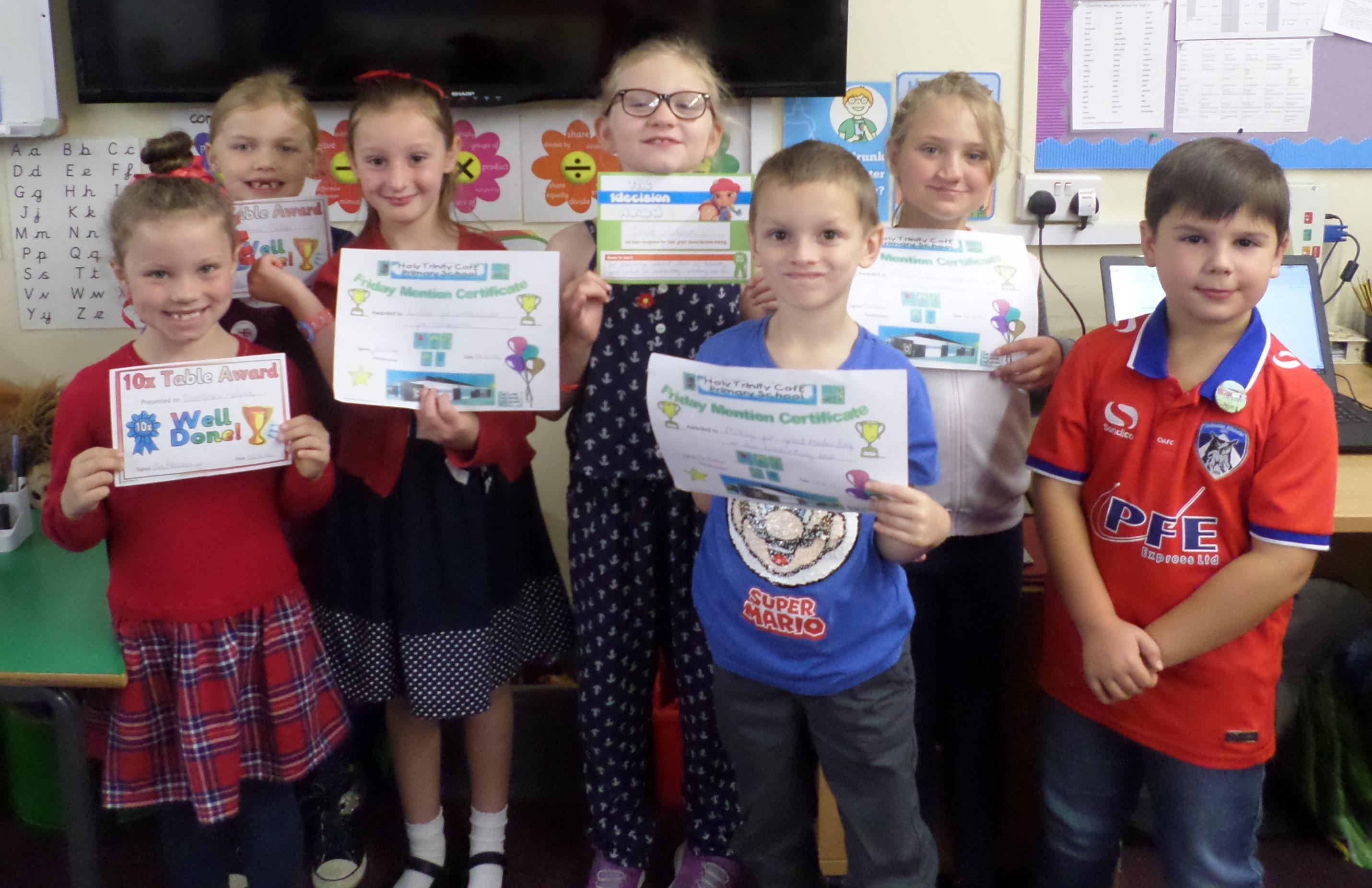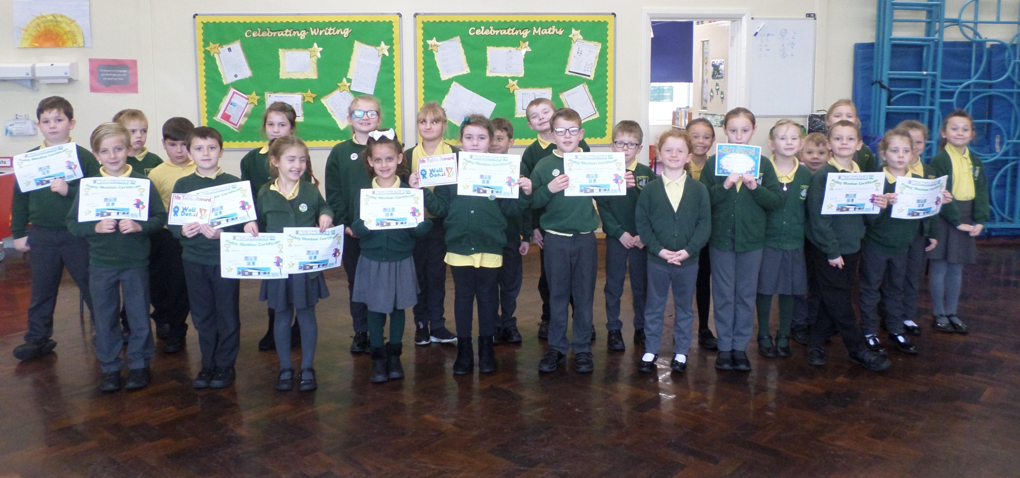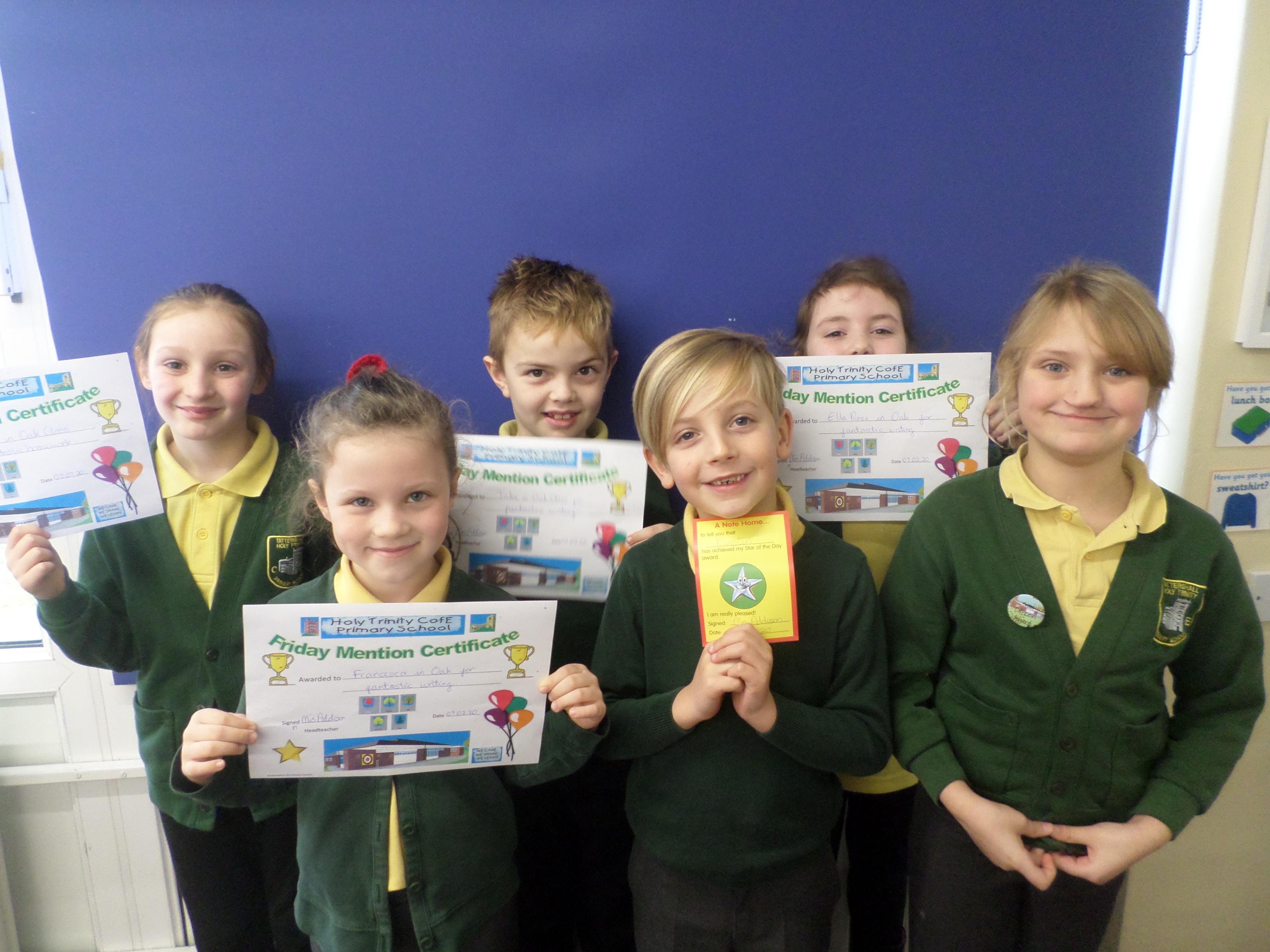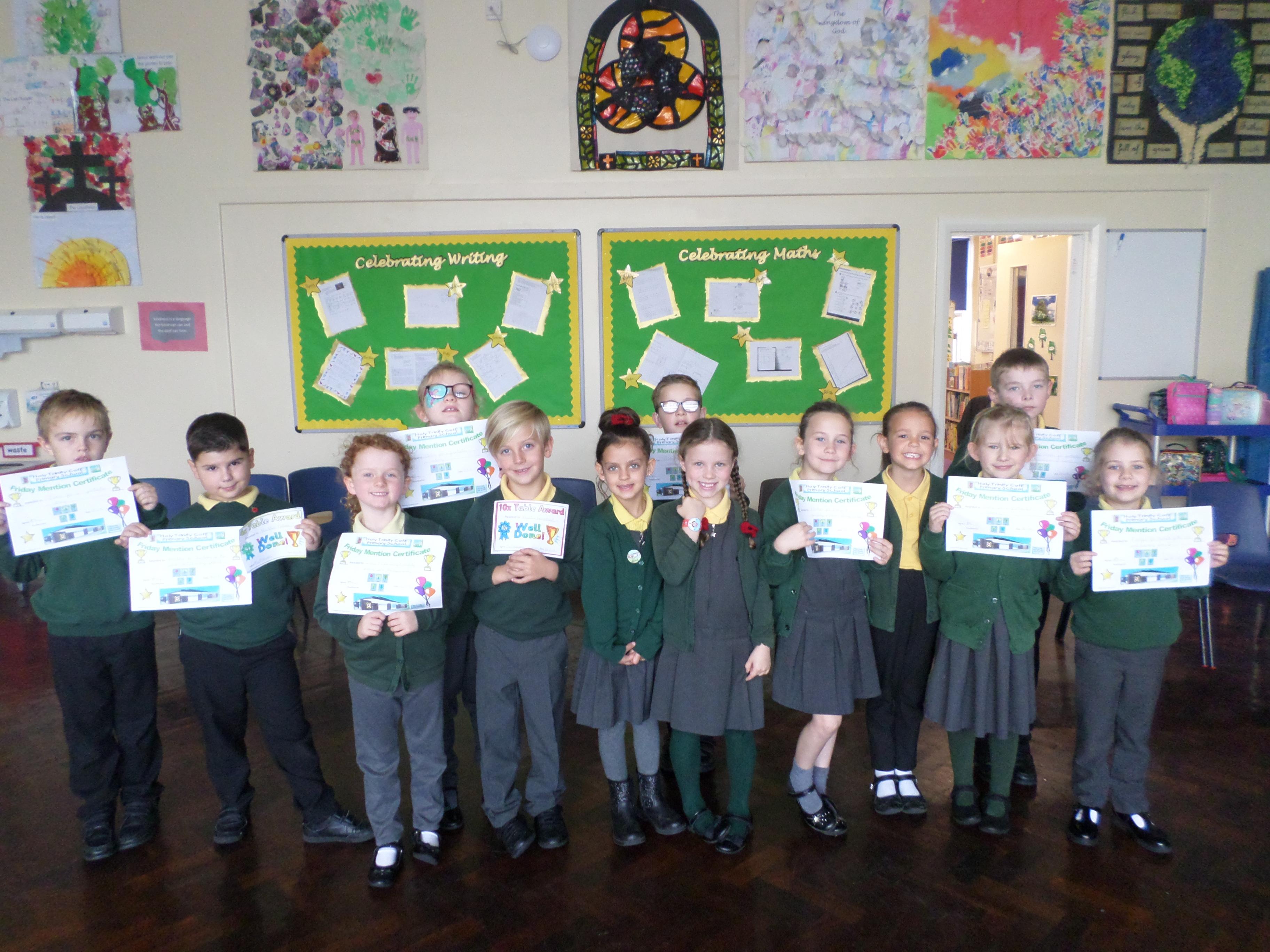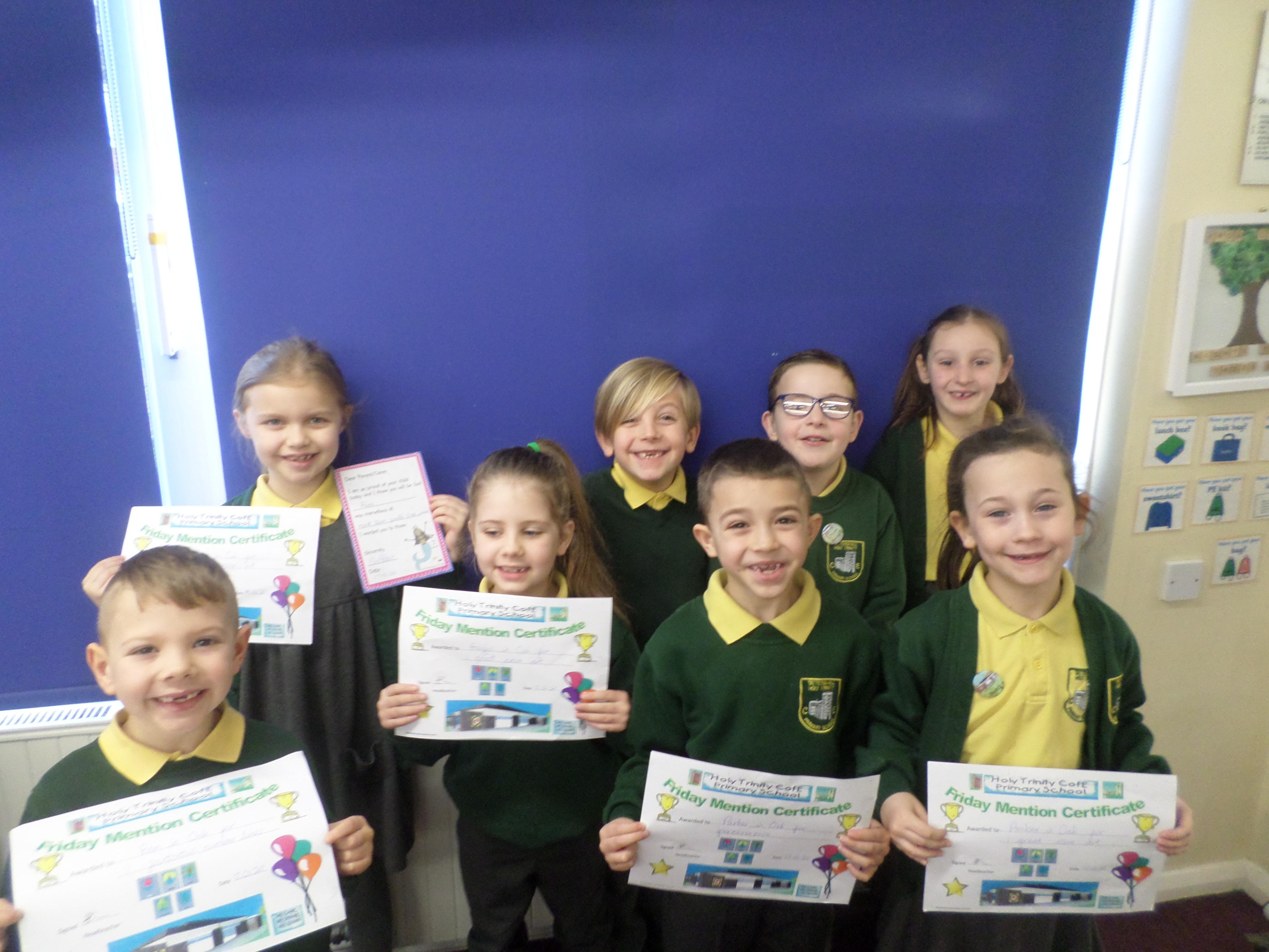 On this page are photographs of the children who receive awards including Friday Mentions, the Citizen Badge, Team Points of the Week and work on the Hall displays.