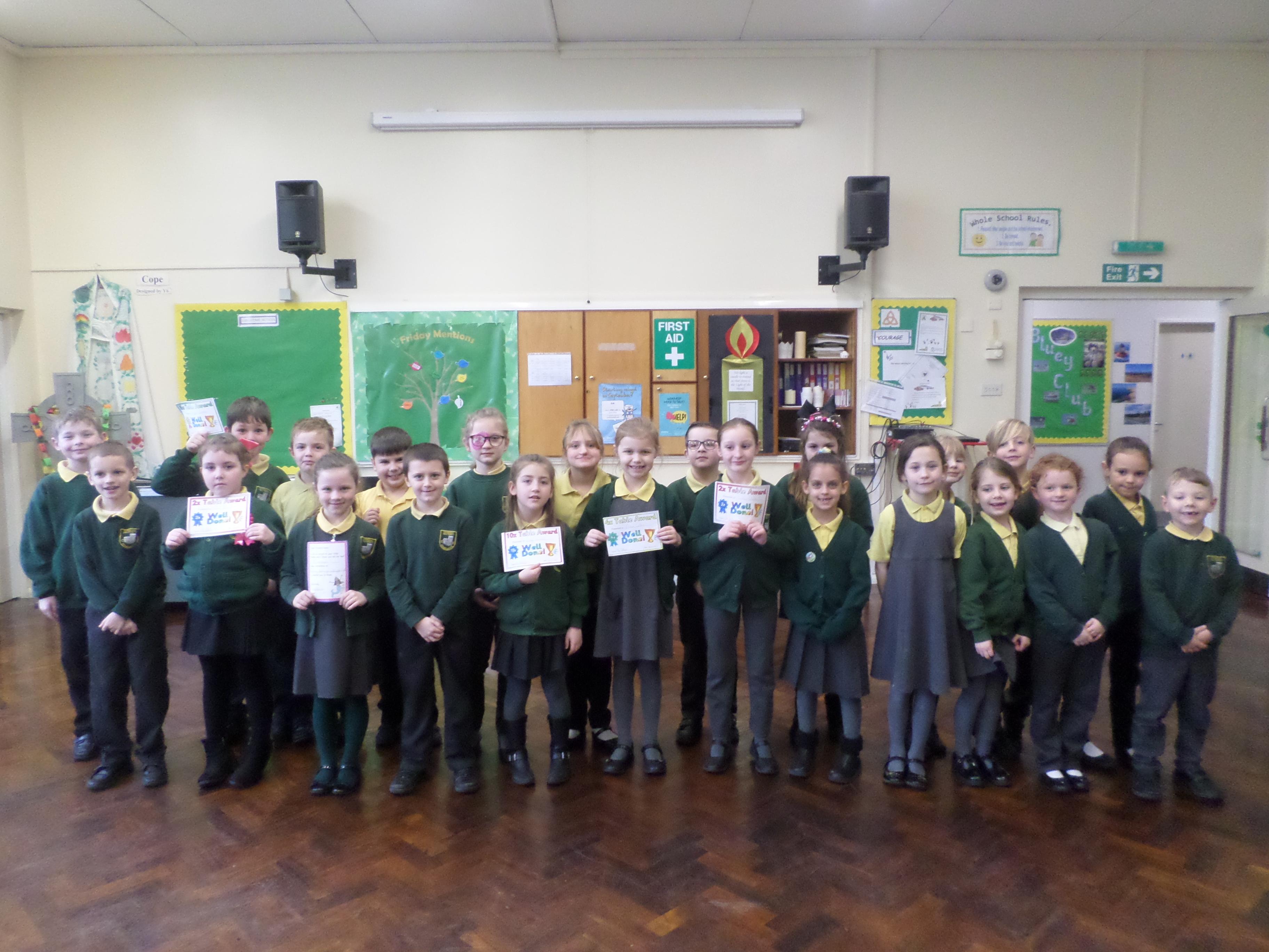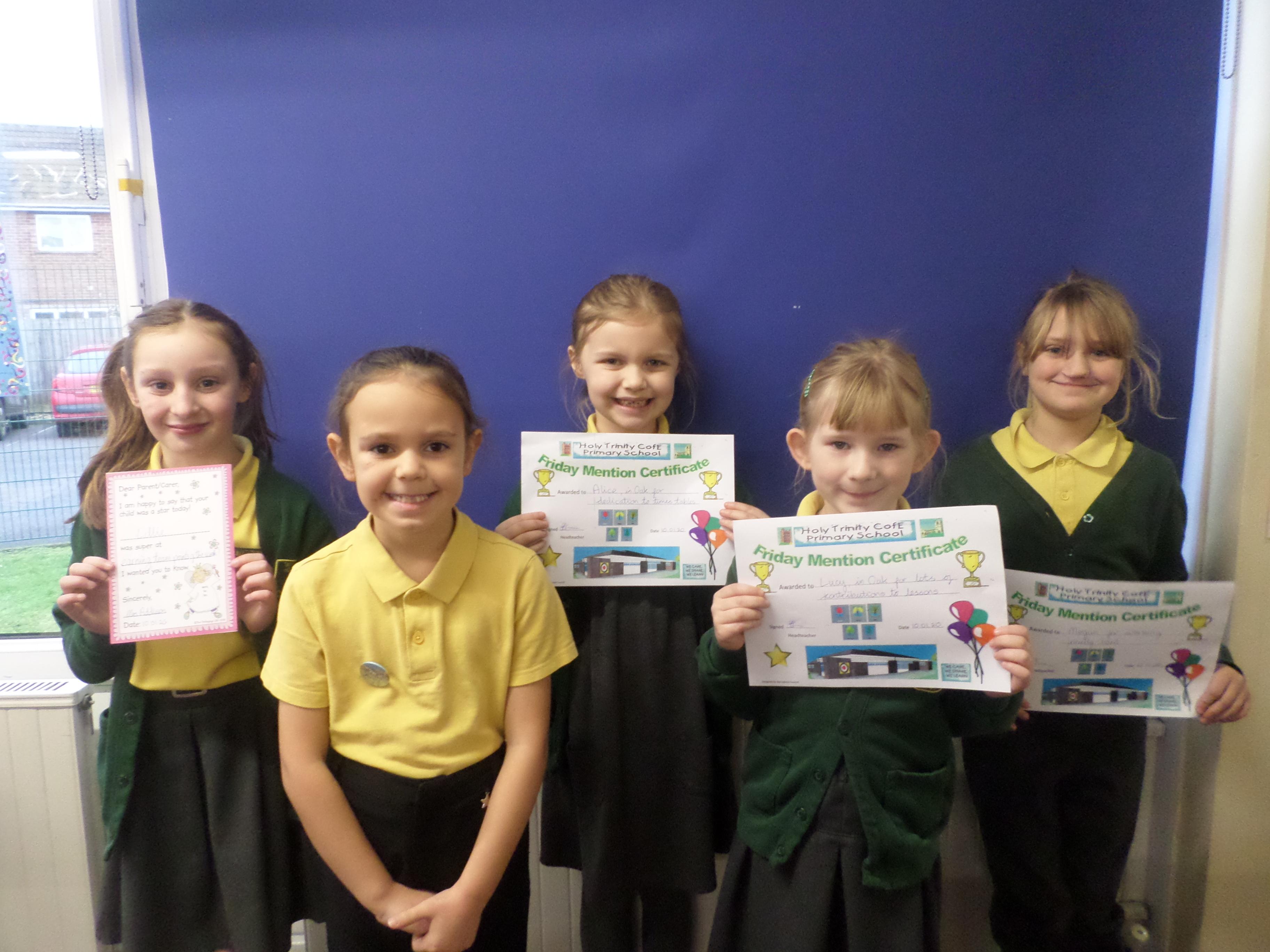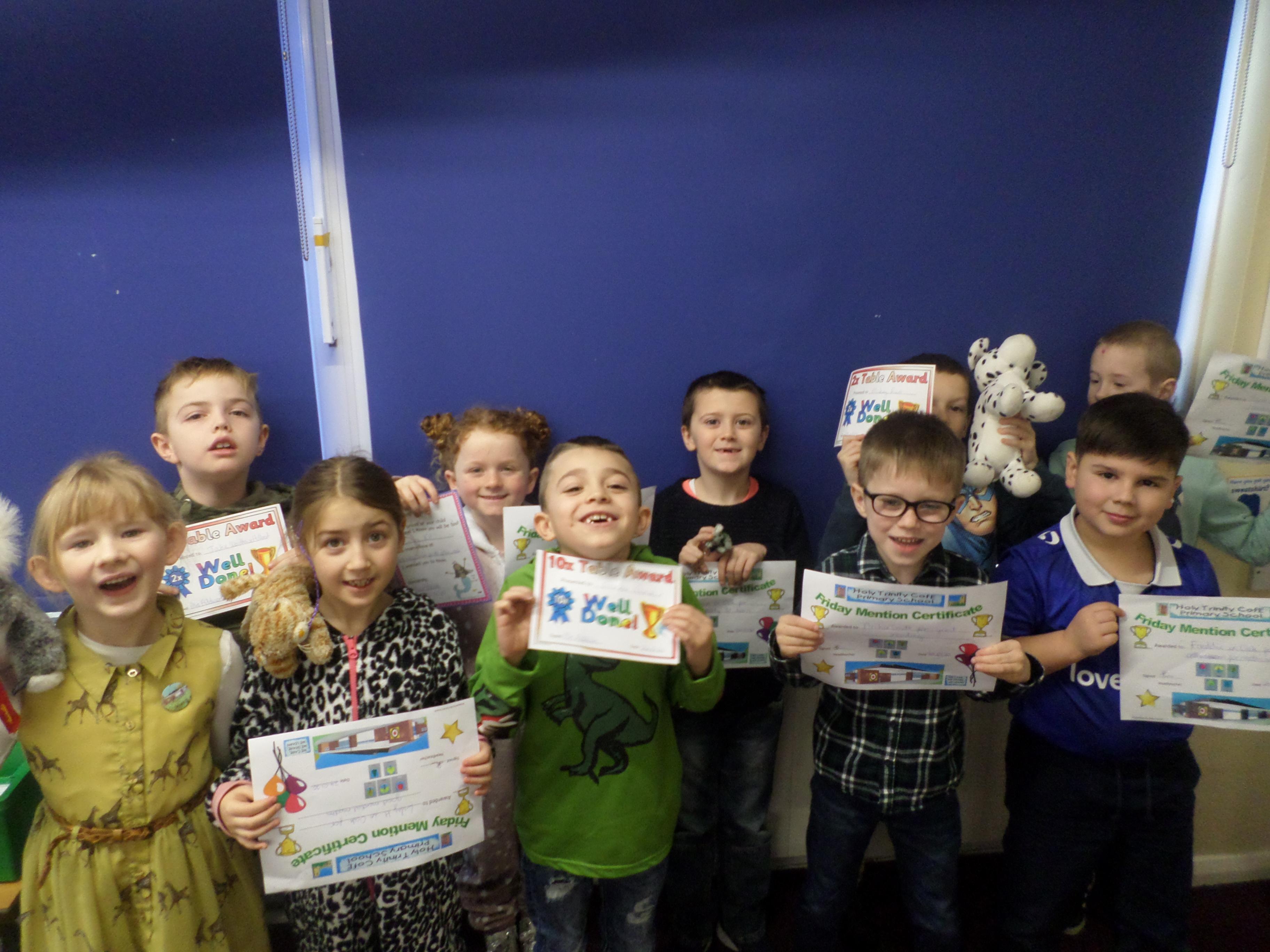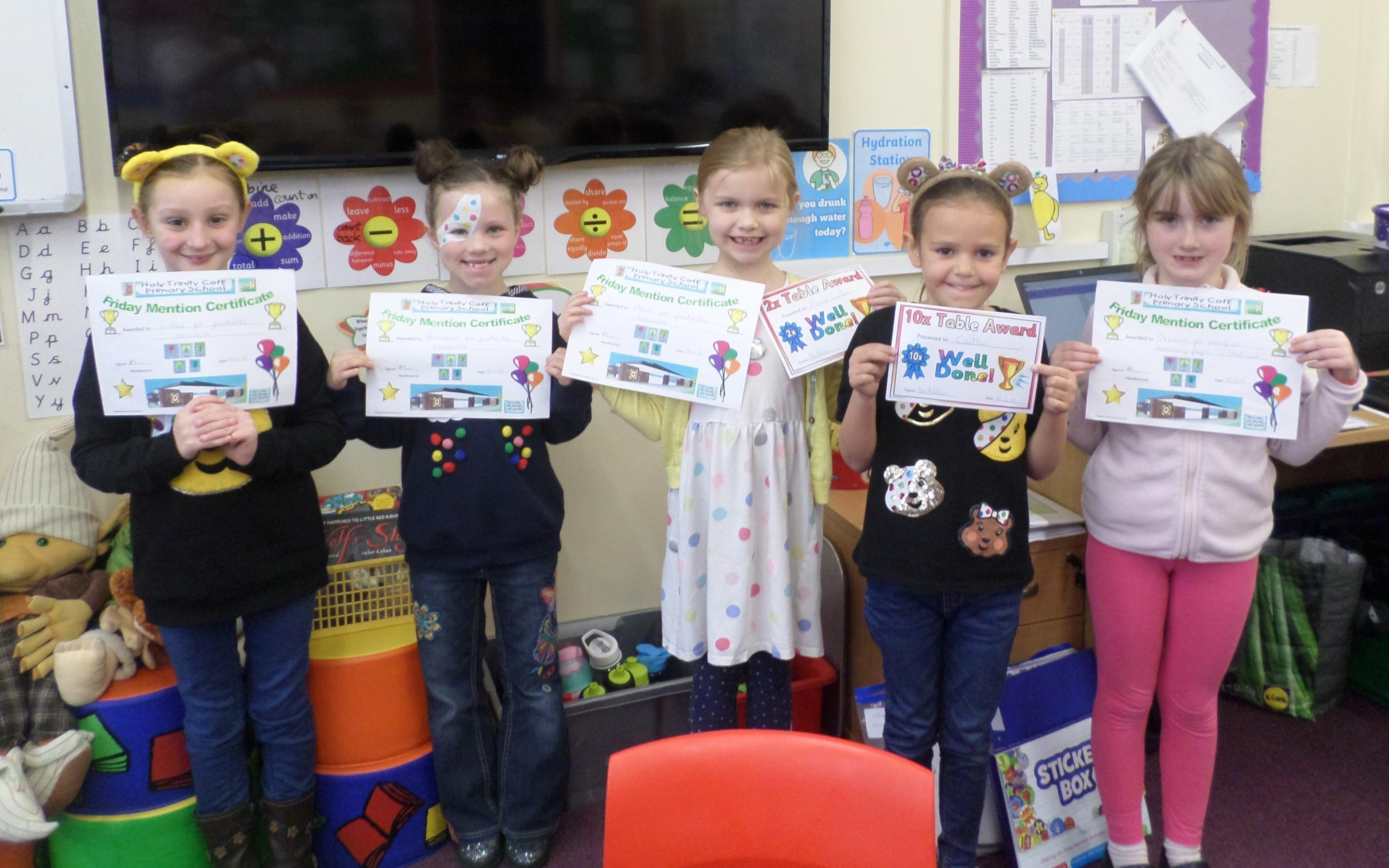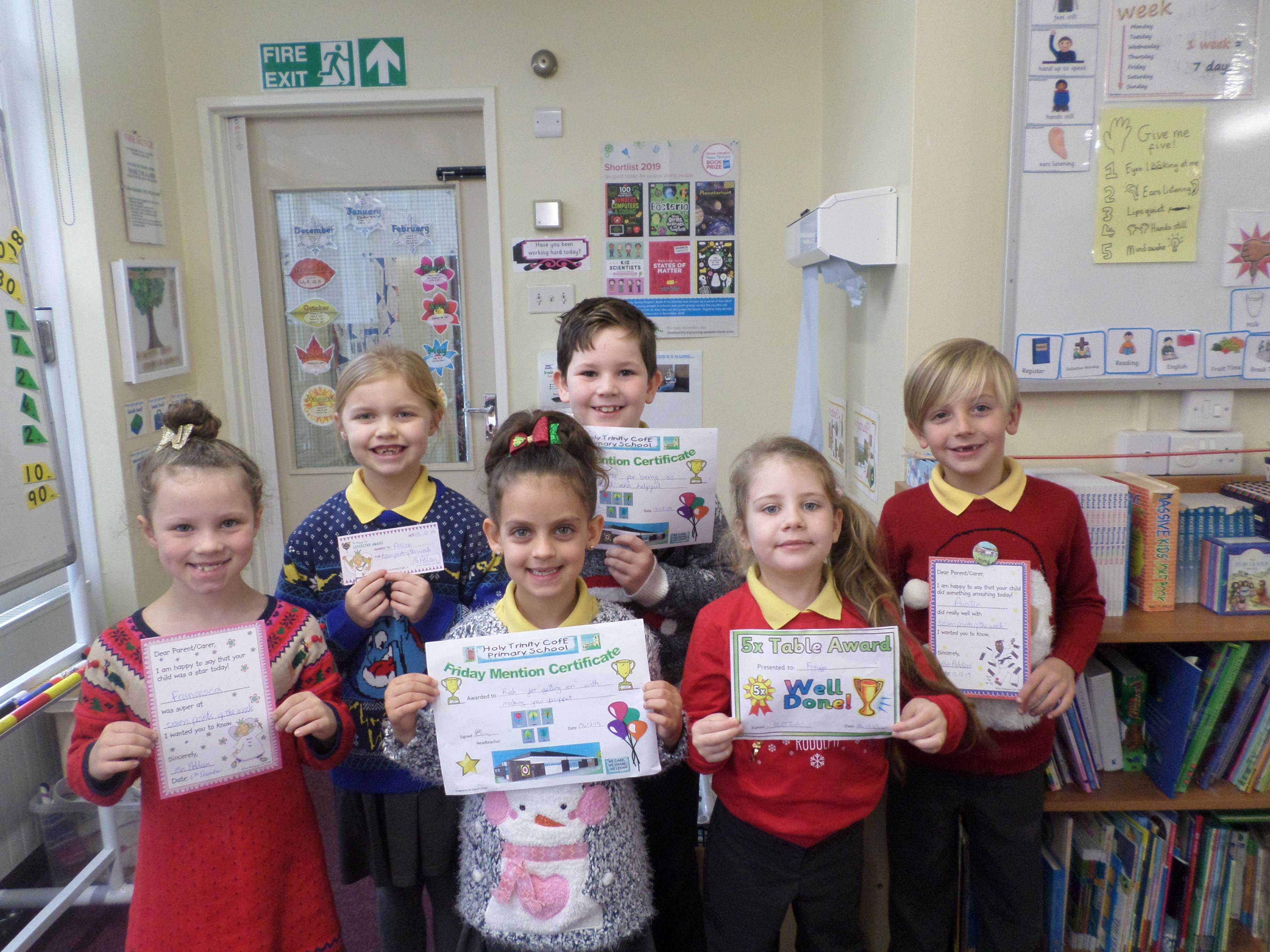 On this page are photographs of the children who receive awards including Friday Mentions, the Citizen Badge, Team Points of the Week and work on the Hall displays.