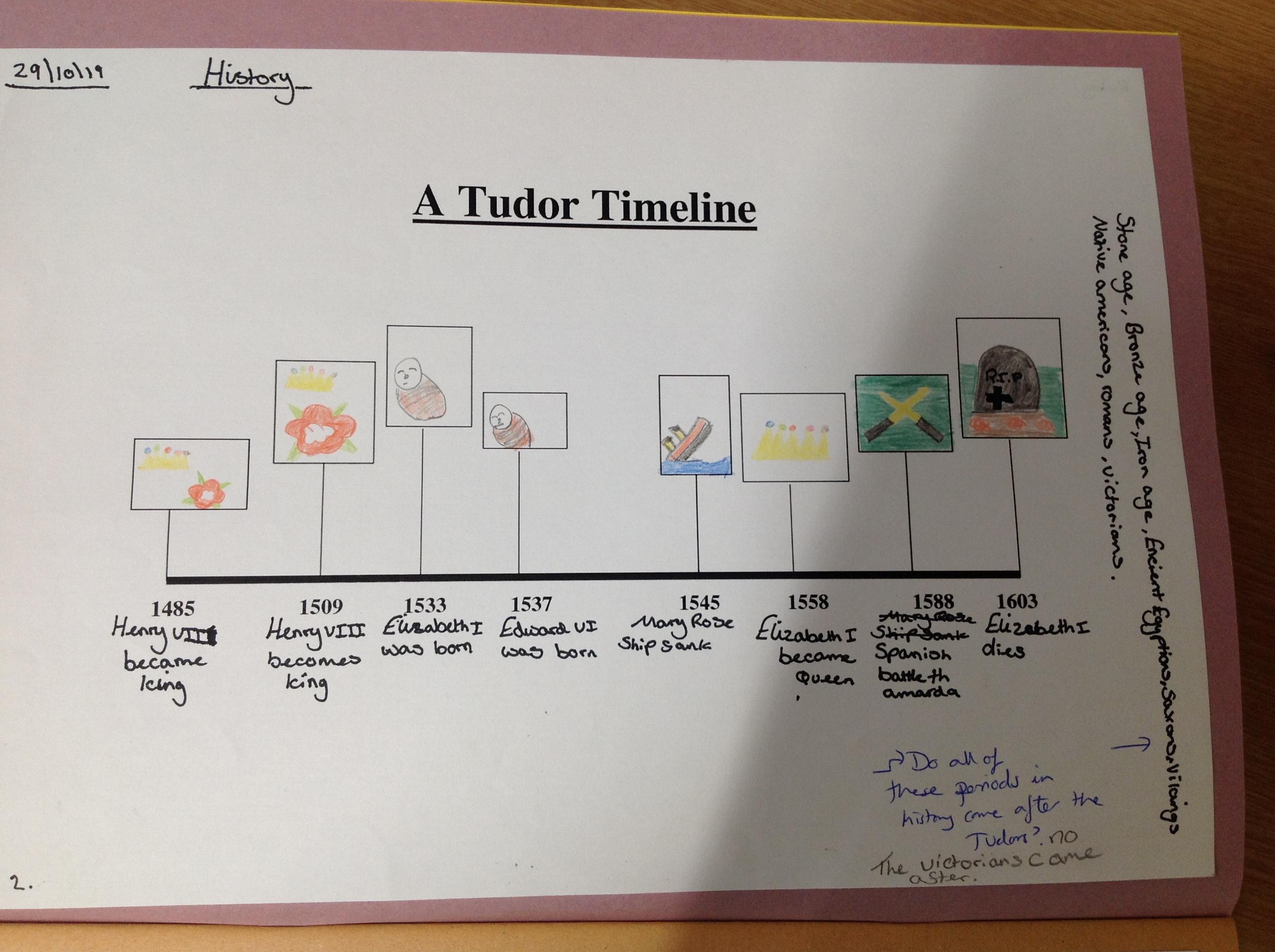 We used a variety of websites to label key events during the era and also reflected back on our prior learning in history adding periods before the Tudors and after, that we had already studied.