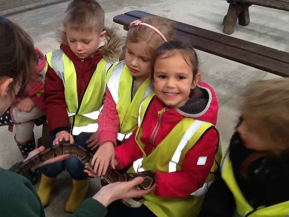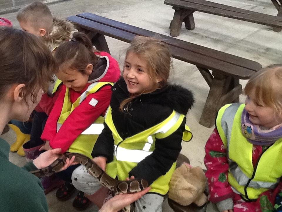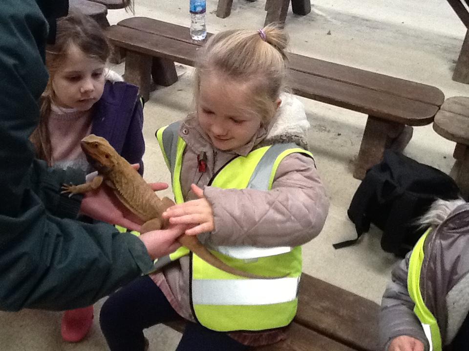 We had a great time on our trip to Woodside Wildlife Park. We held a snake and stroked an owl, bearded dragon and millipede. We saw Lynx get fed and met Gloria the tiger. Then, of course, had a great time in the gift shop.