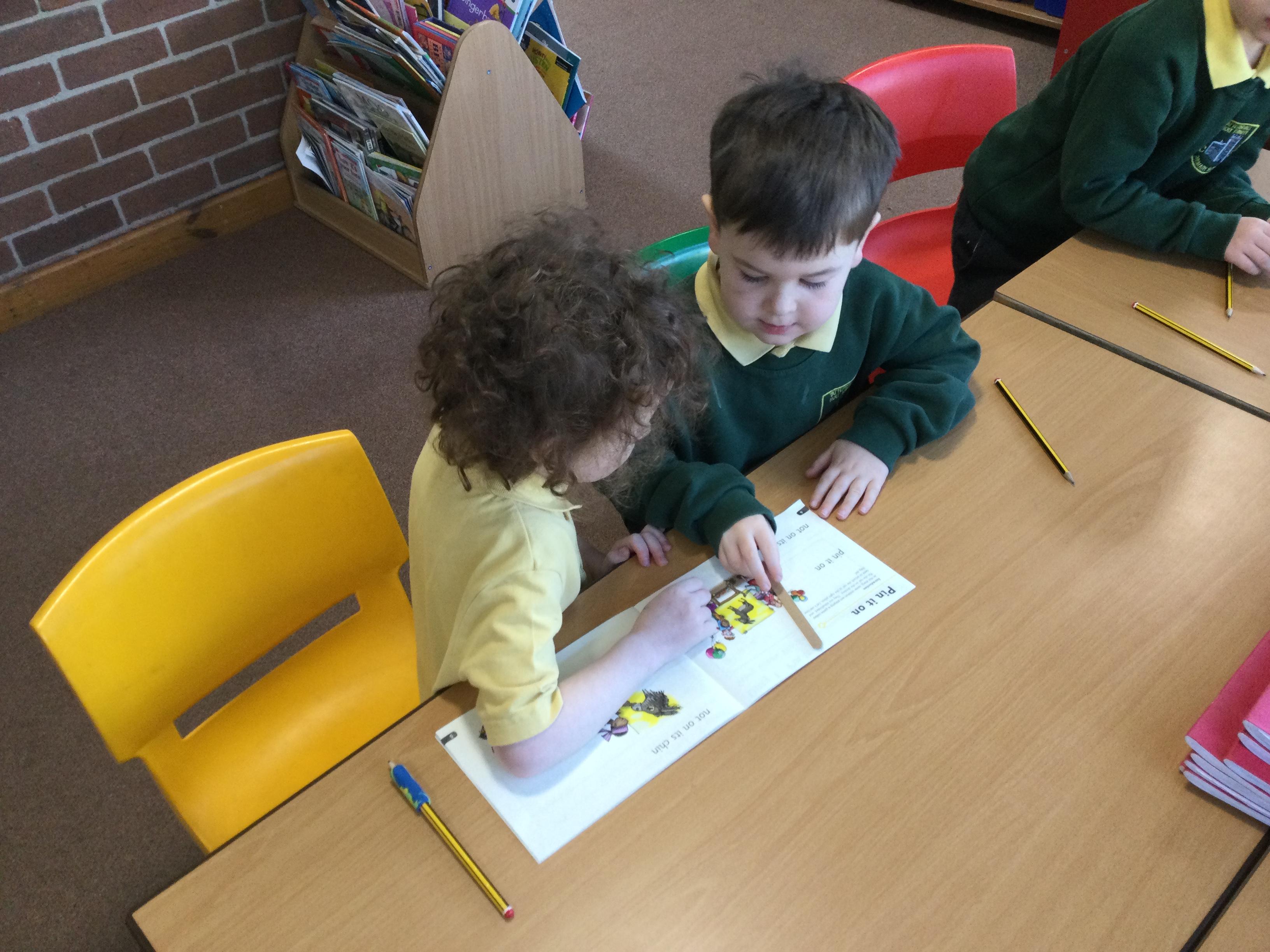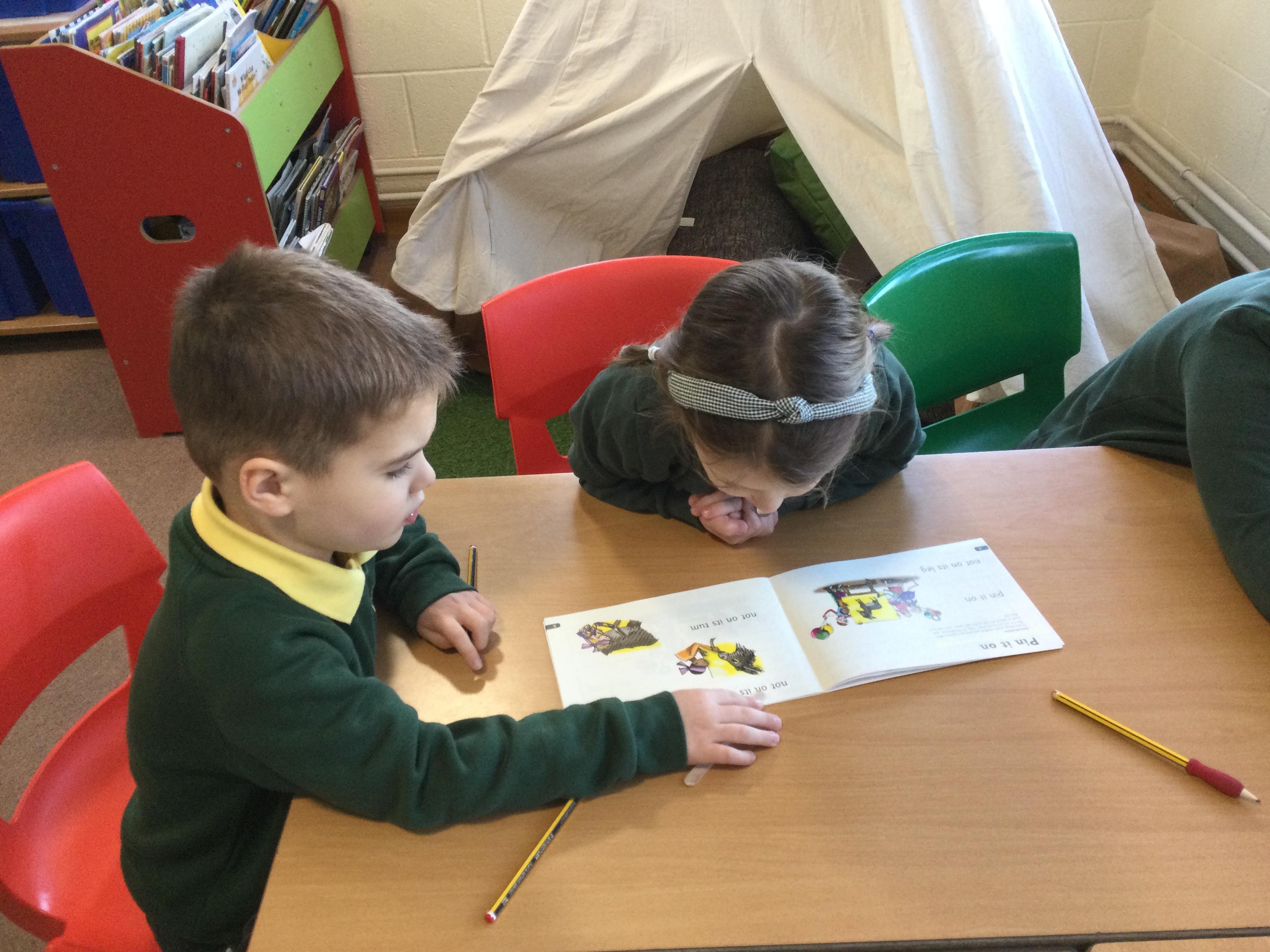 The children have been working so hard in phonics. Today they have moved on to the Red Ditty story books. They read the story, taking it in turns with their partner to read a page each. The children then move on to writing sentences about what they have just read. The children used all their phonics knowledge so far to support them. They are so excited to be taking home a reading book too. Fantastic!