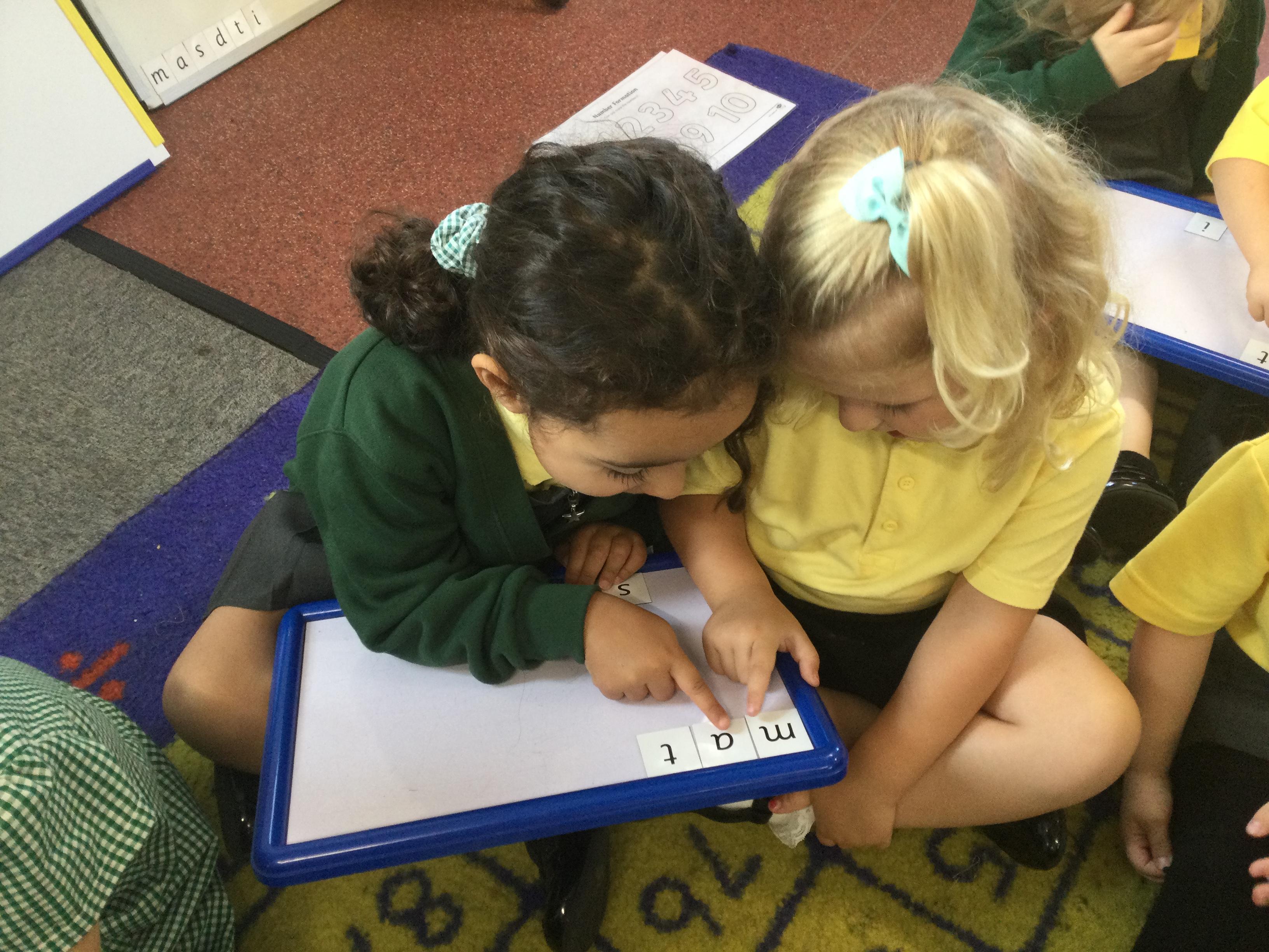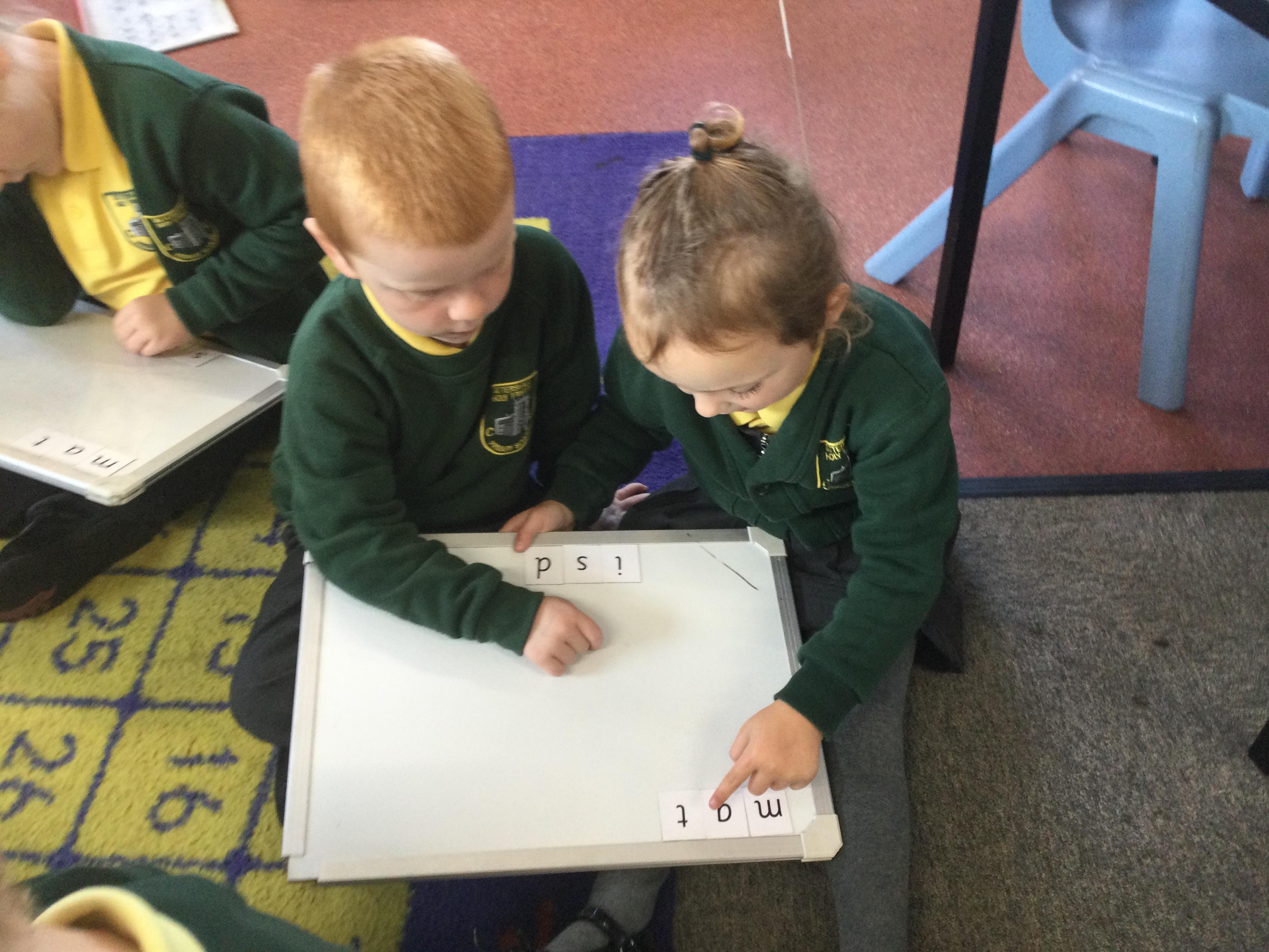 Today the children have been using magnetic boards to orally blend and segment sounds in words.