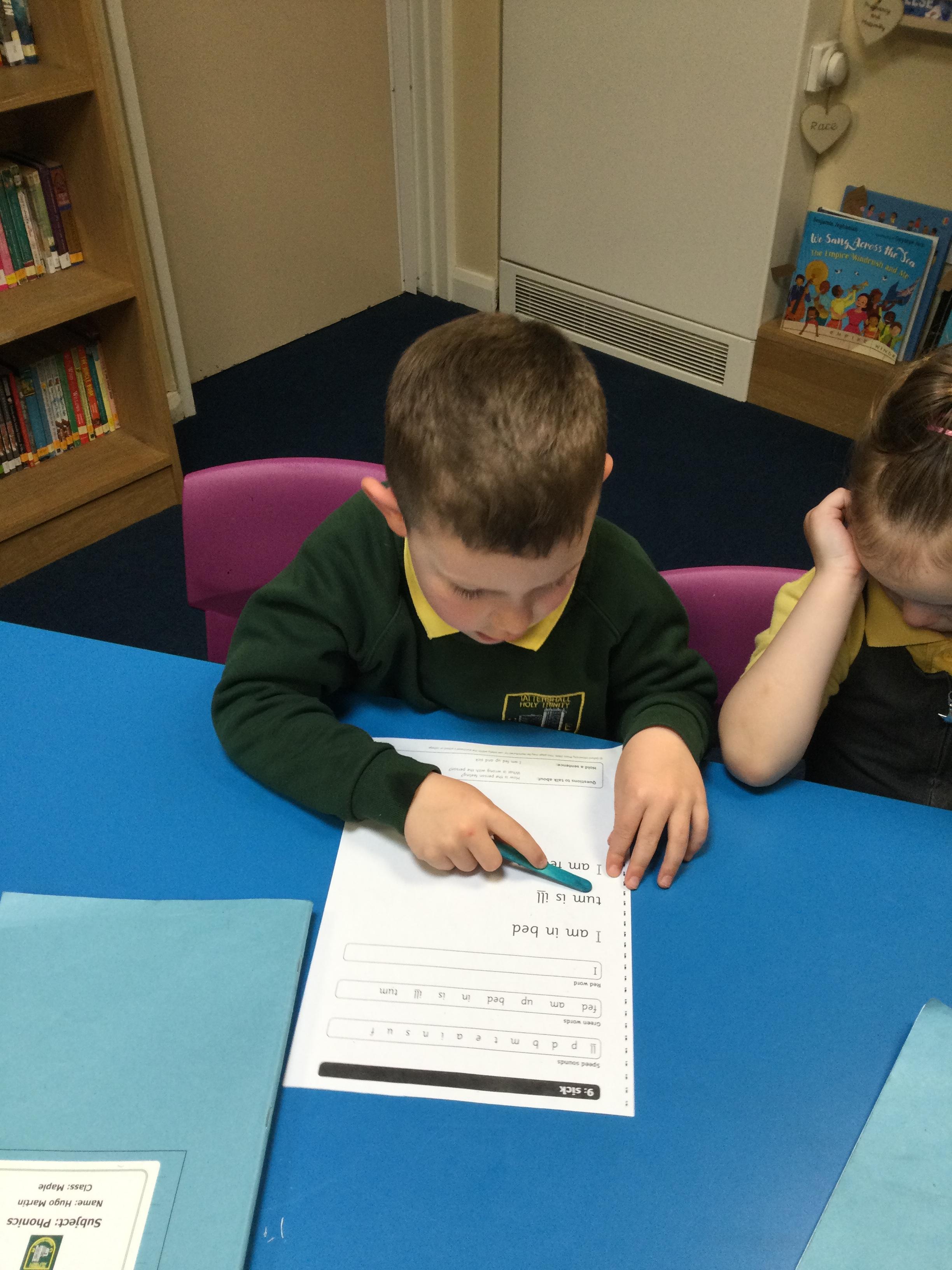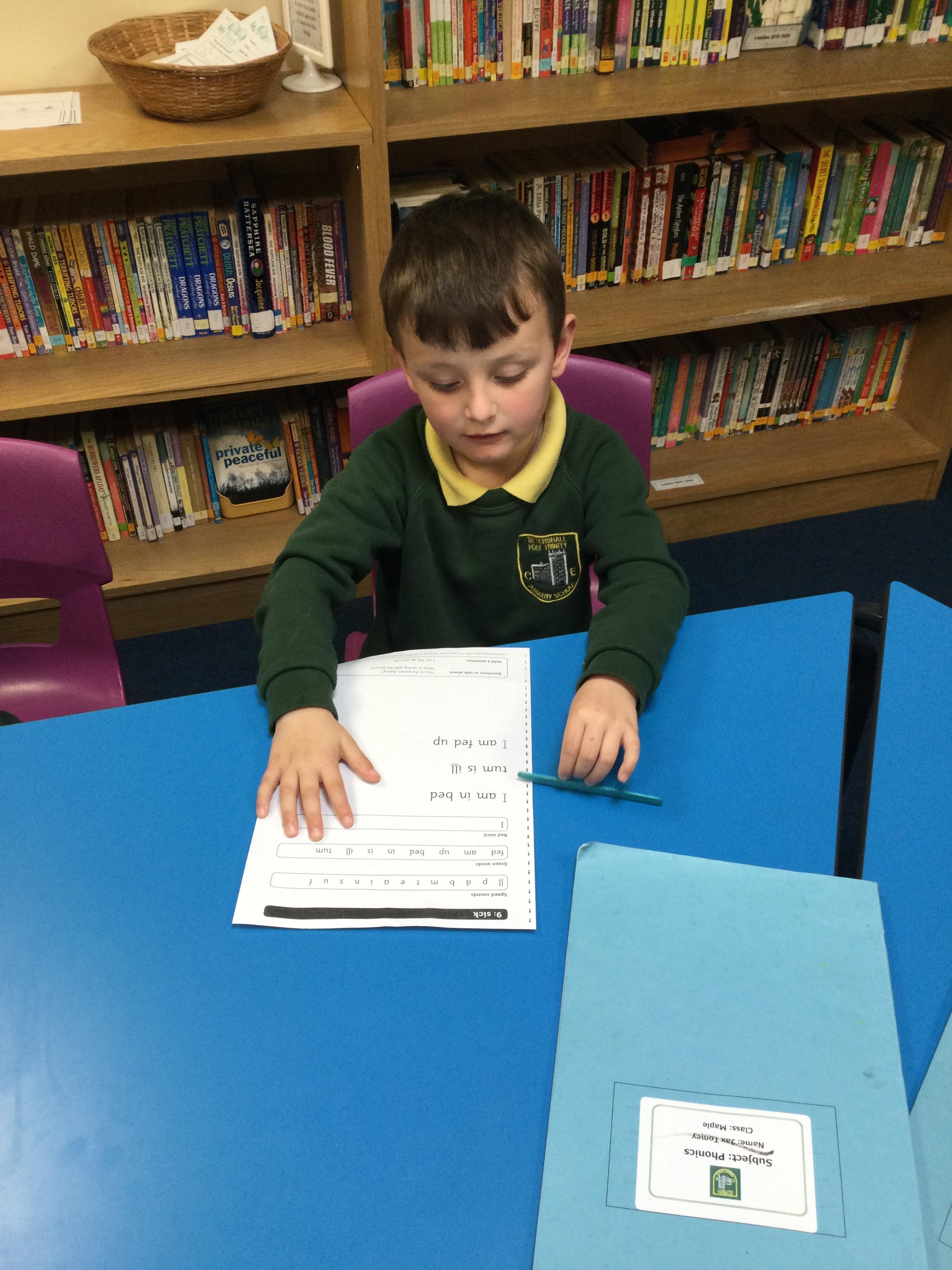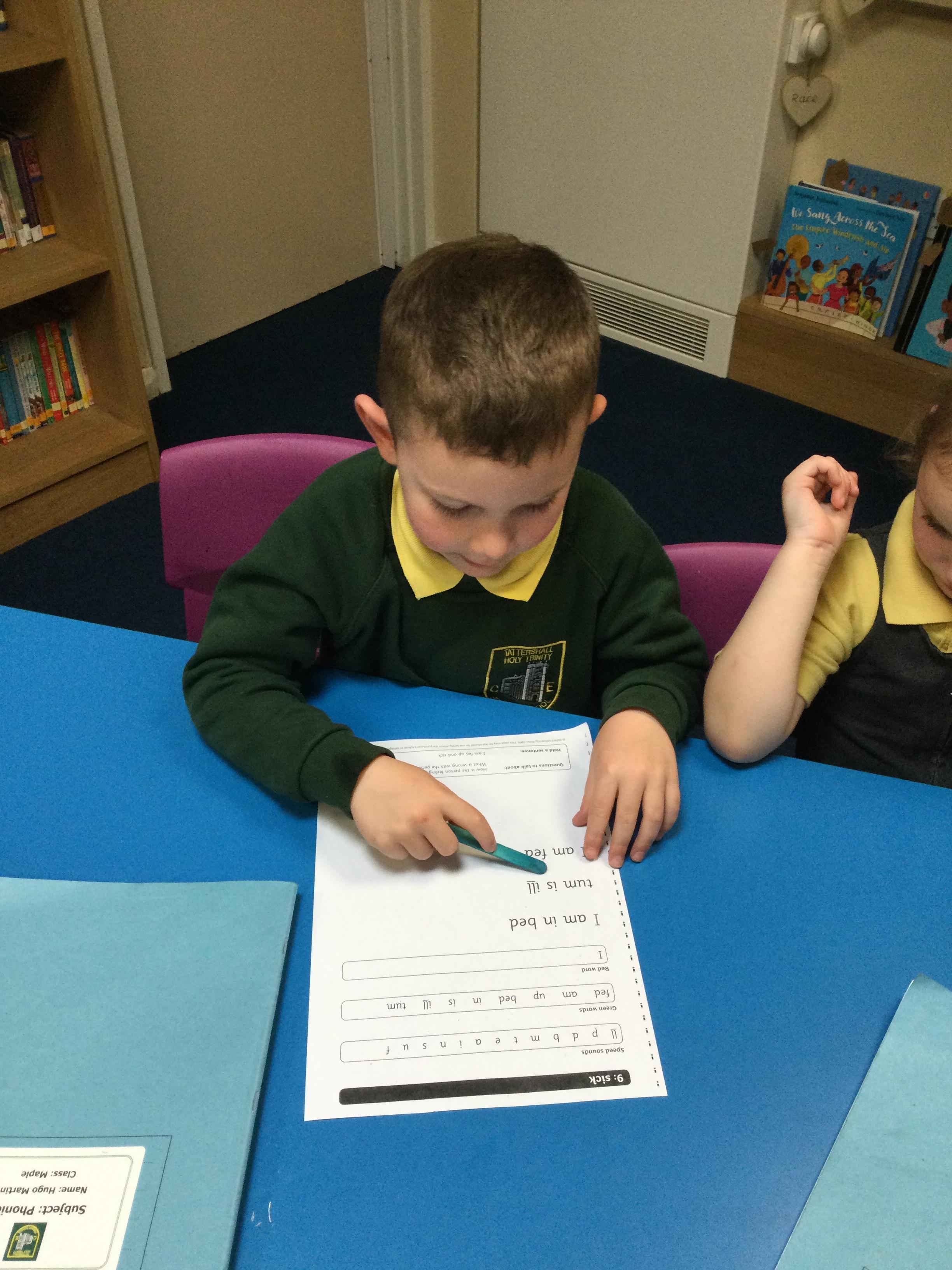 The children read their ditty about being ‘Sick’ beautifully today and moved on to hold a sentence. The children used their Fred fingers to help them.