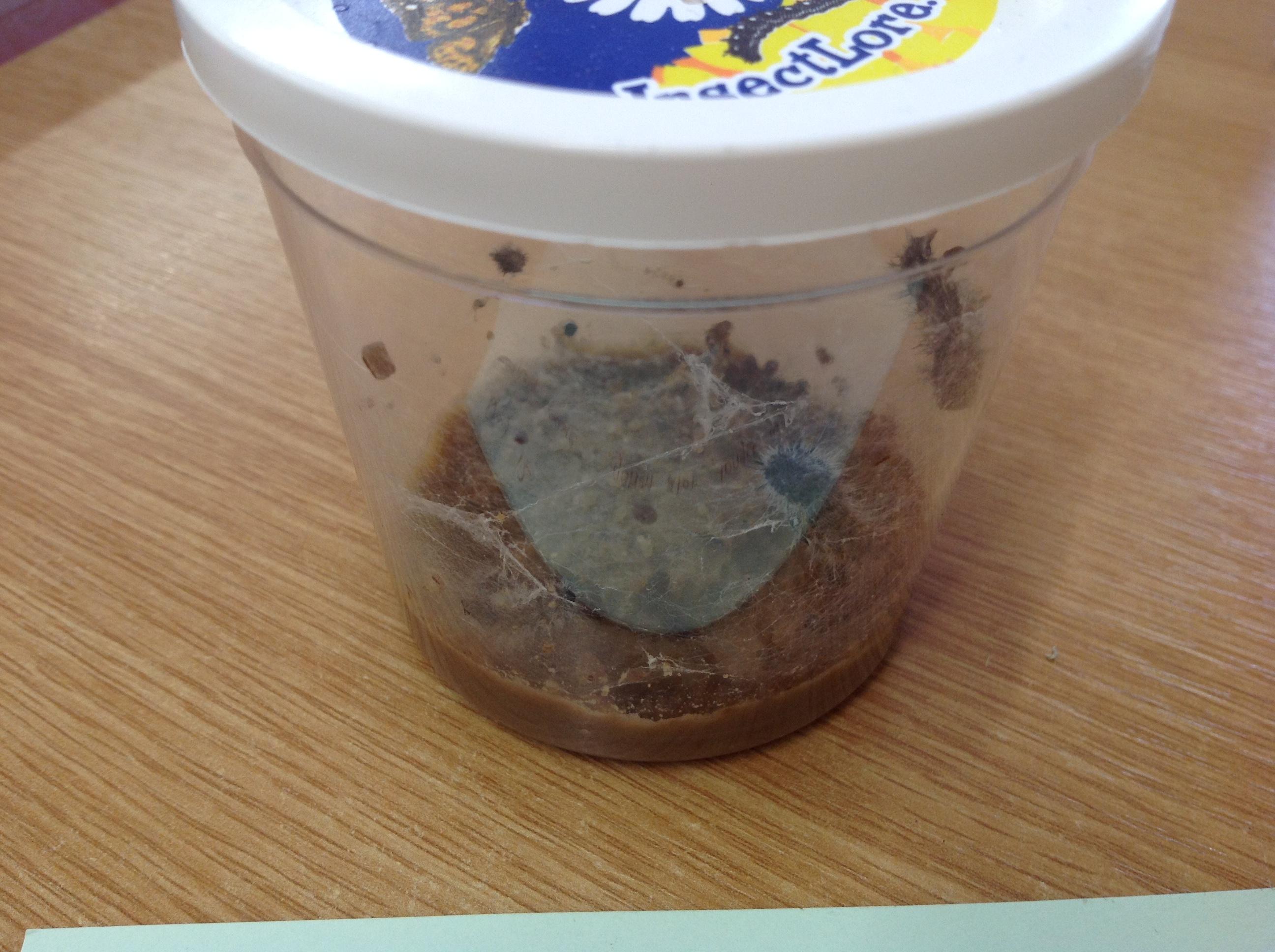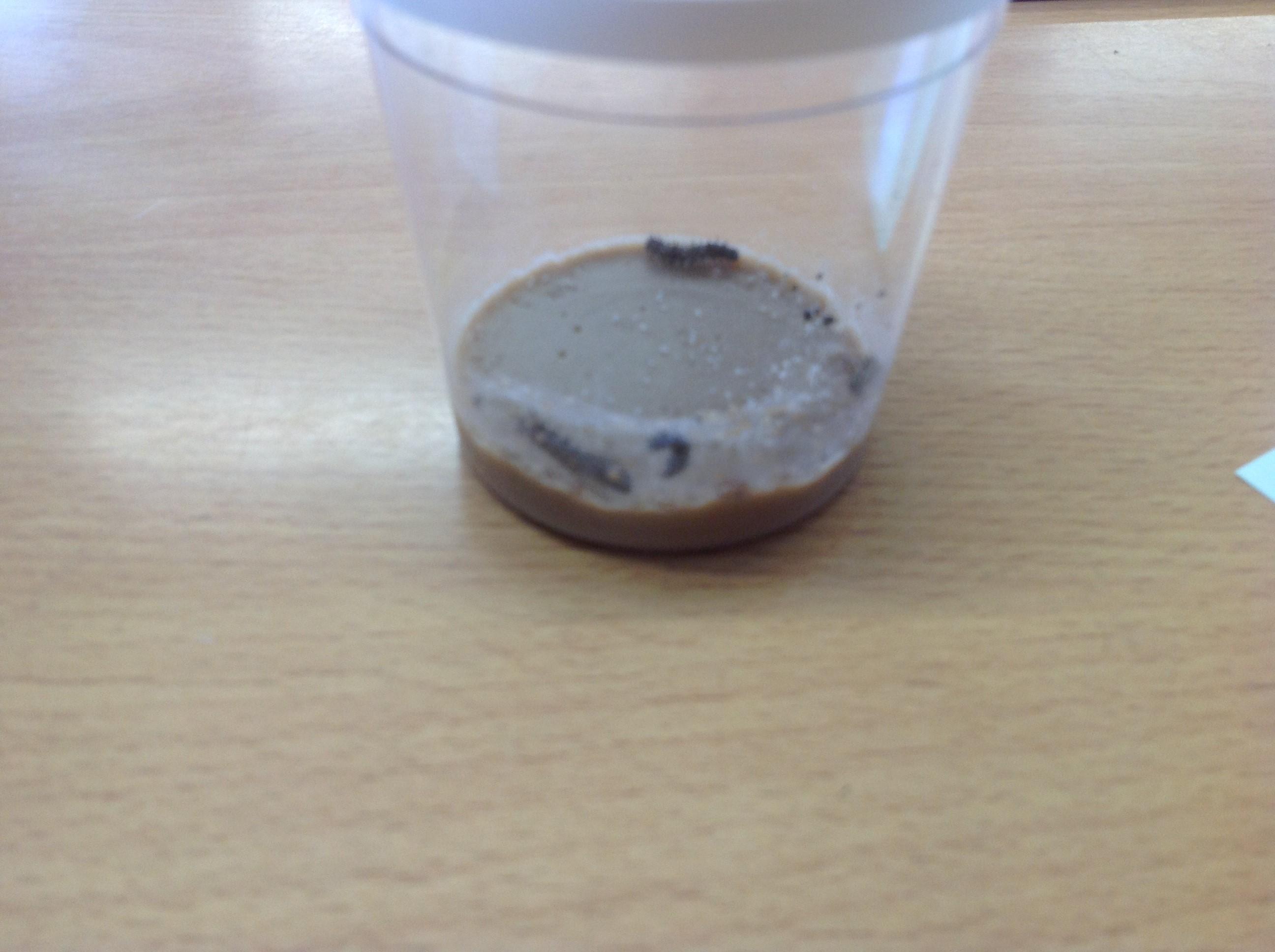 The caterpillars are moving around a bit more today. One has climbed to the top of the pot. They don't seem to have got much longer but some are looking thicker. I can see how much food they have eaten by looking at thhe holes in the substance at the bottom of the pot.