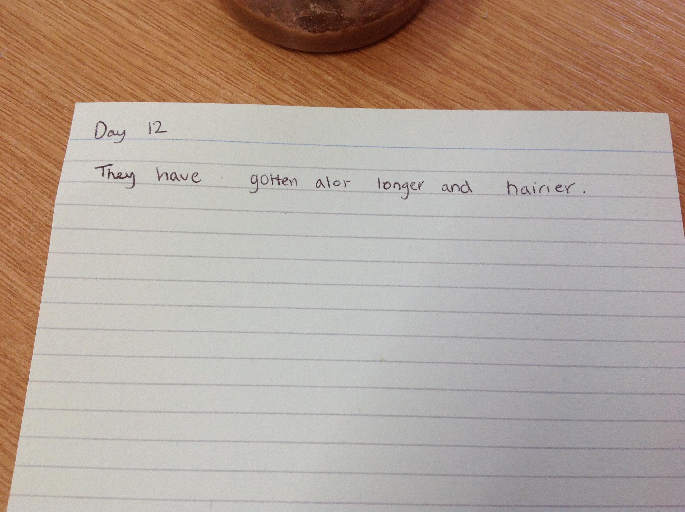 The caterpillars are now 0.4cm wide, 5cm long and very hairy.