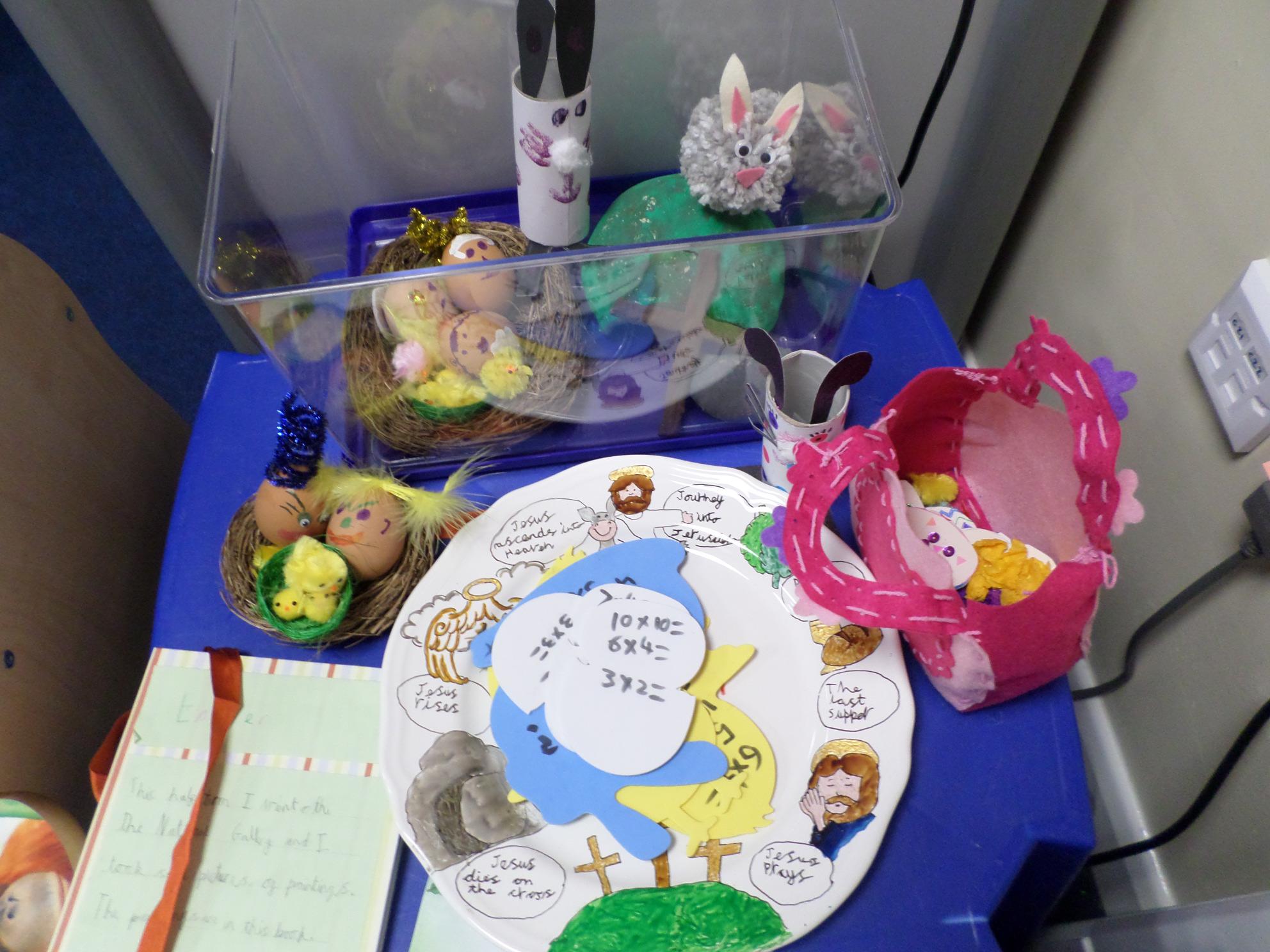 Over the half term Oak class were asked to produce something linked to Easter (a celebration we will be learning much more about this term)  We produced a huge range of fantastic work from decorating Easter bonnets to making edible Easter egg nests.  We have poems, stories, art, maths questions and games - all linked to Easter.  Take a look at our Easter display.