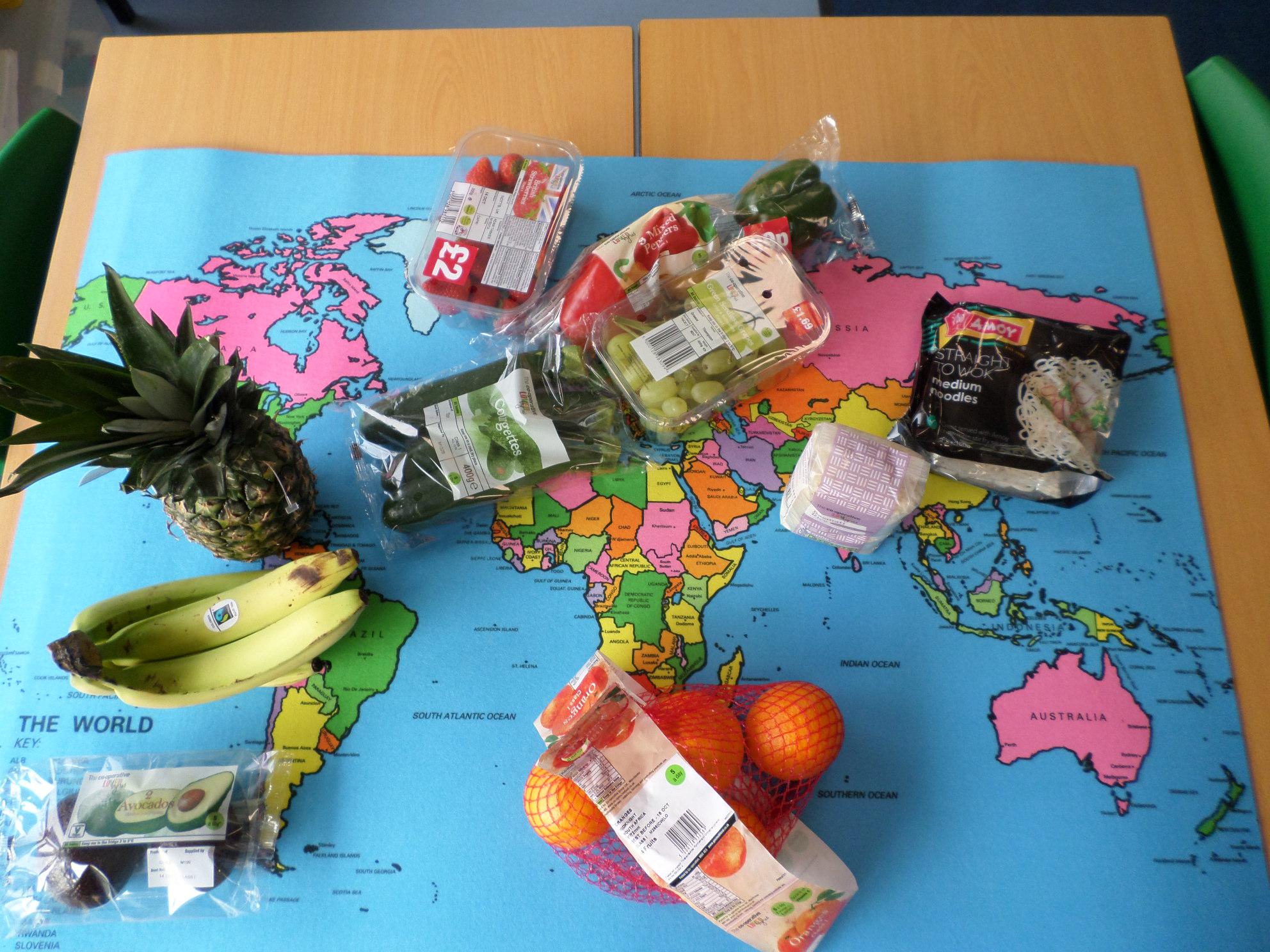 Oak Class have been learning about different harvests around the world.  We had a range of foods from the local supermarket.  We identified which countries they grew in and discussed the different climates they needed to grow and the journey each had taken to reach our plates.