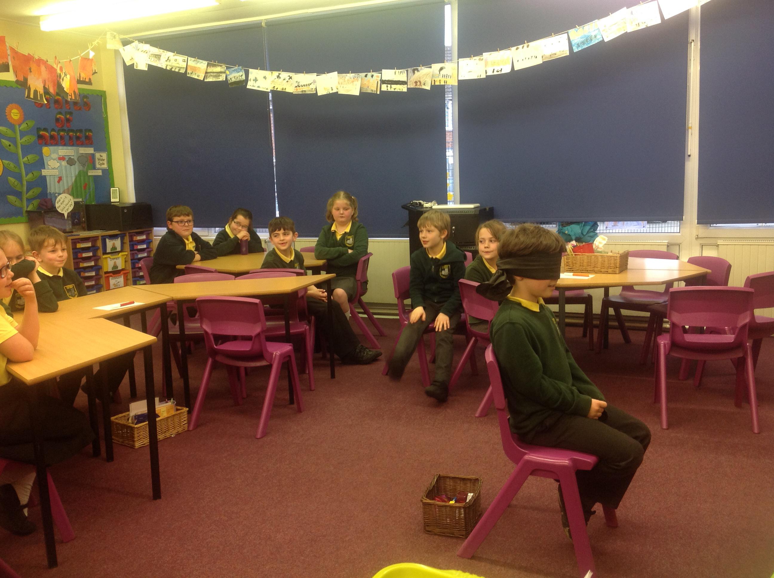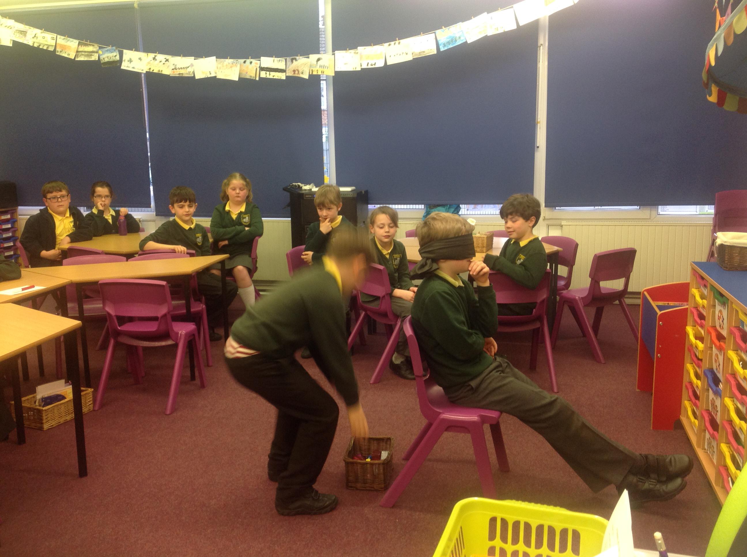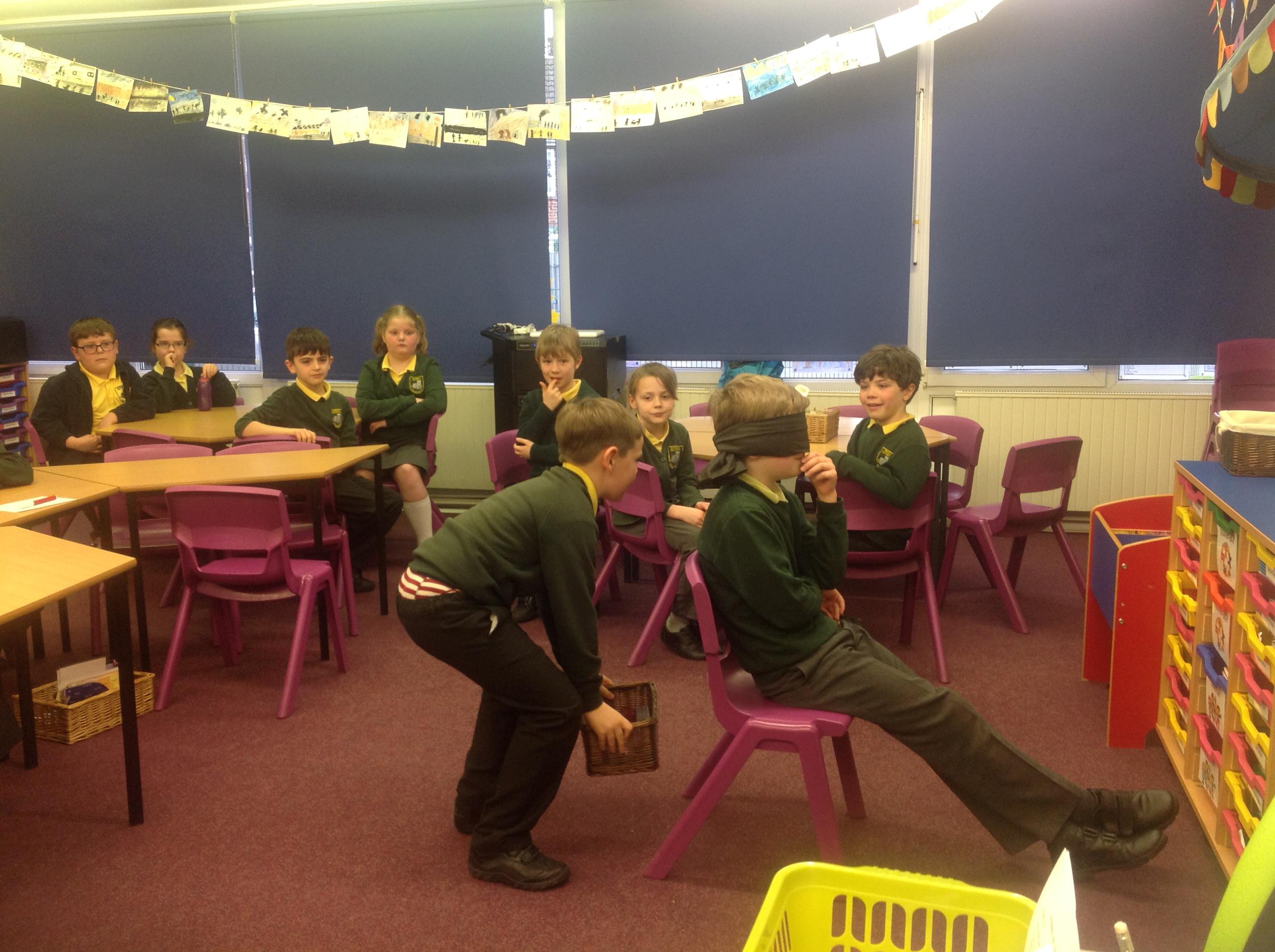 Today, we looked at the miracle where Jesus healed Bartimaeus of his blindness. We imagined what it would feel like to lose our sight by playing a game of blindfolded 'Excuse me your Majesty?' Then we hot-seated the character of Bartimaeus and discussed how he felt at different points of the story.