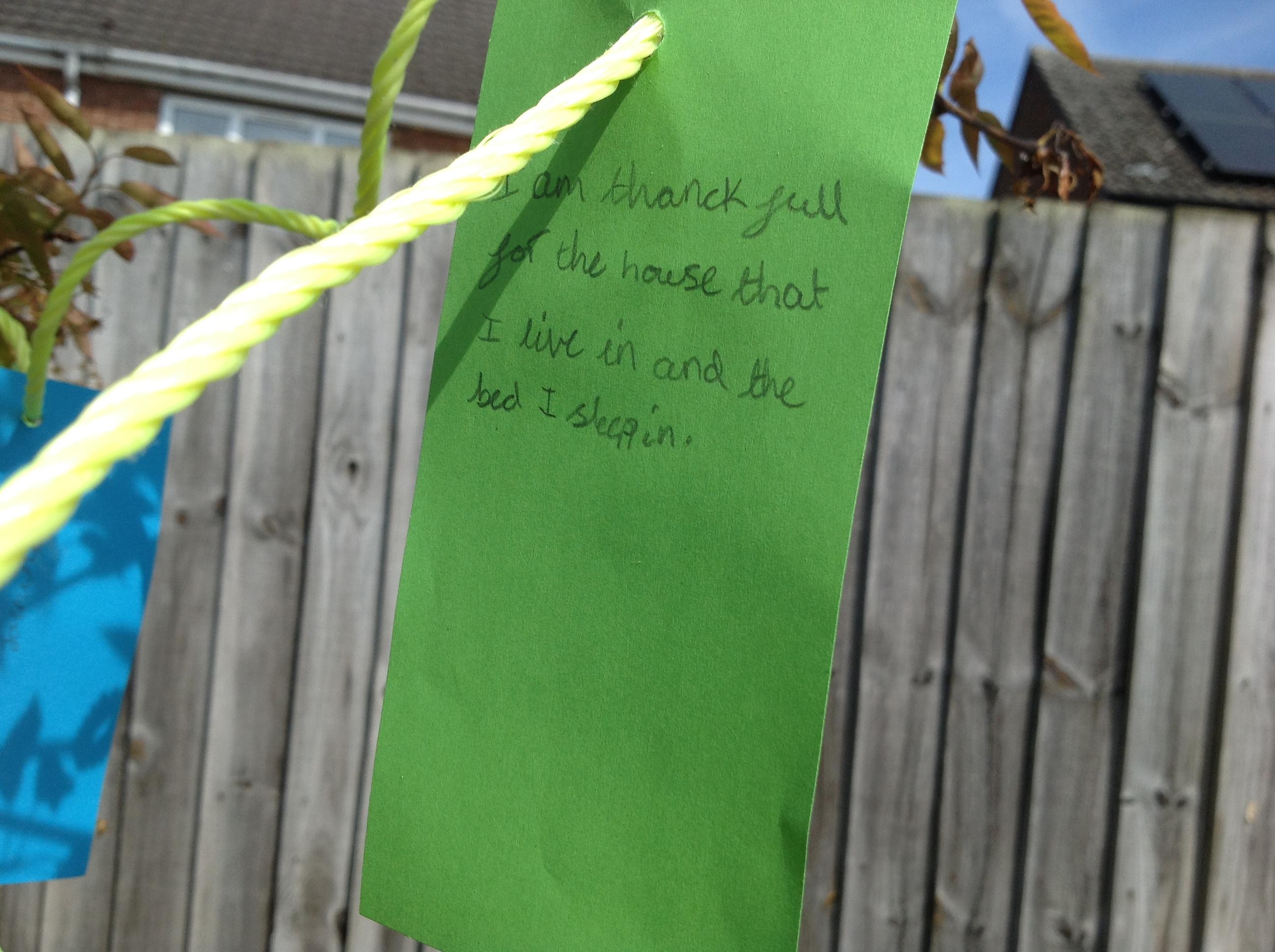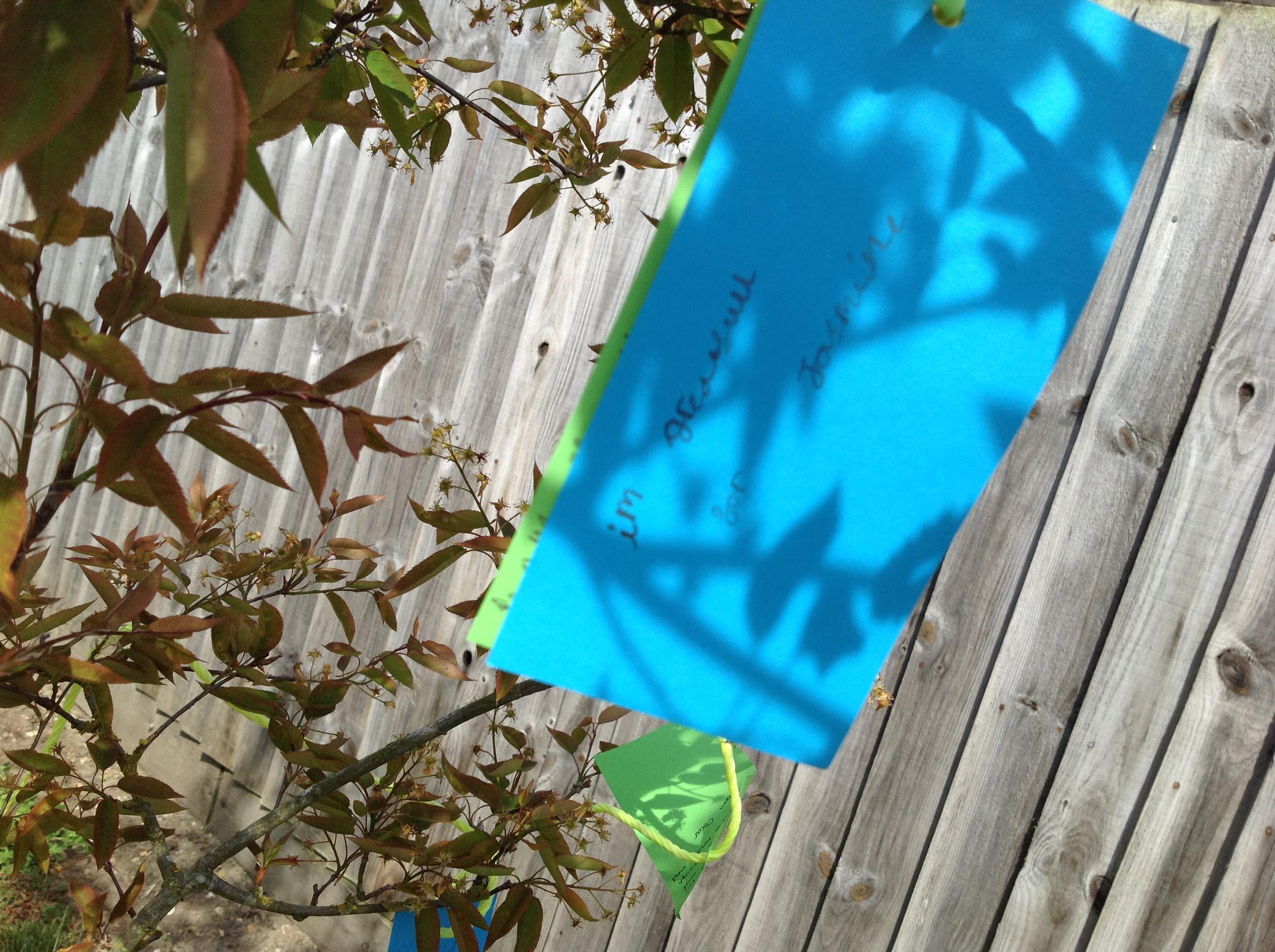 We then designed our own mandala patterns and our own Gratitude tree in our garden to say things that we are thankful for.