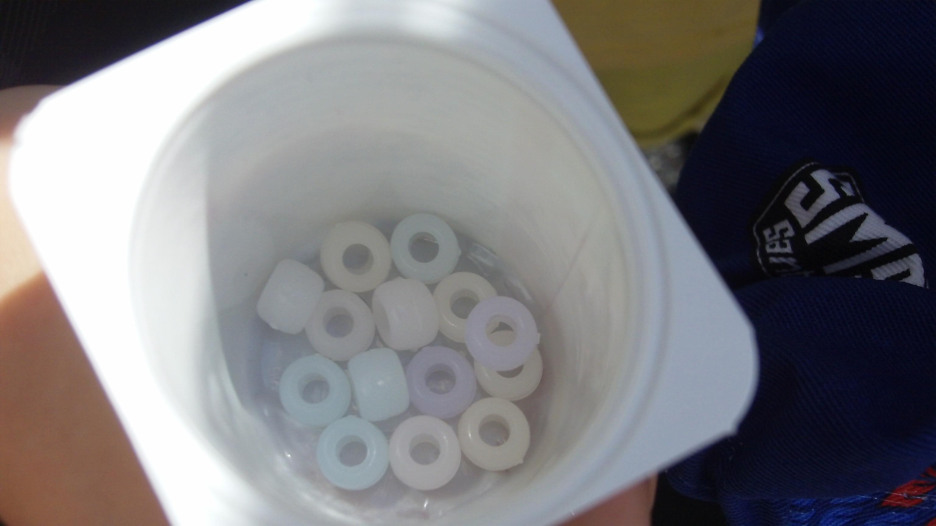 We found that the plastic and the foil were the most waterproof, however the felt fabric was also quite waterproof for a little while.