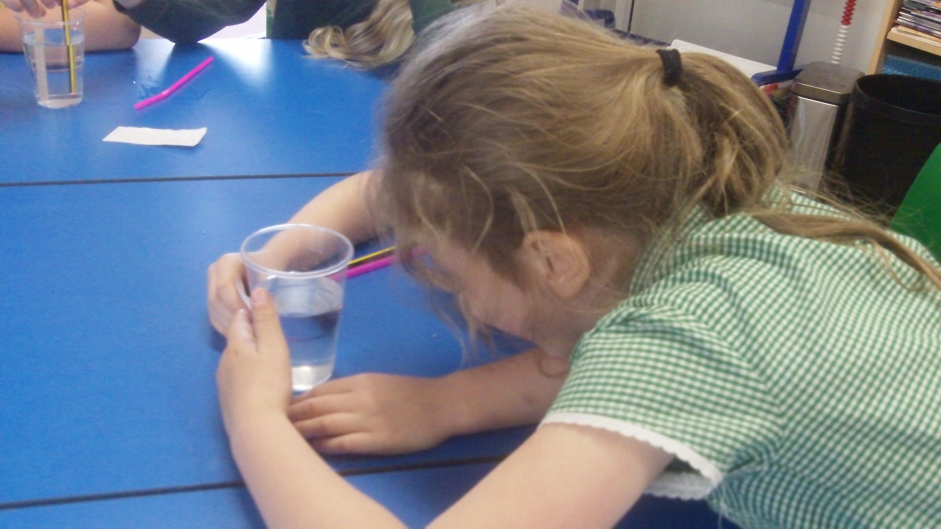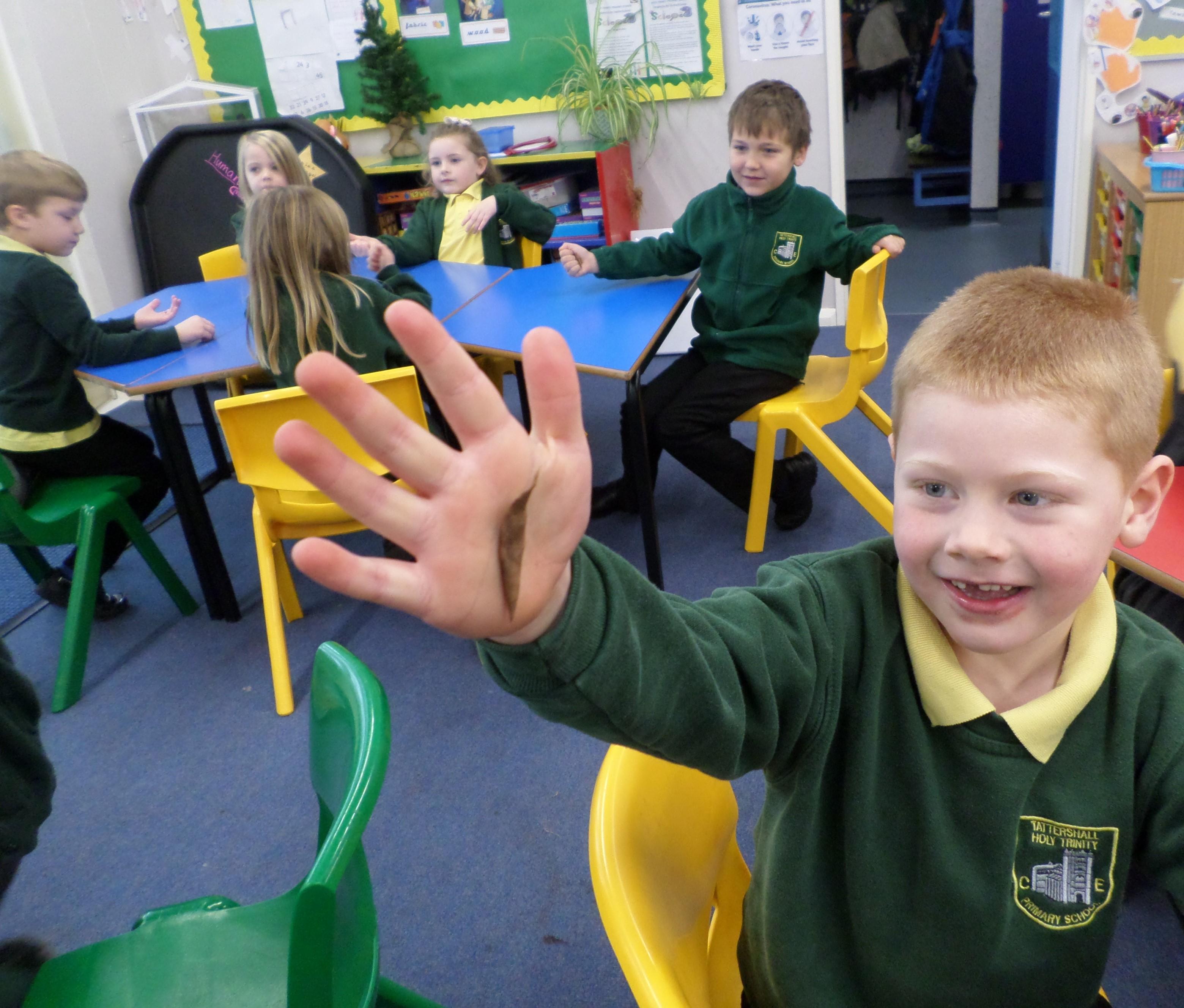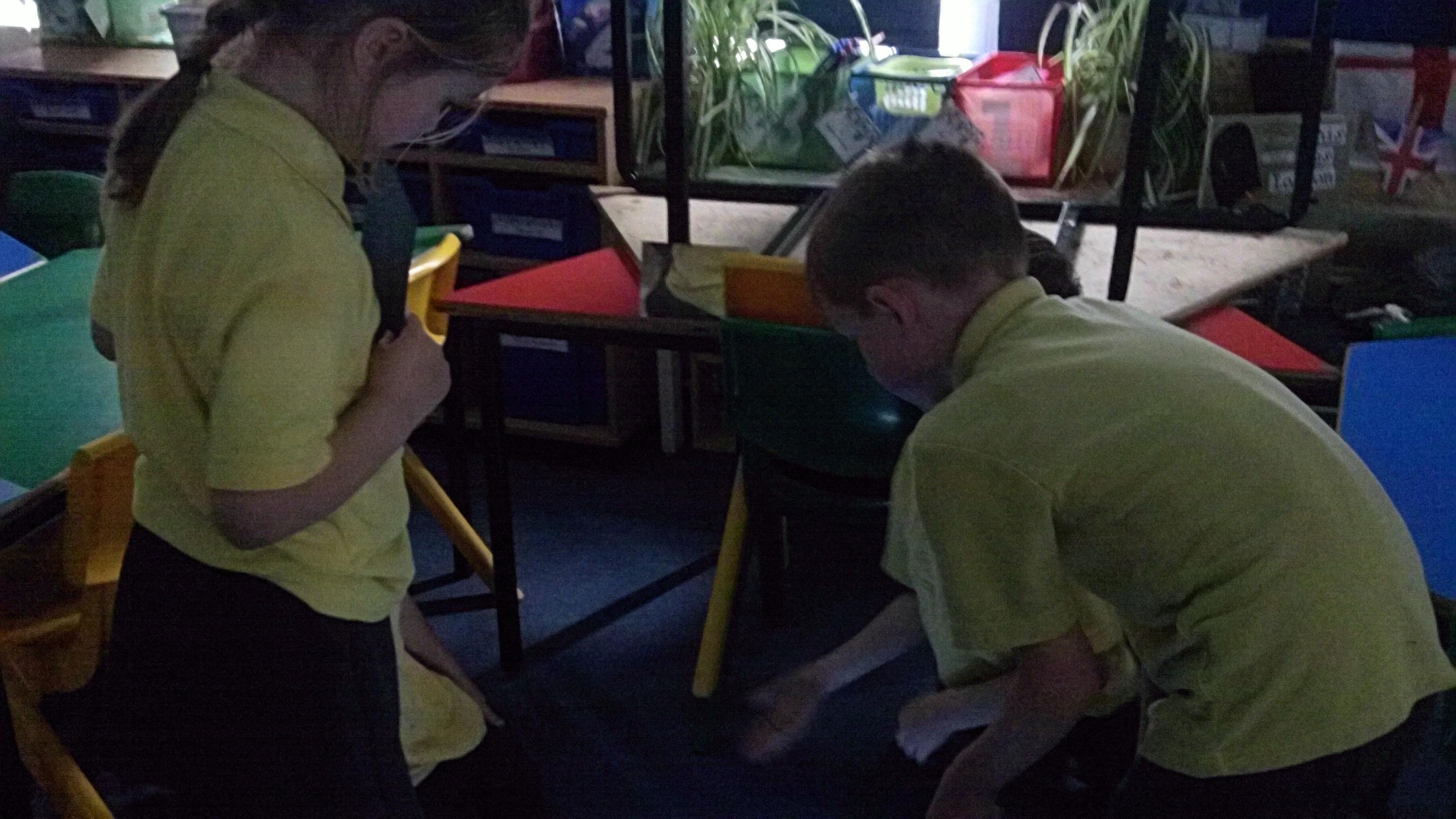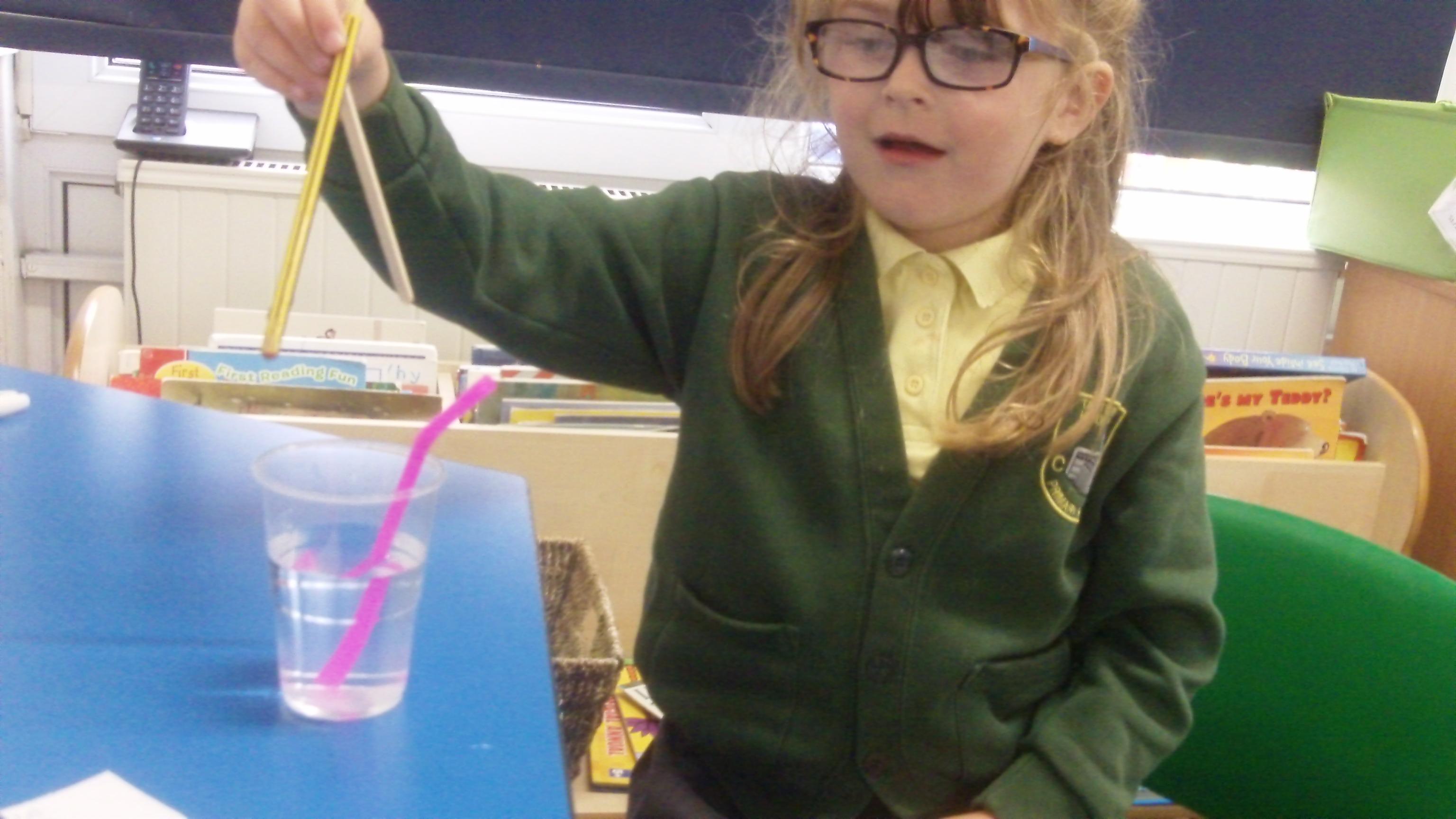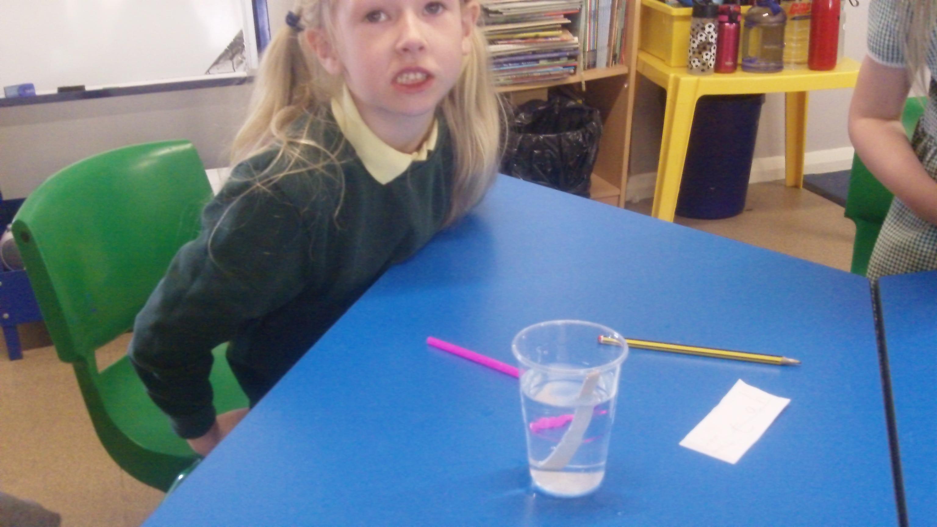 Willow Class helped Discovery Dog find the best material to absorb a puddle left by Naughty Nora after she had an accident. To test fairly we cut the same size pieces of each material and used the same amount of water. We correctly predicted that the sponge would absorb the most liquid, although the cloth and hand towel did a good job too! The plastic did not absorb any water and the paper towel fell apart, although it did the job when we used lots of it to see if that would work. Mrs Addison put the plate upside down over her head after the sponge to show that there was no water left!