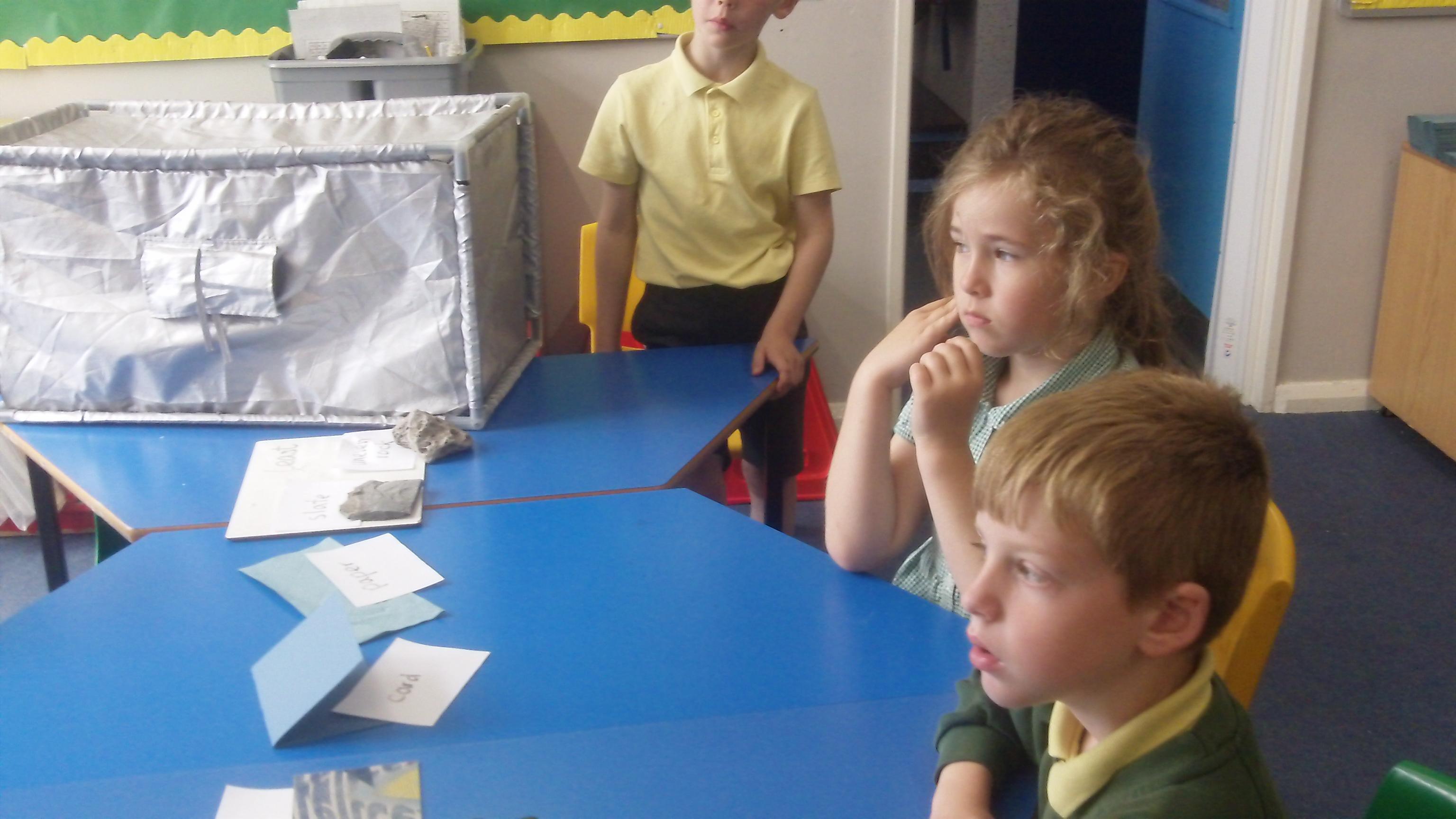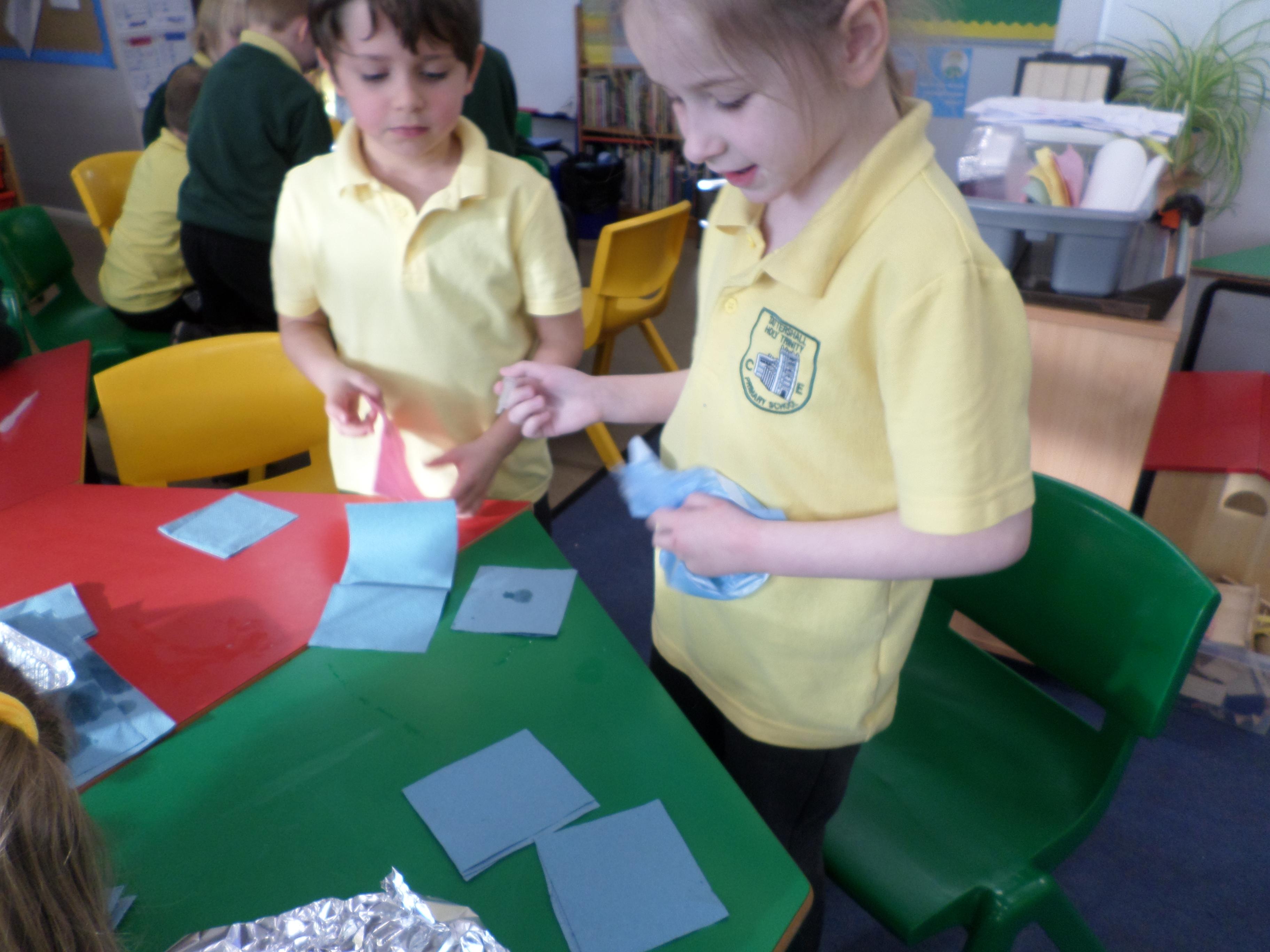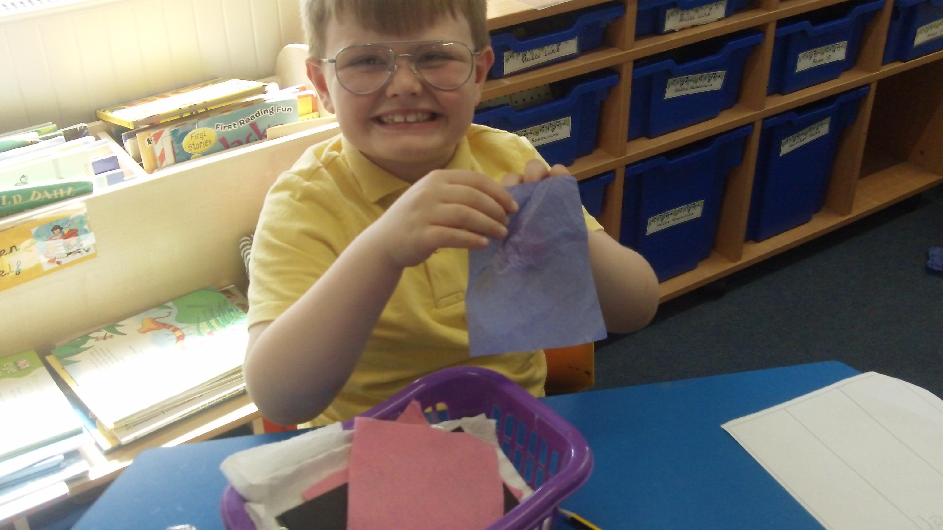 Our Class Puppet Billy had been out in the rain with his woolly hat on thinking his hair would stay dry. Instead it got very wet indeed! He asked Willow Class to investigate which material would make a better, more waterproof hat. He suggested a list of different materials for different reasons: paper (because it's easy to fold), paper towel (he thought the towel part might keep him dry), plastic (as it didn't work for Discovery Dog to mop up Naughty Nora's puddles), silver foil (because it's flexible and shiny) or felt fabric (because it's soft and comfy to wear).