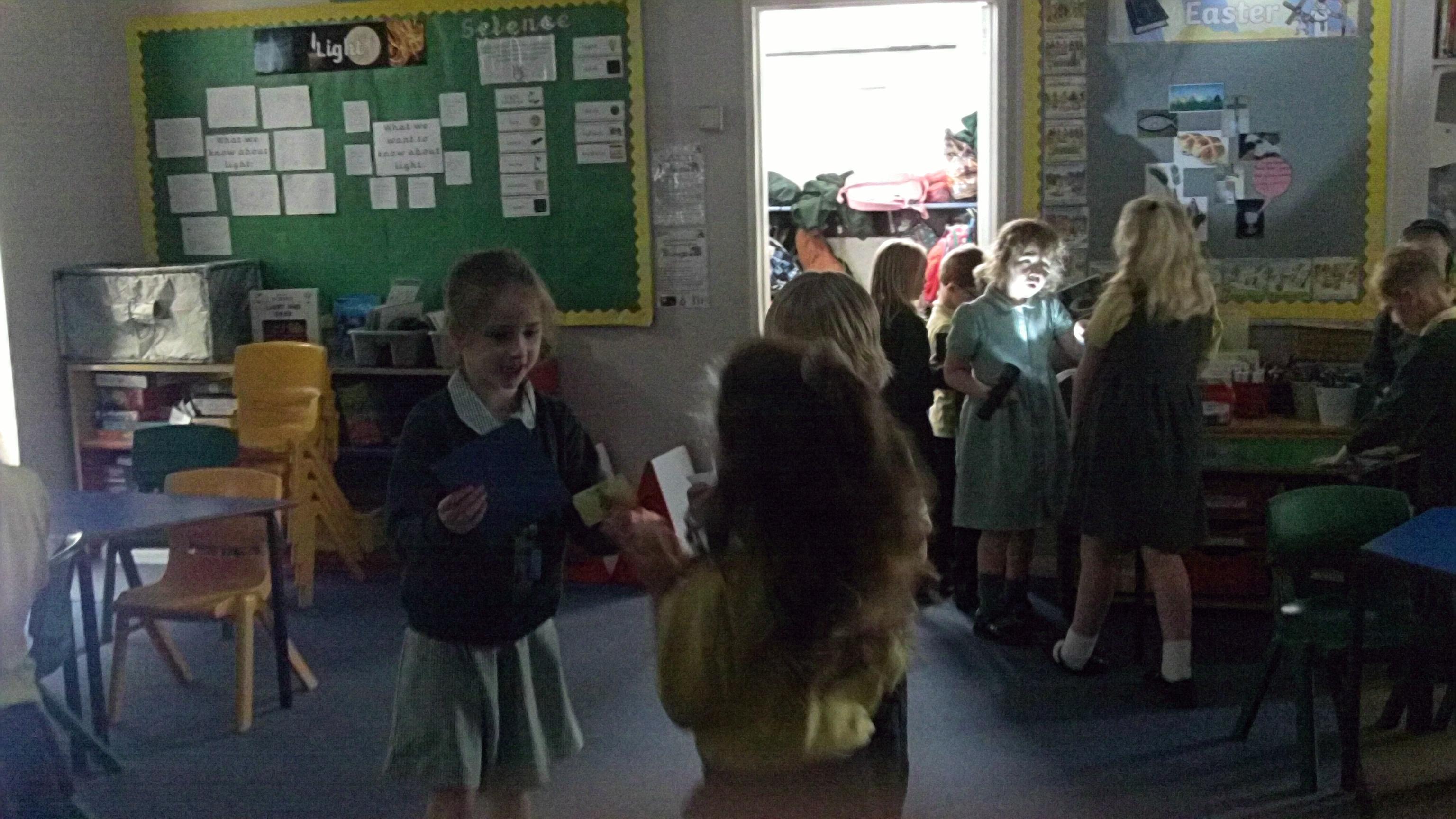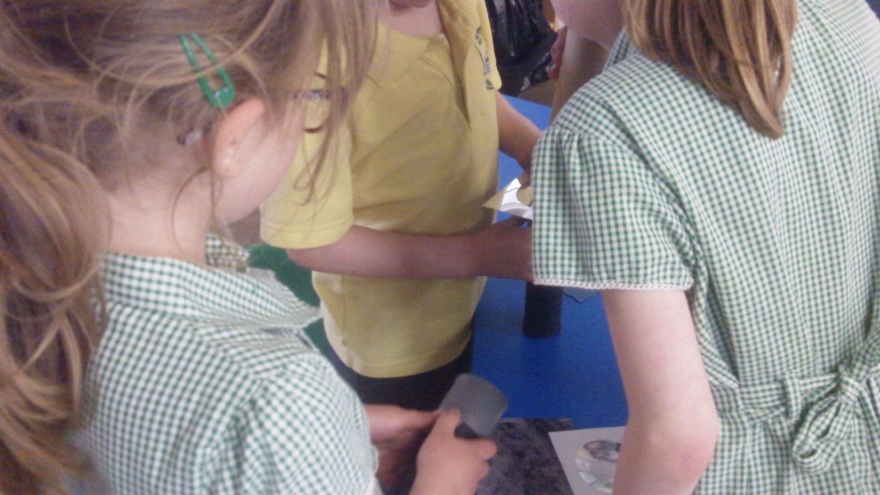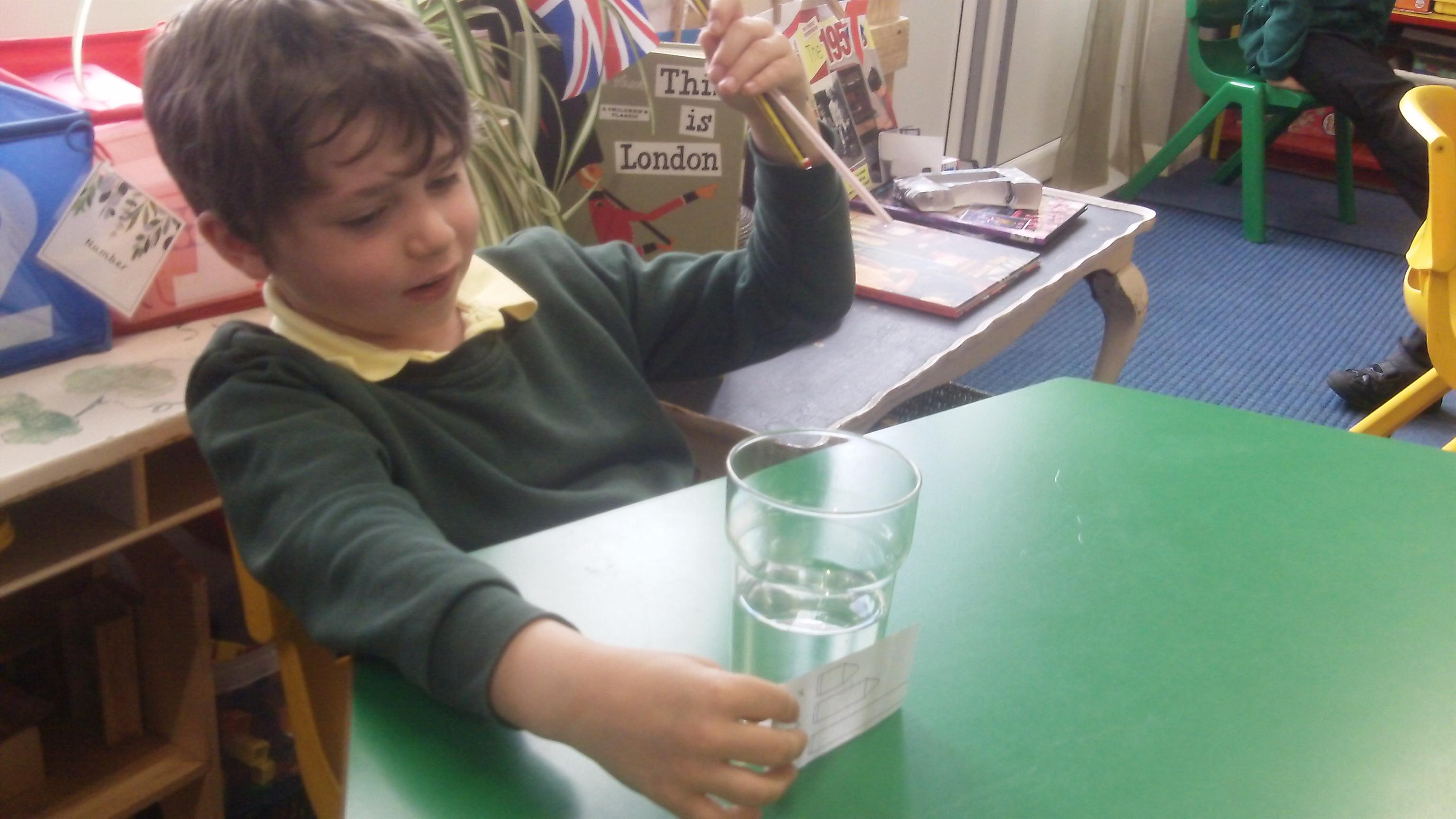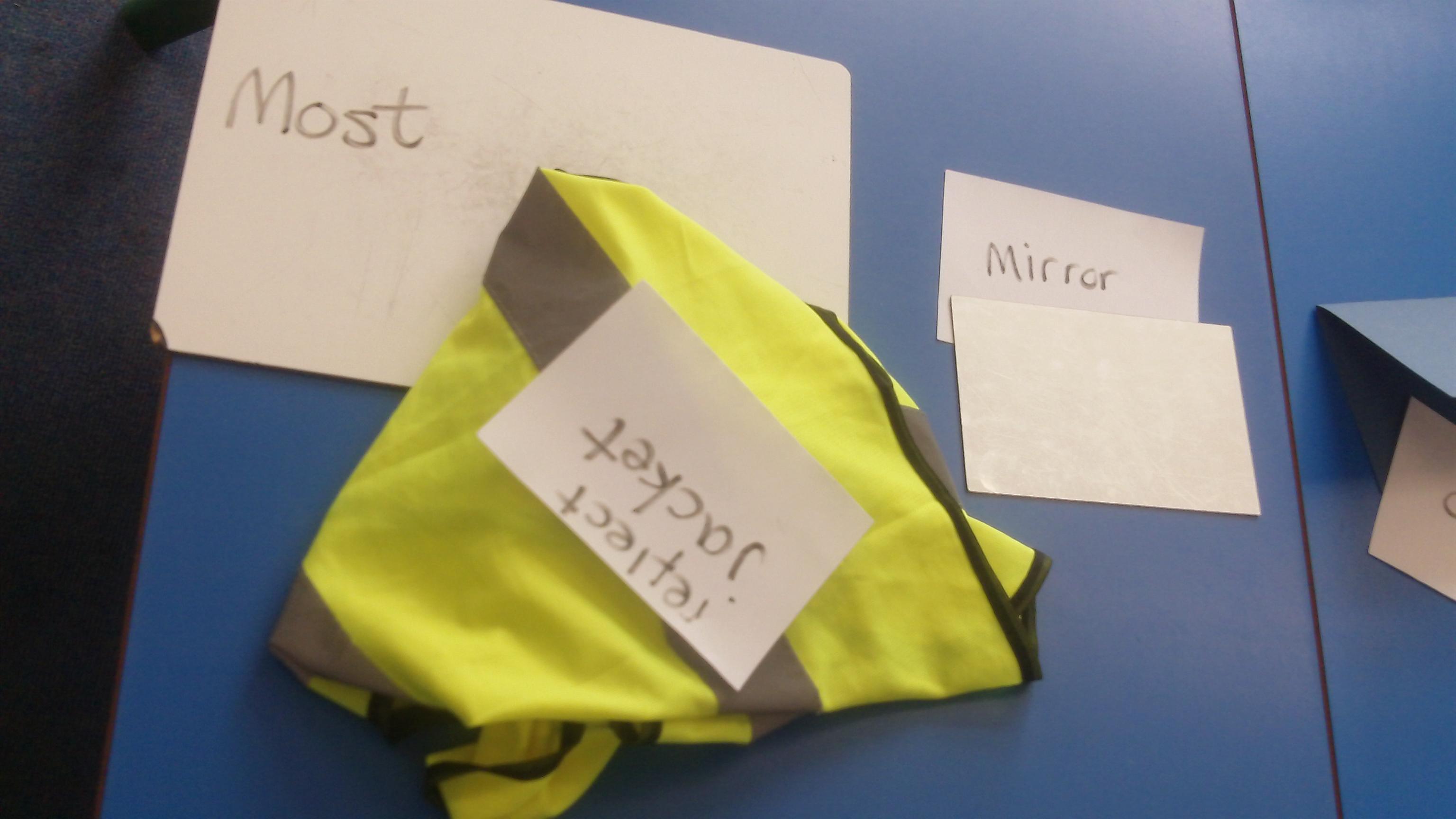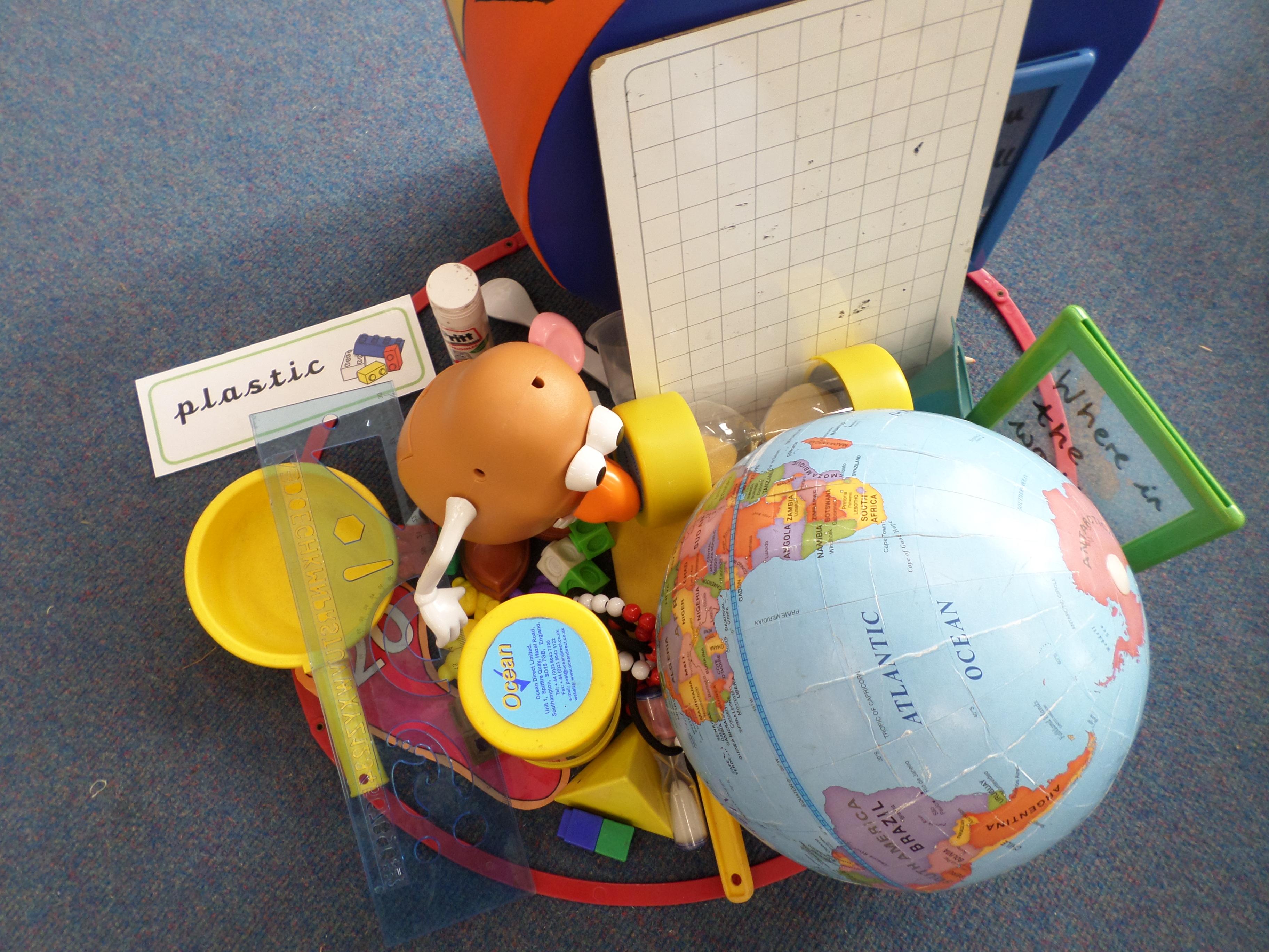 Willow class collected different objects and sorted them into hoops depending on what material they were made out of. At first we got some wrong, then we realised that some objects were made of more than one material so the hoops needed overlapping. The headings were: Metal, Wood, Plastic, Fabric and Other.