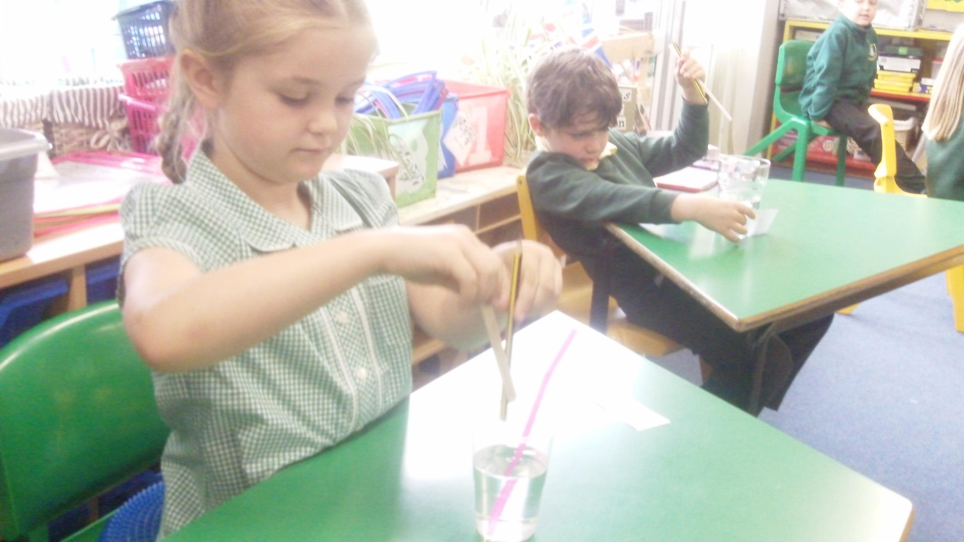 Willow investigated them all using pipettes to measure out the water and blue paper towel underneath to see if the water went through the material or not.