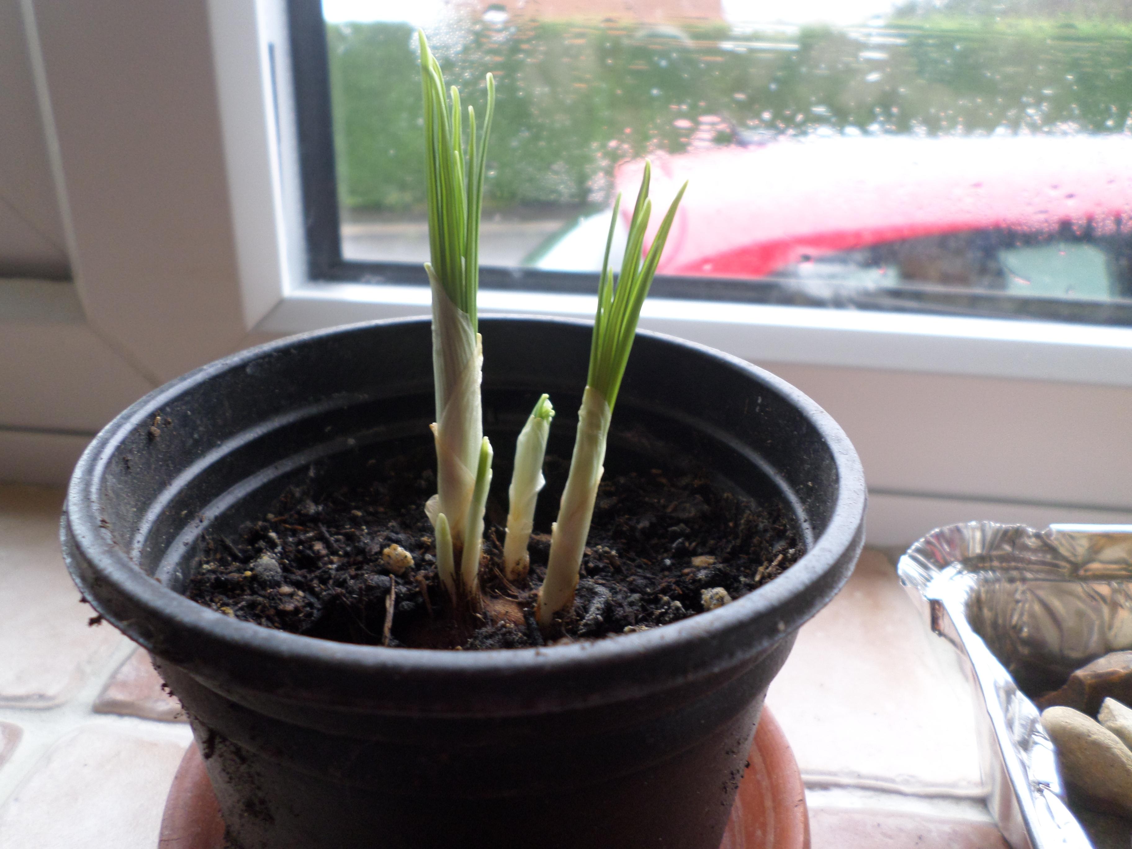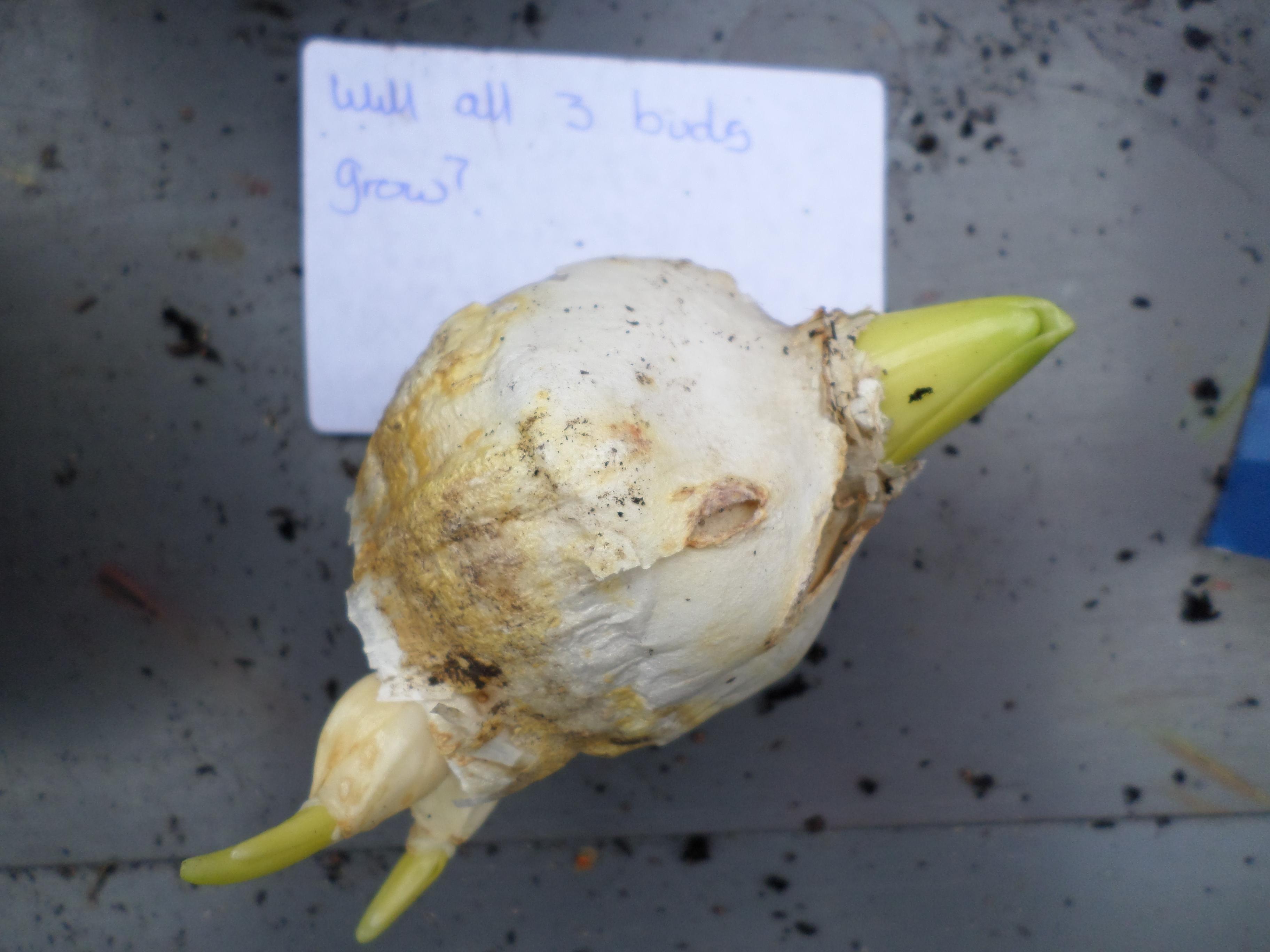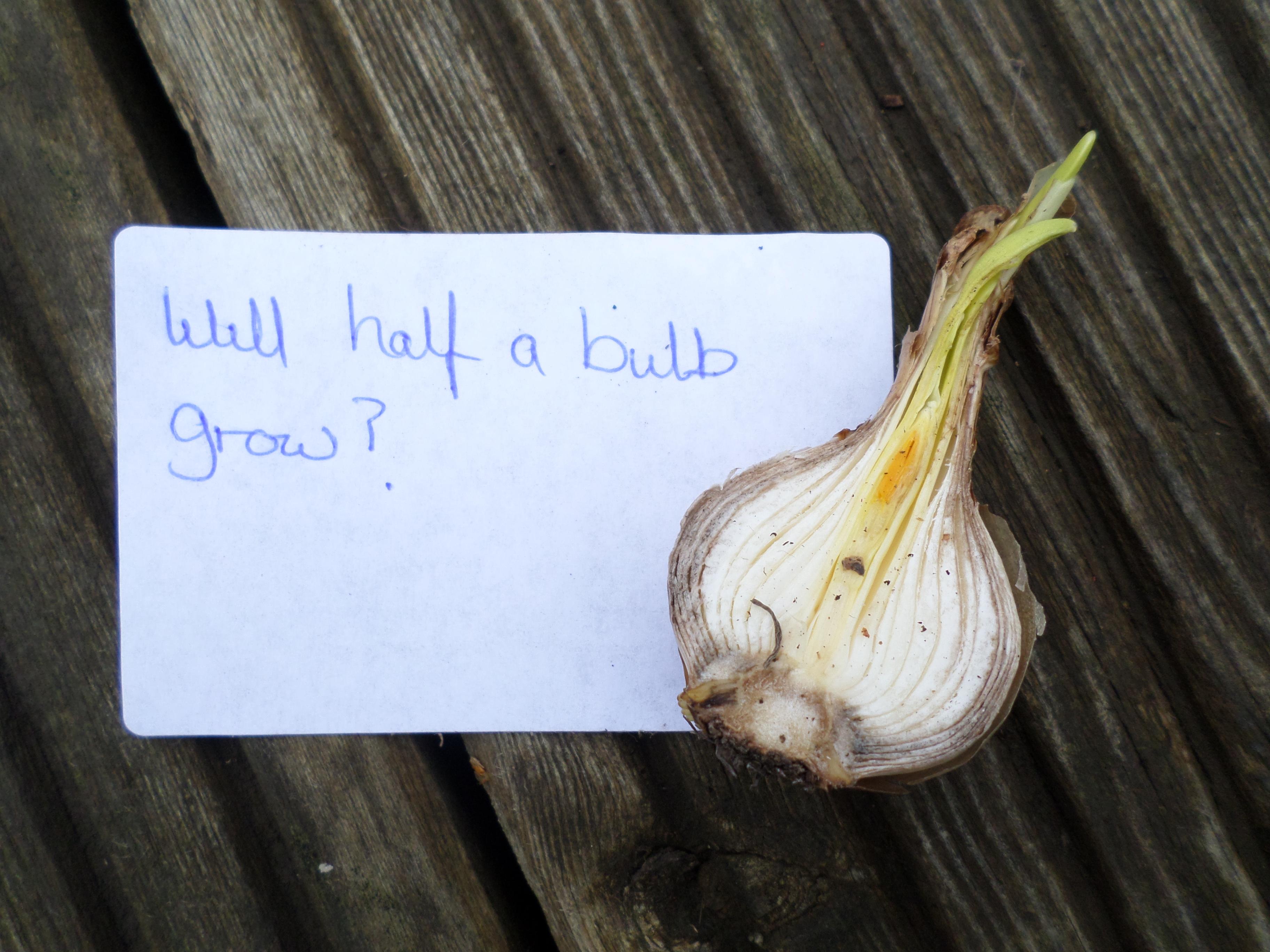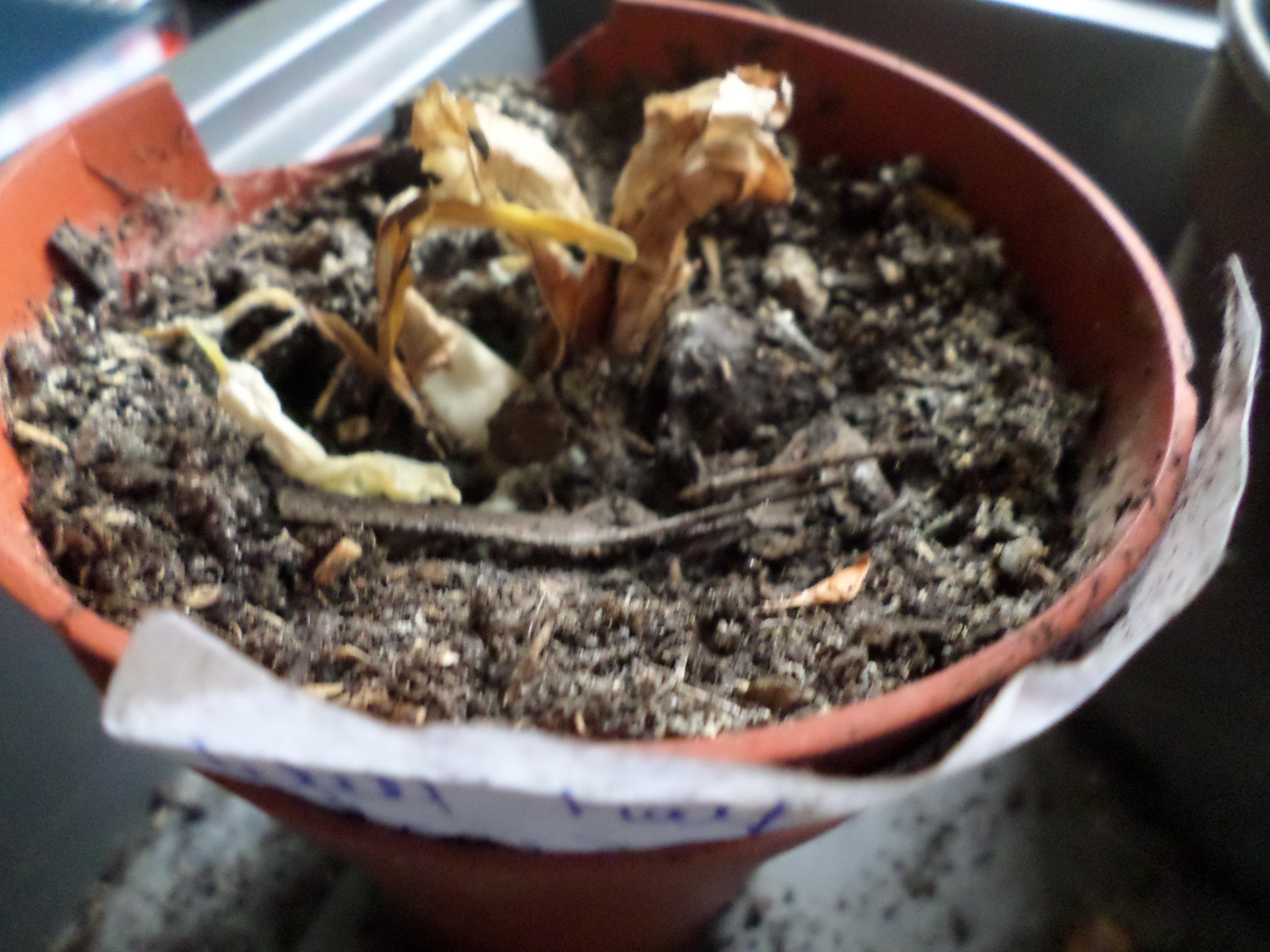 We dug up the bulb that we planted outside and found that is was beginning to grow, so we replanted it a bit nearer the surface to see if that changes anything.