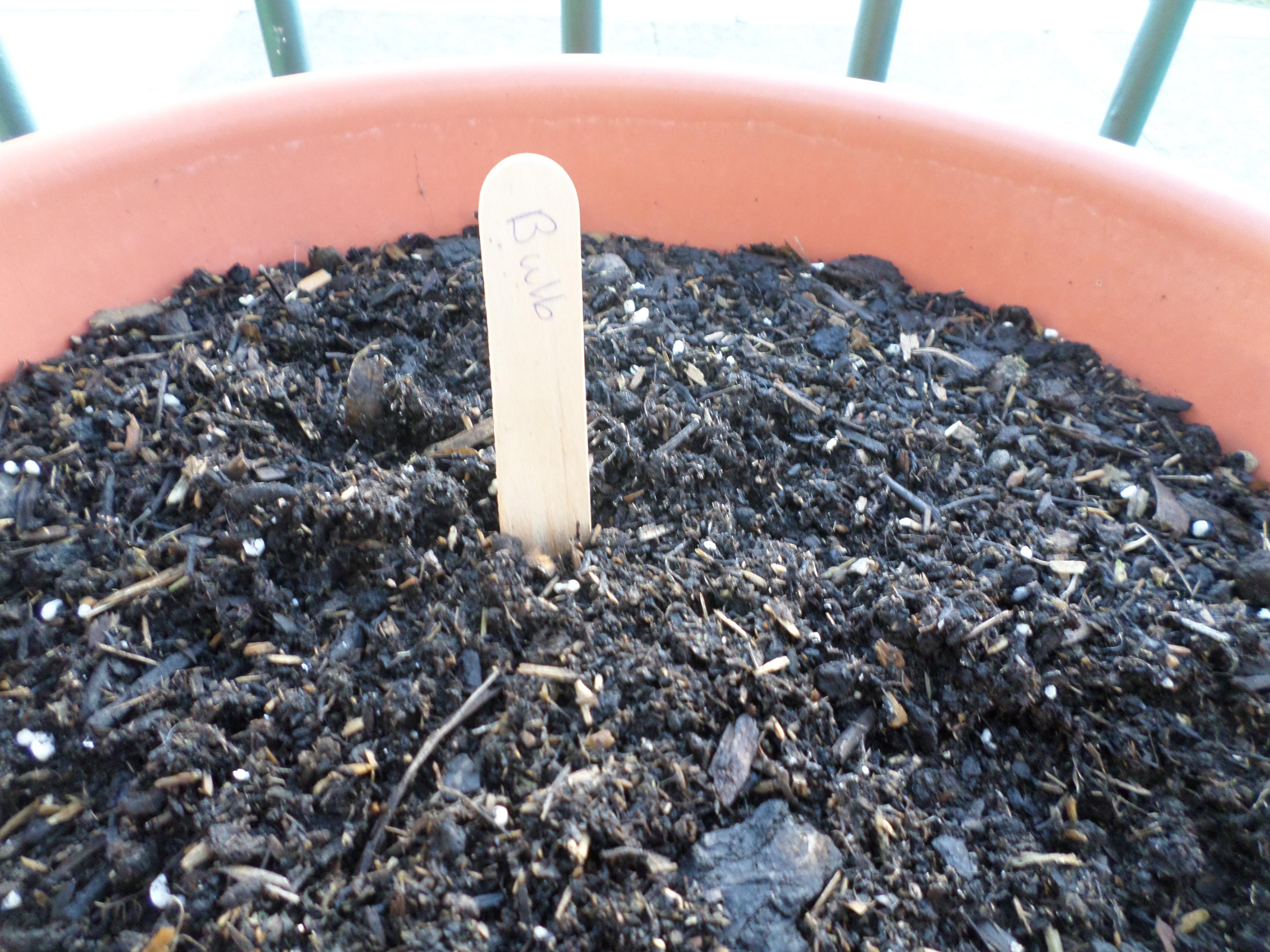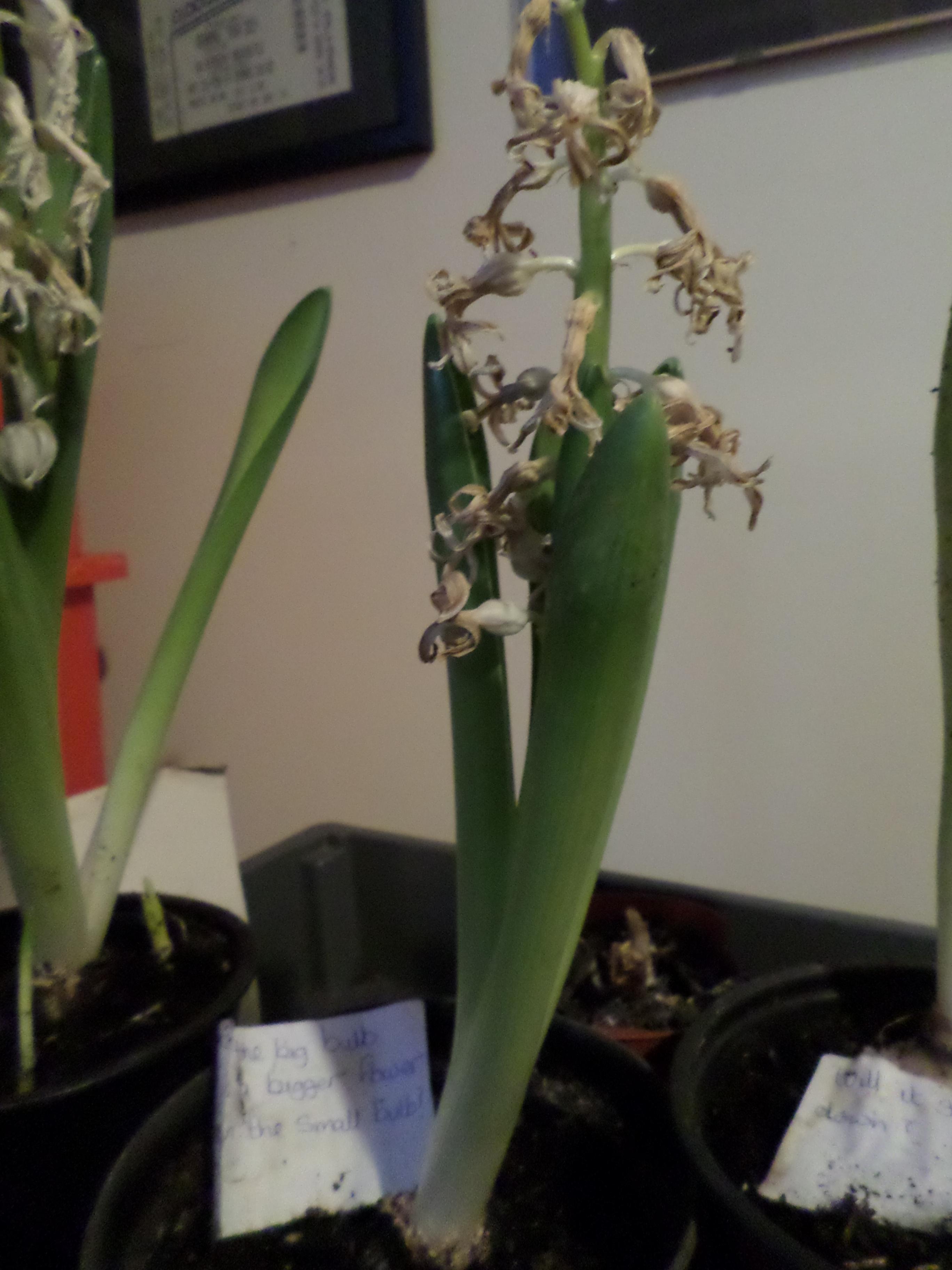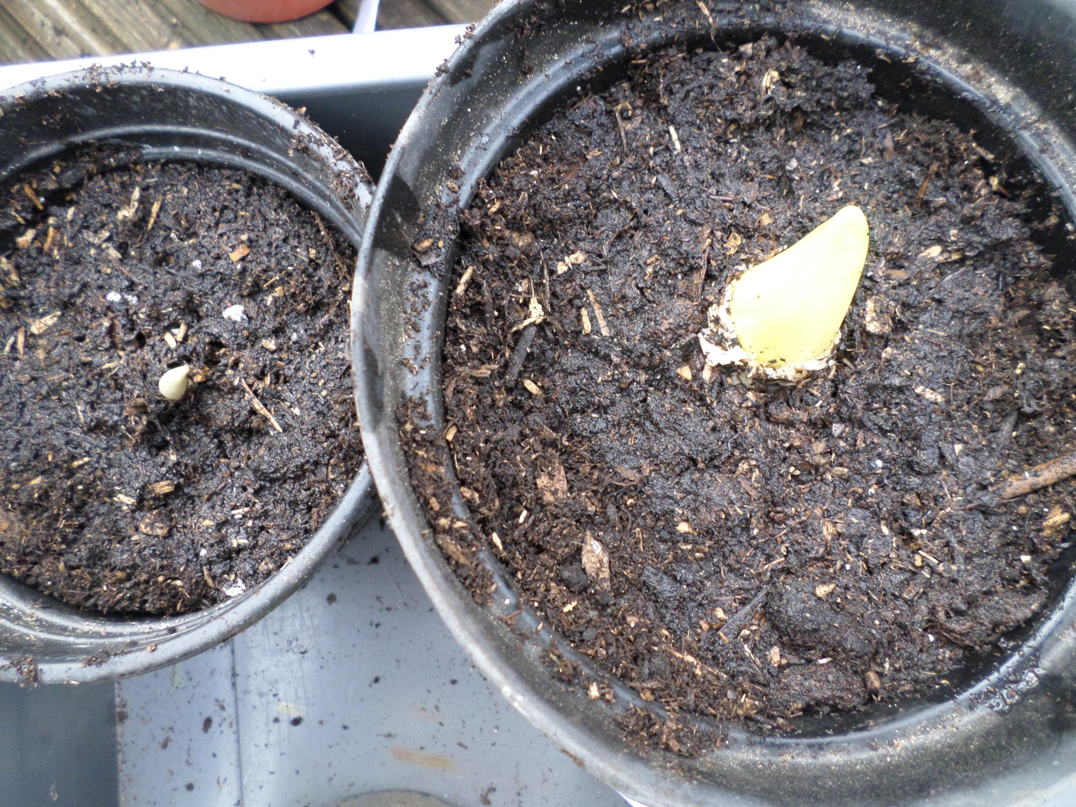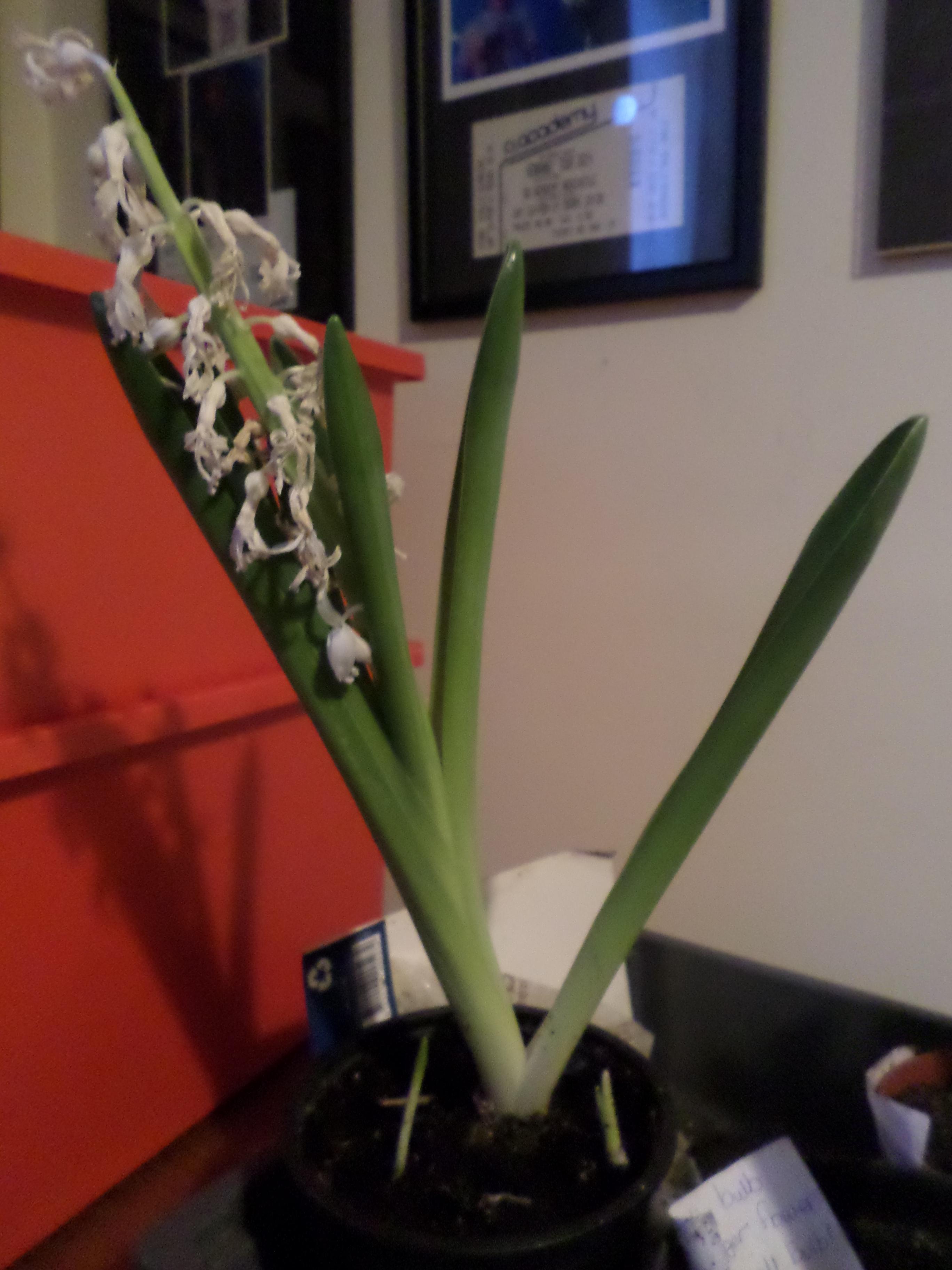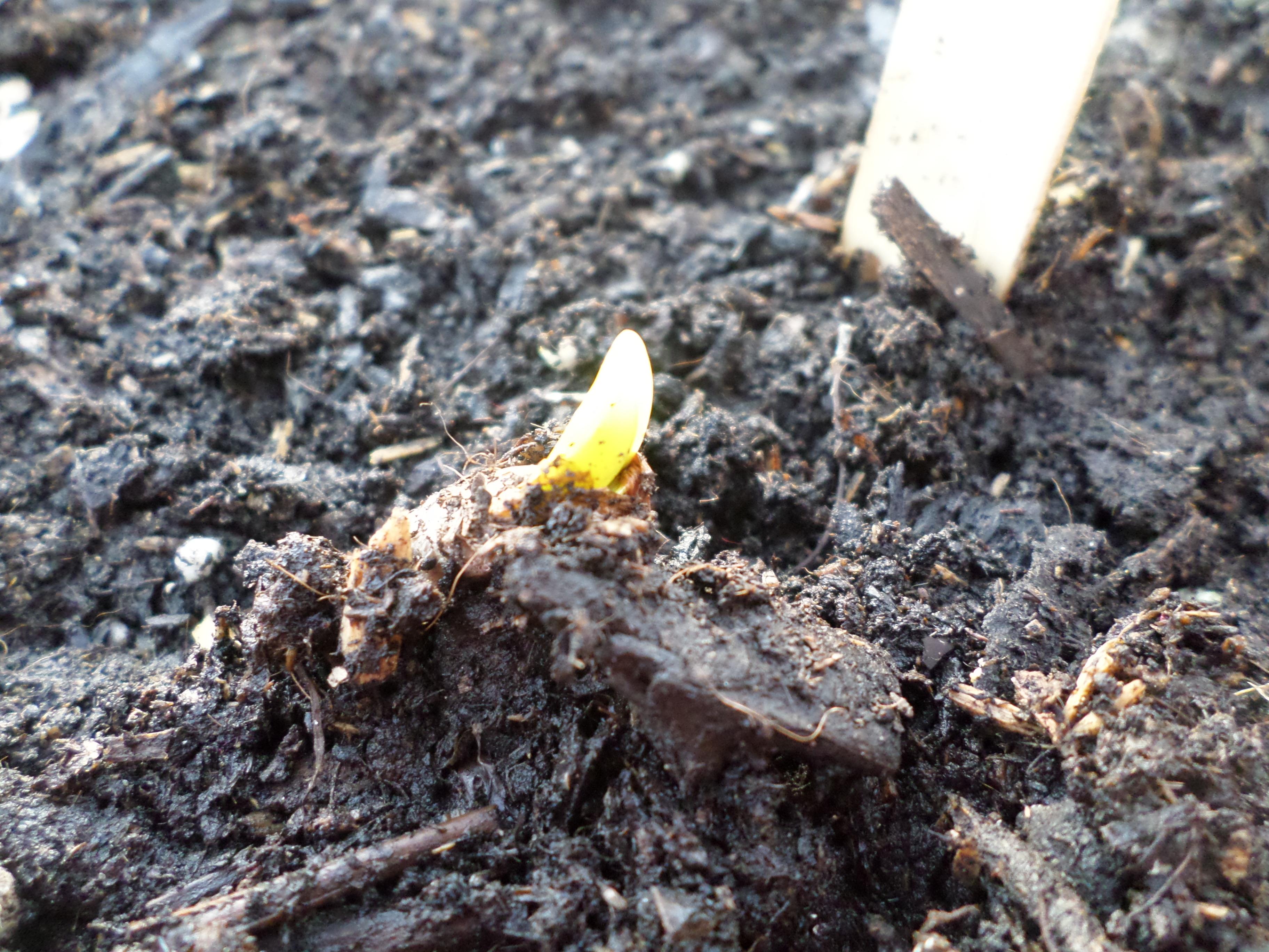 We dug up the bulb that we planted outside and found that is was beginning to grow, so we replanted it a bit nearer the surface to see if that changes anything.
